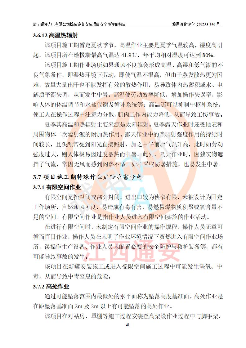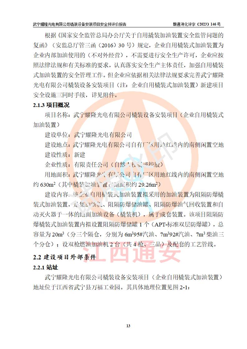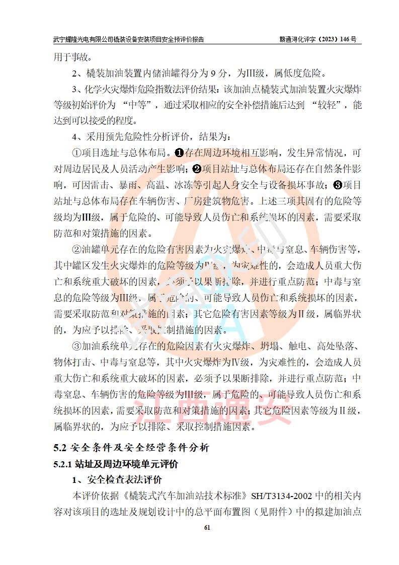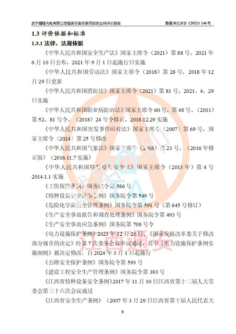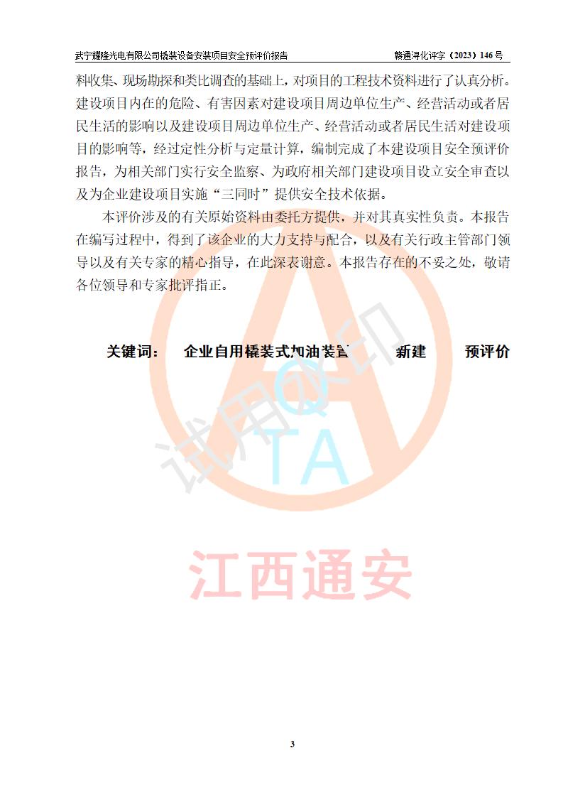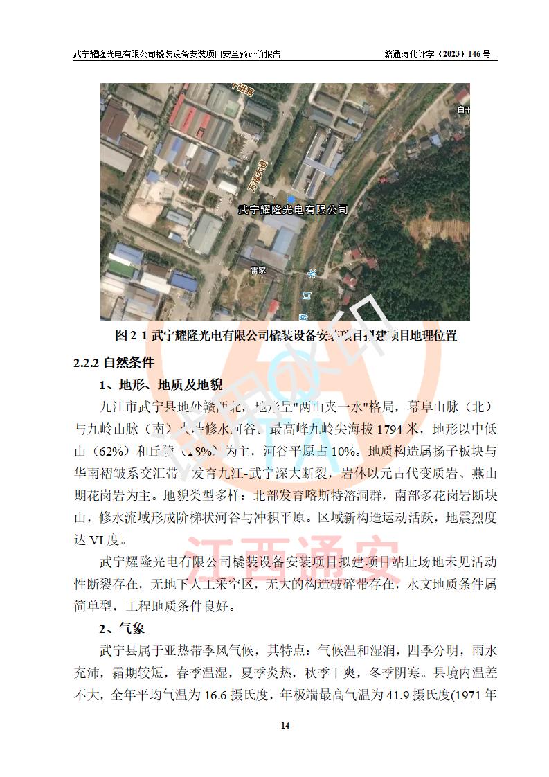 評價(jià)報(bào)告名稱 | 武寧耀隆光電有限公司橇裝設(shè)備安裝項(xiàng)目項(xiàng)目安全預(yù)評價(jià)報(bào)告 | |||