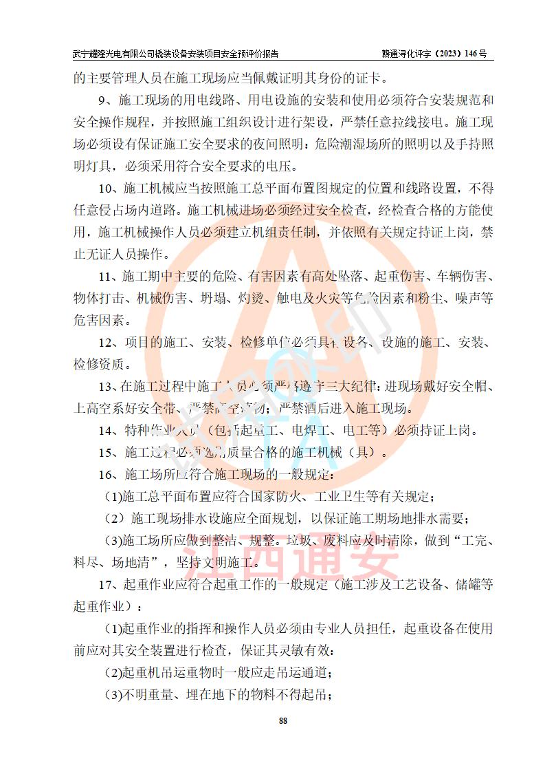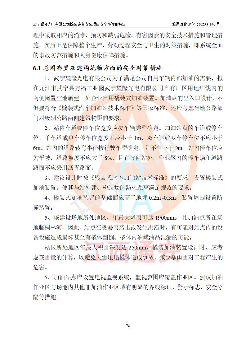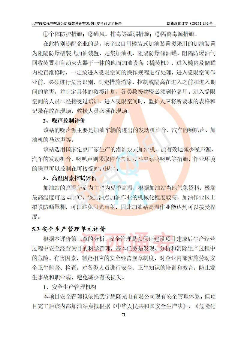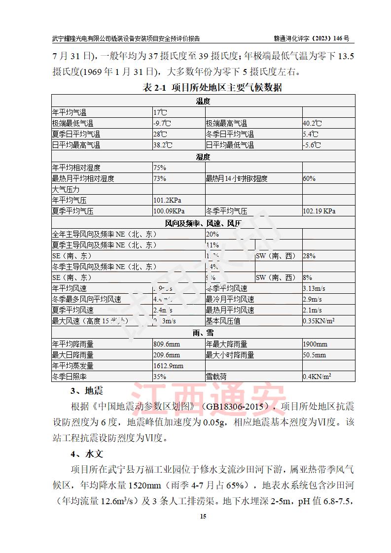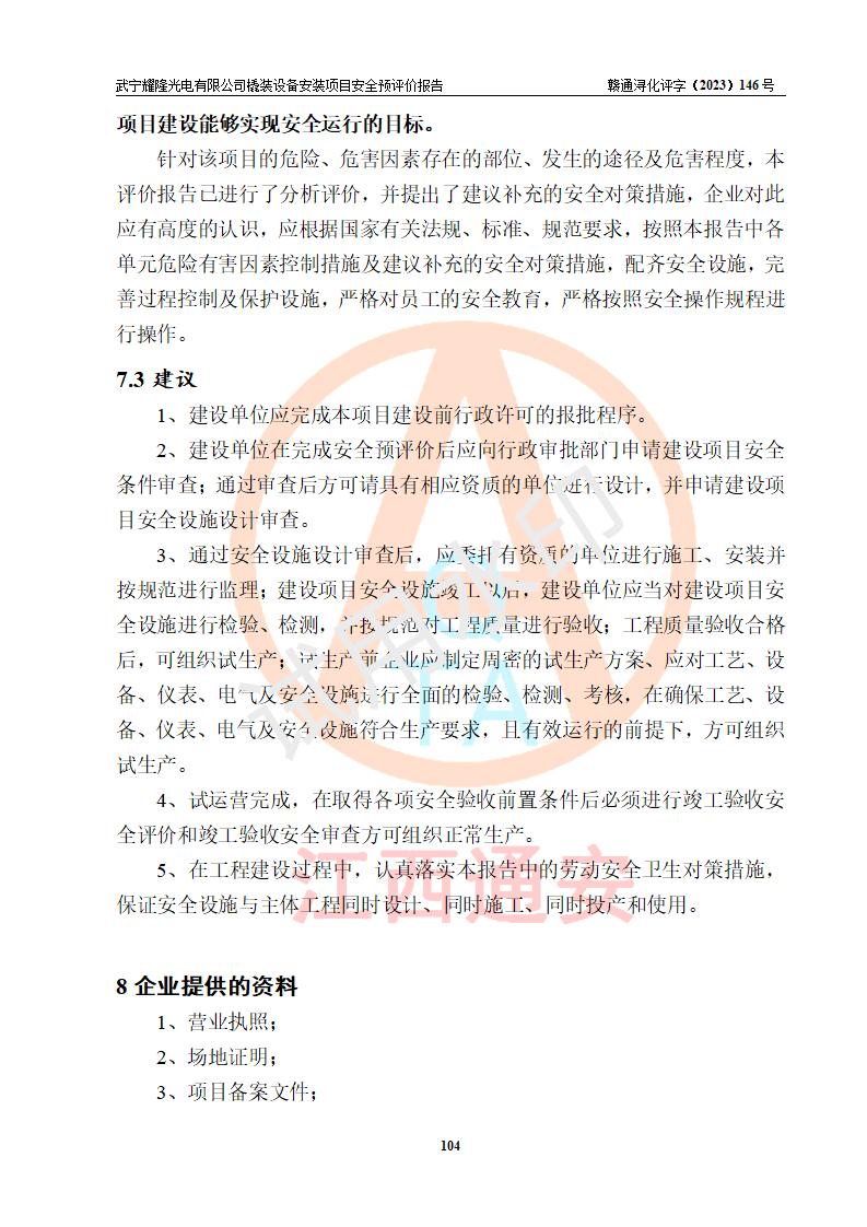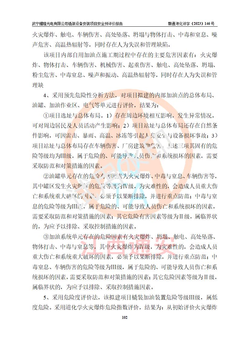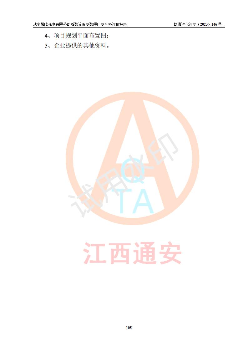 評價(jià)報(bào)告名稱 | 武寧耀隆光電有限公司橇裝設(shè)備安裝項(xiàng)目項(xiàng)目安全預(yù)評價(jià)報(bào)告 | |||