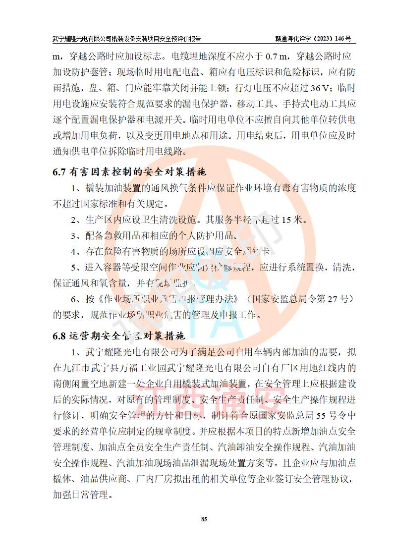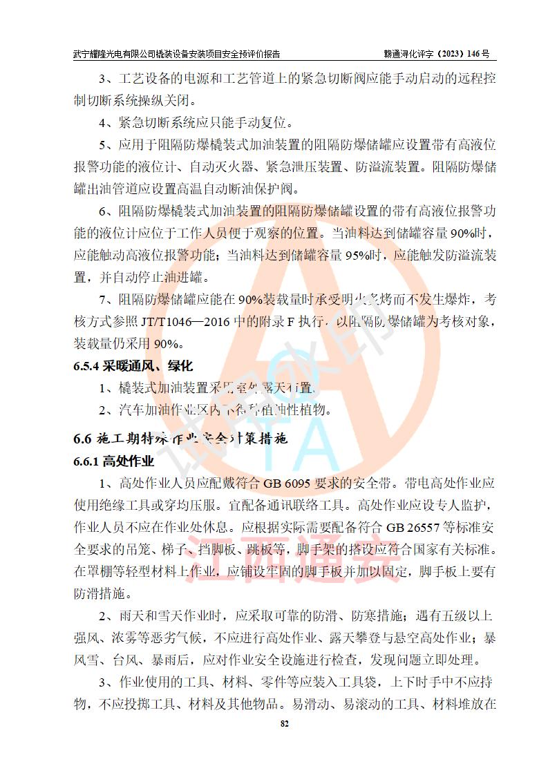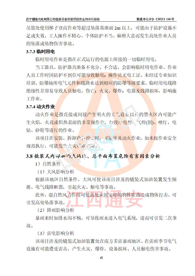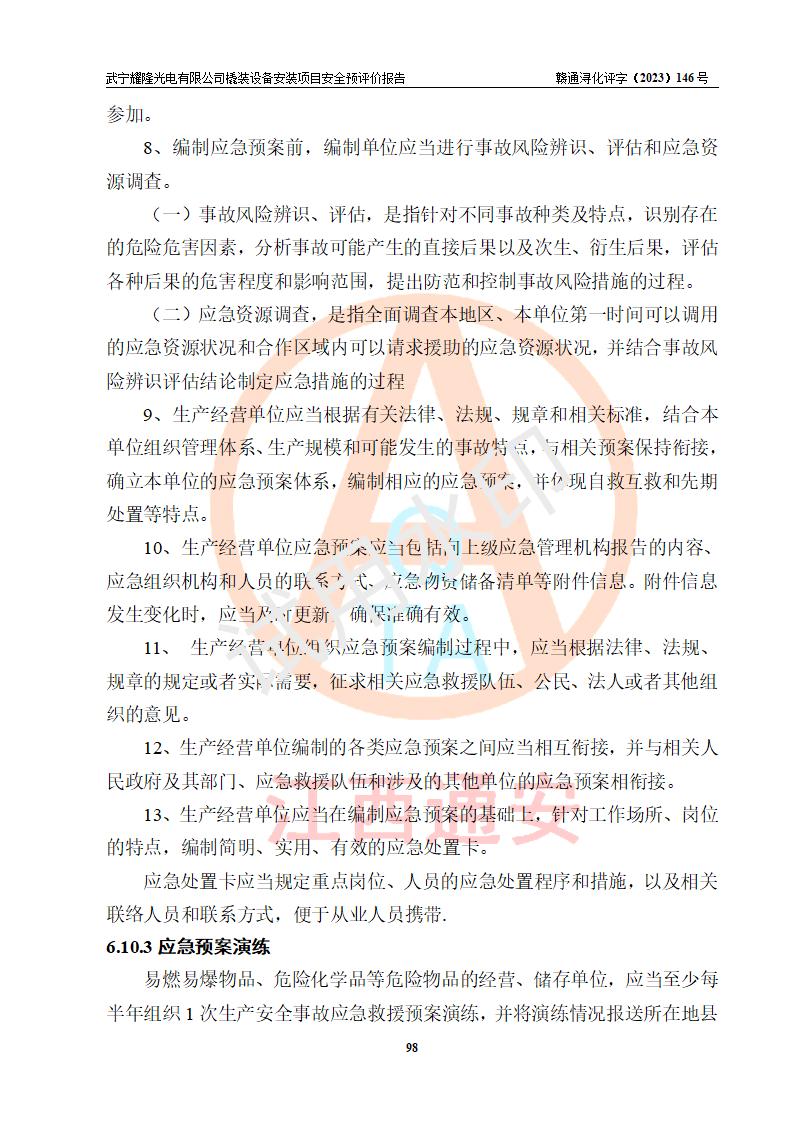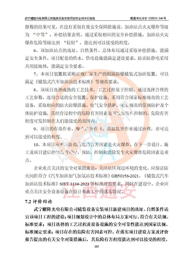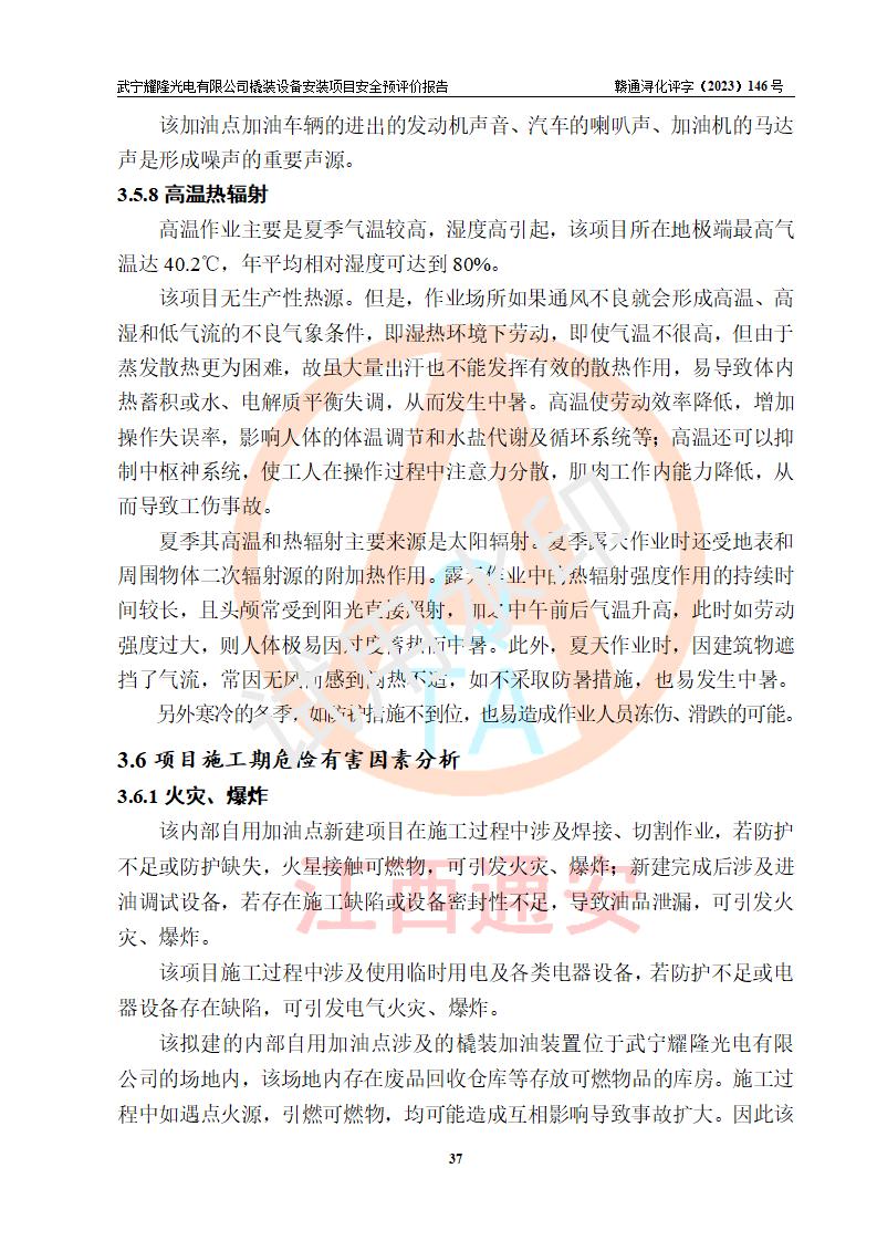 評價(jià)報(bào)告名稱 | 武寧耀隆光電有限公司橇裝設(shè)備安裝項(xiàng)目項(xiàng)目安全預(yù)評價(jià)報(bào)告 | |||