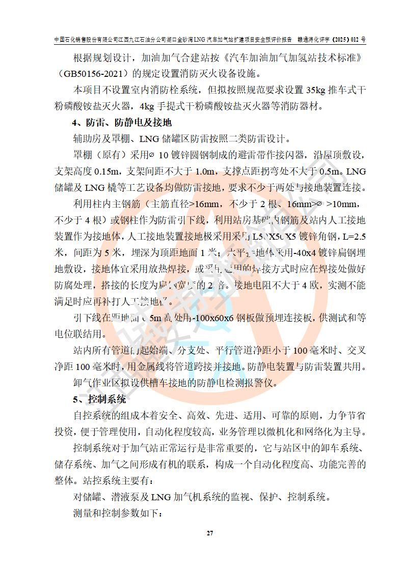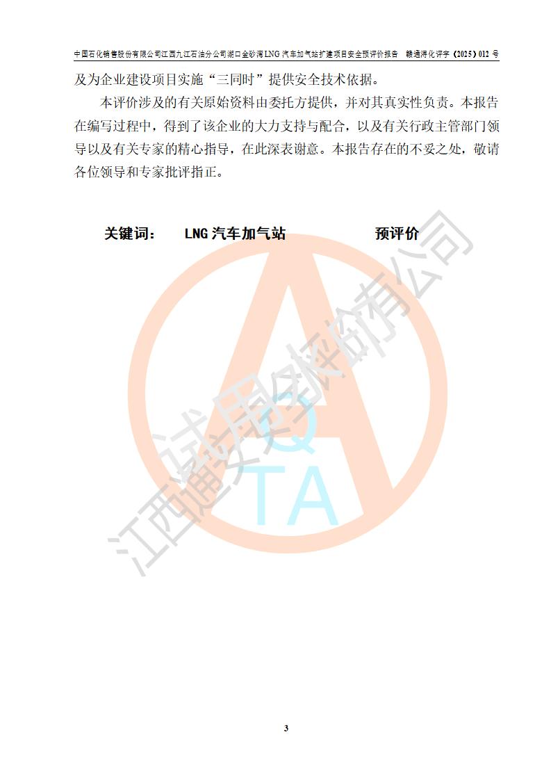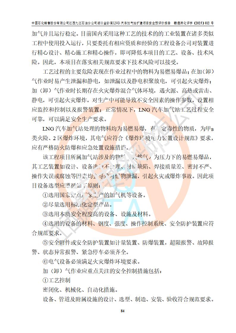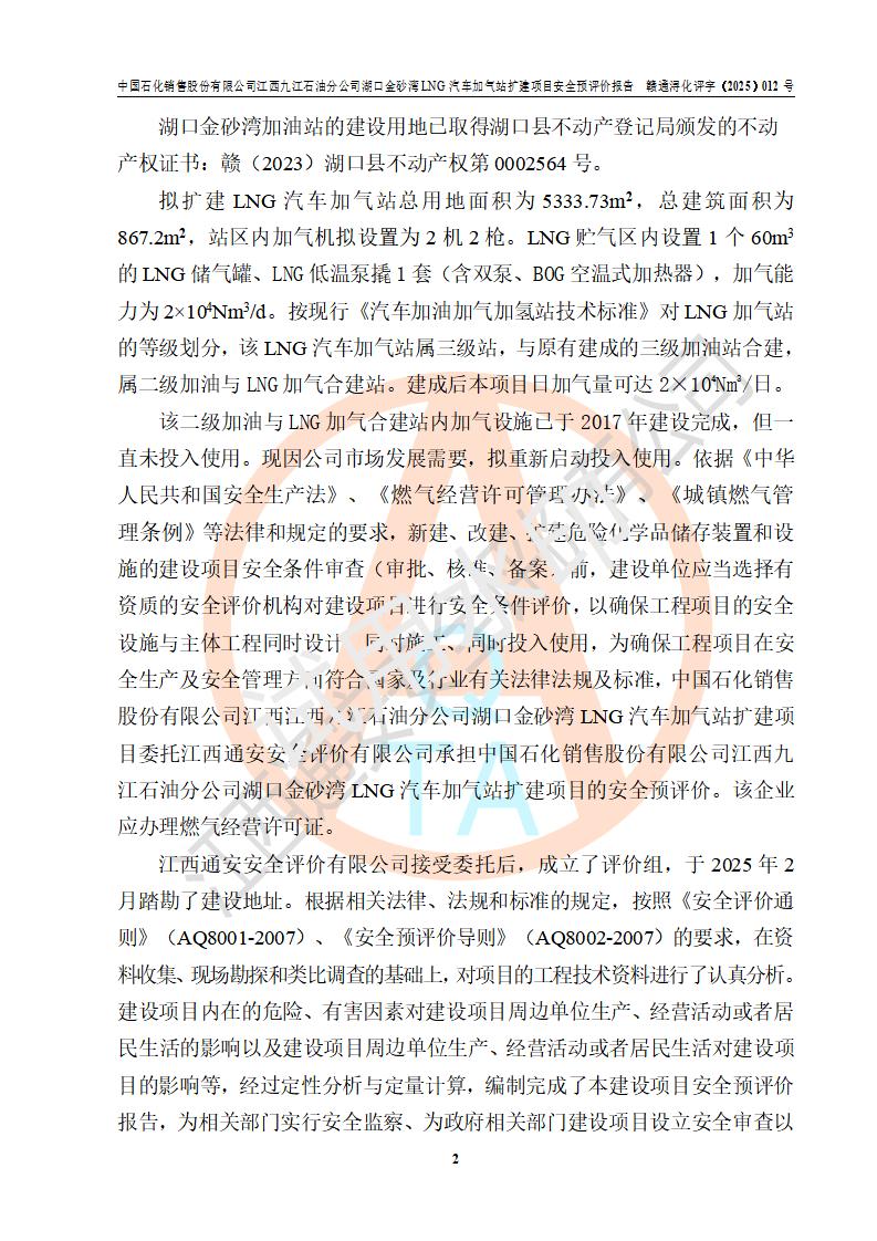 評價(jià)報(bào)告名稱 | 中國石化銷售股份有限公司江西九江石油分公司湖口金砂灣LNG汽車加氣站擴(kuò)建項(xiàng)目安全預(yù)評價(jià)報(bào)告 | ||||||