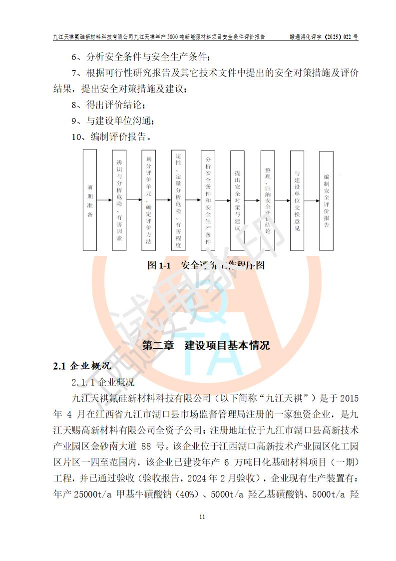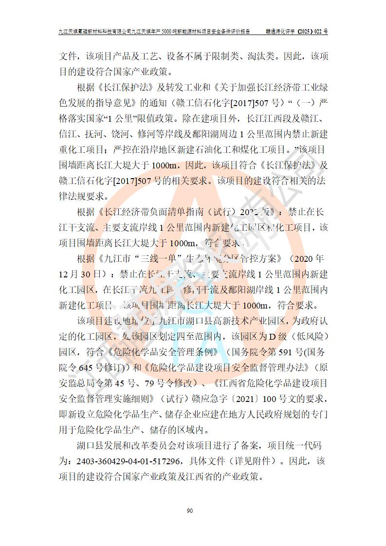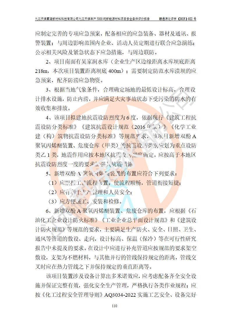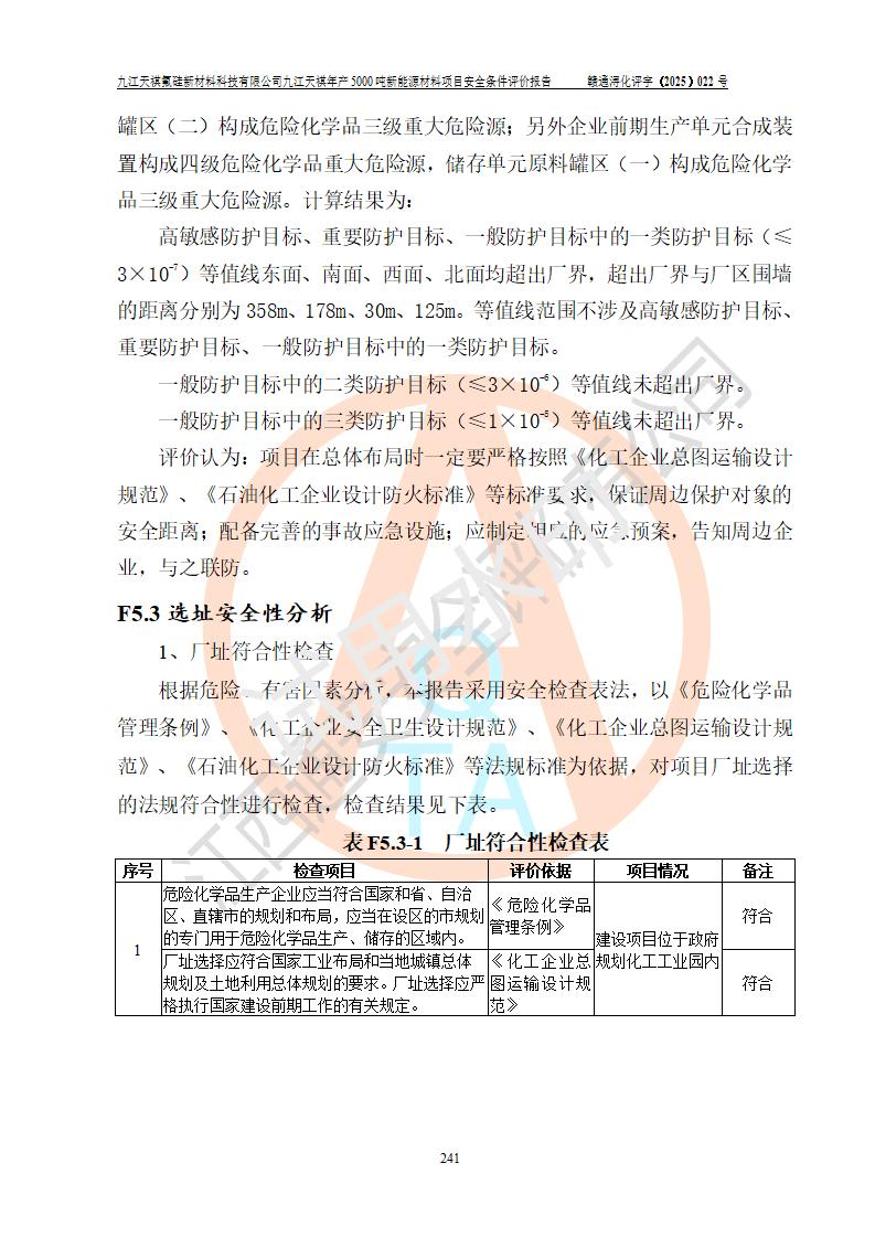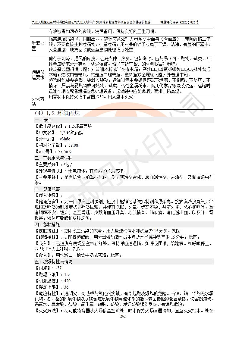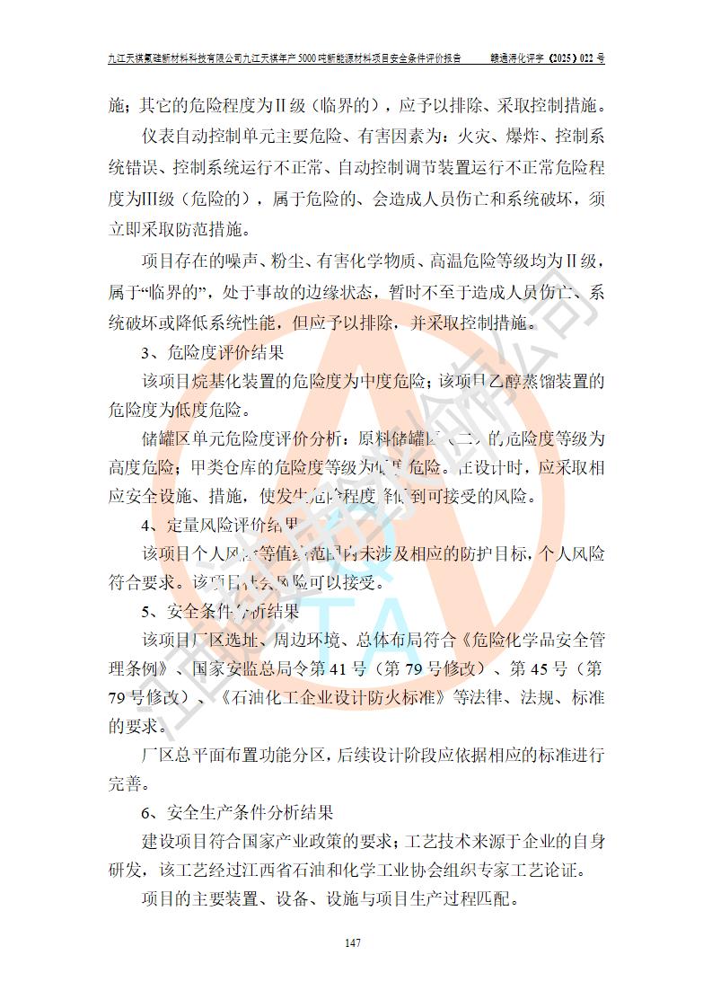 九江天祺氟硅新材料科技有限公司九江天祺年產(chǎn)5000 噸新能源材料項目安全條件評價報告