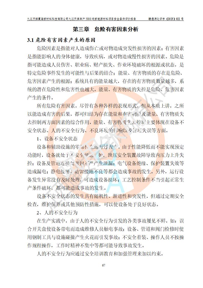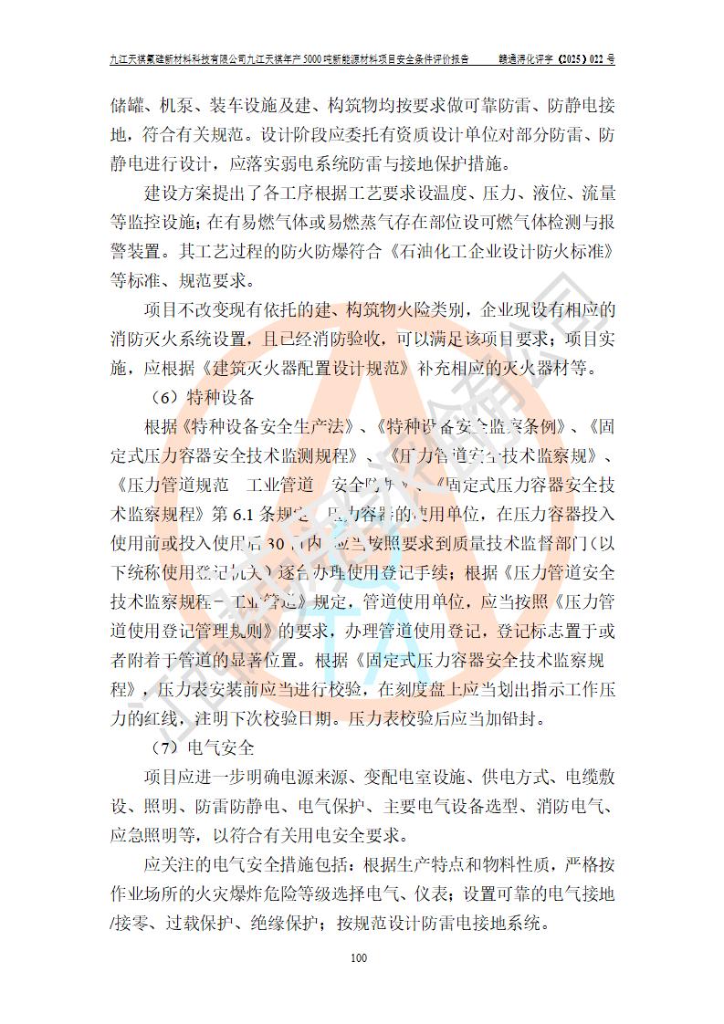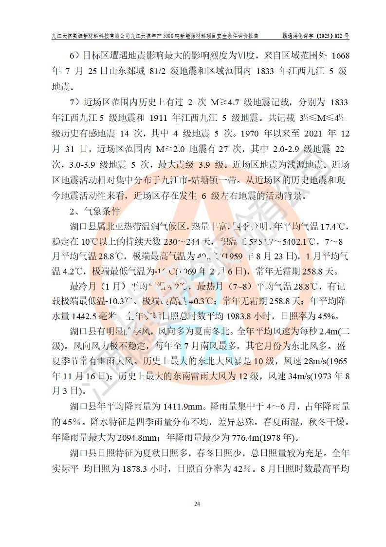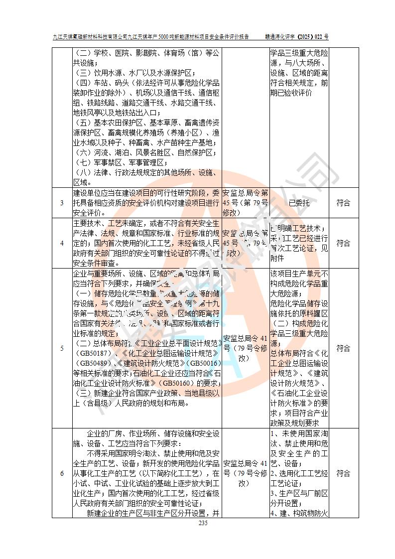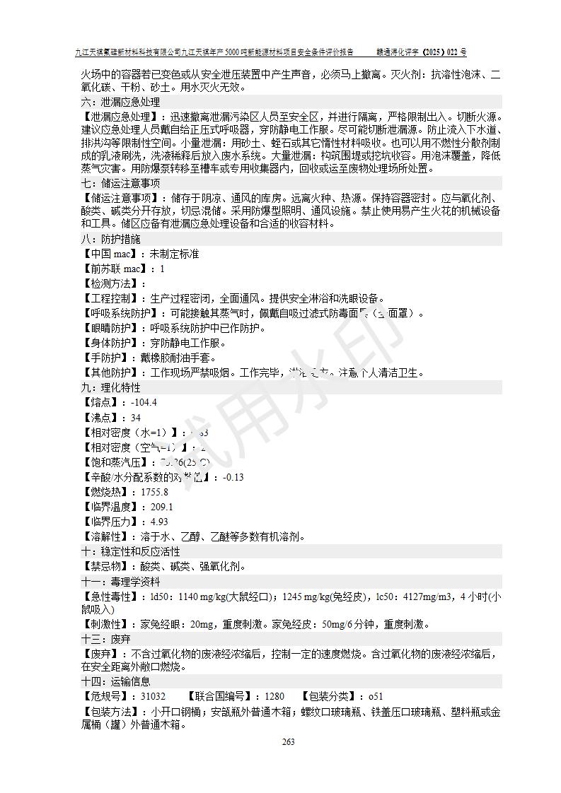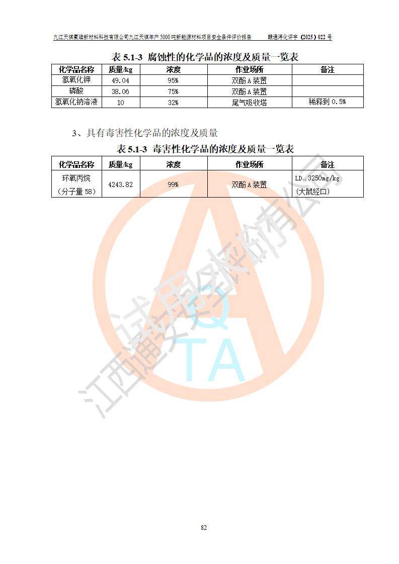 九江天祺氟硅新材料科技有限公司九江天祺年產(chǎn)5000 噸新能源材料項目安全條件評價報告