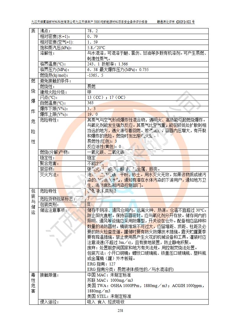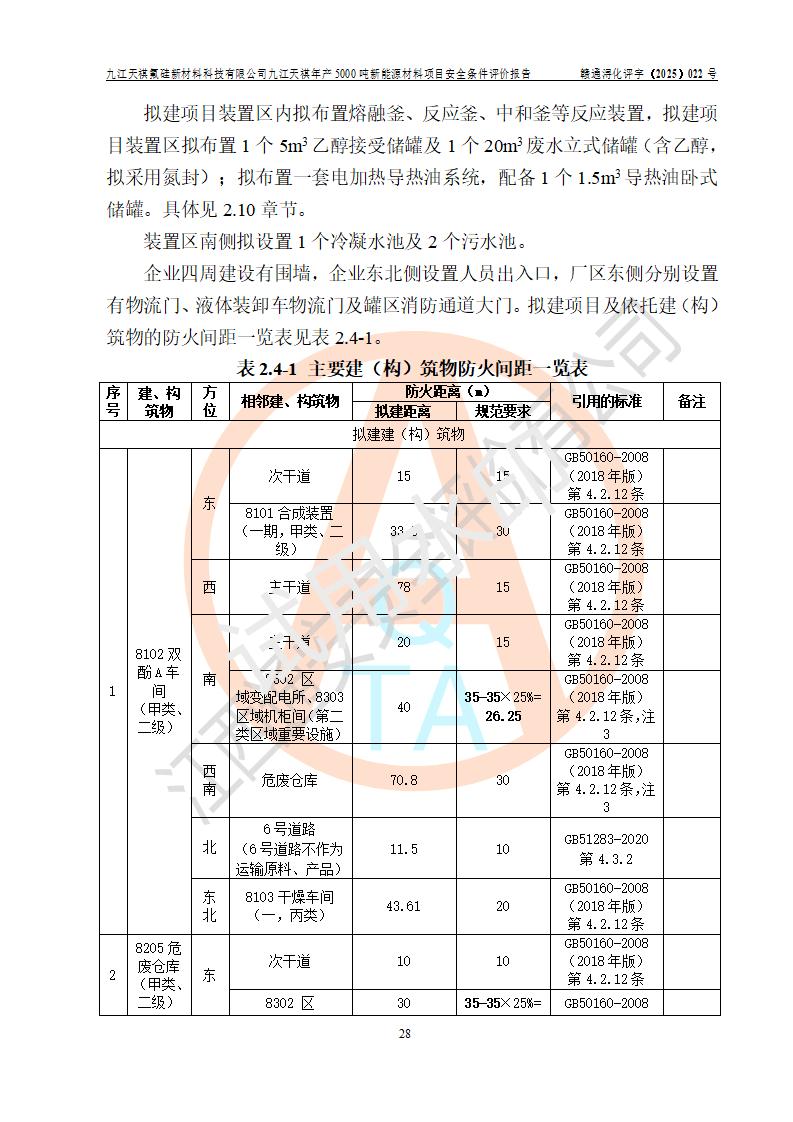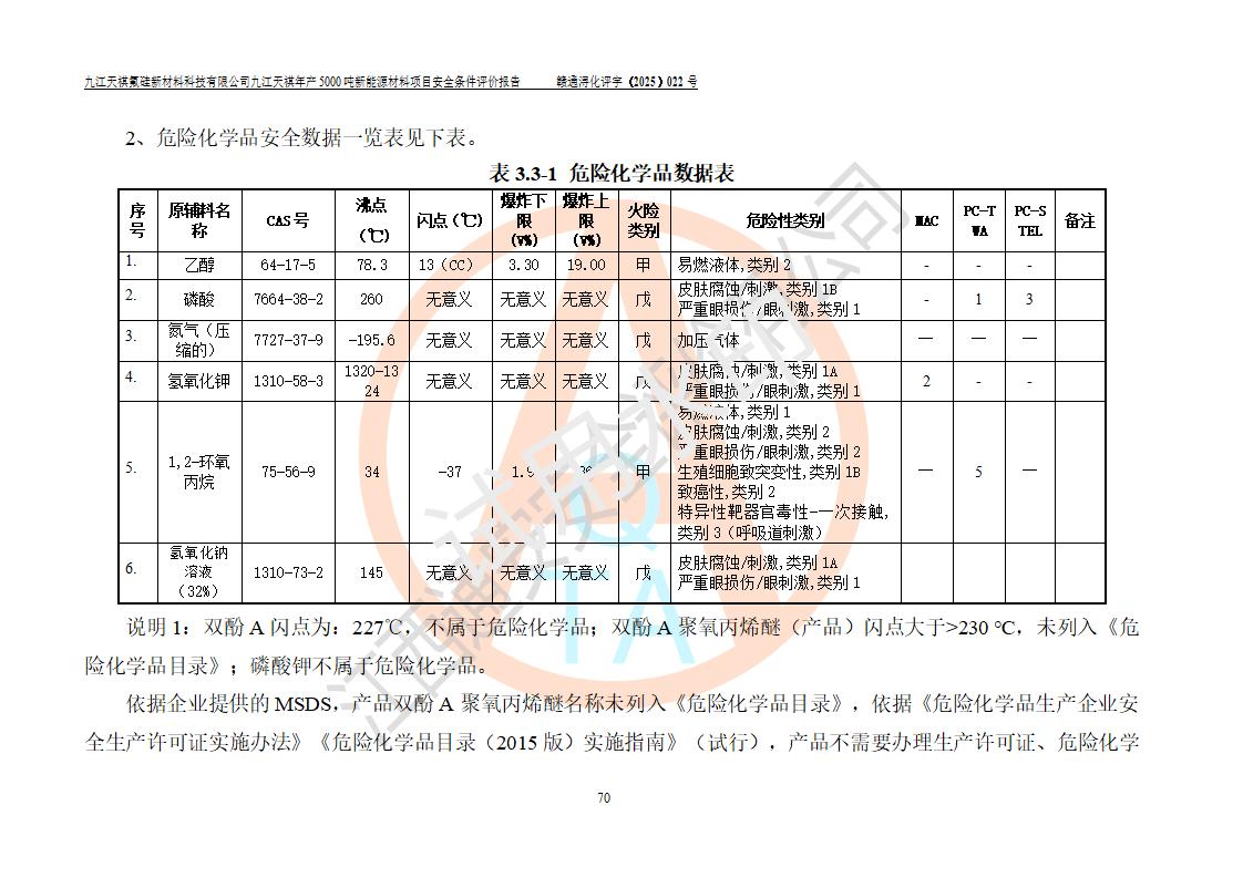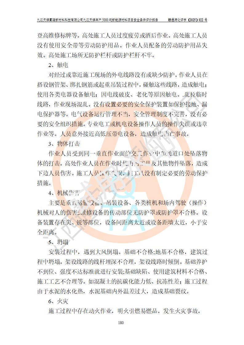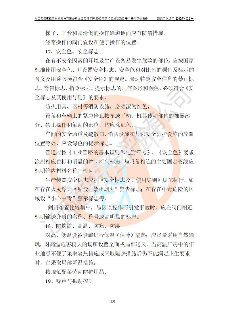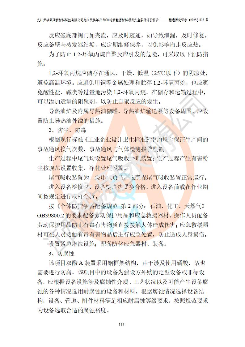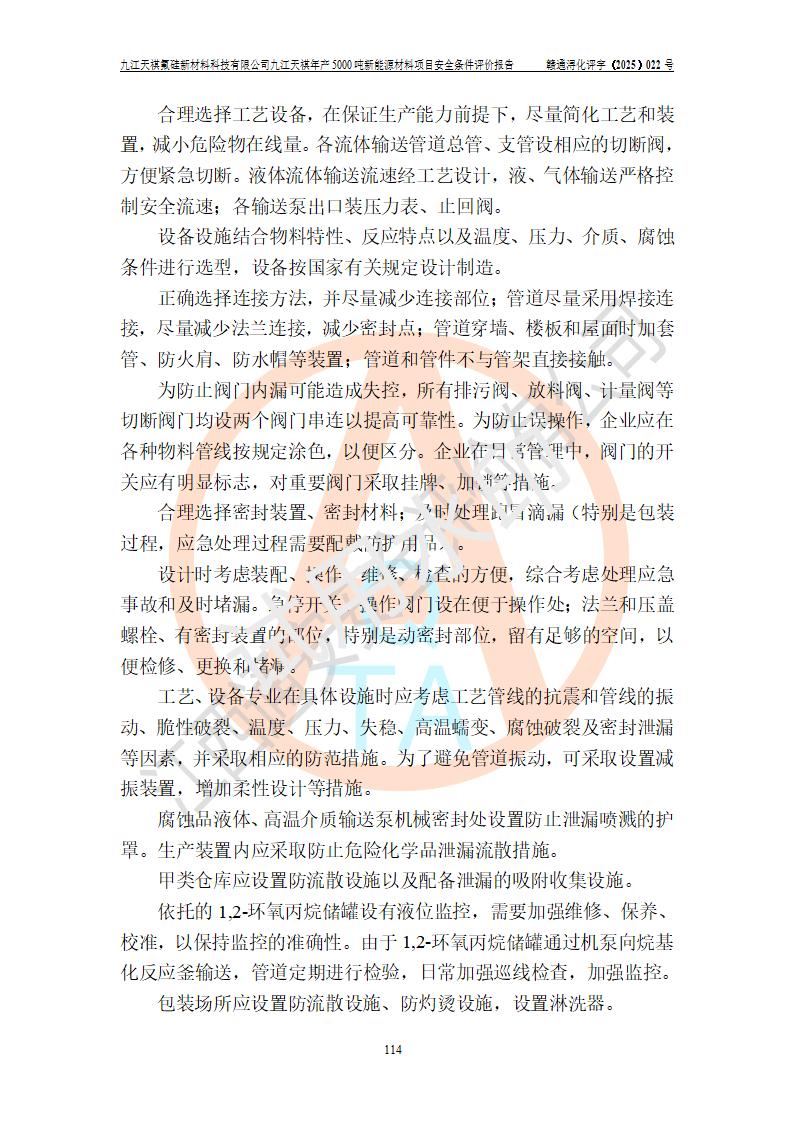 九江天祺氟硅新材料科技有限公司九江天祺年產(chǎn)5000 噸新能源材料項目安全條件評價報告