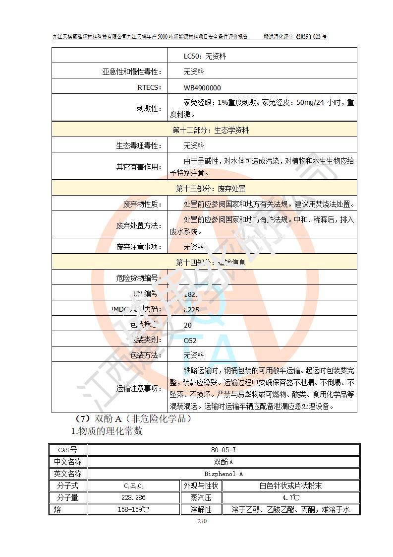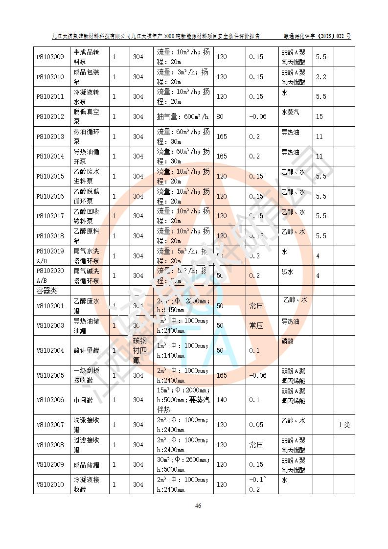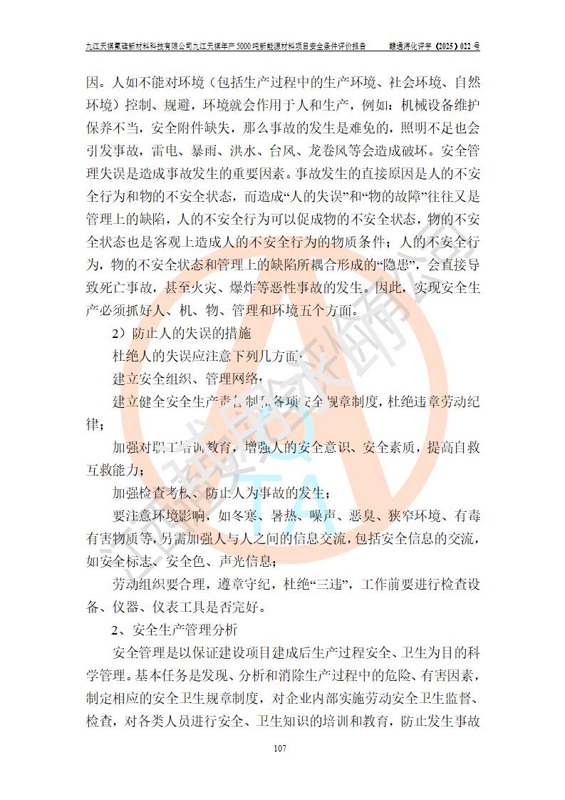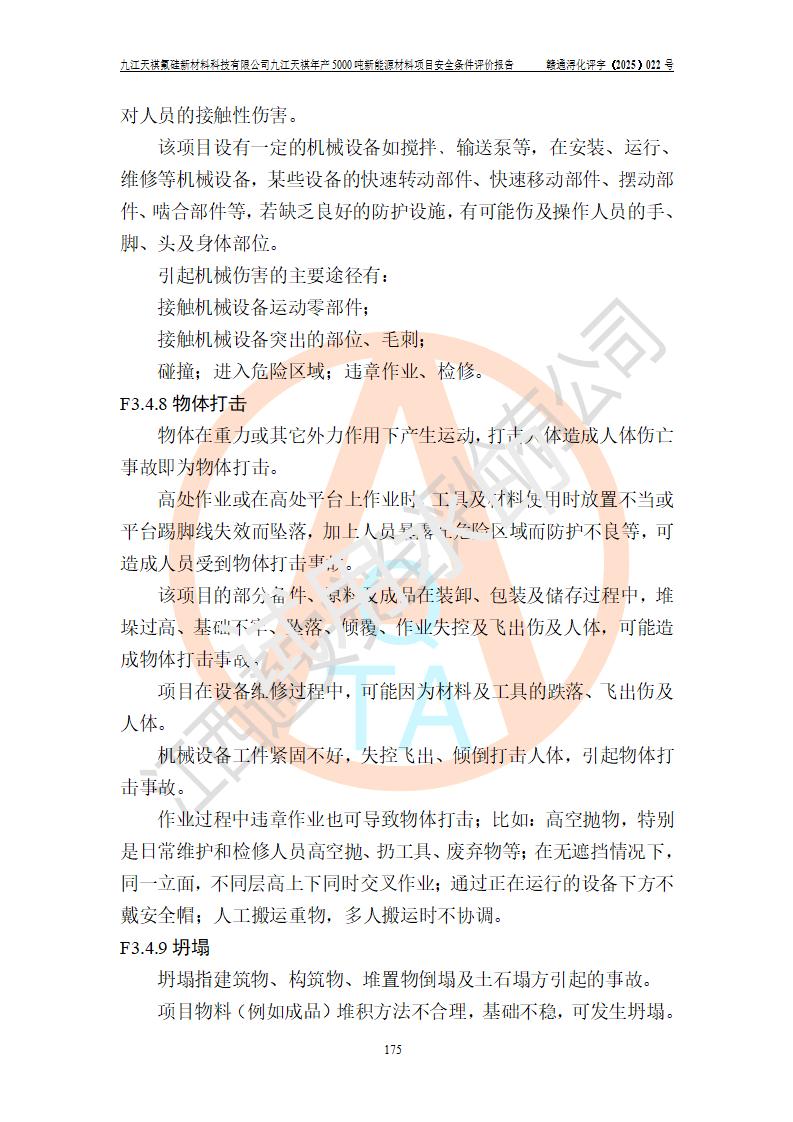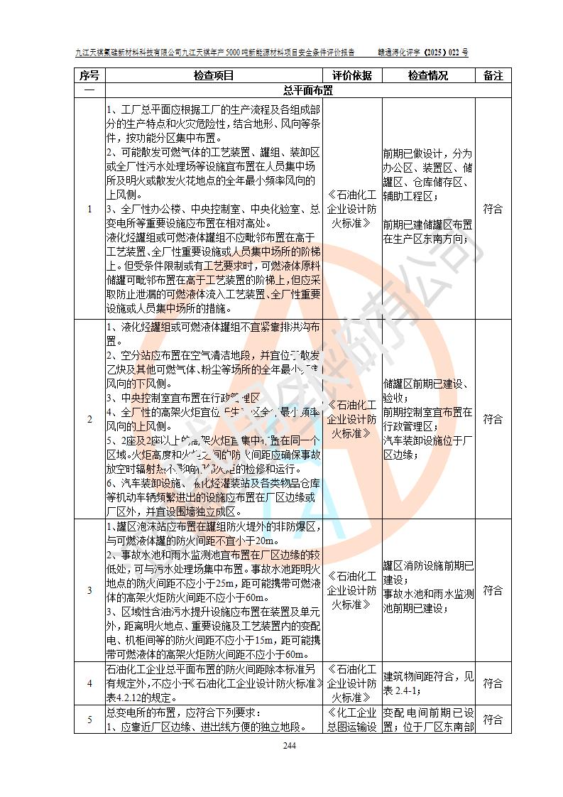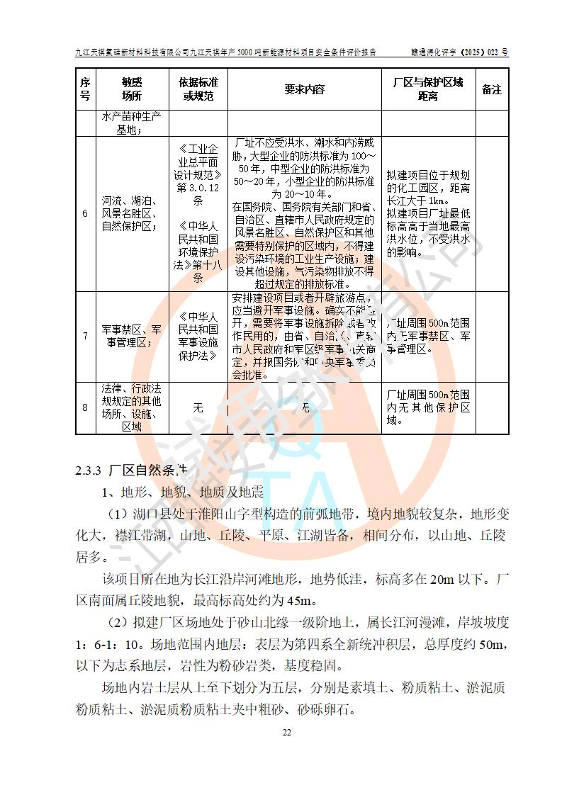 九江天祺氟硅新材料科技有限公司九江天祺年產(chǎn)5000 噸新能源材料項目安全條件評價報告