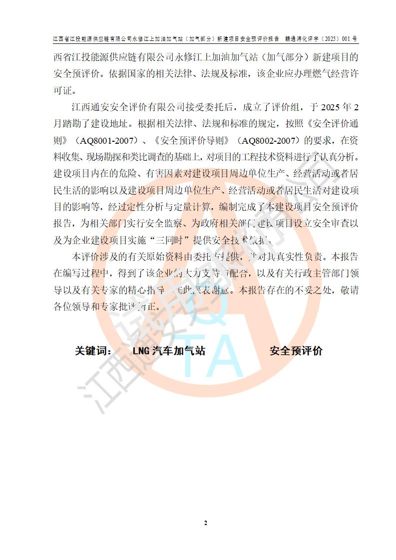 評價(jià)報(bào)告名稱 | 江西省江投能源供應(yīng)鏈有限公司永修江上加油加氣站(加氣部分)新建項(xiàng)目安全預(yù)評價(jià)報(bào)告 | ||||||