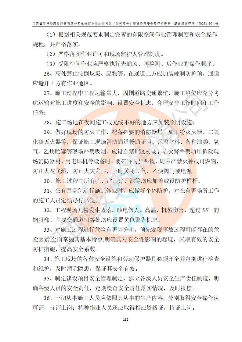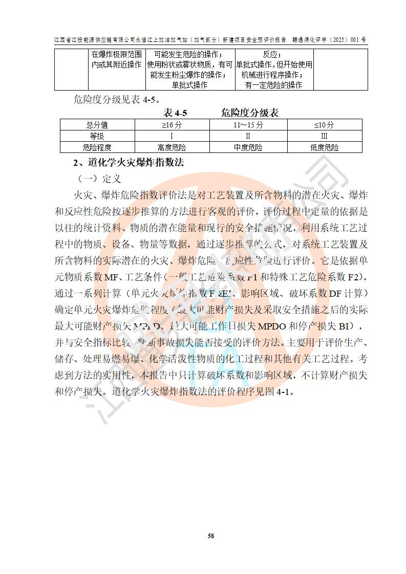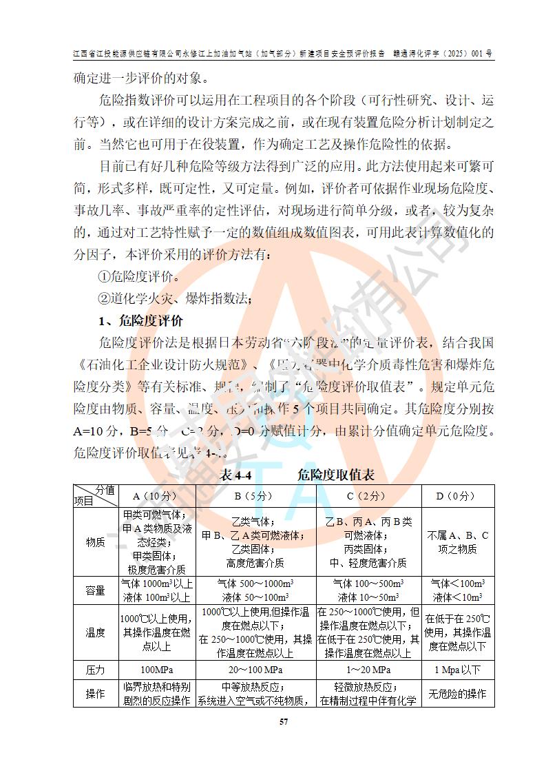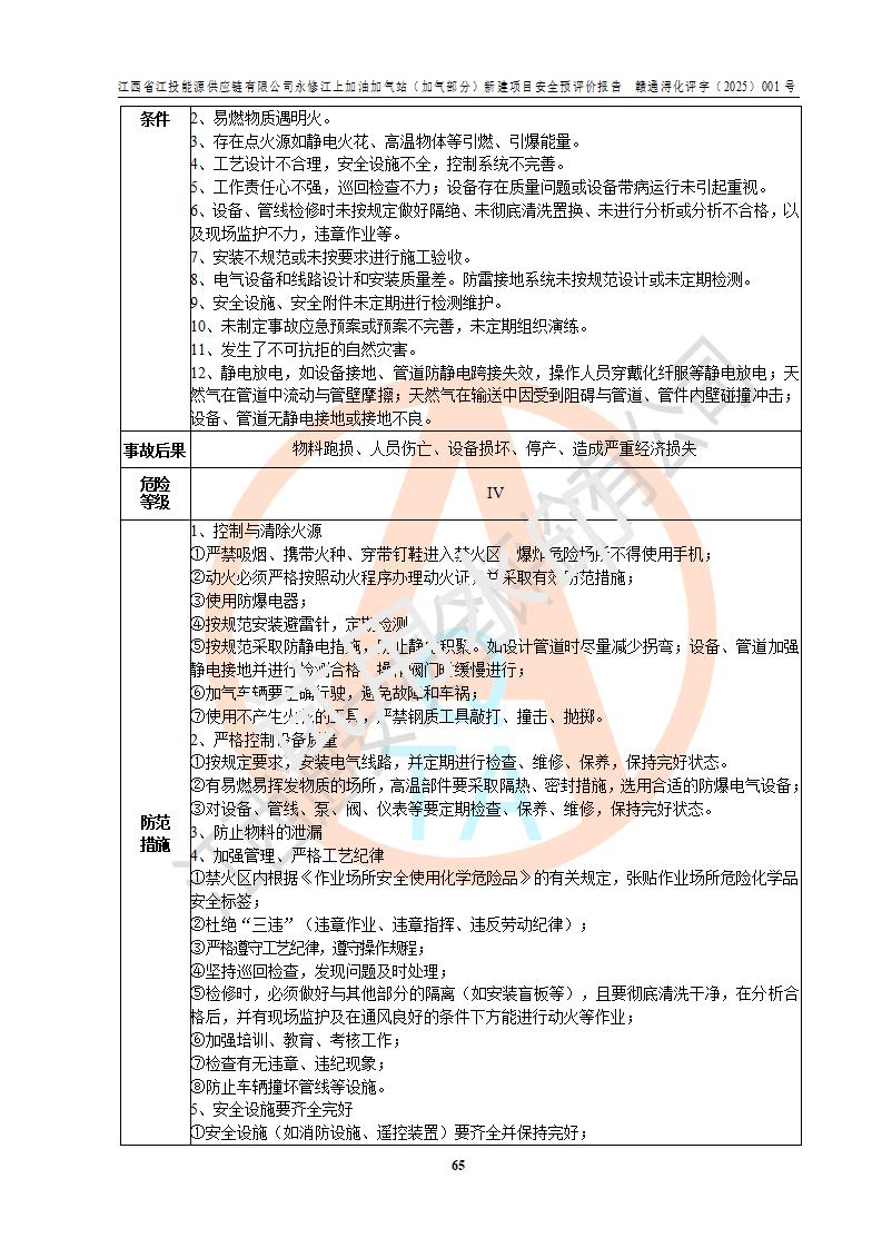 評價(jià)結(jié)論 | 綜上所述:江西省江投能源供應(yīng)鏈有限公司永修江上加油加氣站(加氣部分)的選址、自然條件適宜該項(xiàng)目工程的建設(shè);項(xiàng)目規(guī)劃設(shè)計(jì)中的總體布局方案可行,符合有關(guān)法規(guī)、標(biāo)準(zhǔn)要求;項(xiàng)目選擇的工藝過程及設(shè)備設(shè)施的安全可靠性能達(dá)到**法規(guī)、標(biāo)準(zhǔn)規(guī)定要求;項(xiàng)目存在的危險(xiǎn)有害因素可控,在落實(shí)項(xiàng)目建設(shè)方案及評價(jià)報(bào)告提出的有關(guān)安全對策措施后,其危險(xiǎn)有害程度能達(dá)到可以接受的程度,項(xiàng)目建設(shè)能夠?qū)崿F(xiàn)安全運(yùn)行的目標(biāo)。 | ||||||