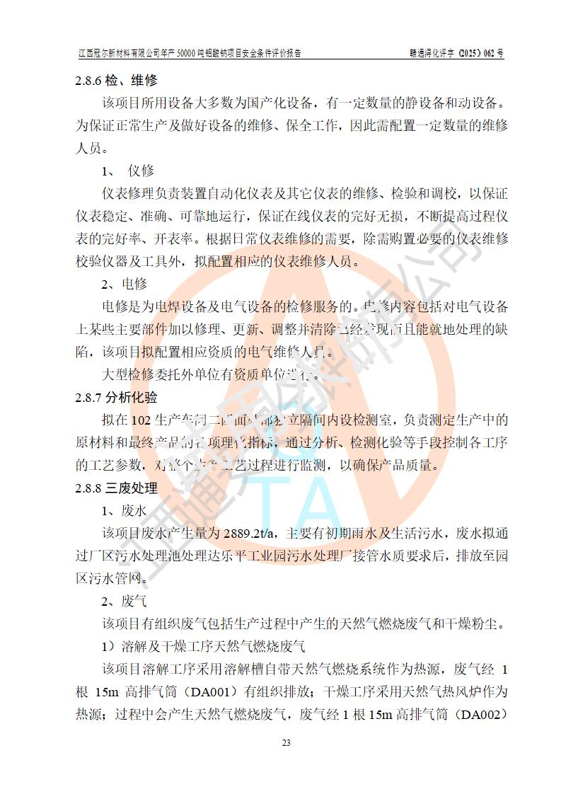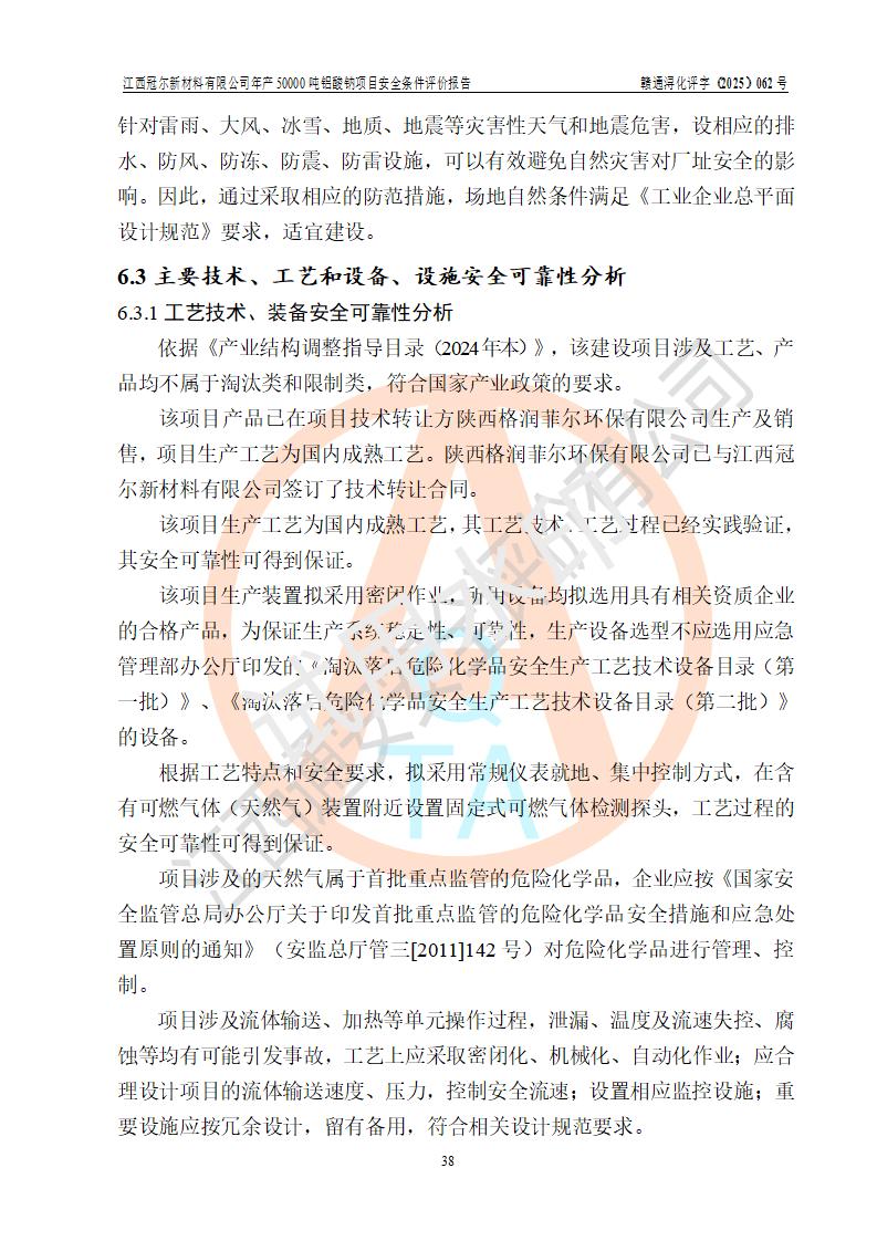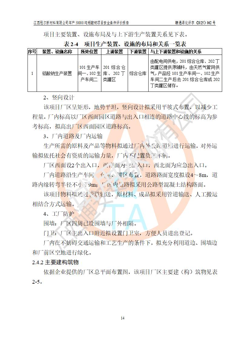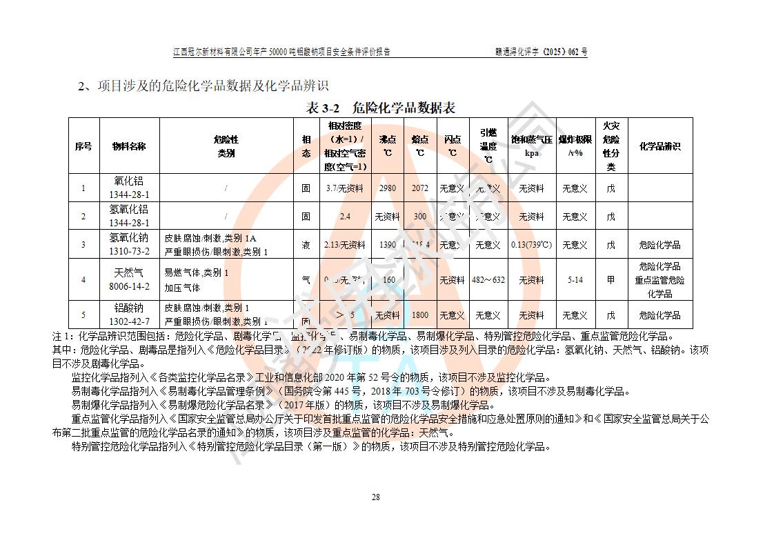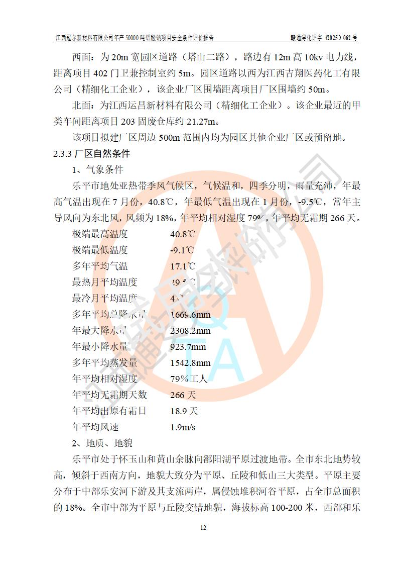 江西冠爾新材料有限公司是一家于2005年6月注冊成立的其他有限責(zé)任公司(前身為江西省江樂精細化工有限公司,因破產(chǎn)重組于2025年5月更名為江西冠爾新材料有限公司),注冊地址位于江西省景德鎮(zhèn)市樂平市樂安江工業(yè)園塔山工業(yè)區(qū),法人**高飛,注冊資本416萬元。 該企業(yè)原有的2,4,5-三氨基-6羥基嘧啶硫酸鹽(300t/a)、甲醇(450t/a)生產(chǎn)裝置已停止生產(chǎn)。為滿足市場需求,企業(yè)擬投資11000萬元新建年產(chǎn)50000噸鋁酸鈉項目,該項目占地9030.37㎡(合約13.54畝)。項目投產(chǎn)后擬年產(chǎn)固體鋁酸鈉16000噸,鋁酸鈉溶液34000噸,總計產(chǎn)能為50000噸。 |
