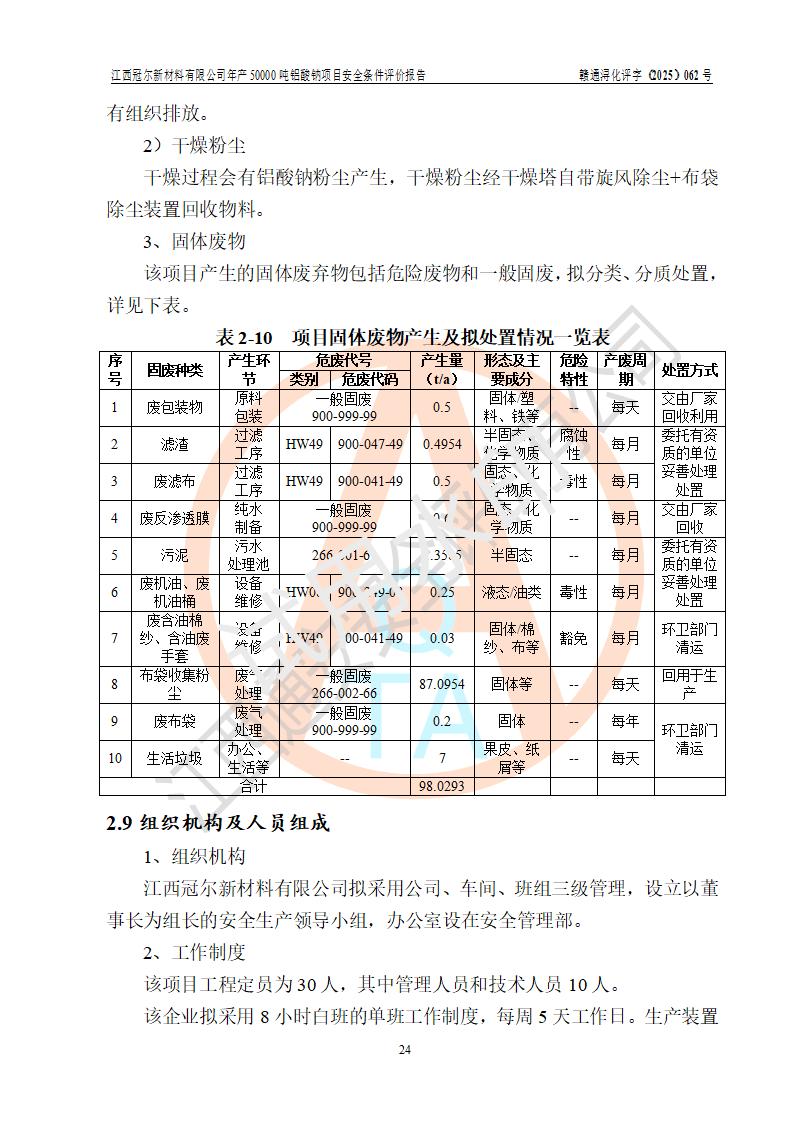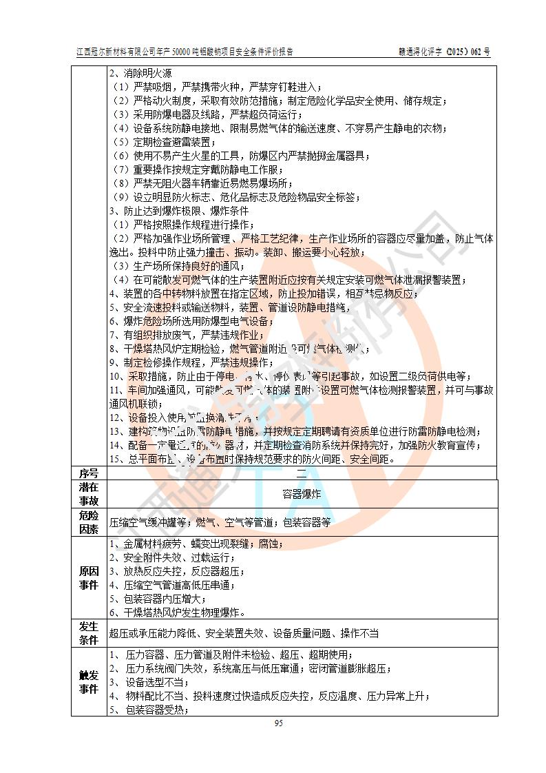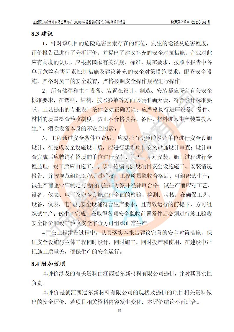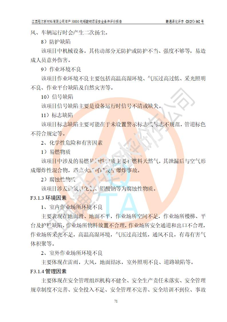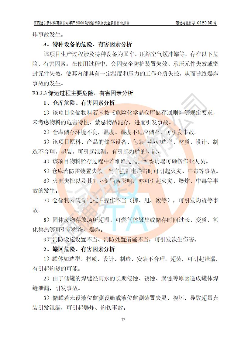 江西冠爾新材料有限公司是一家于2005年6月注冊成立的其他有限責(zé)任公司(前身為江西省江樂精細化工有限公司,因破產(chǎn)重組于2025年5月更名為江西冠爾新材料有限公司),注冊地址位于江西省景德鎮(zhèn)市樂平市樂安江工業(yè)園塔山工業(yè)區(qū),法人**高飛,注冊資本416萬元。 該企業(yè)原有的2,4,5-三氨基-6羥基嘧啶硫酸鹽(300t/a)、甲醇(450t/a)生產(chǎn)裝置已停止生產(chǎn)。為滿足市場需求,企業(yè)擬投資11000萬元新建年產(chǎn)50000噸鋁酸鈉項目,該項目占地9030.37㎡(合約13.54畝)。項目投產(chǎn)后擬年產(chǎn)固體鋁酸鈉16000噸,鋁酸鈉溶液34000噸,總計產(chǎn)能為50000噸。 |