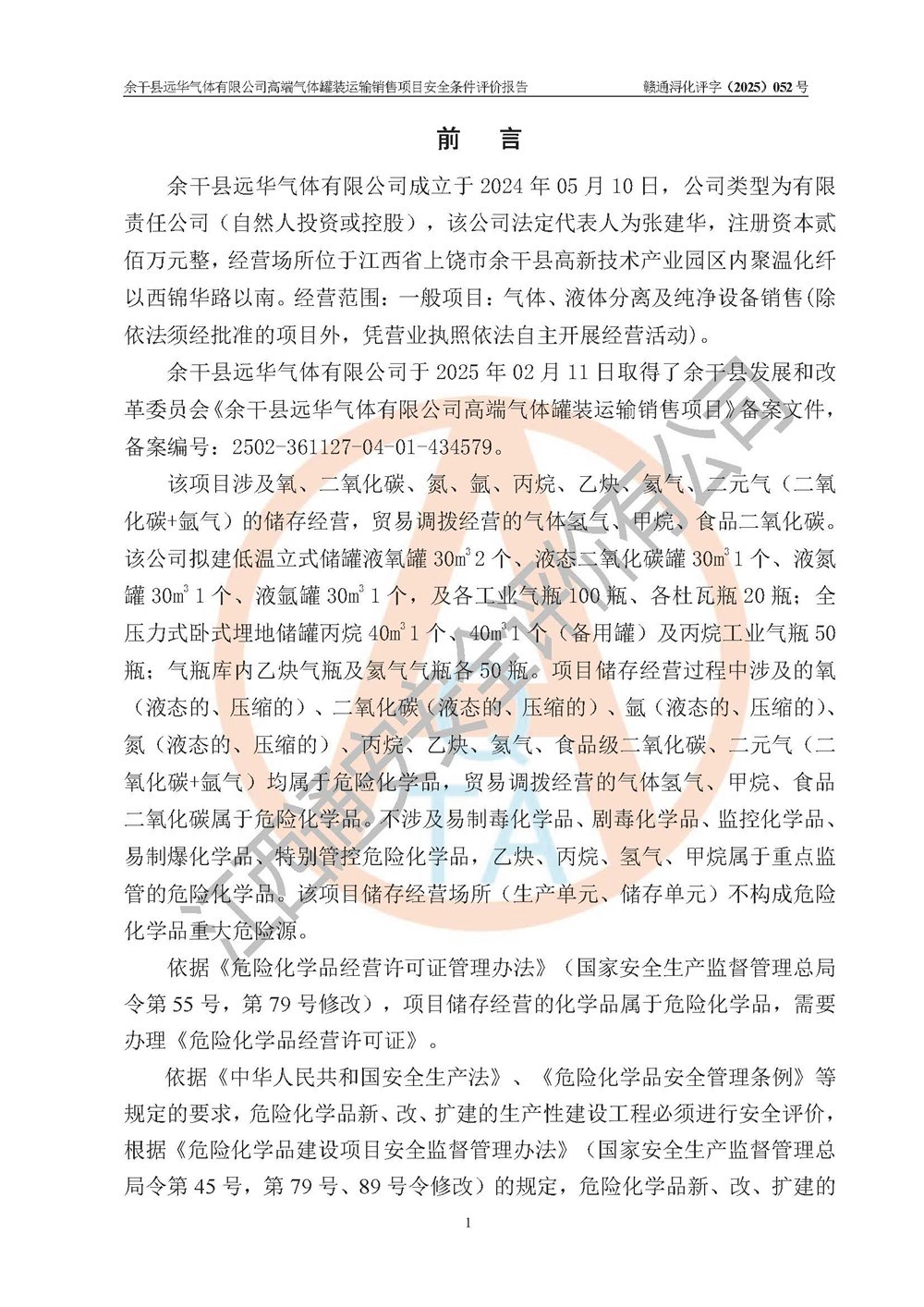 評(píng)價(jià)報(bào)告名稱 | 余干縣遠(yuǎn)華氣體有限公司高端氣體罐裝運(yùn)輸銷售項(xiàng)目安全條件評(píng)價(jià)報(bào)告 | ||||||
