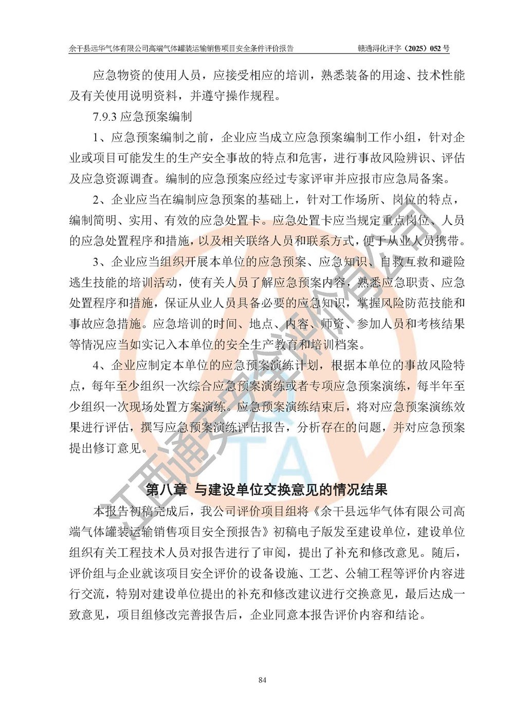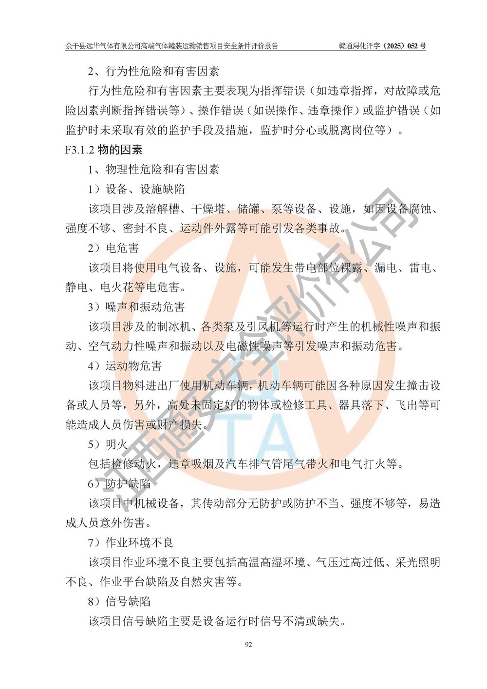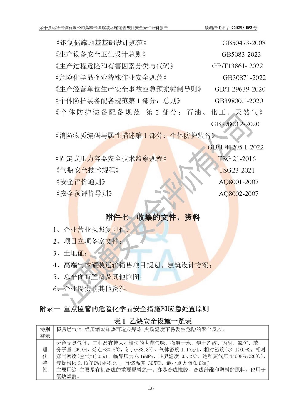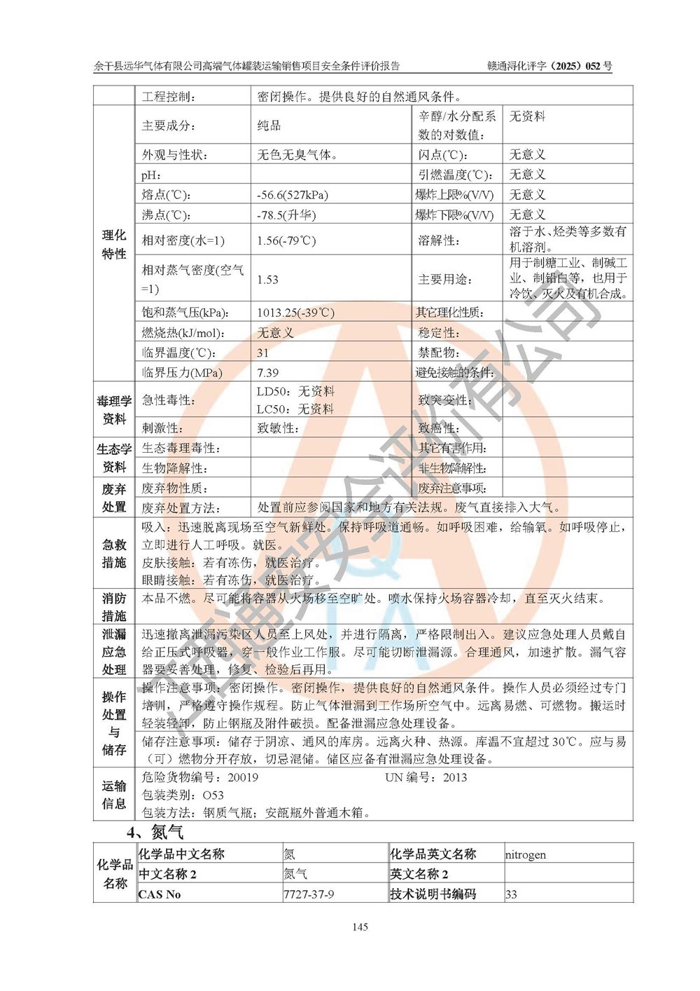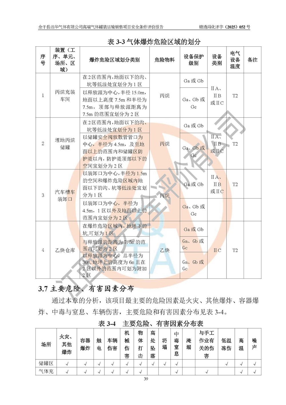 項(xiàng)目簡(jiǎn)介 | 余干縣遠(yuǎn)華氣體有限公司成立于2024年05月10日,公司類型為有限責(zé)任公司(自然人投資或控股),該公司法定**人為張建華,注冊(cè)資本貳佰萬元整,經(jīng)營(yíng)場(chǎng)所位于江西省上饒市余干縣****產(chǎn)業(yè)園區(qū)內(nèi)聚溫化纖以西錦華路以南。經(jīng)營(yíng)范圍:一般項(xiàng)目:氣體、液體分離及純凈設(shè)備銷售(除依法須經(jīng)批準(zhǔn)的項(xiàng)目外,憑營(yíng)業(yè)執(zhí)照依法自主開展經(jīng)營(yíng)活動(dòng))。 余干縣遠(yuǎn)華氣體有限公司于2025年02月11日取得了余干縣發(fā)展和改革委員會(huì)《余干縣遠(yuǎn)華氣體有限公司高端氣體罐裝運(yùn)輸銷售項(xiàng)目》備案文件,備案編號(hào):2502-361127-04-01-434579。 該項(xiàng)目涉及氧、二氧化碳、氮、氬、丙烷、乙炔、氦氣、二元?dú)猓ǘ趸?/span>+氬氣)的儲(chǔ)存經(jīng)營(yíng),貿(mào)易調(diào)撥經(jīng)營(yíng)的氣體氫氣、甲烷、食品二氧化碳。該公司擬建低溫立式儲(chǔ)罐液氧罐30m3 2個(gè)、液態(tài)二氧化碳罐30m3 1個(gè)、液氮罐30m3 1個(gè)、液氬罐30m3 1個(gè),及各工業(yè)氣瓶100瓶、各杜瓦瓶20瓶;全壓力式臥式埋地儲(chǔ)罐丙烷40m3 1個(gè)、40m3 1個(gè)(備用罐)及丙烷工業(yè)氣瓶50瓶;氣瓶庫(kù)內(nèi)乙炔氣瓶及氦氣氣瓶各50瓶。項(xiàng)目?jī)?chǔ)存經(jīng)營(yíng)過程中涉及的氧(液態(tài)的、壓縮的)、二氧化碳(液態(tài)的、壓縮的)、氬(液態(tài)的、壓縮的)、氮(液態(tài)的、壓縮的)、丙烷、乙炔、氦氣、食品級(jí)二氧化碳、二元?dú)猓ǘ趸?/span>+氬氣)均屬于危險(xiǎn)化學(xué)品,貿(mào)易調(diào)撥經(jīng)營(yíng)的氣體氫氣、甲烷、食品二氧化碳屬于危險(xiǎn)化學(xué)品。不涉及易制毒化學(xué)品、劇毒化學(xué)品、監(jiān)控化學(xué)品、易制爆化學(xué)品、特別管控危險(xiǎn)化學(xué)品,乙炔、丙烷、氫氣、甲烷屬于重點(diǎn)監(jiān)管的危險(xiǎn)化學(xué)品。該項(xiàng)目?jī)?chǔ)存經(jīng)營(yíng)場(chǎng)所(生產(chǎn)單元、儲(chǔ)存單元)不構(gòu)成危險(xiǎn)化學(xué)品重大危險(xiǎn)源。 依據(jù)《危險(xiǎn)化學(xué)品經(jīng)營(yíng)許可證管理辦法》(**安全生產(chǎn)監(jiān)督管理總局令第55號(hào),第79號(hào)修改),項(xiàng)目?jī)?chǔ)存經(jīng)營(yíng)的化學(xué)品屬于危險(xiǎn)化學(xué)品,需要辦理《危險(xiǎn)化學(xué)品經(jīng)營(yíng)許可證》。 依據(jù)《中華人民共和國(guó)安全生產(chǎn)法》、《危險(xiǎn)化學(xué)品安全管理?xiàng)l例》等規(guī)定的要求,危險(xiǎn)化學(xué)品新、改、擴(kuò)建的生產(chǎn)性建設(shè)工程**進(jìn)行安全評(píng)價(jià),根據(jù)《危險(xiǎn)化學(xué)品建設(shè)項(xiàng)目安全監(jiān)督管理辦法》(**安全生產(chǎn)監(jiān)督管理總局令第45號(hào),第79號(hào)、89號(hào)令修改)的規(guī)定,危險(xiǎn)化學(xué)品新、改、擴(kuò)建的生產(chǎn)性建設(shè)工程**進(jìn)行建設(shè)項(xiàng)目安全條件評(píng)價(jià),以使工程項(xiàng)目的設(shè)立滿足安全生產(chǎn)條件,項(xiàng)目的安全設(shè)施與主體工程同時(shí)設(shè)計(jì)、同時(shí)施工、同時(shí)投入使用,項(xiàng)目在安全生產(chǎn)及安全管理方面符合**及行業(yè)有關(guān)法律法規(guī)及標(biāo)準(zhǔn)。因此余干縣遠(yuǎn)華氣體有限公司委托江西通安安全評(píng)價(jià)有限公司承擔(dān)該項(xiàng)目的安全條件評(píng)價(jià)。 江西通安安全評(píng)價(jià)有限公司接受委托后,參照現(xiàn)行的法律、法規(guī)和標(biāo)準(zhǔn),按照《安全評(píng)價(jià)通則》、《安全預(yù)評(píng)價(jià)導(dǎo)則》、江西省應(yīng)急管理廳關(guān)于印發(fā)《江西省危險(xiǎn)化學(xué)品建設(shè)項(xiàng)目安全監(jiān)督管理實(shí)施細(xì)則》(試行)的通知等規(guī)范規(guī)定的要求,成立評(píng)價(jià)組。評(píng)價(jià)組完成風(fēng)險(xiǎn)分析、資料收集、現(xiàn)場(chǎng)勘查和類比調(diào)查等前期準(zhǔn)備工作,并制定評(píng)價(jià)實(shí)施計(jì)劃。評(píng)價(jià)組在前期準(zhǔn)備工作的基礎(chǔ)上,根據(jù)企業(yè)提供的資料,分析了該項(xiàng)目中可能存在的主要危險(xiǎn)、有害因素,在危險(xiǎn)、有害因素分析基礎(chǔ)上,根據(jù)該項(xiàng)目的生產(chǎn)工藝、功能區(qū)域特點(diǎn),劃分了評(píng)價(jià)單元,并針對(duì)劃分的評(píng)價(jià)單元選擇了相應(yīng)的安全評(píng)價(jià)方法進(jìn)行了逐項(xiàng)分析、評(píng)價(jià),提出了相應(yīng)的預(yù)防和控制對(duì)策措施。 本報(bào)告可作為余干縣遠(yuǎn)華氣體有限公司高端氣體罐裝運(yùn)輸銷售項(xiàng)目安全生產(chǎn)技術(shù)、安全生產(chǎn)管理決策及辦理相關(guān)安全生產(chǎn)行政許可事項(xiàng)的技術(shù)依據(jù)。 本次安全評(píng)價(jià)范圍:余干縣遠(yuǎn)華氣體有限公司高端氣體罐裝運(yùn)輸銷售項(xiàng)目,主要包括: (1)選址、周邊環(huán)境、總平面布置及建、建構(gòu)筑物(主要包括罐區(qū)、氣體灌裝間、氣瓶庫(kù)、杜瓦瓶充裝棚、變配電室、制冰車間、研發(fā)中心); (2)項(xiàng)目的生產(chǎn)工藝及裝置;相關(guān)的公用工程、輔助工程設(shè)施(配電房、消防泵房、消防水池/事
