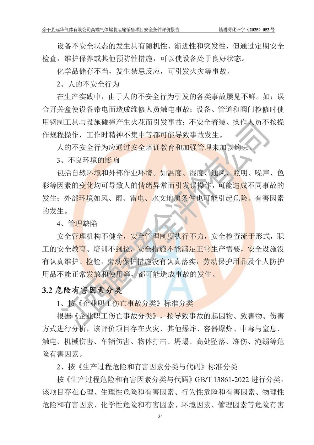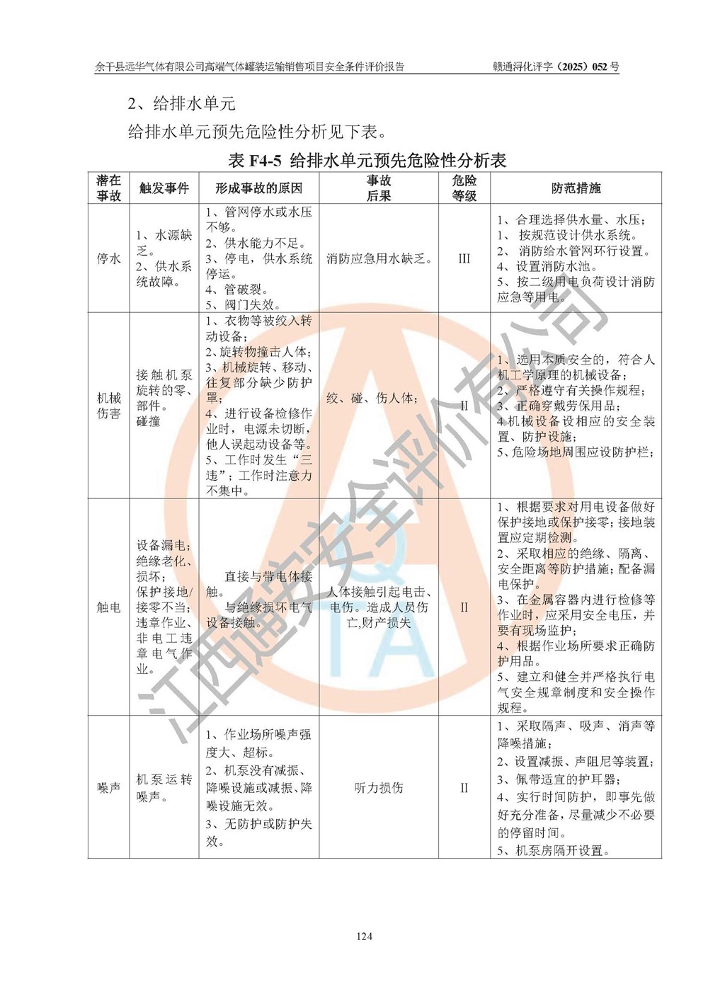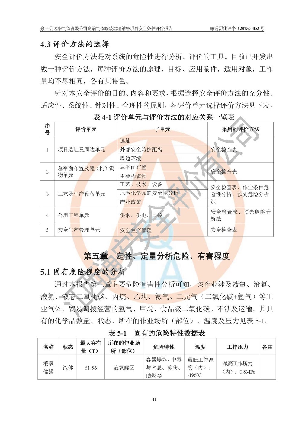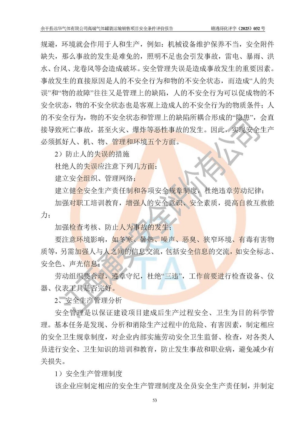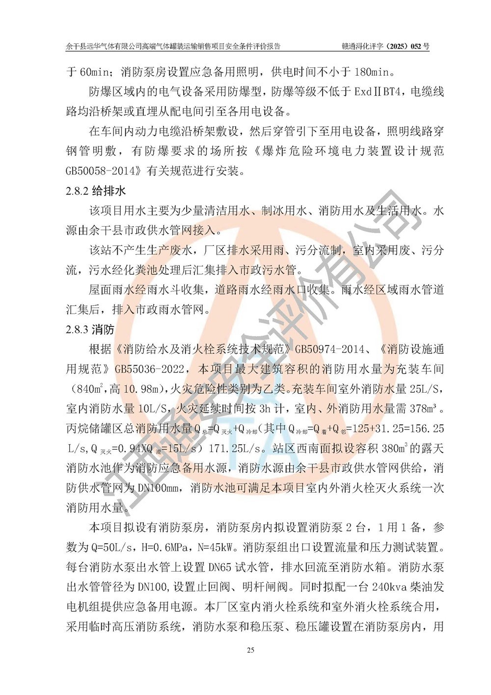 項(xiàng)目簡(jiǎn)介 | 余干縣遠(yuǎn)華氣體有限公司成立于2024年05月10日,公司類型為有限責(zé)任公司(自然人投資或控股),該公司法定**人為張建華,注冊(cè)資本貳佰萬元整,經(jīng)營(yíng)場(chǎng)所位于江西省上饒市余干縣****產(chǎn)業(yè)園區(qū)內(nèi)聚溫化纖以西錦華路以南。經(jīng)營(yíng)范圍:一般項(xiàng)目:氣體、液體分離及純凈設(shè)備銷售(除依法須經(jīng)批準(zhǔn)的項(xiàng)目外,憑營(yíng)業(yè)執(zhí)照依法自主開展經(jīng)營(yíng)活動(dòng))。 余干縣遠(yuǎn)華氣體有限公司于2025年02月11日取得了余干縣發(fā)展和改革委員會(huì)《余干縣遠(yuǎn)華氣體有限公司高端氣體罐裝運(yùn)輸銷售項(xiàng)目》備案文件,備案編號(hào):2502-361127-04-01-434579。 該項(xiàng)目涉及氧、二氧化碳、氮、氬、丙烷、乙炔、氦氣、二元?dú)猓ǘ趸?/span>+氬氣)的儲(chǔ)存經(jīng)營(yíng),貿(mào)易調(diào)撥經(jīng)營(yíng)的氣體氫氣、甲烷、食品二氧化碳。該公司擬建低溫立式儲(chǔ)罐液氧罐30m3 2個(gè)、液態(tài)二氧化碳罐30m3 1個(gè)、液氮罐30m3 1個(gè)、液氬罐30m3 1個(gè),及各工業(yè)氣瓶100瓶、各杜瓦瓶20瓶;全壓力式臥式埋地儲(chǔ)罐丙烷40m3 1個(gè)、40m3 1個(gè)(備用罐)及丙烷工業(yè)氣瓶50瓶;氣瓶庫(kù)內(nèi)乙炔氣瓶及氦氣氣瓶各50瓶。項(xiàng)目?jī)?chǔ)存經(jīng)營(yíng)過程中涉及的氧(液態(tài)的、壓縮的)、二氧化碳(液態(tài)的、壓縮的)、氬(液態(tài)的、壓縮的)、氮(液態(tài)的、壓縮的)、丙烷、乙炔、氦氣、食品級(jí)二氧化碳、二元?dú)猓ǘ趸?/span>+氬氣)均屬于危險(xiǎn)化學(xué)品,貿(mào)易調(diào)撥經(jīng)營(yíng)的氣體氫氣、甲烷、食品二氧化碳屬于危險(xiǎn)化學(xué)品。不涉及易制毒化學(xué)品、劇毒化學(xué)品、監(jiān)控化學(xué)品、易制爆化學(xué)品、特別管控危險(xiǎn)化學(xué)品,乙炔、丙烷、氫氣、甲烷屬于重點(diǎn)監(jiān)管的危險(xiǎn)化學(xué)品。該項(xiàng)目?jī)?chǔ)存經(jīng)營(yíng)場(chǎng)所(生產(chǎn)單元、儲(chǔ)存單元)不構(gòu)成危險(xiǎn)化學(xué)品重大危險(xiǎn)源。 依據(jù)《危險(xiǎn)化學(xué)品經(jīng)營(yíng)許可證管理辦法》(**安全生產(chǎn)監(jiān)督管理總局令第55號(hào),第79號(hào)修改),項(xiàng)目?jī)?chǔ)存經(jīng)營(yíng)的化學(xué)品屬于危險(xiǎn)化學(xué)品,需要辦理《危險(xiǎn)化學(xué)品經(jīng)營(yíng)許可證》。 依據(jù)《中華人民共和國(guó)安全生產(chǎn)法》、《危險(xiǎn)化學(xué)品安全管理?xiàng)l例》等規(guī)定的要求,危險(xiǎn)化學(xué)品新、改、擴(kuò)建的生產(chǎn)性建設(shè)工程**進(jìn)行安全評(píng)價(jià),根據(jù)《危險(xiǎn)化學(xué)品建設(shè)項(xiàng)目安全監(jiān)督管理辦法》(**安全生產(chǎn)監(jiān)督管理總局令第45號(hào),第79號(hào)、89號(hào)令修改)的規(guī)定,危險(xiǎn)化學(xué)品新、改、擴(kuò)建的生產(chǎn)性建設(shè)工程**進(jìn)行建設(shè)項(xiàng)目安全條件評(píng)價(jià),以使工程項(xiàng)目的設(shè)立滿足安全生產(chǎn)條件,項(xiàng)目的安全設(shè)施與主體工程同時(shí)設(shè)計(jì)、同時(shí)施工、同時(shí)投入使用,項(xiàng)目在安全生產(chǎn)及安全管理方面符合**及行業(yè)有關(guān)法律法規(guī)及標(biāo)準(zhǔn)。因此余干縣遠(yuǎn)華氣體有限公司委托江西通安安全評(píng)價(jià)有限公司承擔(dān)該項(xiàng)目的安全條件評(píng)價(jià)。 江西通安安全評(píng)價(jià)有限公司接受委托后,參照現(xiàn)行的法律、法規(guī)和標(biāo)準(zhǔn),按照《安全評(píng)價(jià)通則》、《安全預(yù)評(píng)價(jià)導(dǎo)則》、江西省應(yīng)急管理廳關(guān)于印發(fā)《江西省危險(xiǎn)化學(xué)品建設(shè)項(xiàng)目安全監(jiān)督管理實(shí)施細(xì)則》(試行)的通知等規(guī)范規(guī)定的要求,成立評(píng)價(jià)組。評(píng)價(jià)組完成風(fēng)險(xiǎn)分析、資料收集、現(xiàn)場(chǎng)勘查和類比調(diào)查等前期準(zhǔn)備工作,并制定評(píng)價(jià)實(shí)施計(jì)劃。評(píng)價(jià)組在前期準(zhǔn)備工作的基礎(chǔ)上,根據(jù)企業(yè)提供的資料,分析了該項(xiàng)目中可能存在的主要危險(xiǎn)、有害因素,在危險(xiǎn)、有害因素分析基礎(chǔ)上,根據(jù)該項(xiàng)目的生產(chǎn)工藝、功能區(qū)域特點(diǎn),劃分了評(píng)價(jià)單元,并針對(duì)劃分的評(píng)價(jià)單元選擇了相應(yīng)的安全評(píng)價(jià)方法進(jìn)行了逐項(xiàng)分析、評(píng)價(jià),提出了相應(yīng)的預(yù)防和控制對(duì)策措施。 本報(bào)告可作為余干縣遠(yuǎn)華氣體有限公司高端氣體罐裝運(yùn)輸銷售項(xiàng)目安全生產(chǎn)技術(shù)、安全生產(chǎn)管理決策及辦理相關(guān)安全生產(chǎn)行政許可事項(xiàng)的技術(shù)依據(jù)。 本次安全評(píng)價(jià)范圍:余干縣遠(yuǎn)華氣體有限公司高端氣體罐裝運(yùn)輸銷售項(xiàng)目,主要包括: (1)選址、周邊環(huán)境、總平面布置及建、建構(gòu)筑物(主要包括罐區(qū)、氣體灌裝間、氣瓶庫(kù)、杜瓦瓶充裝棚、變配電室、制冰車間、研發(fā)中心); (2)項(xiàng)目的生產(chǎn)工藝及裝置;相關(guān)的公用工程、輔助工程設(shè)施(配電房、消防泵房、消防水池/事