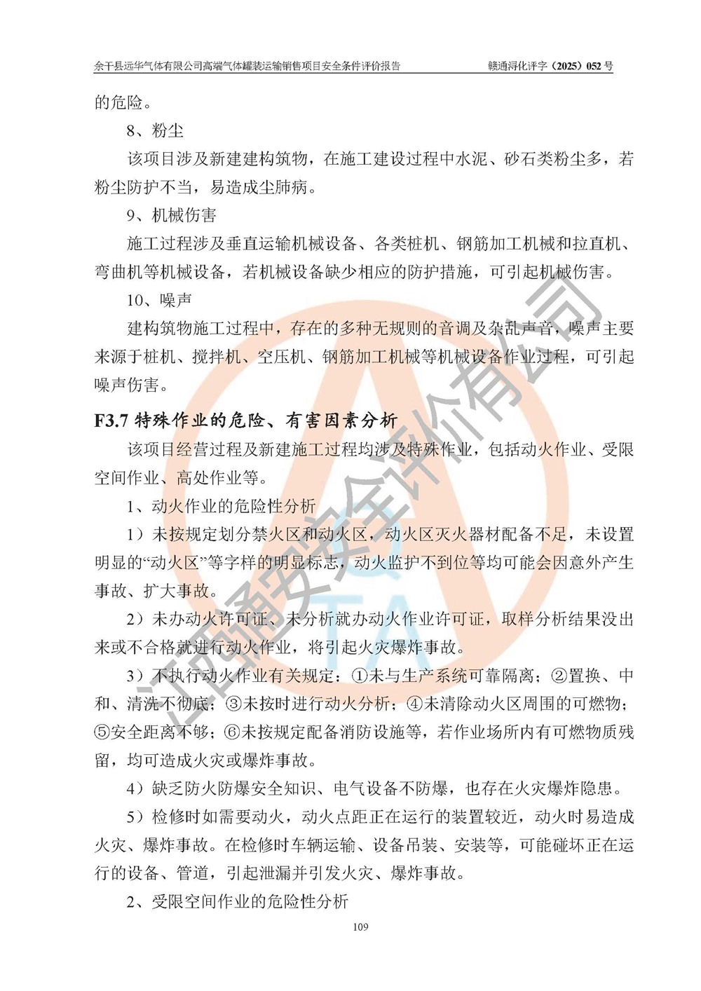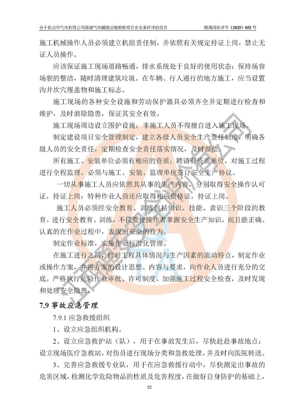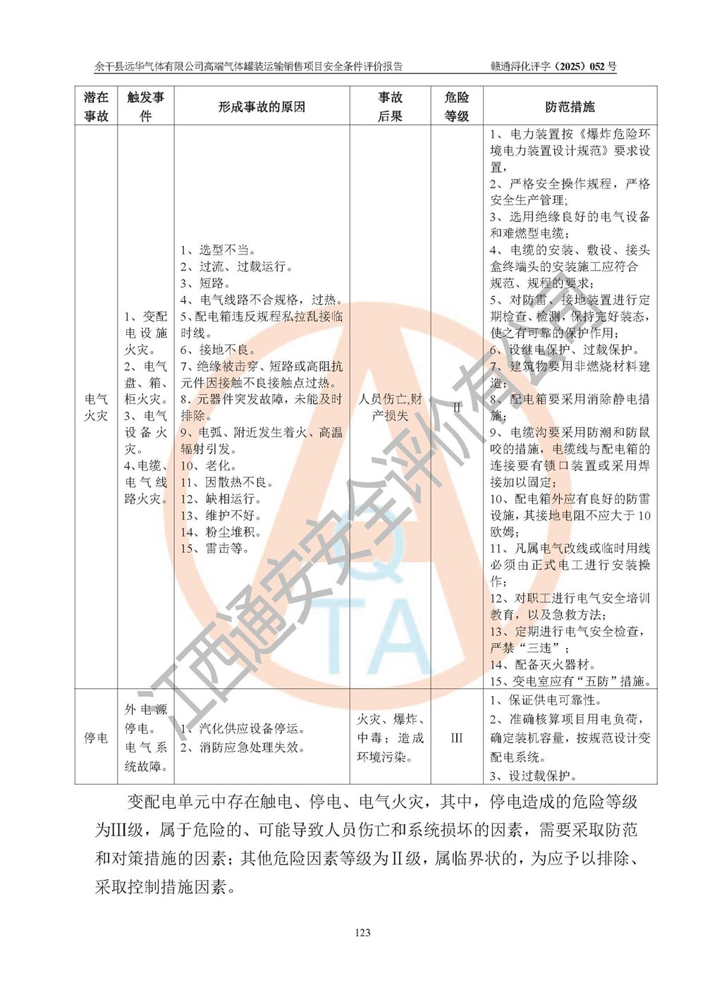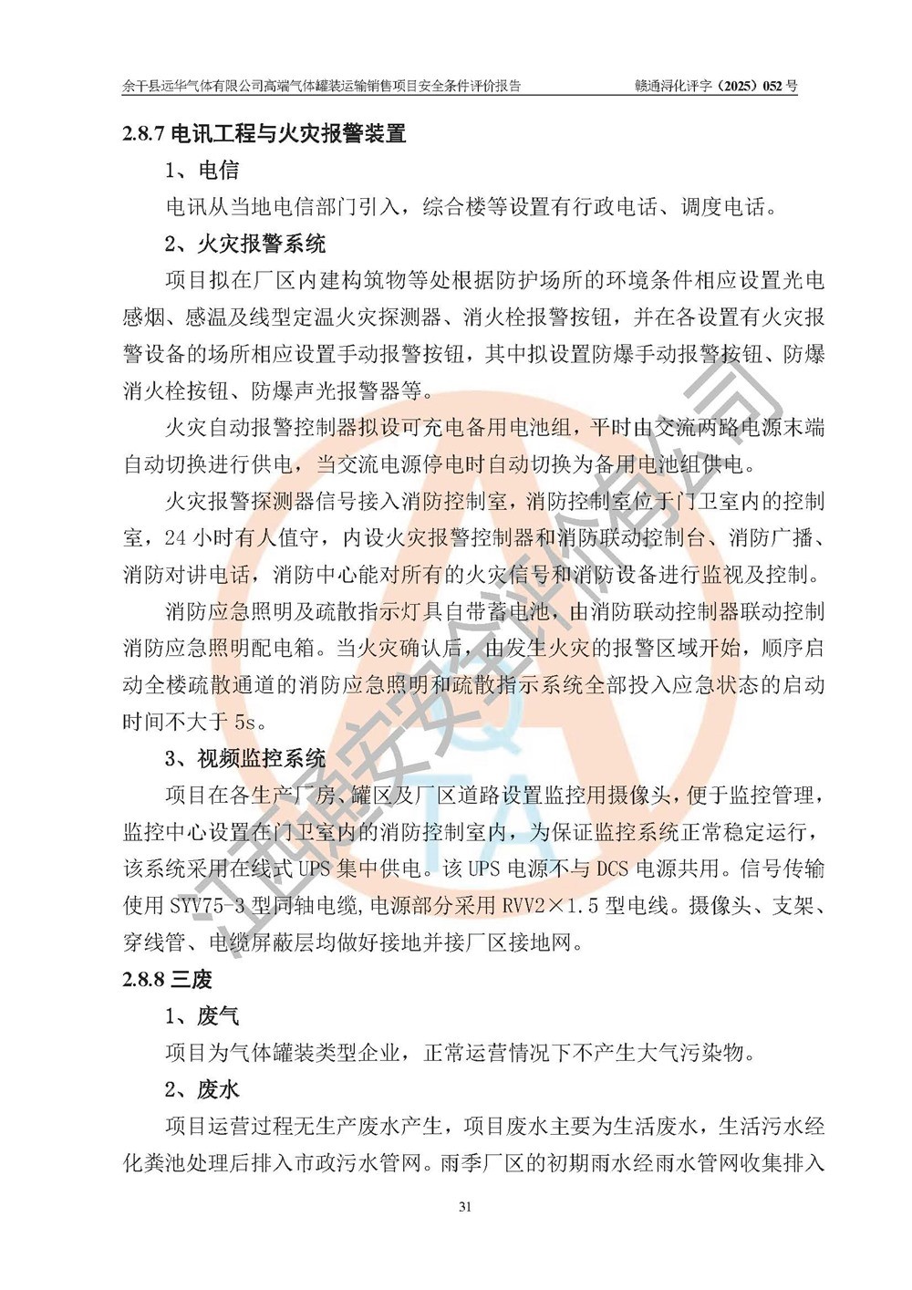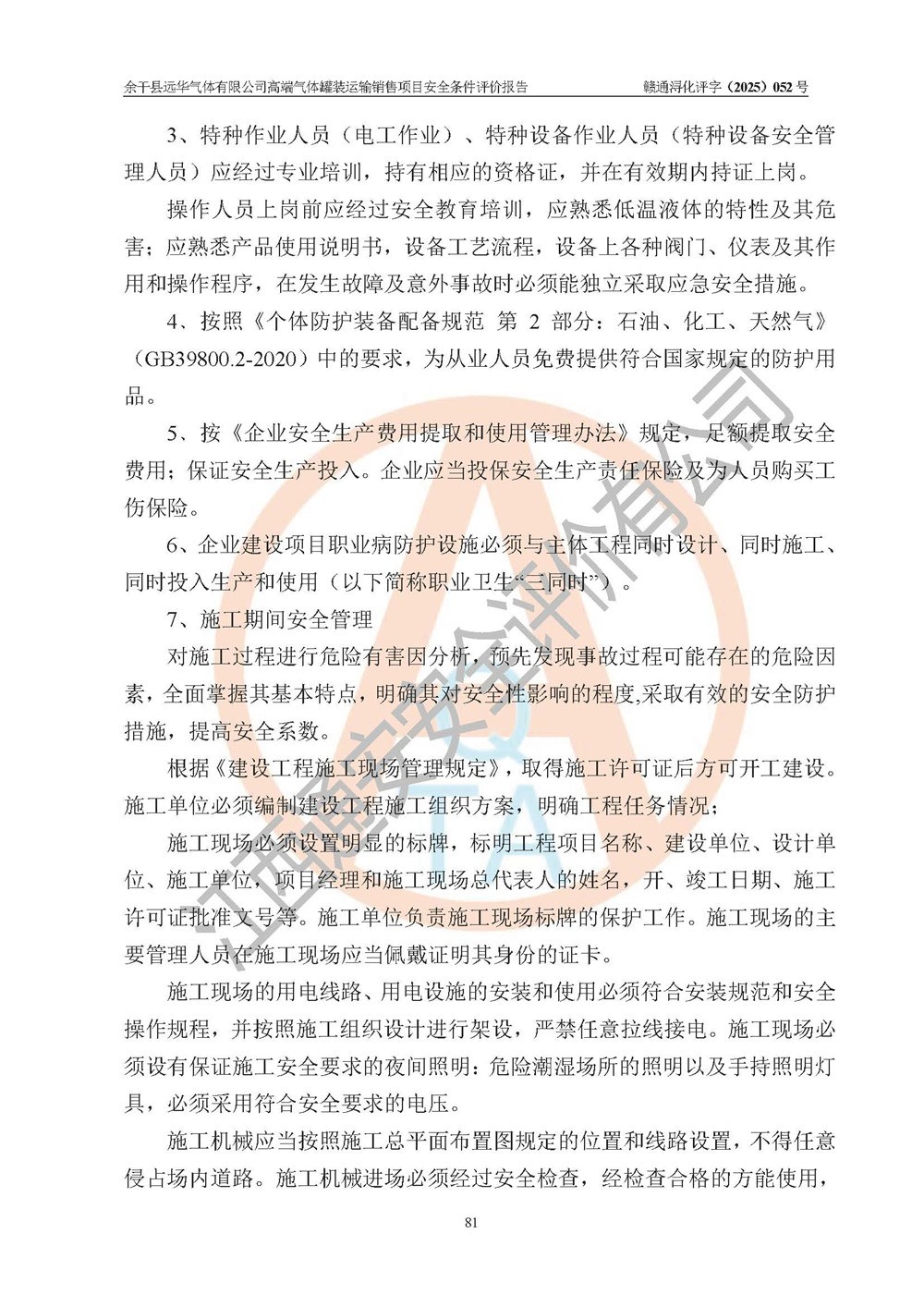 項(xiàng)目簡(jiǎn)介 | 余干縣遠(yuǎn)華氣體有限公司成立于2024年05月10日,公司類型為有限責(zé)任公司(自然人投資或控股),該公司法定**人為張建華,注冊(cè)資本貳佰萬元整,經(jīng)營(yíng)場(chǎng)所位于江西省上饒市余干縣****產(chǎn)業(yè)園區(qū)內(nèi)聚溫化纖以西錦華路以南。經(jīng)營(yíng)范圍:一般項(xiàng)目:氣體、液體分離及純凈設(shè)備銷售(除依法須經(jīng)批準(zhǔn)的項(xiàng)目外,憑營(yíng)業(yè)執(zhí)照依法自主開展經(jīng)營(yíng)活動(dòng))。 余干縣遠(yuǎn)華氣體有限公司于2025年02月11日取得了余干縣發(fā)展和改革委員會(huì)《余干縣遠(yuǎn)華氣體有限公司高端氣體罐裝運(yùn)輸銷售項(xiàng)目》備案文件,備案編號(hào):2502-361127-04-01-434579。 該項(xiàng)目涉及氧、二氧化碳、氮、氬、丙烷、乙炔、氦氣、二元?dú)猓ǘ趸?/span>+氬氣)的儲(chǔ)存經(jīng)營(yíng),貿(mào)易調(diào)撥經(jīng)營(yíng)的氣體氫氣、甲烷、食品二氧化碳。該公司擬建低溫立式儲(chǔ)罐液氧罐30m3 2個(gè)、液態(tài)二氧化碳罐30m3 1個(gè)、液氮罐30m3 1個(gè)、液氬罐30m3 1個(gè),及各工業(yè)氣瓶100瓶、各杜瓦瓶20瓶;全壓力式臥式埋地儲(chǔ)罐丙烷40m3 1個(gè)、40m3 1個(gè)(備用罐)及丙烷工業(yè)氣瓶50瓶;氣瓶庫(kù)內(nèi)乙炔氣瓶及氦氣氣瓶各50瓶。項(xiàng)目?jī)?chǔ)存經(jīng)營(yíng)過程中涉及的氧(液態(tài)的、壓縮的)、二氧化碳(液態(tài)的、壓縮的)、氬(液態(tài)的、壓縮的)、氮(液態(tài)的、壓縮的)、丙烷、乙炔、氦氣、食品級(jí)二氧化碳、二元?dú)猓ǘ趸?/span>+氬氣)均屬于危險(xiǎn)化學(xué)品,貿(mào)易調(diào)撥經(jīng)營(yíng)的氣體氫氣、甲烷、食品二氧化碳屬于危險(xiǎn)化學(xué)品。不涉及易制毒化學(xué)品、劇毒化學(xué)品、監(jiān)控化學(xué)品、易制爆化學(xué)品、特別管控危險(xiǎn)化學(xué)品,乙炔、丙烷、氫氣、甲烷屬于重點(diǎn)監(jiān)管的危險(xiǎn)化學(xué)品。該項(xiàng)目?jī)?chǔ)存經(jīng)營(yíng)場(chǎng)所(生產(chǎn)單元、儲(chǔ)存單元)不構(gòu)成危險(xiǎn)化學(xué)品重大危險(xiǎn)源。 依據(jù)《危險(xiǎn)化學(xué)品經(jīng)營(yíng)許可證管理辦法》(**安全生產(chǎn)監(jiān)督管理總局令第55號(hào),第79號(hào)修改),項(xiàng)目?jī)?chǔ)存經(jīng)營(yíng)的化學(xué)品屬于危險(xiǎn)化學(xué)品,需要辦理《危險(xiǎn)化學(xué)品經(jīng)營(yíng)許可證》。 依據(jù)《中華人民共和國(guó)安全生產(chǎn)法》、《危險(xiǎn)化學(xué)品安全管理?xiàng)l例》等規(guī)定的要求,危險(xiǎn)化學(xué)品新、改、擴(kuò)建的生產(chǎn)性建設(shè)工程**進(jìn)行安全評(píng)價(jià),根據(jù)《危險(xiǎn)化學(xué)品建設(shè)項(xiàng)目安全監(jiān)督管理辦法》(**安全生產(chǎn)監(jiān)督管理總局令第45號(hào),第79號(hào)、89號(hào)令修改)的規(guī)定,危險(xiǎn)化學(xué)品新、改、擴(kuò)建的生產(chǎn)性建設(shè)工程**進(jìn)行建設(shè)項(xiàng)目安全條件評(píng)價(jià),以使工程項(xiàng)目的設(shè)立滿足安全生產(chǎn)條件,項(xiàng)目的安全設(shè)施與主體工程同時(shí)設(shè)計(jì)、同時(shí)施工、同時(shí)投入使用,項(xiàng)目在安全生產(chǎn)及安全管理方面符合**及行業(yè)有關(guān)法律法規(guī)及標(biāo)準(zhǔn)。因此余干縣遠(yuǎn)華氣體有限公司委托江西通安安全評(píng)價(jià)有限公司承擔(dān)該項(xiàng)目的安全條件評(píng)價(jià)。 江西通安安全評(píng)價(jià)有限公司接受委托后,參照現(xiàn)行的法律、法規(guī)和標(biāo)準(zhǔn),按照《安全評(píng)價(jià)通則》、《安全預(yù)評(píng)價(jià)導(dǎo)則》、江西省應(yīng)急管理廳關(guān)于印發(fā)《江西省危險(xiǎn)化學(xué)品建設(shè)項(xiàng)目安全監(jiān)督管理實(shí)施細(xì)則》(試行)的通知等規(guī)范規(guī)定的要求,成立評(píng)價(jià)組。評(píng)價(jià)組完成風(fēng)險(xiǎn)分析、資料收集、現(xiàn)場(chǎng)勘查和類比調(diào)查等前期準(zhǔn)備工作,并制定評(píng)價(jià)實(shí)施計(jì)劃。評(píng)價(jià)組在前期準(zhǔn)備工作的基礎(chǔ)上,根據(jù)企業(yè)提供的資料,分析了該項(xiàng)目中可能存在的主要危險(xiǎn)、有害因素,在危險(xiǎn)、有害因素分析基礎(chǔ)上,根據(jù)該項(xiàng)目的生產(chǎn)工藝、功能區(qū)域特點(diǎn),劃分了評(píng)價(jià)單元,并針對(duì)劃分的評(píng)價(jià)單元選擇了相應(yīng)的安全評(píng)價(jià)方法進(jìn)行了逐項(xiàng)分析、評(píng)價(jià),提出了相應(yīng)的預(yù)防和控制對(duì)策措施。 本報(bào)告可作為余干縣遠(yuǎn)華氣體有限公司高端氣體罐裝運(yùn)輸銷售項(xiàng)目安全生產(chǎn)技術(shù)、安全生產(chǎn)管理決策及辦理相關(guān)安全生產(chǎn)行政許可事項(xiàng)的技術(shù)依據(jù)。 本次安全評(píng)價(jià)范圍:余干縣遠(yuǎn)華氣體有限公司高端氣體罐裝運(yùn)輸銷售項(xiàng)目,主要包括: (1)選址、周邊環(huán)境、總平面布置及建、建構(gòu)筑物(主要包括罐區(qū)、氣體灌裝間、氣瓶庫(kù)、杜瓦瓶充裝棚、變配電室、制冰車間、研發(fā)中心); (2)項(xiàng)目的生產(chǎn)工藝及裝置;相關(guān)的公用工程、輔助工程設(shè)施(配電房、消防泵房、消防水池/事