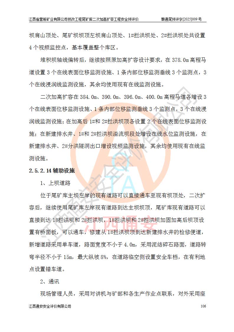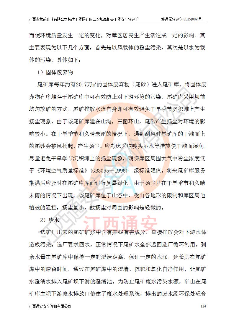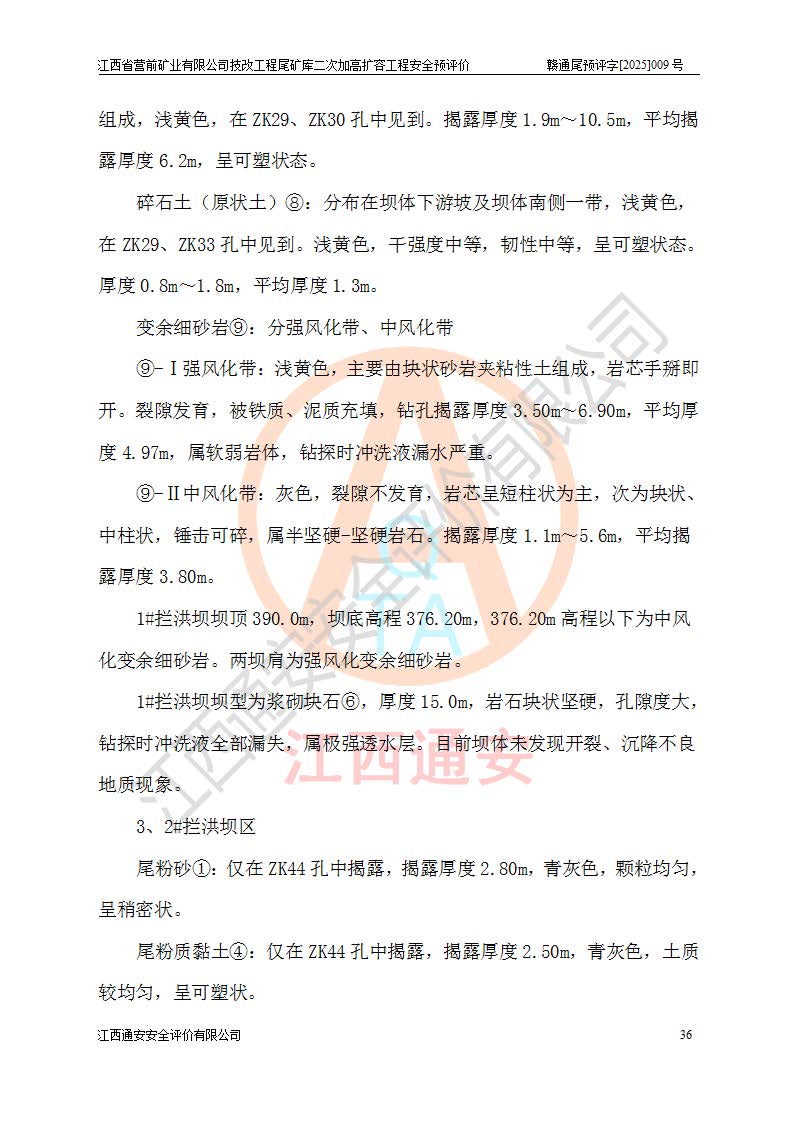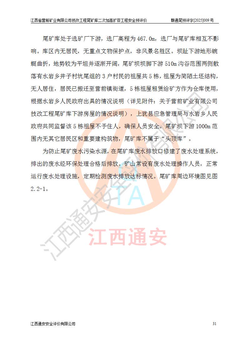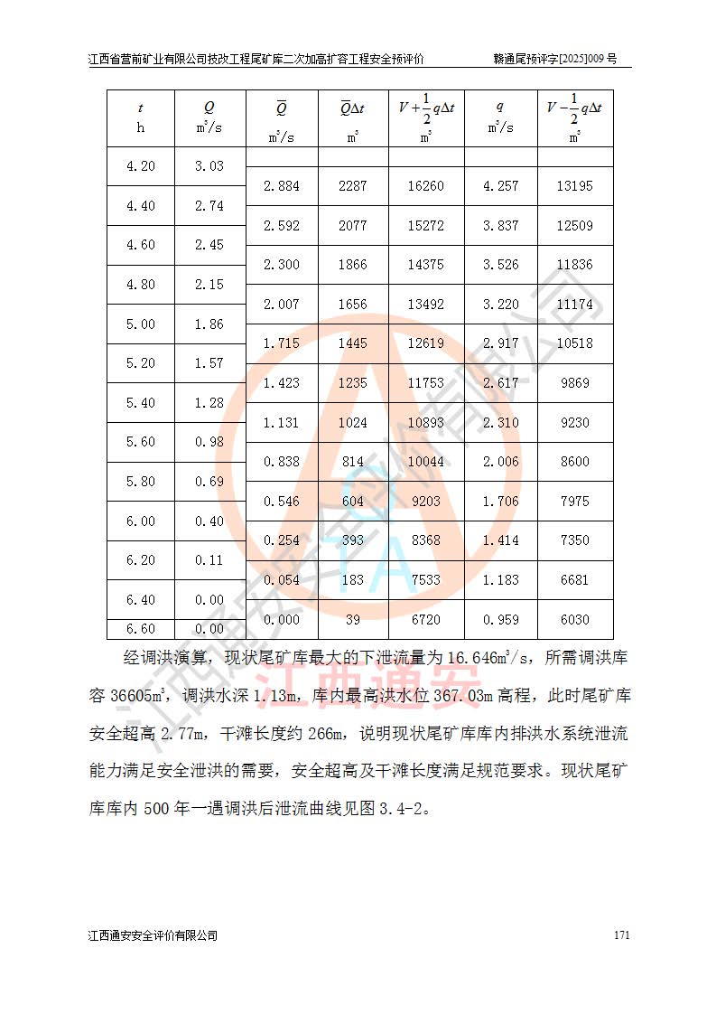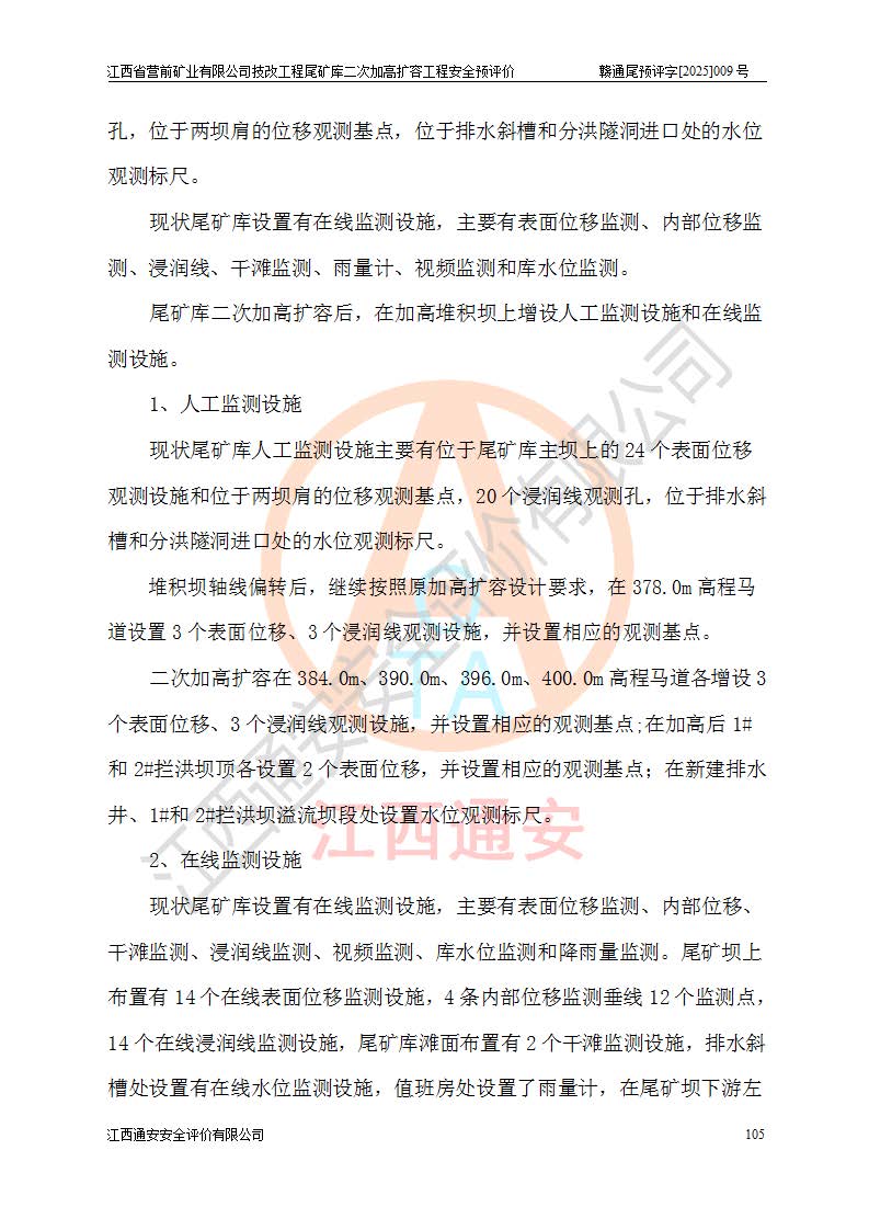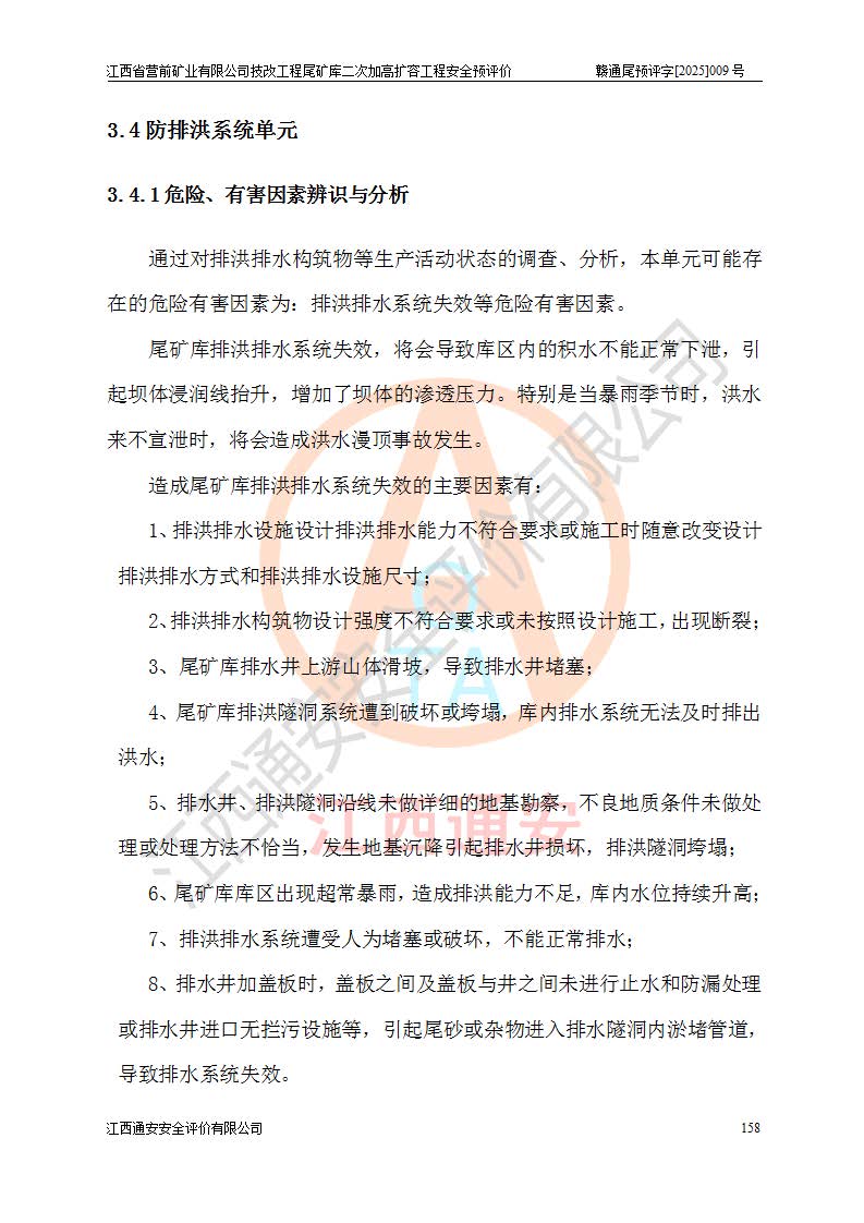 江西省營前礦業(yè)有限公司于2003年12月16日成立,位于贛州市上猶縣營前鎮(zhèn)焦里村境內(nèi),公司注冊資本10000萬元,法定**人陳雅博,礦區(qū)地理坐標(biāo):東經(jīng)114°18′30″~114°19′00″,北緯25°52′35″~25°53′47″。公司經(jīng)營范圍包括:鉛礦、鋅、鎢、銀地下開采、銷售。 江西省營前礦業(yè)有限公司技改工程尾礦庫位于焦里鎢銀鉛鋅礦區(qū),處于上猶縣水巖鄉(xiāng)井子村坑尾自然村境內(nèi),為山谷型尾礦庫。 江西省營前礦業(yè)有限公司技改工程尾礦庫于2013年由福建省冶金工業(yè)設(shè)計院設(shè)計,2014年8月開始施工建設(shè),2015年4月竣工開始試運(yùn)行,2015年11月完成竣工驗收,2016年1月首次取得安全生產(chǎn)許可證,2019年1月完成延期換證,2020年8月委托金建工程設(shè)計有限公司進(jìn)行尾礦庫加高擴(kuò)容工作,2020年10月21日取得了江西省應(yīng)急管理廳下發(fā)的《關(guān)于江西省營前礦業(yè)有限公司技改工程尾礦庫加高擴(kuò)容工程安全設(shè)施設(shè)計的審查意見》(贛應(yīng)急非煤項目設(shè)審〔2020〕46號),之后委托駐馬店市黃淮建設(shè)工程有限公司負(fù)責(zé)施工,云南潤滇工程技術(shù)有限公司負(fù)責(zé)監(jiān)理,2021年12月完成加高擴(kuò)容竣工驗收工作,經(jīng)過延期,現(xiàn)尾礦庫安全生產(chǎn)許可證編號(贛)FM安許證字[2016]M1692號,**期為2025年01月18日至2028年01月17日。 江西省營前礦業(yè)有限公司技改工程尾礦庫為山谷型尾礦庫,初期壩為透水堆石壩,壩頂高程為330.0m,初期壩高25.0m,后期采用上游式尾礦堆積壩,加高擴(kuò)容后*終壩頂高程為380.0m,堆積壩高50.0m,總壩高為75.0m,總庫容為為503.14×104m3,尾礦庫為三等庫。尾礦庫初期壩以上總匯水面積3.53km2,防洪標(biāo)準(zhǔn)取500年一遇。 目前尾礦庫由初期壩、堆積壩、庫內(nèi)排洪系統(tǒng)(雙格排水斜槽+連接井+排水涵洞+排洪隧洞+排水陡槽+消力池)、1#攔洪壩、1#分洪隧洞、2#攔洪壩、2#分洪隧洞和安全監(jiān)測設(shè)施組成。根據(jù)建設(shè)單位提供的尾礦庫平面布置圖,截至2024年12月,現(xiàn)狀尾礦庫堆積壩頂高程為372.2m,現(xiàn)狀總壩高67.2m,灘頂高程為369.8m,現(xiàn)狀全庫容387.51×104m3,現(xiàn)狀尾礦庫為三等庫,原加高擴(kuò)容設(shè)計*終堆積壩頂高程為380.0m,現(xiàn)剩余庫容115.63×104m3,剩余**庫容約92.5×104m3,剩余服務(wù)年限約4.5年;礦山現(xiàn)有儲量較大,剩余庫容及服務(wù)年限不滿足礦山后期生產(chǎn)需要。 技改工程尾礦庫尾礦壩下游1**范圍無居民,不存在工礦企業(yè)等建構(gòu)筑物,不屬于“頭頂庫”;尾礦庫不壓礦;距贛江直線距離60**;不涉及保護(hù)區(qū)及生態(tài)紅線;尾礦庫所在溝谷較長,谷底平均縱坡9%,上游周邊山體地形有利于尾礦庫二次加高擴(kuò)容工程的實(shí)施,因此為了增加尾礦庫庫容,延長服務(wù)年限,充分利用尾礦庫所在溝谷地形,江西省營前礦業(yè)有限公司對技改尾礦庫進(jìn)行二次加高擴(kuò)容。 2024年12月,江西省營前礦業(yè)有限公司委托地礦贛西地質(zhì)工程勘察院編制了《江西省營前礦業(yè)有限公司技改工程尾礦庫二次擴(kuò)容工程(水文)地質(zhì)勘察報告》,2025年4月,江西省營前礦業(yè)有限公司委托金建工程設(shè)計有限公司編制了《江西省營前礦業(yè)有限公司技改工程尾礦庫二次加高擴(kuò)容工程可行性研究報告》。 按照非煤礦山建設(shè)項目安全設(shè)施“三同時”的規(guī)定要求,技改工程尾礦庫為二次加高擴(kuò)容工程,**進(jìn)行安全預(yù)評價;江西省營前礦業(yè)有限公司委托我公司承擔(dān)技改工程尾礦庫二次加高擴(kuò)容工程建設(shè)項目的安全預(yù)評價工作。 |
