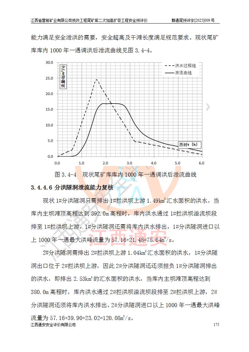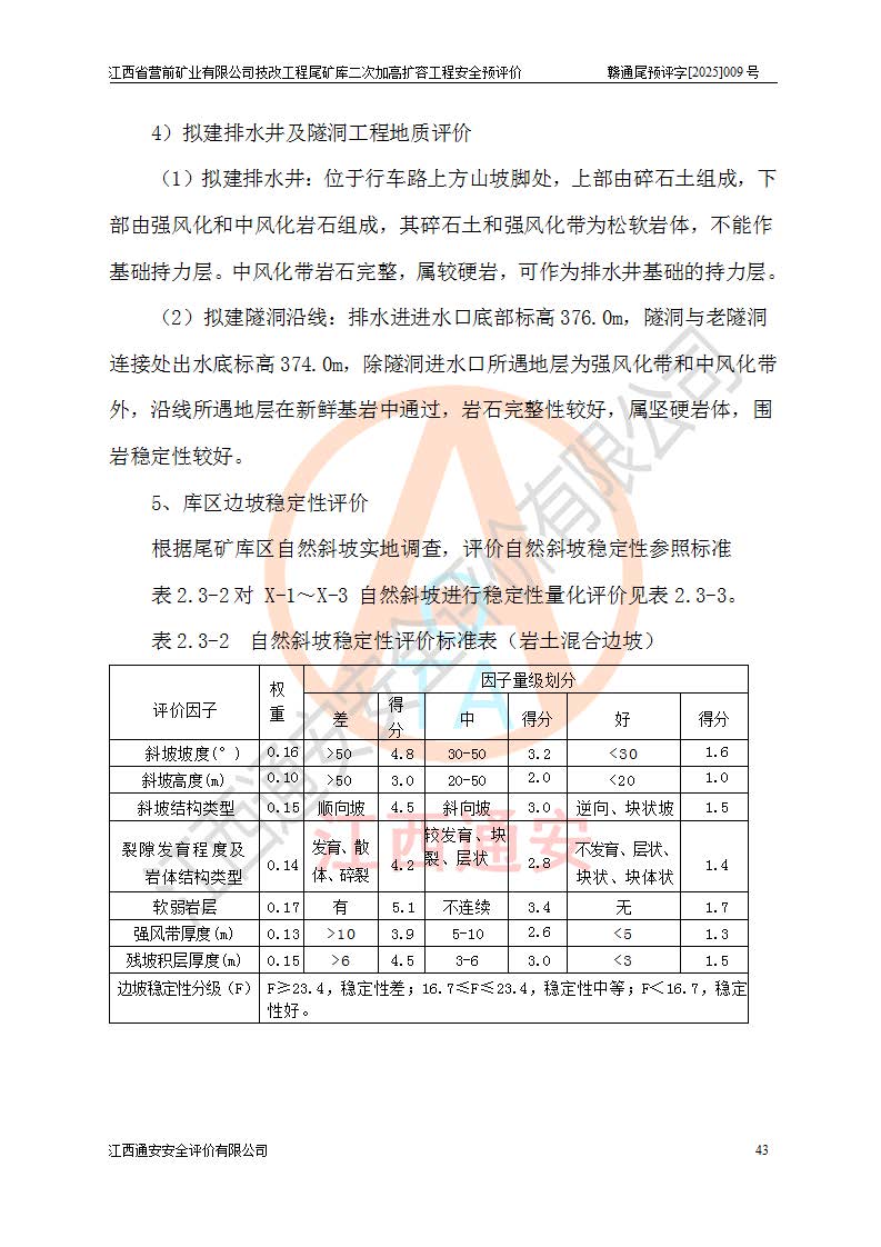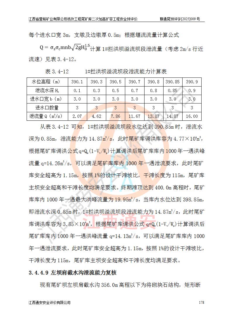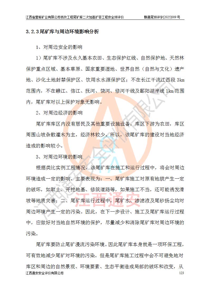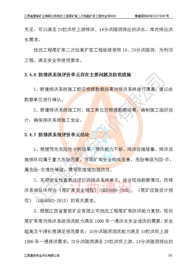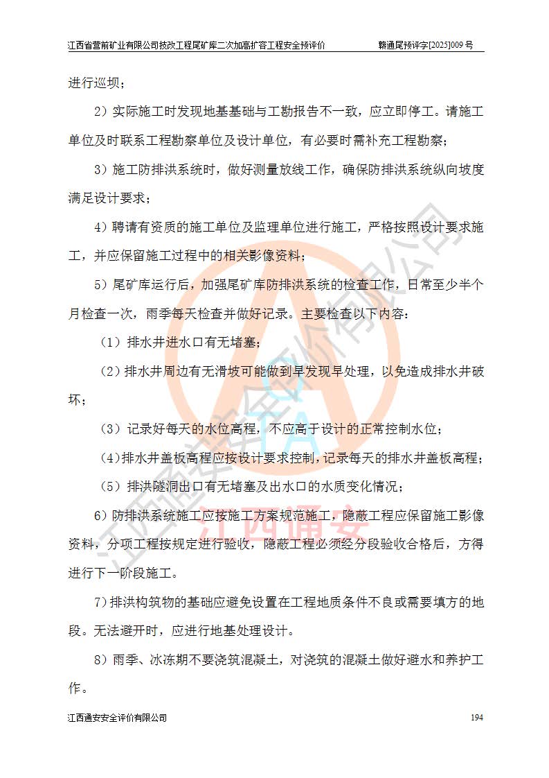 江西省營前礦業(yè)有限公司于2003年12月16日成立,位于贛州市上猶縣營前鎮(zhèn)焦里村境內(nèi),公司注冊資本10000萬元,法定**人陳雅博,礦區(qū)地理坐標(biāo):東經(jīng)114°18′30″~114°19′00″,北緯25°52′35″~25°53′47″。公司經(jīng)營范圍包括:鉛礦、鋅、鎢、銀地下開采、銷售。 江西省營前礦業(yè)有限公司技改工程尾礦庫位于焦里鎢銀鉛鋅礦區(qū),處于上猶縣水巖鄉(xiāng)井子村坑尾自然村境內(nèi),為山谷型尾礦庫。 江西省營前礦業(yè)有限公司技改工程尾礦庫于2013年由福建省冶金工業(yè)設(shè)計院設(shè)計,2014年8月開始施工建設(shè),2015年4月竣工開始試運(yùn)行,2015年11月完成竣工驗收,2016年1月首次取得安全生產(chǎn)許可證,2019年1月完成延期換證,2020年8月委托金建工程設(shè)計有限公司進(jìn)行尾礦庫加高擴(kuò)容工作,2020年10月21日取得了江西省應(yīng)急管理廳下發(fā)的《關(guān)于江西省營前礦業(yè)有限公司技改工程尾礦庫加高擴(kuò)容工程安全設(shè)施設(shè)計的審查意見》(贛應(yīng)急非煤項目設(shè)審〔2020〕46號),之后委托駐馬店市黃淮建設(shè)工程有限公司負(fù)責(zé)施工,云南潤滇工程技術(shù)有限公司負(fù)責(zé)監(jiān)理,2021年12月完成加高擴(kuò)容竣工驗收工作,經(jīng)過延期,現(xiàn)尾礦庫安全生產(chǎn)許可證編號(贛)FM安許證字[2016]M1692號,**期為2025年01月18日至2028年01月17日。 江西省營前礦業(yè)有限公司技改工程尾礦庫為山谷型尾礦庫,初期壩為透水堆石壩,壩頂高程為330.0m,初期壩高25.0m,后期采用上游式尾礦堆積壩,加高擴(kuò)容后*終壩頂高程為380.0m,堆積壩高50.0m,總壩高為75.0m,總庫容為為503.14×104m3,尾礦庫為三等庫。尾礦庫初期壩以上總匯水面積3.53km2,防洪標(biāo)準(zhǔn)取500年一遇。 目前尾礦庫由初期壩、堆積壩、庫內(nèi)排洪系統(tǒng)(雙格排水斜槽+連接井+排水涵洞+排洪隧洞+排水陡槽+消力池)、1#攔洪壩、1#分洪隧洞、2#攔洪壩、2#分洪隧洞和安全監(jiān)測設(shè)施組成。根據(jù)建設(shè)單位提供的尾礦庫平面布置圖,截至2024年12月,現(xiàn)狀尾礦庫堆積壩頂高程為372.2m,現(xiàn)狀總壩高67.2m,灘頂高程為369.8m,現(xiàn)狀全庫容387.51×104m3,現(xiàn)狀尾礦庫為三等庫,原加高擴(kuò)容設(shè)計*終堆積壩頂高程為380.0m,現(xiàn)剩余庫容115.63×104m3,剩余**庫容約92.5×104m3,剩余服務(wù)年限約4.5年;礦山現(xiàn)有儲量較大,剩余庫容及服務(wù)年限不滿足礦山后期生產(chǎn)需要。 技改工程尾礦庫尾礦壩下游1**范圍無居民,不存在工礦企業(yè)等建構(gòu)筑物,不屬于“頭頂庫”;尾礦庫不壓礦;距贛江直線距離60**;不涉及保護(hù)區(qū)及生態(tài)紅線;尾礦庫所在溝谷較長,谷底平均縱坡9%,上游周邊山體地形有利于尾礦庫二次加高擴(kuò)容工程的實(shí)施,因此為了增加尾礦庫庫容,延長服務(wù)年限,充分利用尾礦庫所在溝谷地形,江西省營前礦業(yè)有限公司對技改尾礦庫進(jìn)行二次加高擴(kuò)容。 2024年12月,江西省營前礦業(yè)有限公司委托地礦贛西地質(zhì)工程勘察院編制了《江西省營前礦業(yè)有限公司技改工程尾礦庫二次擴(kuò)容工程(水文)地質(zhì)勘察報告》,2025年4月,江西省營前礦業(yè)有限公司委托金建工程設(shè)計有限公司編制了《江西省營前礦業(yè)有限公司技改工程尾礦庫二次加高擴(kuò)容工程可行性研究報告》。 按照非煤礦山建設(shè)項目安全設(shè)施“三同時”的規(guī)定要求,技改工程尾礦庫為二次加高擴(kuò)容工程,**進(jìn)行安全預(yù)評價;江西省營前礦業(yè)有限公司委托我公司承擔(dān)技改工程尾礦庫二次加高擴(kuò)容工程建設(shè)項目的安全預(yù)評價工作。 |