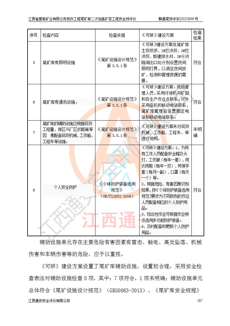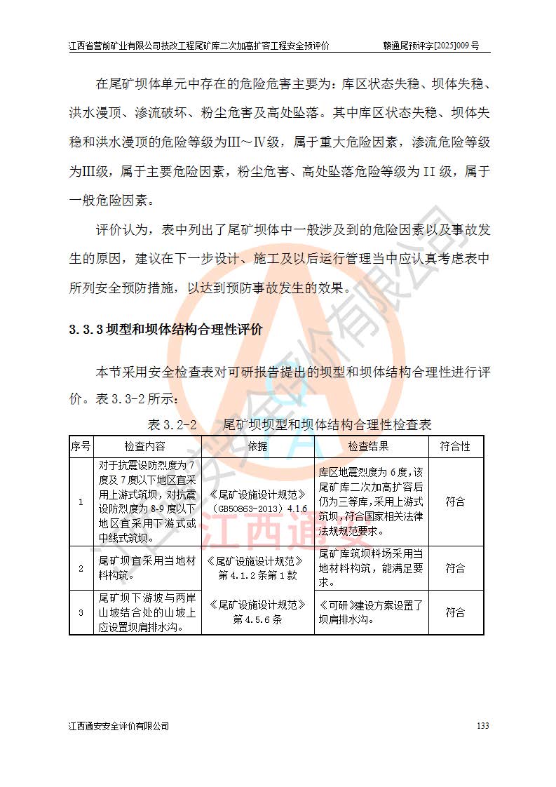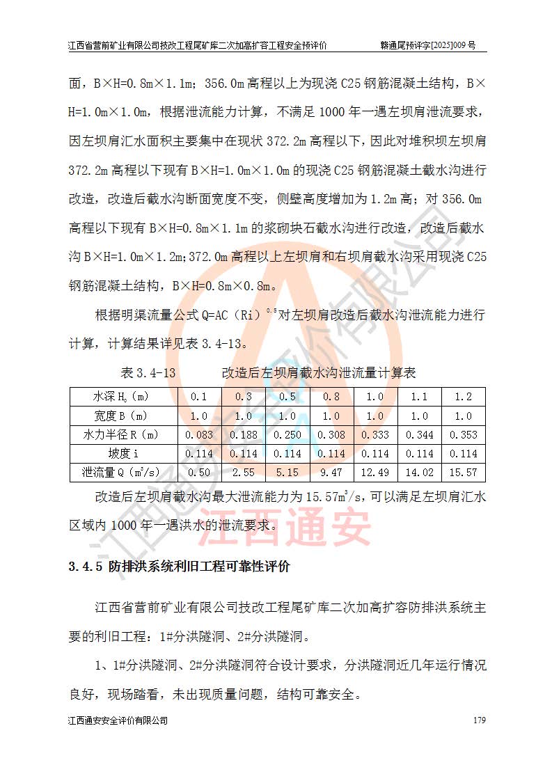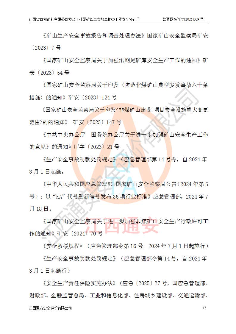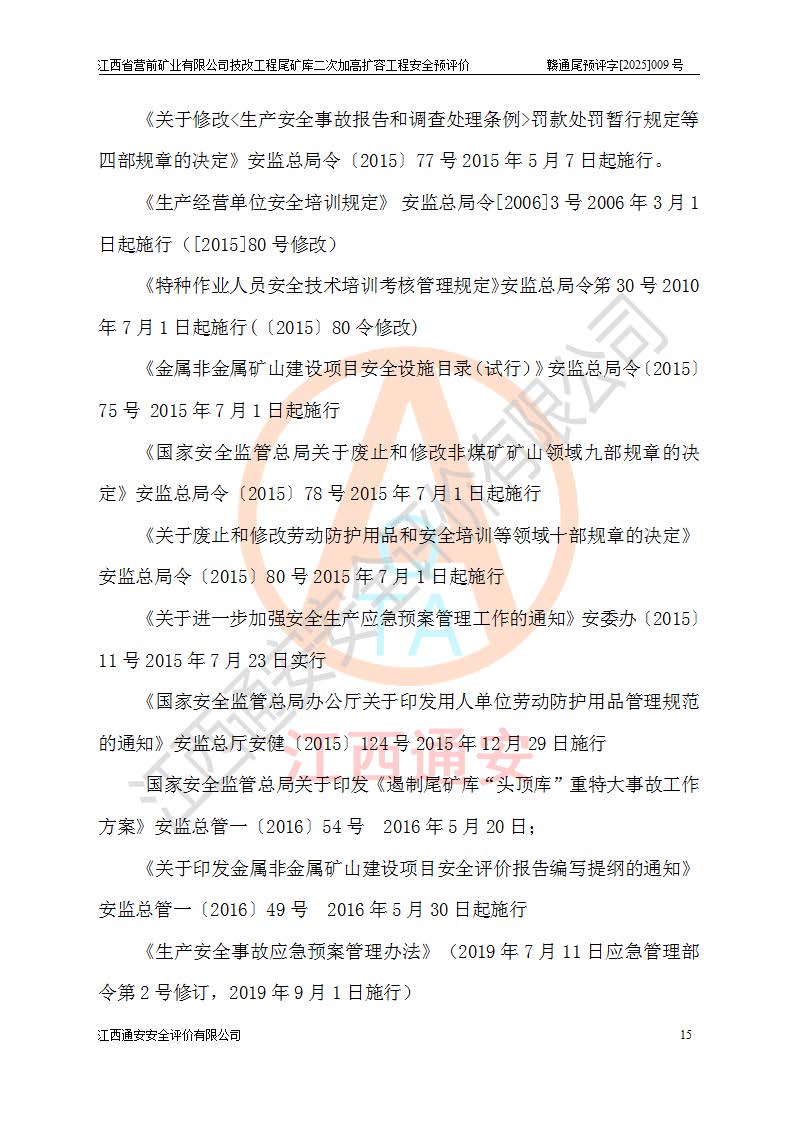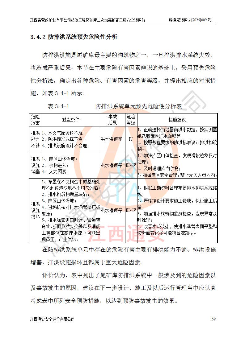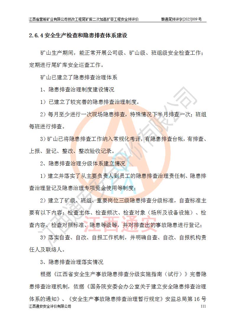 江西省營前礦業(yè)有限公司于2003年12月16日成立,位于贛州市上猶縣營前鎮(zhèn)焦里村境內(nèi),公司注冊資本10000萬元,法定**人陳雅博,礦區(qū)地理坐標(biāo):東經(jīng)114°18′30″~114°19′00″,北緯25°52′35″~25°53′47″。公司經(jīng)營范圍包括:鉛礦、鋅、鎢、銀地下開采、銷售。 江西省營前礦業(yè)有限公司技改工程尾礦庫位于焦里鎢銀鉛鋅礦區(qū),處于上猶縣水巖鄉(xiāng)井子村坑尾自然村境內(nèi),為山谷型尾礦庫。 江西省營前礦業(yè)有限公司技改工程尾礦庫于2013年由福建省冶金工業(yè)設(shè)計院設(shè)計,2014年8月開始施工建設(shè),2015年4月竣工開始試運(yùn)行,2015年11月完成竣工驗收,2016年1月首次取得安全生產(chǎn)許可證,2019年1月完成延期換證,2020年8月委托金建工程設(shè)計有限公司進(jìn)行尾礦庫加高擴(kuò)容工作,2020年10月21日取得了江西省應(yīng)急管理廳下發(fā)的《關(guān)于江西省營前礦業(yè)有限公司技改工程尾礦庫加高擴(kuò)容工程安全設(shè)施設(shè)計的審查意見》(贛應(yīng)急非煤項目設(shè)審〔2020〕46號),之后委托駐馬店市黃淮建設(shè)工程有限公司負(fù)責(zé)施工,云南潤滇工程技術(shù)有限公司負(fù)責(zé)監(jiān)理,2021年12月完成加高擴(kuò)容竣工驗收工作,經(jīng)過延期,現(xiàn)尾礦庫安全生產(chǎn)許可證編號(贛)FM安許證字[2016]M1692號,**期為2025年01月18日至2028年01月17日。 江西省營前礦業(yè)有限公司技改工程尾礦庫為山谷型尾礦庫,初期壩為透水堆石壩,壩頂高程為330.0m,初期壩高25.0m,后期采用上游式尾礦堆積壩,加高擴(kuò)容后*終壩頂高程為380.0m,堆積壩高50.0m,總壩高為75.0m,總庫容為為503.14×104m3,尾礦庫為三等庫。尾礦庫初期壩以上總匯水面積3.53km2,防洪標(biāo)準(zhǔn)取500年一遇。 目前尾礦庫由初期壩、堆積壩、庫內(nèi)排洪系統(tǒng)(雙格排水斜槽+連接井+排水涵洞+排洪隧洞+排水陡槽+消力池)、1#攔洪壩、1#分洪隧洞、2#攔洪壩、2#分洪隧洞和安全監(jiān)測設(shè)施組成。根據(jù)建設(shè)單位提供的尾礦庫平面布置圖,截至2024年12月,現(xiàn)狀尾礦庫堆積壩頂高程為372.2m,現(xiàn)狀總壩高67.2m,灘頂高程為369.8m,現(xiàn)狀全庫容387.51×104m3,現(xiàn)狀尾礦庫為三等庫,原加高擴(kuò)容設(shè)計*終堆積壩頂高程為380.0m,現(xiàn)剩余庫容115.63×104m3,剩余**庫容約92.5×104m3,剩余服務(wù)年限約4.5年;礦山現(xiàn)有儲量較大,剩余庫容及服務(wù)年限不滿足礦山后期生產(chǎn)需要。 技改工程尾礦庫尾礦壩下游1**范圍無居民,不存在工礦企業(yè)等建構(gòu)筑物,不屬于“頭頂庫”;尾礦庫不壓礦;距贛江直線距離60**;不涉及保護(hù)區(qū)及生態(tài)紅線;尾礦庫所在溝谷較長,谷底平均縱坡9%,上游周邊山體地形有利于尾礦庫二次加高擴(kuò)容工程的實(shí)施,因此為了增加尾礦庫庫容,延長服務(wù)年限,充分利用尾礦庫所在溝谷地形,江西省營前礦業(yè)有限公司對技改尾礦庫進(jìn)行二次加高擴(kuò)容。 2024年12月,江西省營前礦業(yè)有限公司委托地礦贛西地質(zhì)工程勘察院編制了《江西省營前礦業(yè)有限公司技改工程尾礦庫二次擴(kuò)容工程(水文)地質(zhì)勘察報告》,2025年4月,江西省營前礦業(yè)有限公司委托金建工程設(shè)計有限公司編制了《江西省營前礦業(yè)有限公司技改工程尾礦庫二次加高擴(kuò)容工程可行性研究報告》。 按照非煤礦山建設(shè)項目安全設(shè)施“三同時”的規(guī)定要求,技改工程尾礦庫為二次加高擴(kuò)容工程,**進(jìn)行安全預(yù)評價;江西省營前礦業(yè)有限公司委托我公司承擔(dān)技改工程尾礦庫二次加高擴(kuò)容工程建設(shè)項目的安全預(yù)評價工作。 |