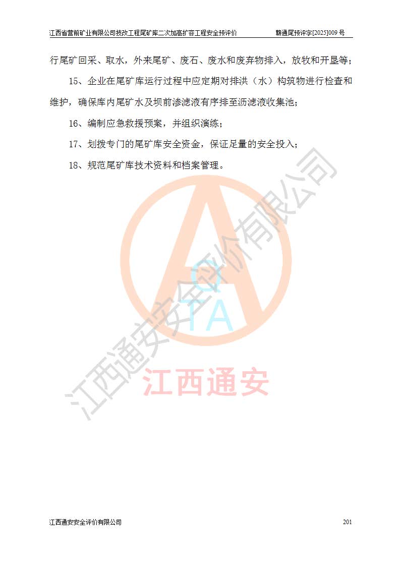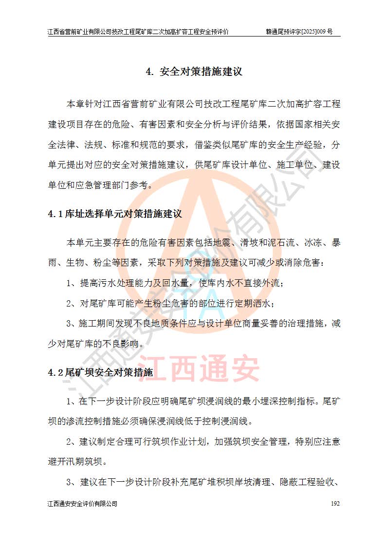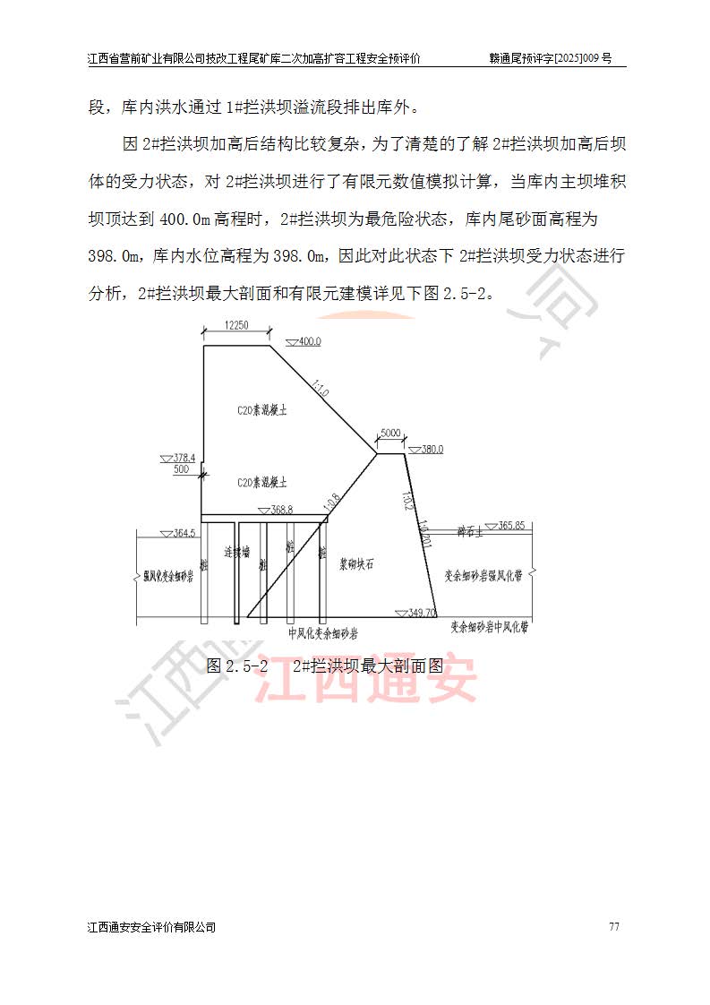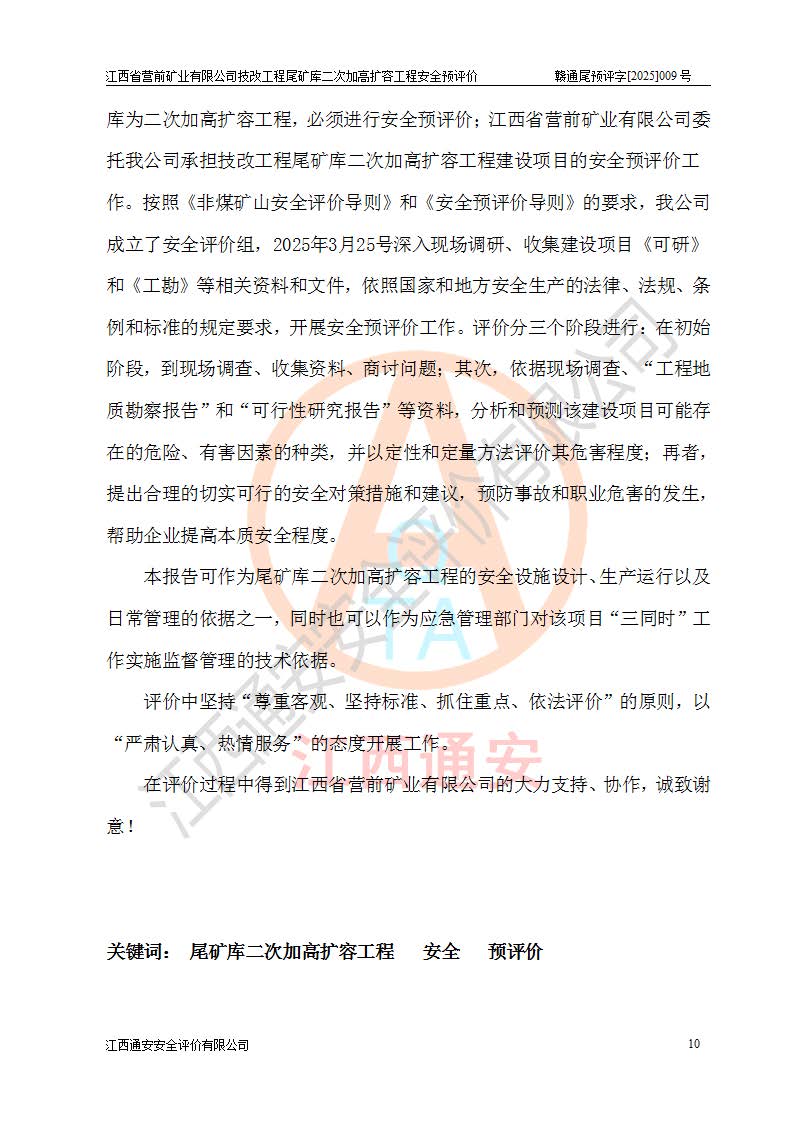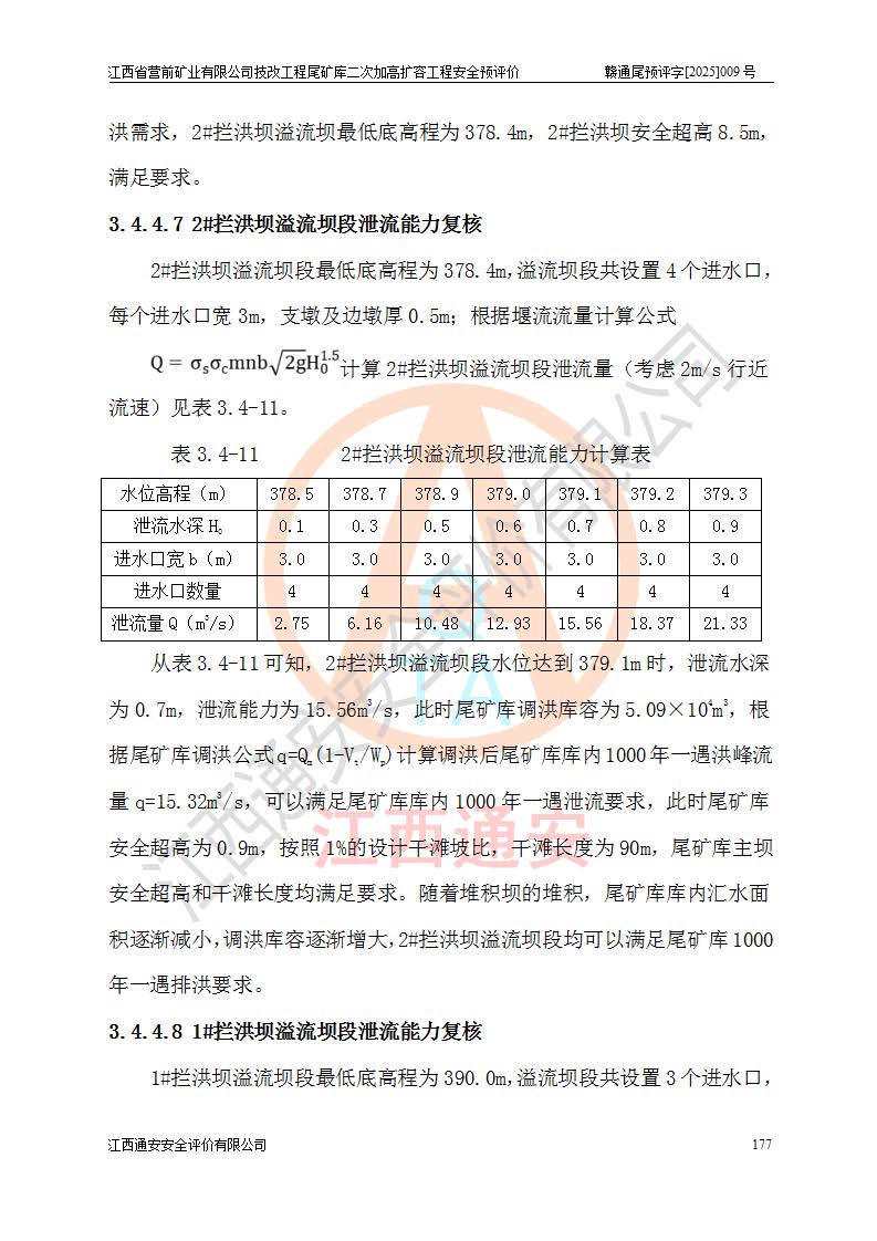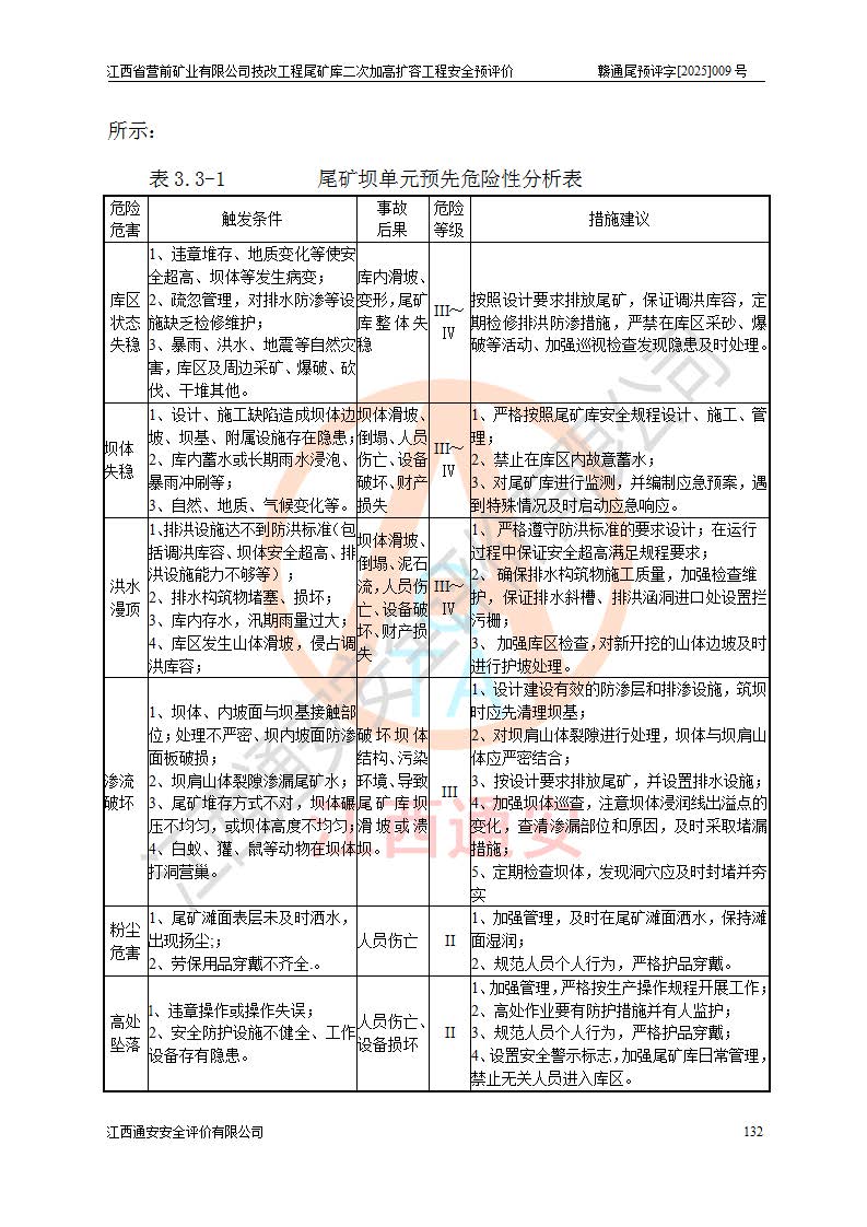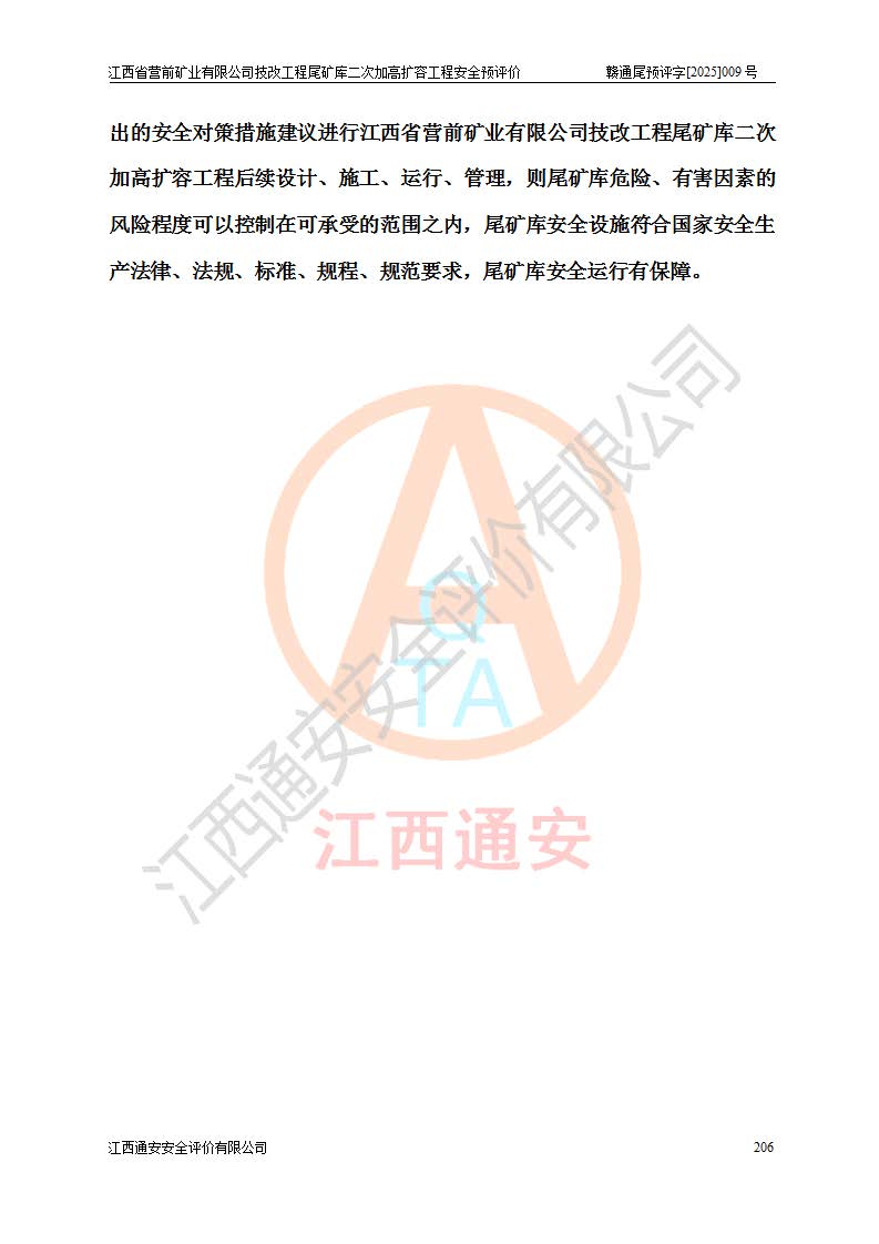 江西省營前礦業(yè)有限公司于2003年12月16日成立,位于贛州市上猶縣營前鎮(zhèn)焦里村境內(nèi),公司注冊資本10000萬元,法定**人陳雅博,礦區(qū)地理坐標(biāo):東經(jīng)114°18′30″~114°19′00″,北緯25°52′35″~25°53′47″。公司經(jīng)營范圍包括:鉛礦、鋅、鎢、銀地下開采、銷售。 江西省營前礦業(yè)有限公司技改工程尾礦庫位于焦里鎢銀鉛鋅礦區(qū),處于上猶縣水巖鄉(xiāng)井子村坑尾自然村境內(nèi),為山谷型尾礦庫。 江西省營前礦業(yè)有限公司技改工程尾礦庫于2013年由福建省冶金工業(yè)設(shè)計院設(shè)計,2014年8月開始施工建設(shè),2015年4月竣工開始試運(yùn)行,2015年11月完成竣工驗收,2016年1月首次取得安全生產(chǎn)許可證,2019年1月完成延期換證,2020年8月委托金建工程設(shè)計有限公司進(jìn)行尾礦庫加高擴(kuò)容工作,2020年10月21日取得了江西省應(yīng)急管理廳下發(fā)的《關(guān)于江西省營前礦業(yè)有限公司技改工程尾礦庫加高擴(kuò)容工程安全設(shè)施設(shè)計的審查意見》(贛應(yīng)急非煤項目設(shè)審〔2020〕46號),之后委托駐馬店市黃淮建設(shè)工程有限公司負(fù)責(zé)施工,云南潤滇工程技術(shù)有限公司負(fù)責(zé)監(jiān)理,2021年12月完成加高擴(kuò)容竣工驗收工作,經(jīng)過延期,現(xiàn)尾礦庫安全生產(chǎn)許可證編號(贛)FM安許證字[2016]M1692號,**期為2025年01月18日至2028年01月17日。 江西省營前礦業(yè)有限公司技改工程尾礦庫為山谷型尾礦庫,初期壩為透水堆石壩,壩頂高程為330.0m,初期壩高25.0m,后期采用上游式尾礦堆積壩,加高擴(kuò)容后*終壩頂高程為380.0m,堆積壩高50.0m,總壩高為75.0m,總庫容為為503.14×104m3,尾礦庫為三等庫。尾礦庫初期壩以上總匯水面積3.53km2,防洪標(biāo)準(zhǔn)取500年一遇。 目前尾礦庫由初期壩、堆積壩、庫內(nèi)排洪系統(tǒng)(雙格排水斜槽+連接井+排水涵洞+排洪隧洞+排水陡槽+消力池)、1#攔洪壩、1#分洪隧洞、2#攔洪壩、2#分洪隧洞和安全監(jiān)測設(shè)施組成。根據(jù)建設(shè)單位提供的尾礦庫平面布置圖,截至2024年12月,現(xiàn)狀尾礦庫堆積壩頂高程為372.2m,現(xiàn)狀總壩高67.2m,灘頂高程為369.8m,現(xiàn)狀全庫容387.51×104m3,現(xiàn)狀尾礦庫為三等庫,原加高擴(kuò)容設(shè)計*終堆積壩頂高程為380.0m,現(xiàn)剩余庫容115.63×104m3,剩余**庫容約92.5×104m3,剩余服務(wù)年限約4.5年;礦山現(xiàn)有儲量較大,剩余庫容及服務(wù)年限不滿足礦山后期生產(chǎn)需要。 技改工程尾礦庫尾礦壩下游1**范圍無居民,不存在工礦企業(yè)等建構(gòu)筑物,不屬于“頭頂庫”;尾礦庫不壓礦;距贛江直線距離60**;不涉及保護(hù)區(qū)及生態(tài)紅線;尾礦庫所在溝谷較長,谷底平均縱坡9%,上游周邊山體地形有利于尾礦庫二次加高擴(kuò)容工程的實(shí)施,因此為了增加尾礦庫庫容,延長服務(wù)年限,充分利用尾礦庫所在溝谷地形,江西省營前礦業(yè)有限公司對技改尾礦庫進(jìn)行二次加高擴(kuò)容。 2024年12月,江西省營前礦業(yè)有限公司委托地礦贛西地質(zhì)工程勘察院編制了《江西省營前礦業(yè)有限公司技改工程尾礦庫二次擴(kuò)容工程(水文)地質(zhì)勘察報告》,2025年4月,江西省營前礦業(yè)有限公司委托金建工程設(shè)計有限公司編制了《江西省營前礦業(yè)有限公司技改工程尾礦庫二次加高擴(kuò)容工程可行性研究報告》。 按照非煤礦山建設(shè)項目安全設(shè)施“三同時”的規(guī)定要求,技改工程尾礦庫為二次加高擴(kuò)容工程,**進(jìn)行安全預(yù)評價;江西省營前礦業(yè)有限公司委托我公司承擔(dān)技改工程尾礦庫二次加高擴(kuò)容工程建設(shè)項目的安全預(yù)評價工作。 |