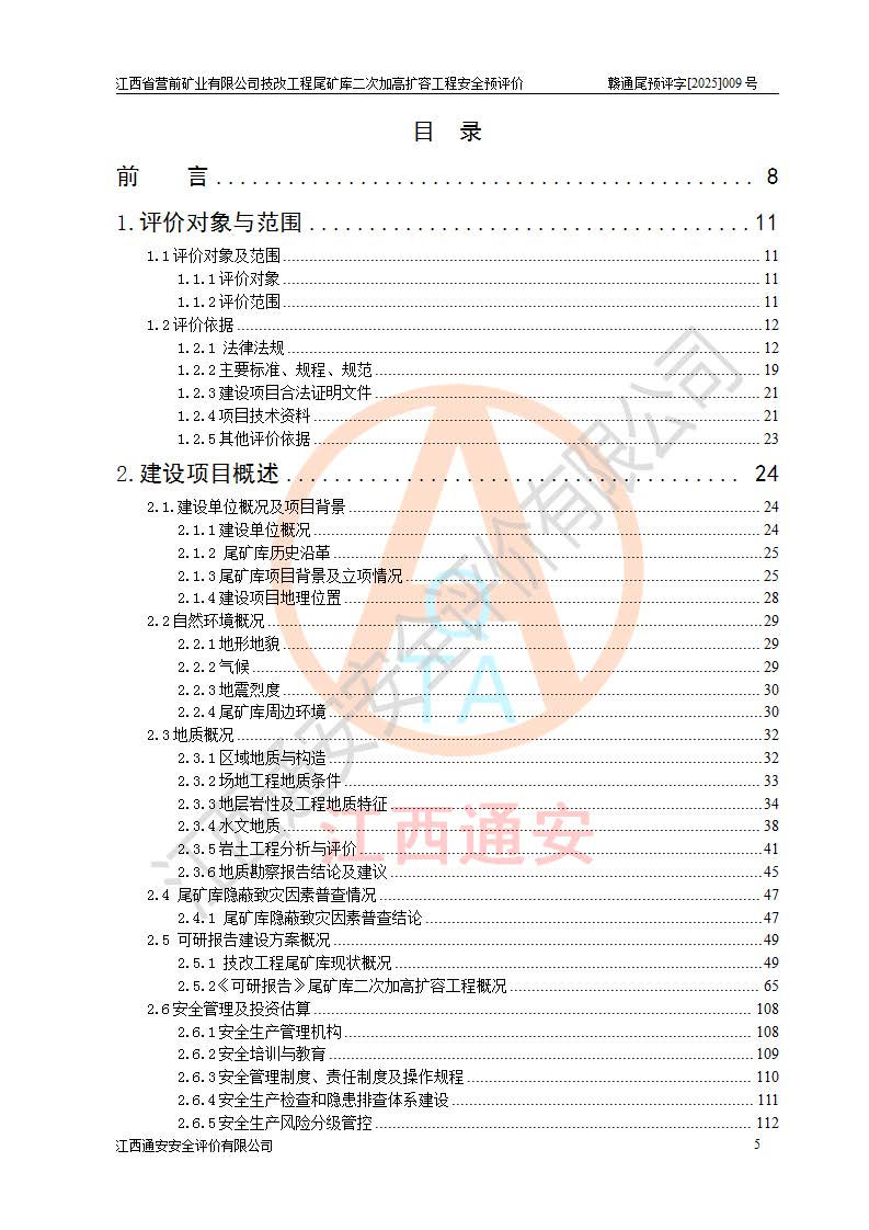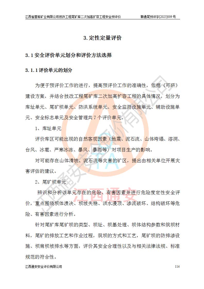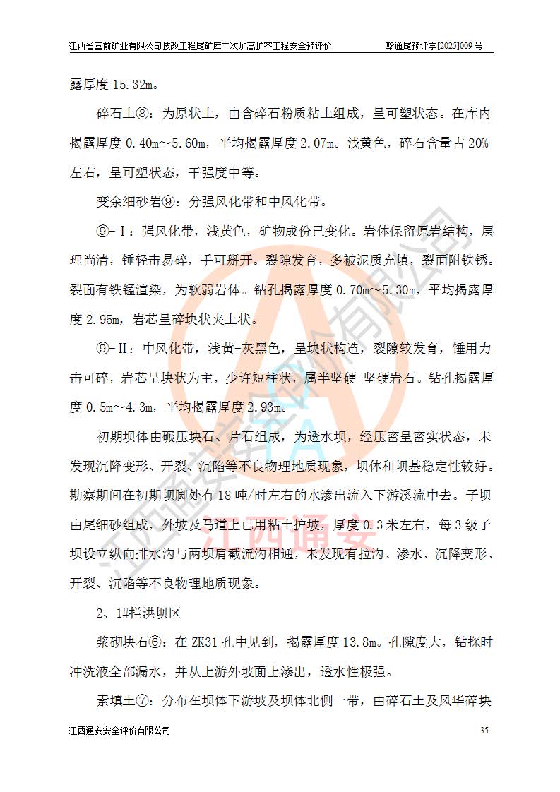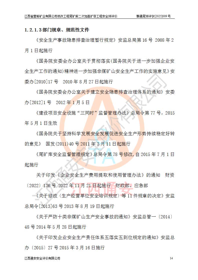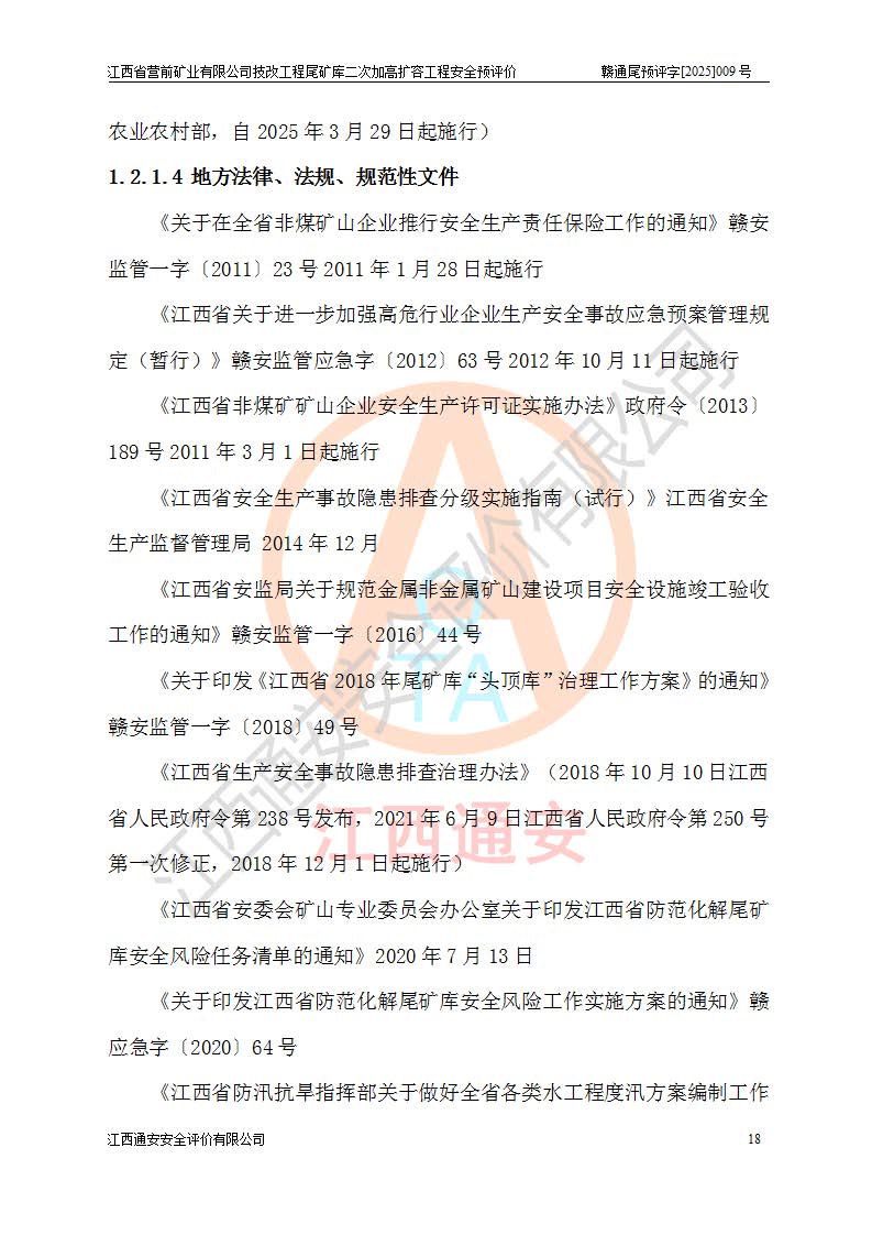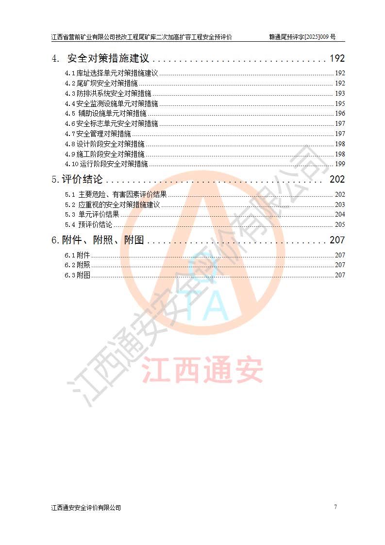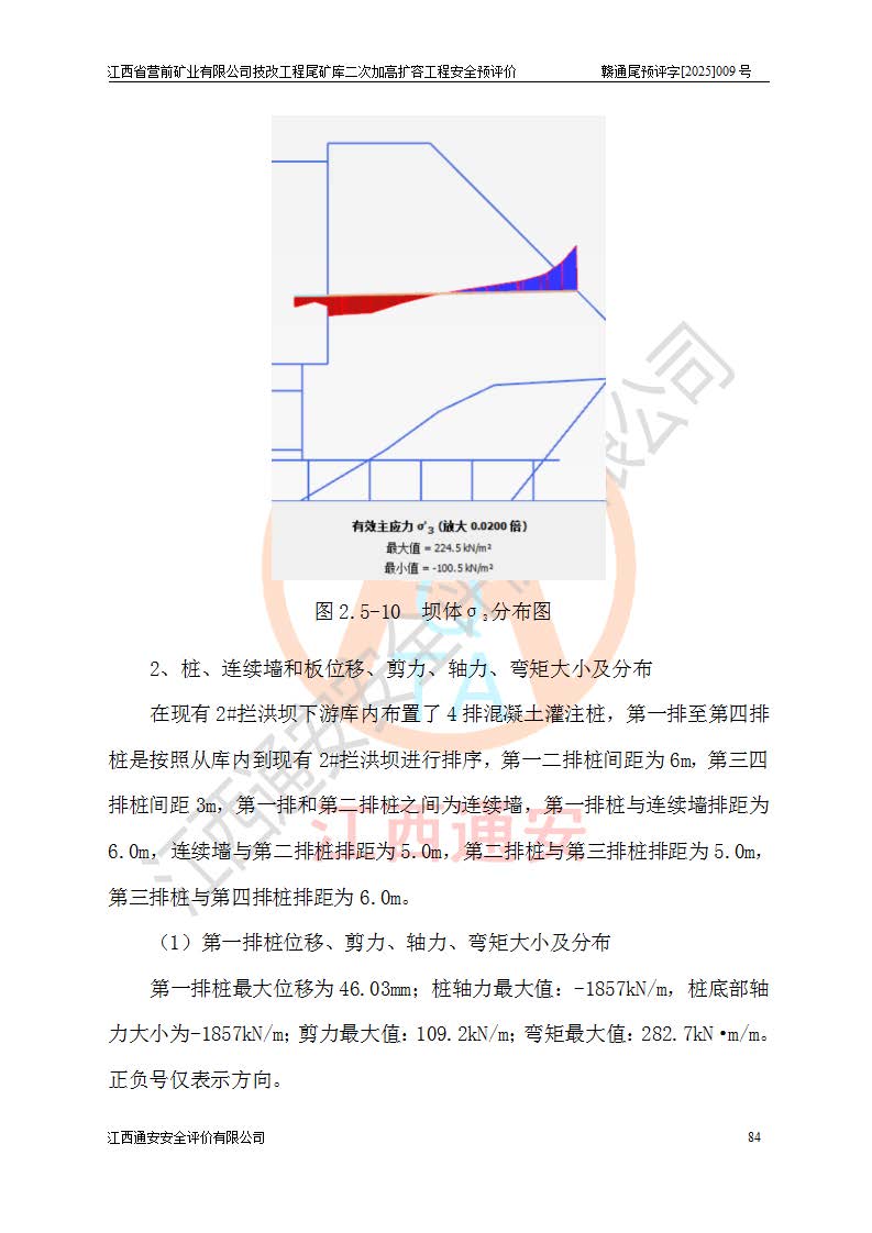 江西省營前礦業(yè)有限公司于2003年12月16日成立,位于贛州市上猶縣營前鎮(zhèn)焦里村境內(nèi),公司注冊資本10000萬元,法定**人陳雅博,礦區(qū)地理坐標(biāo):東經(jīng)114°18′30″~114°19′00″,北緯25°52′35″~25°53′47″。公司經(jīng)營范圍包括:鉛礦、鋅、鎢、銀地下開采、銷售。 江西省營前礦業(yè)有限公司技改工程尾礦庫位于焦里鎢銀鉛鋅礦區(qū),處于上猶縣水巖鄉(xiāng)井子村坑尾自然村境內(nèi),為山谷型尾礦庫。 江西省營前礦業(yè)有限公司技改工程尾礦庫于2013年由福建省冶金工業(yè)設(shè)計院設(shè)計,2014年8月開始施工建設(shè),2015年4月竣工開始試運(yùn)行,2015年11月完成竣工驗收,2016年1月首次取得安全生產(chǎn)許可證,2019年1月完成延期換證,2020年8月委托金建工程設(shè)計有限公司進(jìn)行尾礦庫加高擴(kuò)容工作,2020年10月21日取得了江西省應(yīng)急管理廳下發(fā)的《關(guān)于江西省營前礦業(yè)有限公司技改工程尾礦庫加高擴(kuò)容工程安全設(shè)施設(shè)計的審查意見》(贛應(yīng)急非煤項目設(shè)審〔2020〕46號),之后委托駐馬店市黃淮建設(shè)工程有限公司負(fù)責(zé)施工,云南潤滇工程技術(shù)有限公司負(fù)責(zé)監(jiān)理,2021年12月完成加高擴(kuò)容竣工驗收工作,經(jīng)過延期,現(xiàn)尾礦庫安全生產(chǎn)許可證編號(贛)FM安許證字[2016]M1692號,**期為2025年01月18日至2028年01月17日。 江西省營前礦業(yè)有限公司技改工程尾礦庫為山谷型尾礦庫,初期壩為透水堆石壩,壩頂高程為330.0m,初期壩高25.0m,后期采用上游式尾礦堆積壩,加高擴(kuò)容后*終壩頂高程為380.0m,堆積壩高50.0m,總壩高為75.0m,總庫容為為503.14×104m3,尾礦庫為三等庫。尾礦庫初期壩以上總匯水面積3.53km2,防洪標(biāo)準(zhǔn)取500年一遇。 目前尾礦庫由初期壩、堆積壩、庫內(nèi)排洪系統(tǒng)(雙格排水斜槽+連接井+排水涵洞+排洪隧洞+排水陡槽+消力池)、1#攔洪壩、1#分洪隧洞、2#攔洪壩、2#分洪隧洞和安全監(jiān)測設(shè)施組成。根據(jù)建設(shè)單位提供的尾礦庫平面布置圖,截至2024年12月,現(xiàn)狀尾礦庫堆積壩頂高程為372.2m,現(xiàn)狀總壩高67.2m,灘頂高程為369.8m,現(xiàn)狀全庫容387.51×104m3,現(xiàn)狀尾礦庫為三等庫,原加高擴(kuò)容設(shè)計*終堆積壩頂高程為380.0m,現(xiàn)剩余庫容115.63×104m3,剩余**庫容約92.5×104m3,剩余服務(wù)年限約4.5年;礦山現(xiàn)有儲量較大,剩余庫容及服務(wù)年限不滿足礦山后期生產(chǎn)需要。 技改工程尾礦庫尾礦壩下游1**范圍無居民,不存在工礦企業(yè)等建構(gòu)筑物,不屬于“頭頂庫”;尾礦庫不壓礦;距贛江直線距離60**;不涉及保護(hù)區(qū)及生態(tài)紅線;尾礦庫所在溝谷較長,谷底平均縱坡9%,上游周邊山體地形有利于尾礦庫二次加高擴(kuò)容工程的實(shí)施,因此為了增加尾礦庫庫容,延長服務(wù)年限,充分利用尾礦庫所在溝谷地形,江西省營前礦業(yè)有限公司對技改尾礦庫進(jìn)行二次加高擴(kuò)容。 2024年12月,江西省營前礦業(yè)有限公司委托地礦贛西地質(zhì)工程勘察院編制了《江西省營前礦業(yè)有限公司技改工程尾礦庫二次擴(kuò)容工程(水文)地質(zhì)勘察報告》,2025年4月,江西省營前礦業(yè)有限公司委托金建工程設(shè)計有限公司編制了《江西省營前礦業(yè)有限公司技改工程尾礦庫二次加高擴(kuò)容工程可行性研究報告》。 按照非煤礦山建設(shè)項目安全設(shè)施“三同時”的規(guī)定要求,技改工程尾礦庫為二次加高擴(kuò)容工程,**進(jìn)行安全預(yù)評價;江西省營前礦業(yè)有限公司委托我公司承擔(dān)技改工程尾礦庫二次加高擴(kuò)容工程建設(shè)項目的安全預(yù)評價工作。 |
