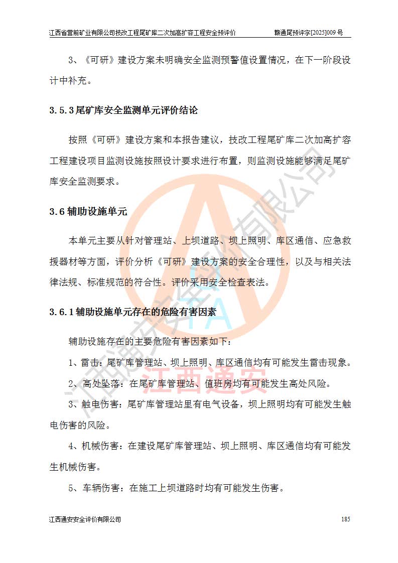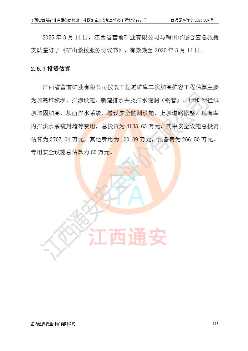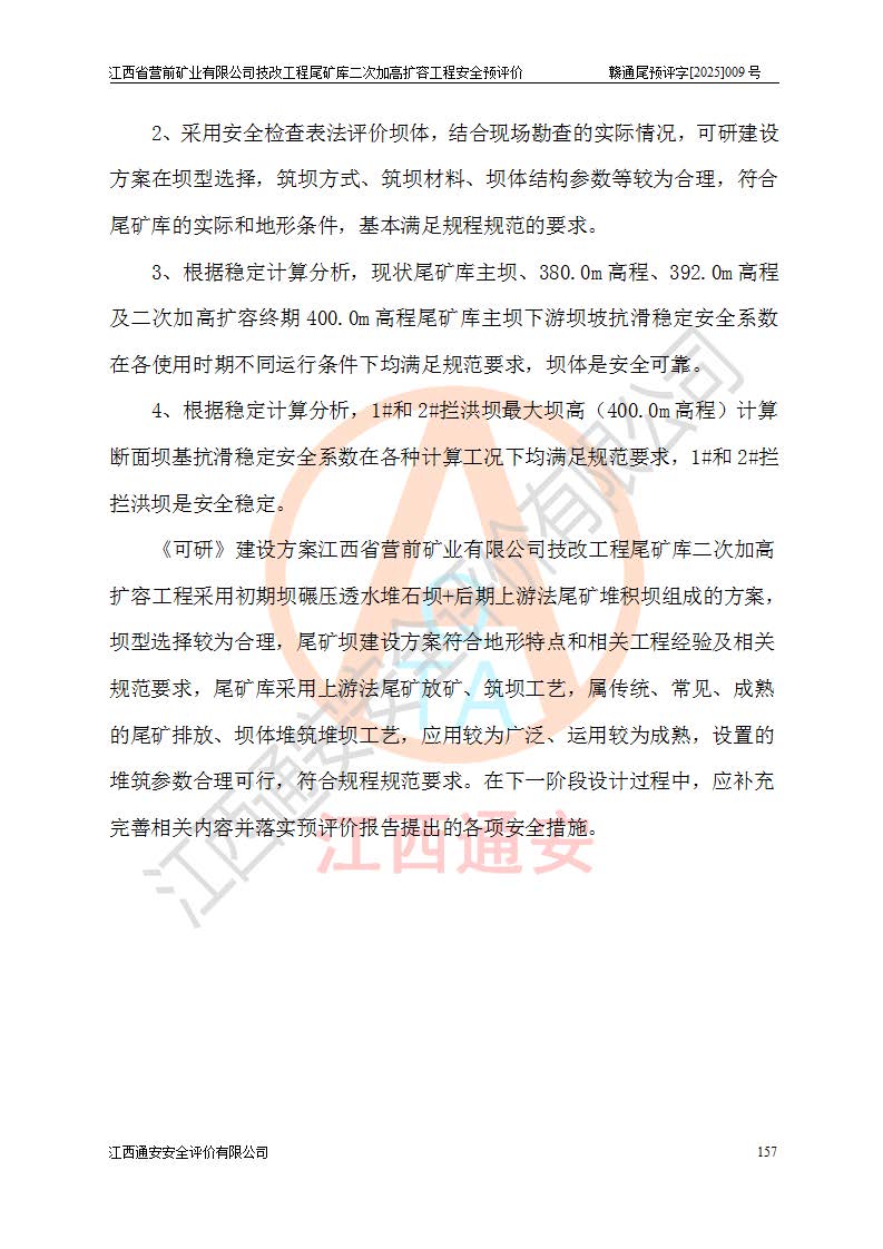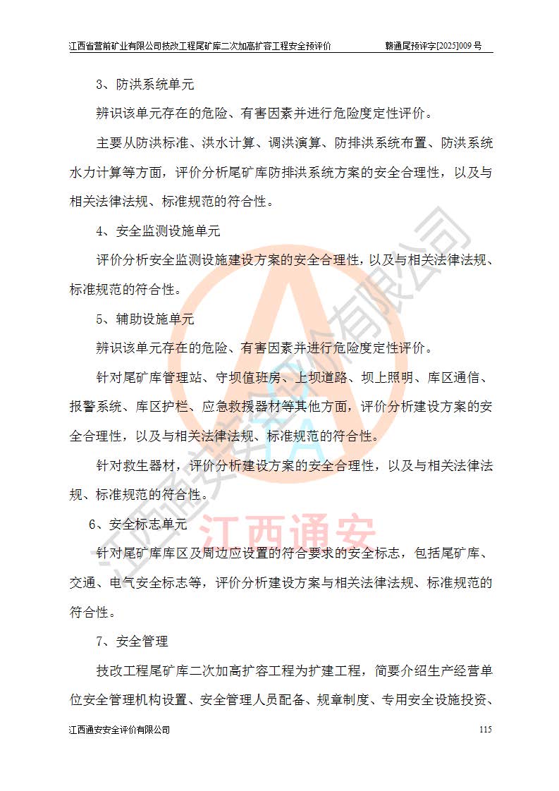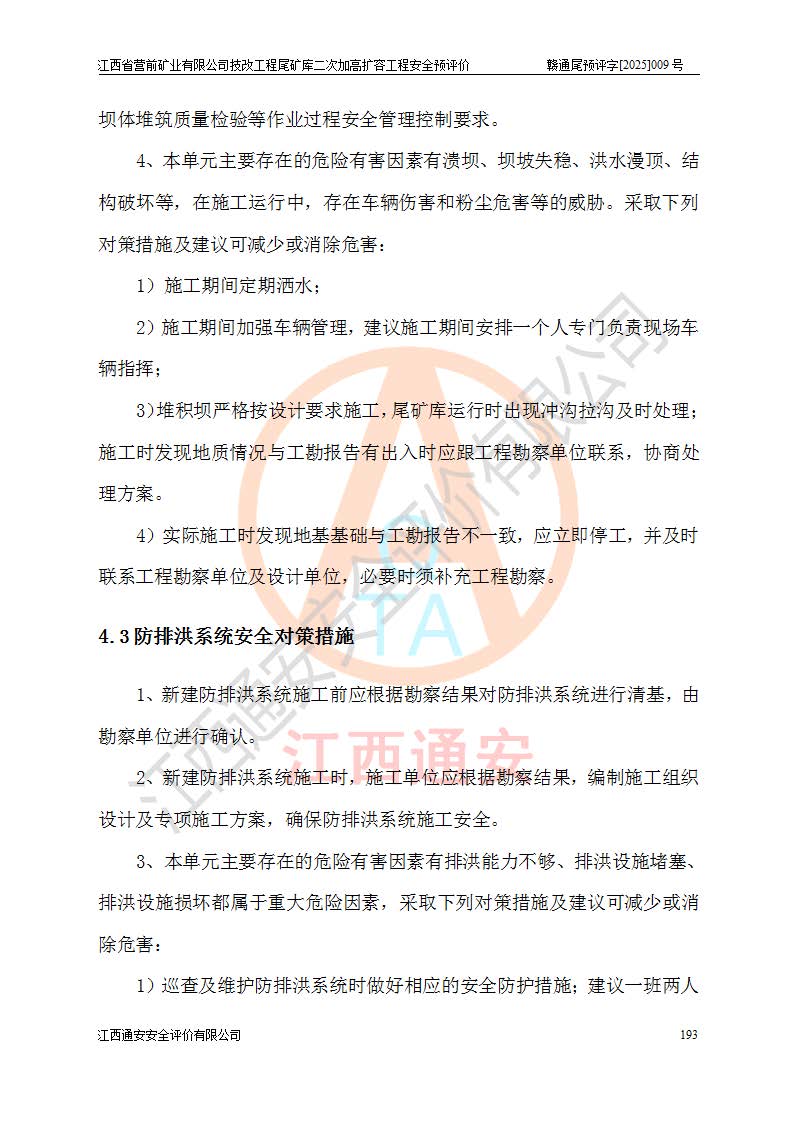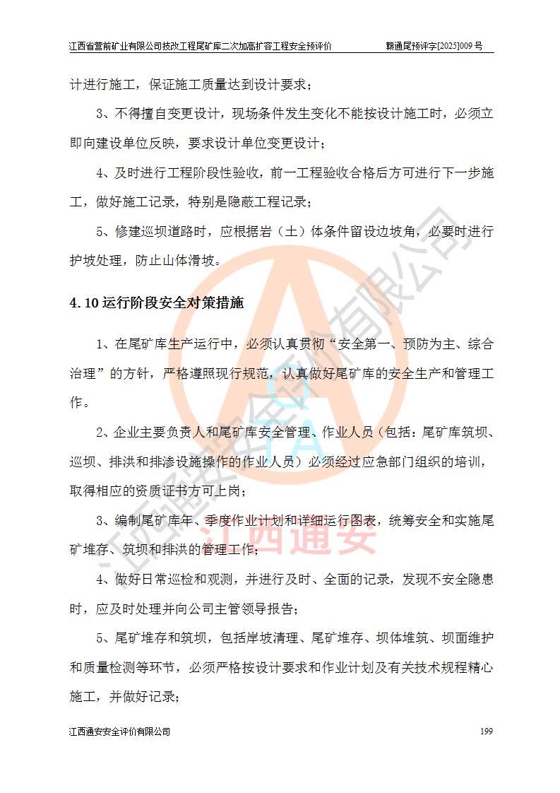江西省營前礦業(yè)有限公司于2003年12月16日成立,位于贛州市上猶縣營前鎮(zhèn)焦里村境內(nèi),公司注冊資本10000萬元,法定**人陳雅博,礦區(qū)地理坐標(biāo):東經(jīng)114°18′30″~114°19′00″,北緯25°52′35″~25°53′47″。公司經(jīng)營范圍包括:鉛礦、鋅、鎢、銀地下開采、銷售。 江西省營前礦業(yè)有限公司技改工程尾礦庫位于焦里鎢銀鉛鋅礦區(qū),處于上猶縣水巖鄉(xiāng)井子村坑尾自然村境內(nèi),為山谷型尾礦庫。 江西省營前礦業(yè)有限公司技改工程尾礦庫于2013年由福建省冶金工業(yè)設(shè)計院設(shè)計,2014年8月開始施工建設(shè),2015年4月竣工開始試運(yùn)行,2015年11月完成竣工驗收,2016年1月首次取得安全生產(chǎn)許可證,2019年1月完成延期換證,2020年8月委托金建工程設(shè)計有限公司進(jìn)行尾礦庫加高擴(kuò)容工作,2020年10月21日取得了江西省應(yīng)急管理廳下發(fā)的《關(guān)于江西省營前礦業(yè)有限公司技改工程尾礦庫加高擴(kuò)容工程安全設(shè)施設(shè)計的審查意見》(贛應(yīng)急非煤項目設(shè)審〔2020〕46號),之后委托駐馬店市黃淮建設(shè)工程有限公司負(fù)責(zé)施工,云南潤滇工程技術(shù)有限公司負(fù)責(zé)監(jiān)理,2021年12月完成加高擴(kuò)容竣工驗收工作,經(jīng)過延期,現(xiàn)尾礦庫安全生產(chǎn)許可證編號(贛)FM安許證字[2016]M1692號,**期為2025年01月18日至2028年01月17日。 江西省營前礦業(yè)有限公司技改工程尾礦庫為山谷型尾礦庫,初期壩為透水堆石壩,壩頂高程為330.0m,初期壩高25.0m,后期采用上游式尾礦堆積壩,加高擴(kuò)容后*終壩頂高程為380.0m,堆積壩高50.0m,總壩高為75.0m,總庫容為為503.14×104m3,尾礦庫為三等庫。尾礦庫初期壩以上總匯水面積3.53km2,防洪標(biāo)準(zhǔn)取500年一遇。 目前尾礦庫由初期壩、堆積壩、庫內(nèi)排洪系統(tǒng)(雙格排水斜槽+連接井+排水涵洞+排洪隧洞+排水陡槽+消力池)、1#攔洪壩、1#分洪隧洞、2#攔洪壩、2#分洪隧洞和安全監(jiān)測設(shè)施組成。根據(jù)建設(shè)單位提供的尾礦庫平面布置圖,截至2024年12月,現(xiàn)狀尾礦庫堆積壩頂高程為372.2m,現(xiàn)狀總壩高67.2m,灘頂高程為369.8m,現(xiàn)狀全庫容387.51×104m3,現(xiàn)狀尾礦庫為三等庫,原加高擴(kuò)容設(shè)計*終堆積壩頂高程為380.0m,現(xiàn)剩余庫容115.63×104m3,剩余**庫容約92.5×104m3,剩余服務(wù)年限約4.5年;礦山現(xiàn)有儲量較大,剩余庫容及服務(wù)年限不滿足礦山后期生產(chǎn)需要。 技改工程尾礦庫尾礦壩下游1**范圍無居民,不存在工礦企業(yè)等建構(gòu)筑物,不屬于“頭頂庫”;尾礦庫不壓礦;距贛江直線距離60**;不涉及保護(hù)區(qū)及生態(tài)紅線;尾礦庫所在溝谷較長,谷底平均縱坡9%,上游周邊山體地形有利于尾礦庫二次加高擴(kuò)容工程的實(shí)施,因此為了增加尾礦庫庫容,延長服務(wù)年限,充分利用尾礦庫所在溝谷地形,江西省營前礦業(yè)有限公司對技改尾礦庫進(jìn)行二次加高擴(kuò)容。 2024年12月,江西省營前礦業(yè)有限公司委托地礦贛西地質(zhì)工程勘察院編制了《江西省營前礦業(yè)有限公司技改工程尾礦庫二次擴(kuò)容工程(水文)地質(zhì)勘察報告》,2025年4月,江西省營前礦業(yè)有限公司委托金建工程設(shè)計有限公司編制了《江西省營前礦業(yè)有限公司技改工程尾礦庫二次加高擴(kuò)容工程可行性研究報告》。 按照非煤礦山建設(shè)項目安全設(shè)施“三同時”的規(guī)定要求,技改工程尾礦庫為二次加高擴(kuò)容工程,**進(jìn)行安全預(yù)評價;江西省營前礦業(yè)有限公司委托我公司承擔(dān)技改工程尾礦庫二次加高擴(kuò)容工程建設(shè)項目的安全預(yù)評價工作。 |