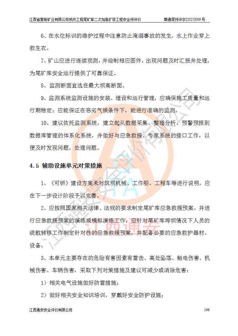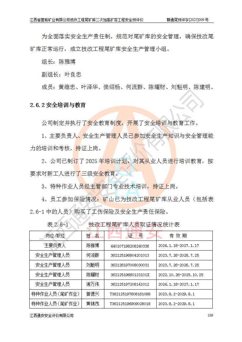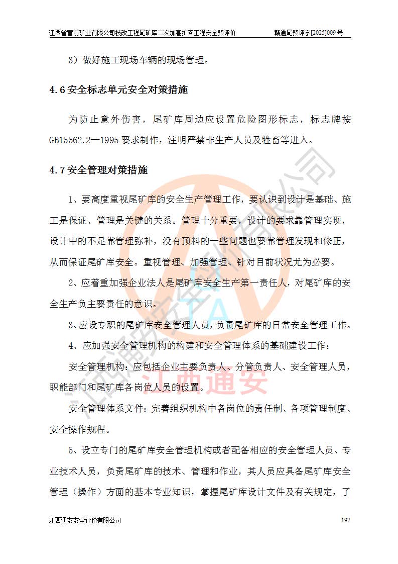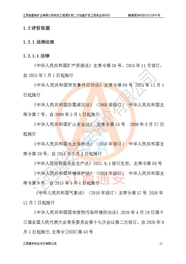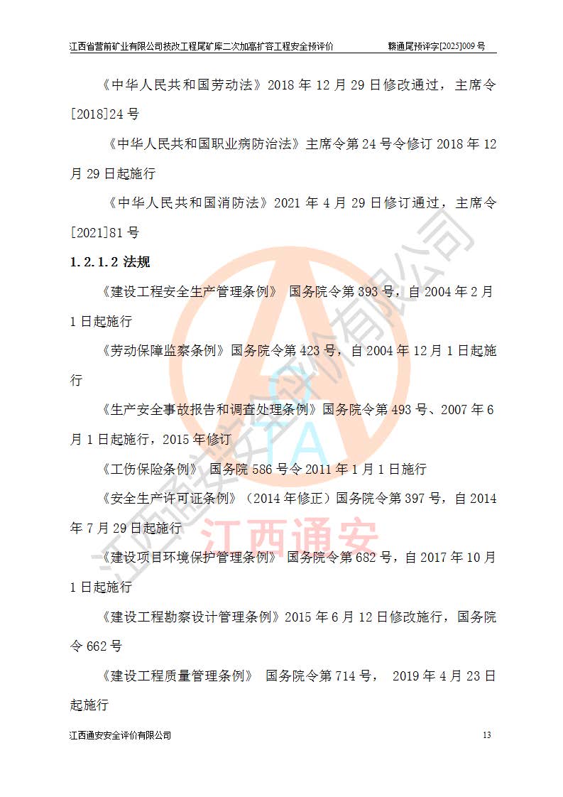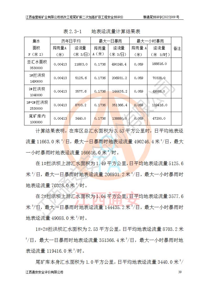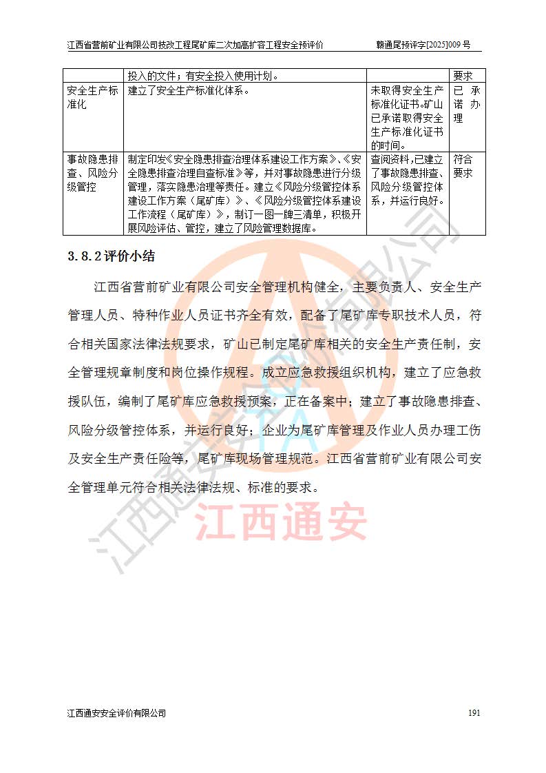 江西省營前礦業(yè)有限公司于2003年12月16日成立,位于贛州市上猶縣營前鎮(zhèn)焦里村境內(nèi),公司注冊資本10000萬元,法定**人陳雅博,礦區(qū)地理坐標(biāo):東經(jīng)114°18′30″~114°19′00″,北緯25°52′35″~25°53′47″。公司經(jīng)營范圍包括:鉛礦、鋅、鎢、銀地下開采、銷售。 江西省營前礦業(yè)有限公司技改工程尾礦庫位于焦里鎢銀鉛鋅礦區(qū),處于上猶縣水巖鄉(xiāng)井子村坑尾自然村境內(nèi),為山谷型尾礦庫。 江西省營前礦業(yè)有限公司技改工程尾礦庫于2013年由福建省冶金工業(yè)設(shè)計院設(shè)計,2014年8月開始施工建設(shè),2015年4月竣工開始試運(yùn)行,2015年11月完成竣工驗收,2016年1月首次取得安全生產(chǎn)許可證,2019年1月完成延期換證,2020年8月委托金建工程設(shè)計有限公司進(jìn)行尾礦庫加高擴(kuò)容工作,2020年10月21日取得了江西省應(yīng)急管理廳下發(fā)的《關(guān)于江西省營前礦業(yè)有限公司技改工程尾礦庫加高擴(kuò)容工程安全設(shè)施設(shè)計的審查意見》(贛應(yīng)急非煤項目設(shè)審〔2020〕46號),之后委托駐馬店市黃淮建設(shè)工程有限公司負(fù)責(zé)施工,云南潤滇工程技術(shù)有限公司負(fù)責(zé)監(jiān)理,2021年12月完成加高擴(kuò)容竣工驗收工作,經(jīng)過延期,現(xiàn)尾礦庫安全生產(chǎn)許可證編號(贛)FM安許證字[2016]M1692號,**期為2025年01月18日至2028年01月17日。 江西省營前礦業(yè)有限公司技改工程尾礦庫為山谷型尾礦庫,初期壩為透水堆石壩,壩頂高程為330.0m,初期壩高25.0m,后期采用上游式尾礦堆積壩,加高擴(kuò)容后*終壩頂高程為380.0m,堆積壩高50.0m,總壩高為75.0m,總庫容為為503.14×104m3,尾礦庫為三等庫。尾礦庫初期壩以上總匯水面積3.53km2,防洪標(biāo)準(zhǔn)取500年一遇。 目前尾礦庫由初期壩、堆積壩、庫內(nèi)排洪系統(tǒng)(雙格排水斜槽+連接井+排水涵洞+排洪隧洞+排水陡槽+消力池)、1#攔洪壩、1#分洪隧洞、2#攔洪壩、2#分洪隧洞和安全監(jiān)測設(shè)施組成。根據(jù)建設(shè)單位提供的尾礦庫平面布置圖,截至2024年12月,現(xiàn)狀尾礦庫堆積壩頂高程為372.2m,現(xiàn)狀總壩高67.2m,灘頂高程為369.8m,現(xiàn)狀全庫容387.51×104m3,現(xiàn)狀尾礦庫為三等庫,原加高擴(kuò)容設(shè)計*終堆積壩頂高程為380.0m,現(xiàn)剩余庫容115.63×104m3,剩余**庫容約92.5×104m3,剩余服務(wù)年限約4.5年;礦山現(xiàn)有儲量較大,剩余庫容及服務(wù)年限不滿足礦山后期生產(chǎn)需要。 技改工程尾礦庫尾礦壩下游1**范圍無居民,不存在工礦企業(yè)等建構(gòu)筑物,不屬于“頭頂庫”;尾礦庫不壓礦;距贛江直線距離60**;不涉及保護(hù)區(qū)及生態(tài)紅線;尾礦庫所在溝谷較長,谷底平均縱坡9%,上游周邊山體地形有利于尾礦庫二次加高擴(kuò)容工程的實(shí)施,因此為了增加尾礦庫庫容,延長服務(wù)年限,充分利用尾礦庫所在溝谷地形,江西省營前礦業(yè)有限公司對技改尾礦庫進(jìn)行二次加高擴(kuò)容。 2024年12月,江西省營前礦業(yè)有限公司委托地礦贛西地質(zhì)工程勘察院編制了《江西省營前礦業(yè)有限公司技改工程尾礦庫二次擴(kuò)容工程(水文)地質(zhì)勘察報告》,2025年4月,江西省營前礦業(yè)有限公司委托金建工程設(shè)計有限公司編制了《江西省營前礦業(yè)有限公司技改工程尾礦庫二次加高擴(kuò)容工程可行性研究報告》。 按照非煤礦山建設(shè)項目安全設(shè)施“三同時”的規(guī)定要求,技改工程尾礦庫為二次加高擴(kuò)容工程,**進(jìn)行安全預(yù)評價;江西省營前礦業(yè)有限公司委托我公司承擔(dān)技改工程尾礦庫二次加高擴(kuò)容工程建設(shè)項目的安全預(yù)評價工作。 |