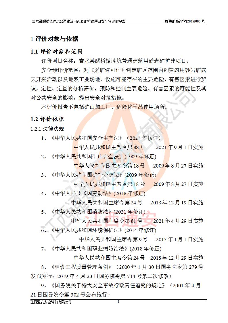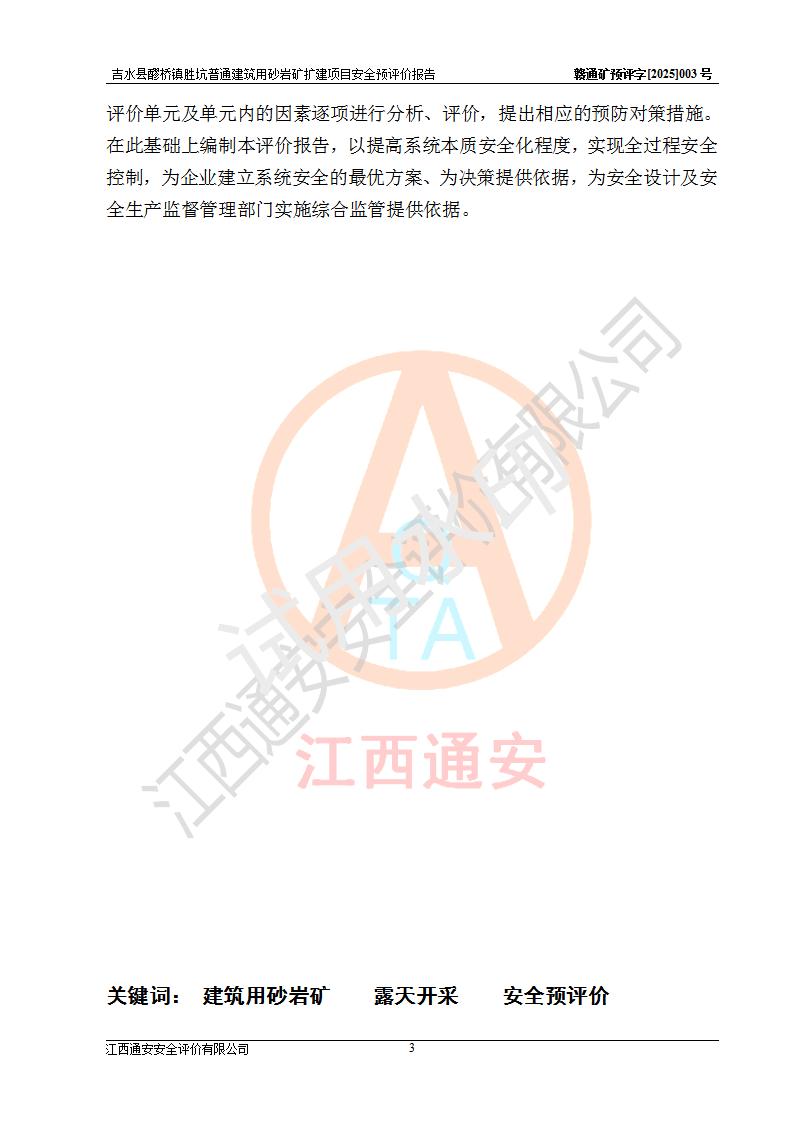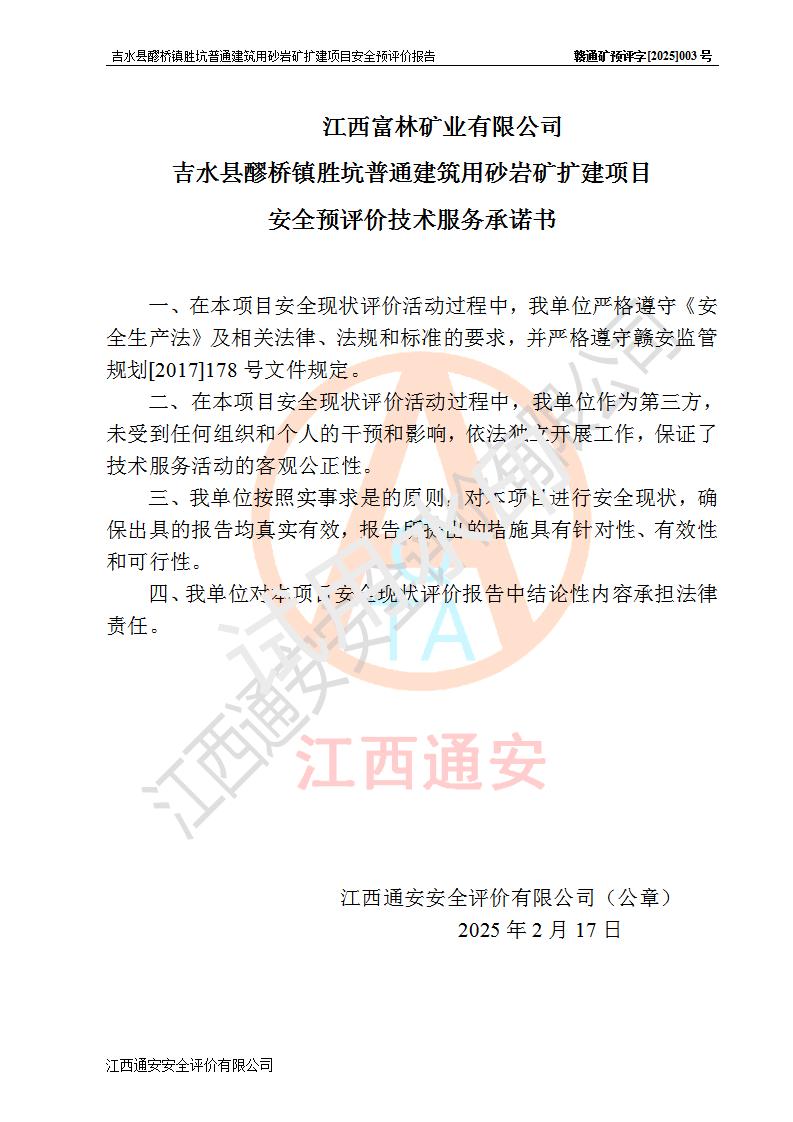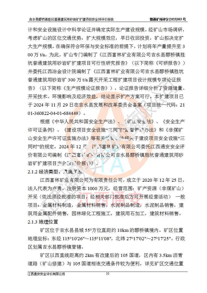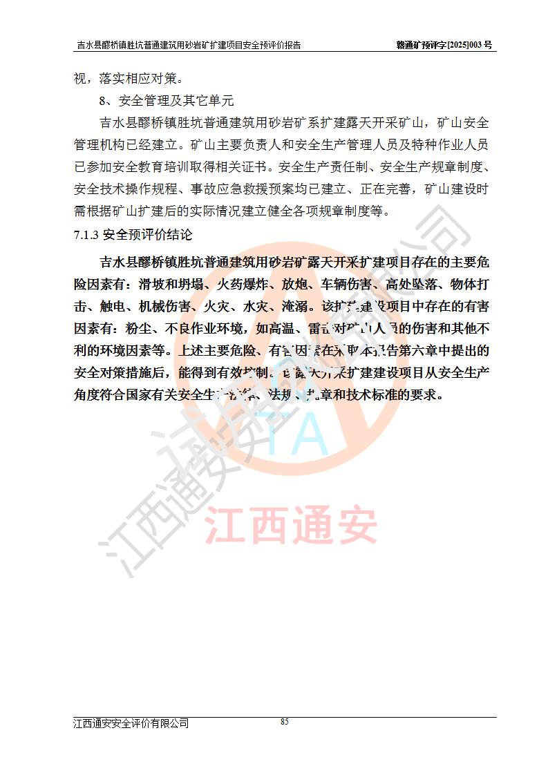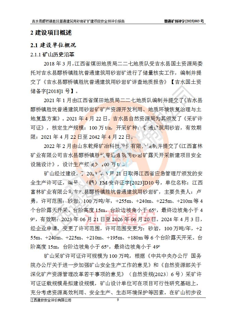 項目名稱 | 江西富林礦業(yè)有限公司吉水縣醪橋鎮(zhèn)勝坑普通建筑用砂巖礦擴建項目安全預(yù)評價報告 | ||||
