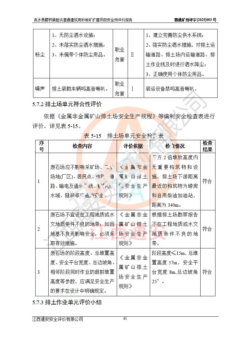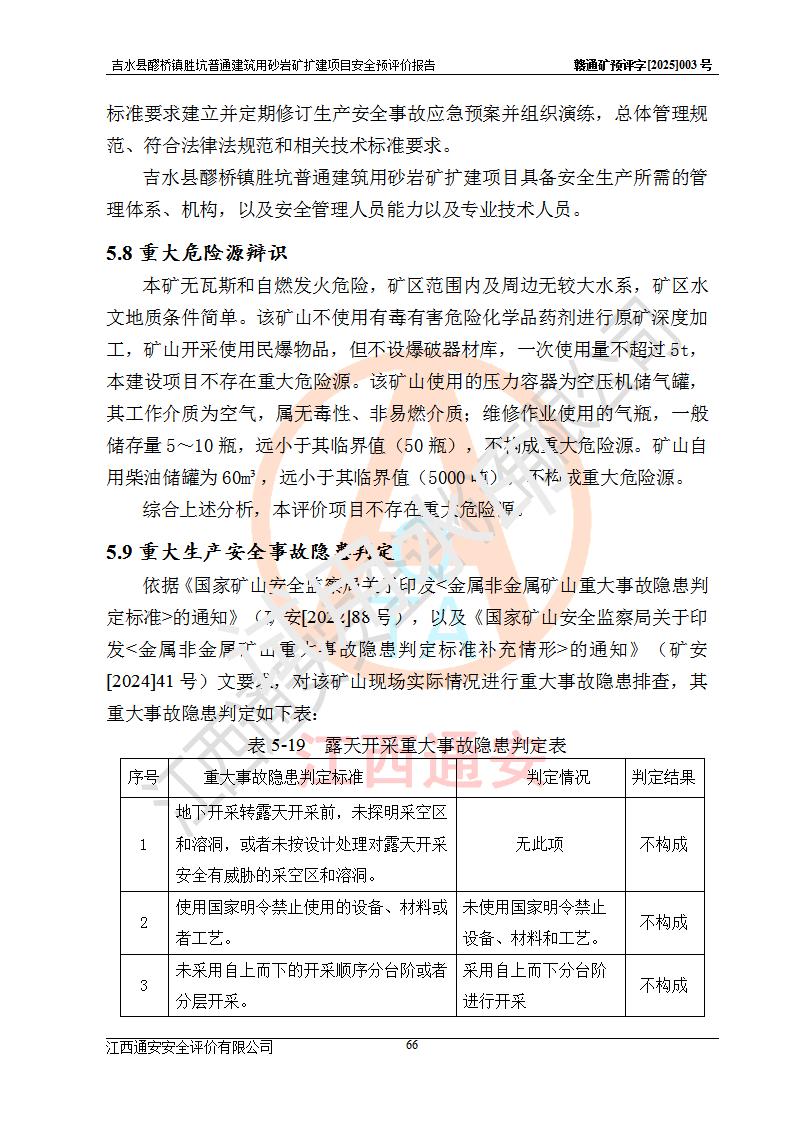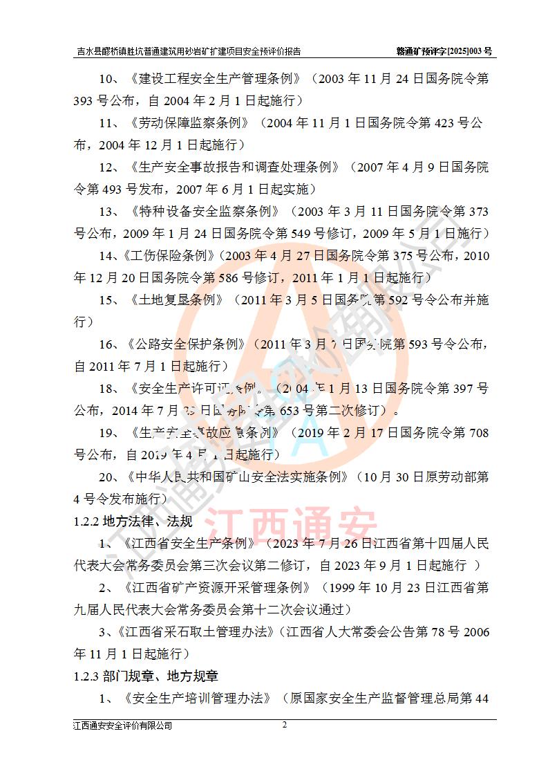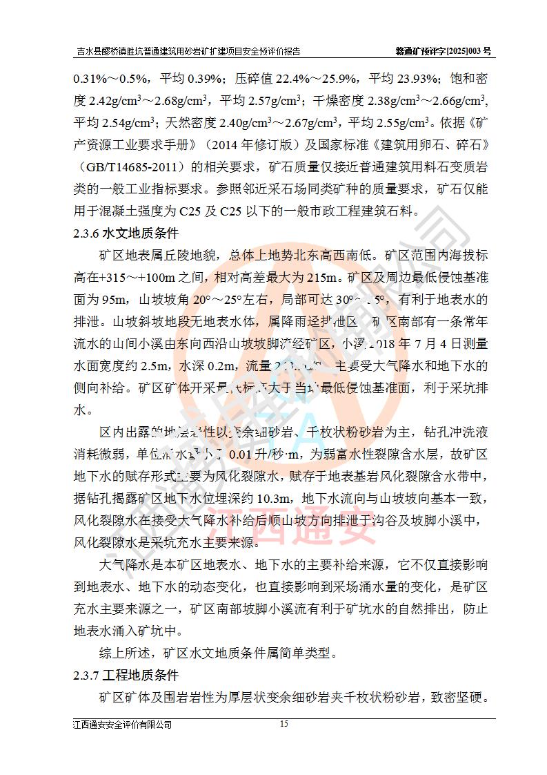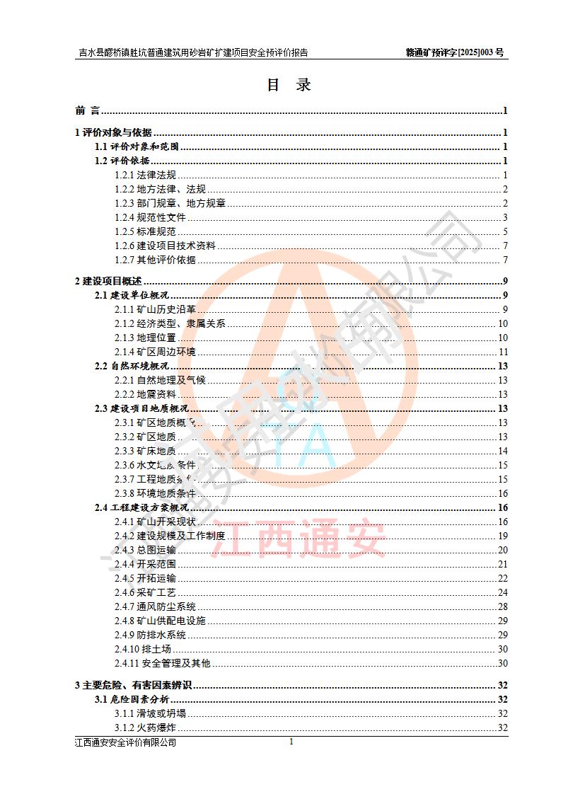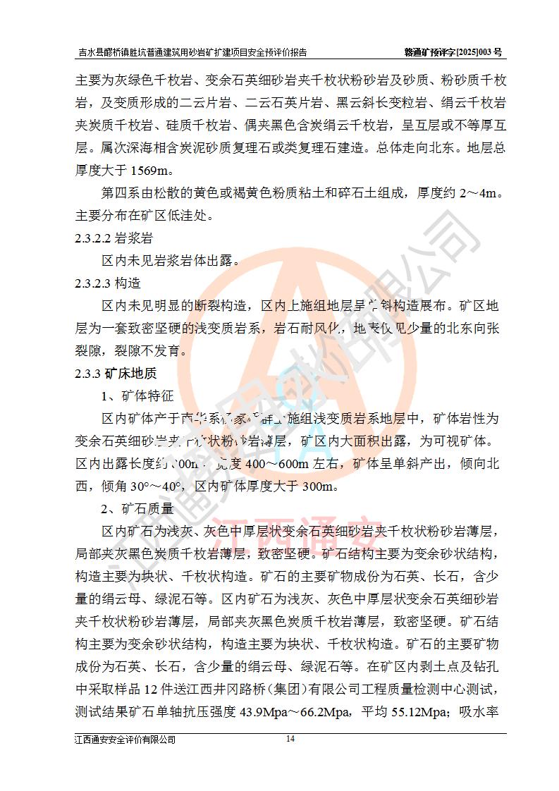項目名稱 | 江西富林礦業(yè)有限公司吉水縣醪橋鎮(zhèn)勝坑普通建筑用砂巖礦擴建項目安全預(yù)評價報告 | ||||