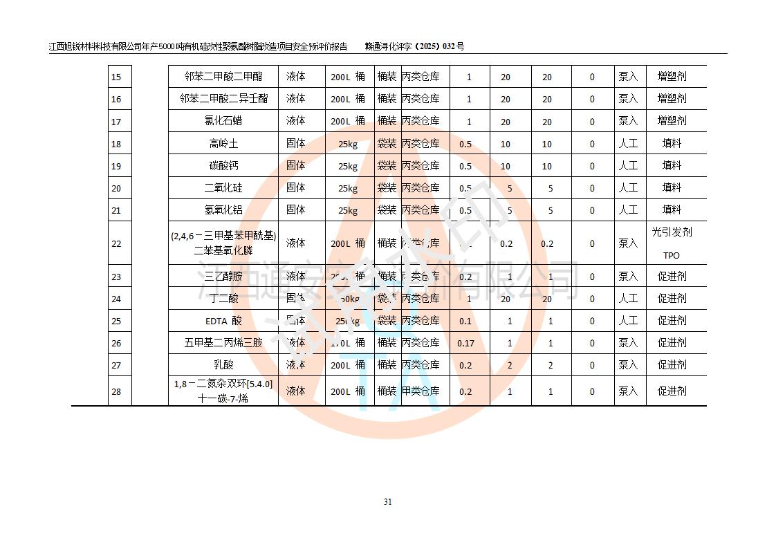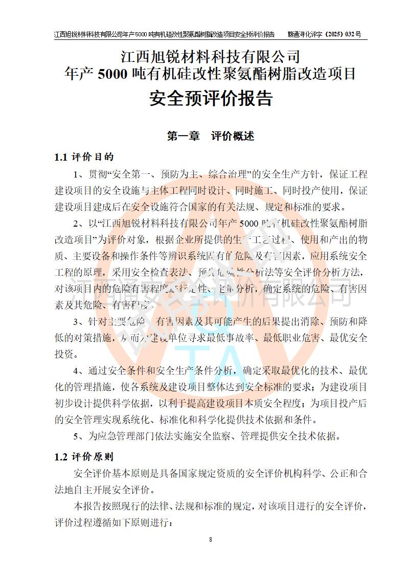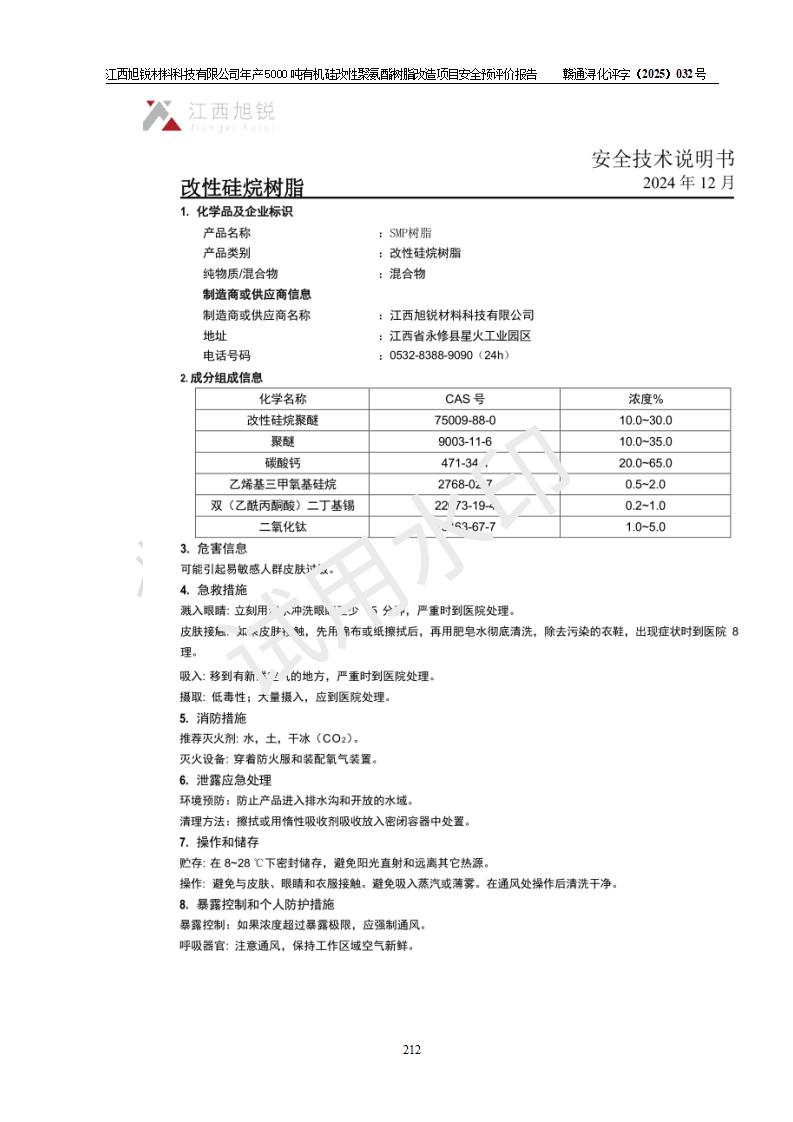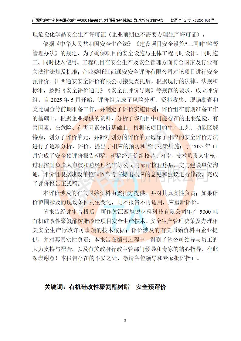 評(píng)價(jià)報(bào)告名稱 | 江西旭銳材料科技有限公司年產(chǎn)5000噸有機(jī)硅改性聚氨酯樹脂改造項(xiàng)目安全預(yù)評(píng)價(jià)報(bào)告 | |||||