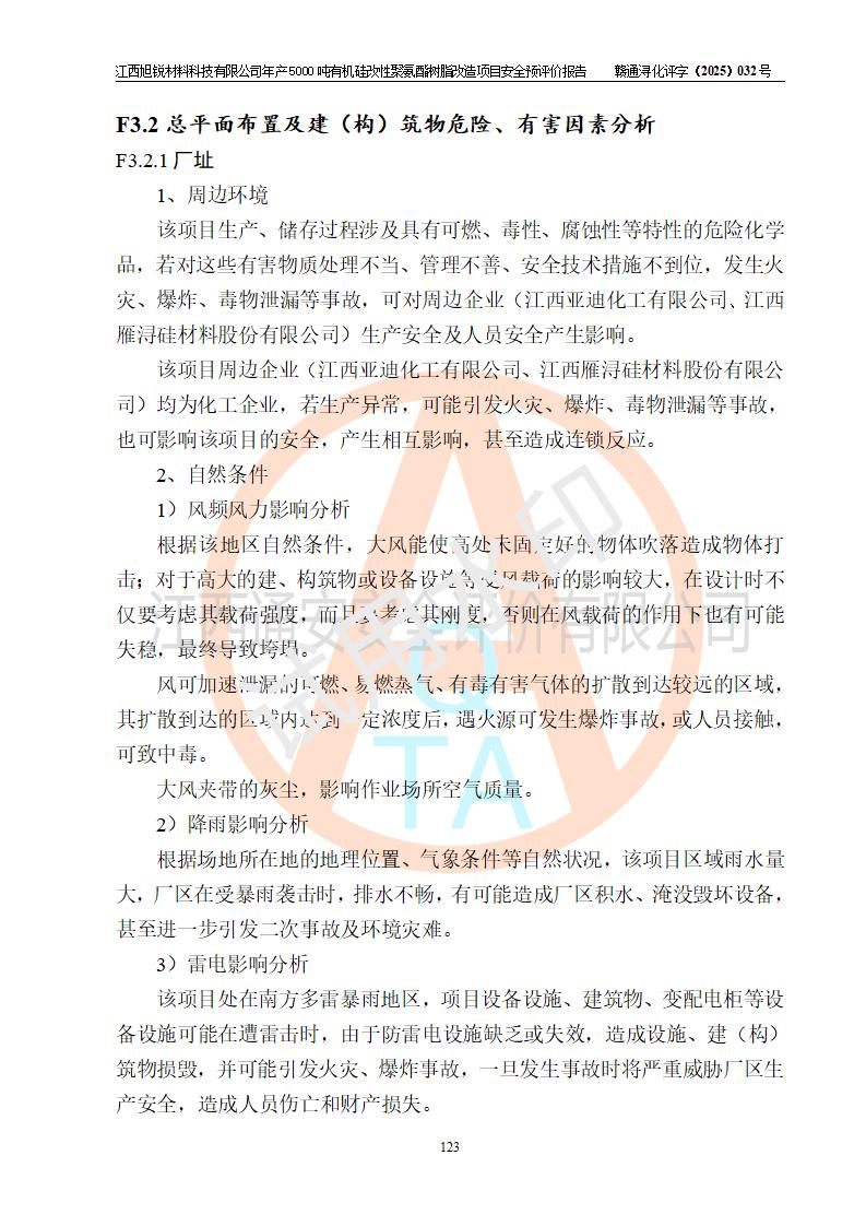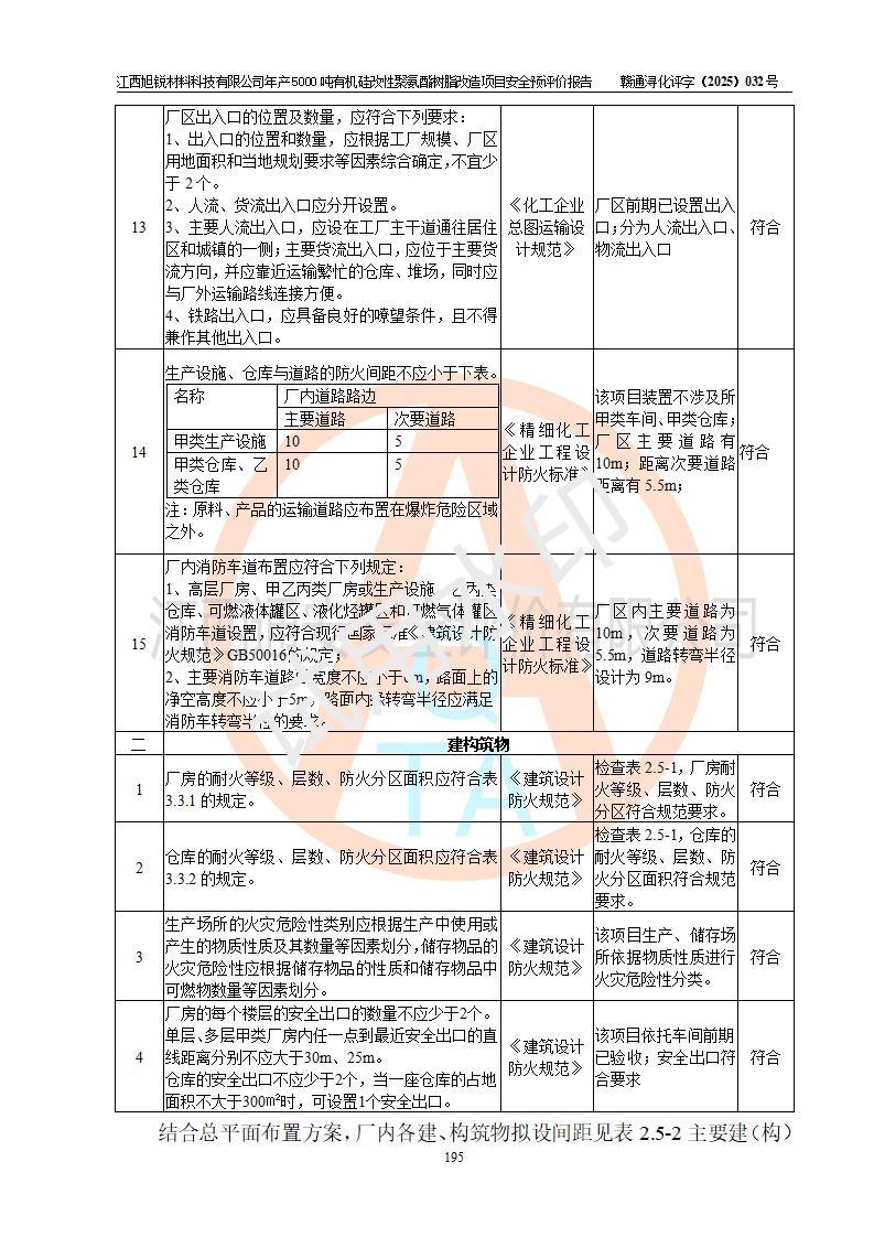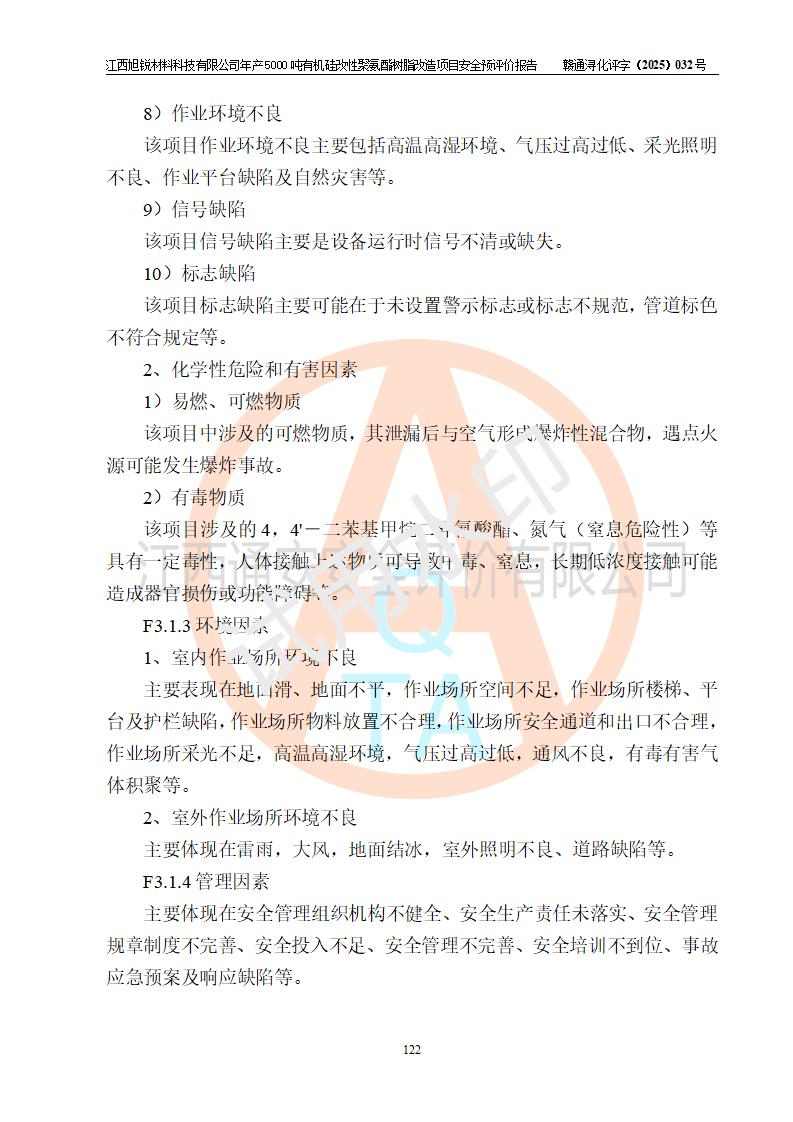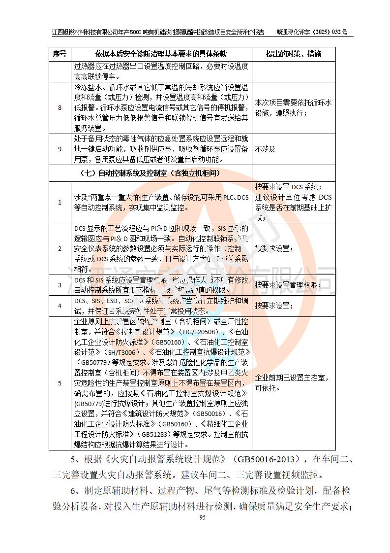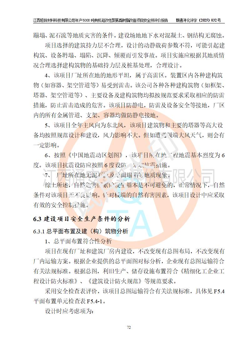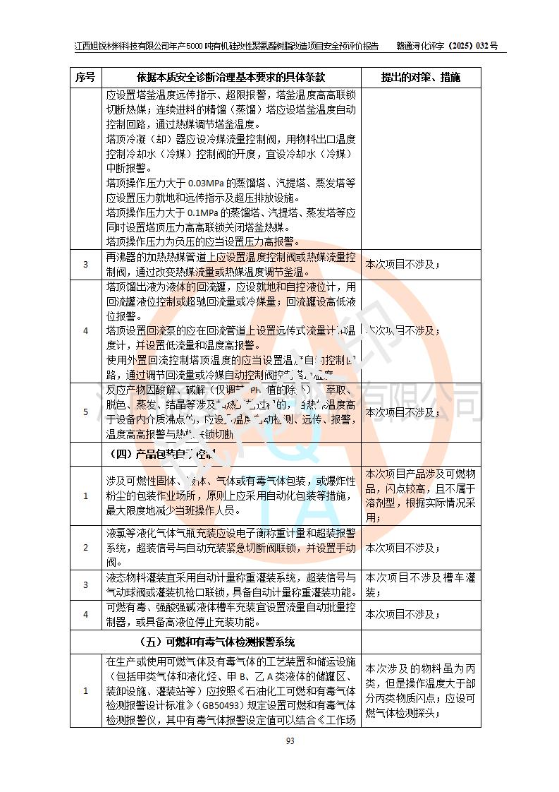 評(píng)價(jià)結(jié)論 | 江西旭銳材料科技有限公司年產(chǎn)5000噸有機(jī)硅改性聚氨酯樹脂改造項(xiàng)目的選址、總體布局、周邊環(huán)境、自然環(huán)境能滿足建設(shè)安全條件:項(xiàng)目選擇的工藝過程及設(shè)備設(shè)施的安全可靠性能達(dá)到**法規(guī)、標(biāo)準(zhǔn)規(guī)定要求。 項(xiàng)目存在的危險(xiǎn)有害因素可控,在落實(shí)本評(píng)價(jià)報(bào)告提出的有關(guān)安全對(duì)策措施后,其危險(xiǎn)有害程度能達(dá)到可以接受的程度,項(xiàng)目建設(shè)能夠?qū)崿F(xiàn)安全運(yùn)行的目標(biāo)。 | |||||