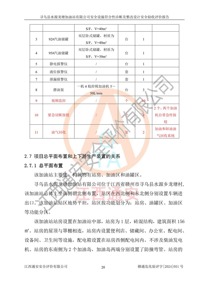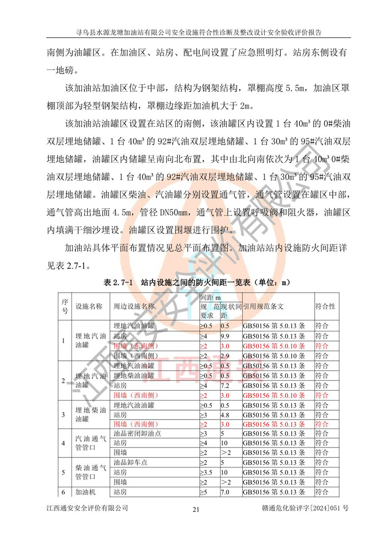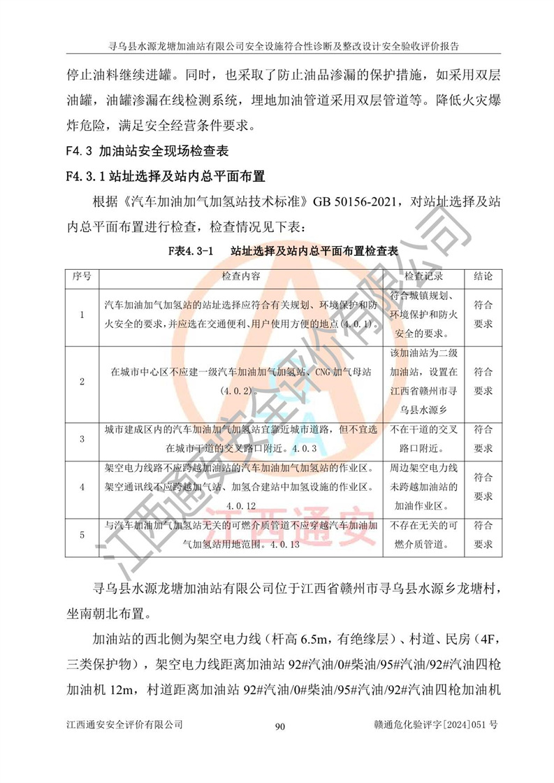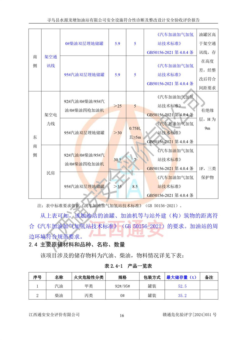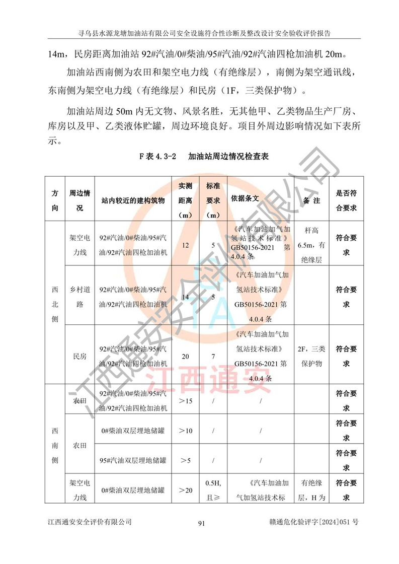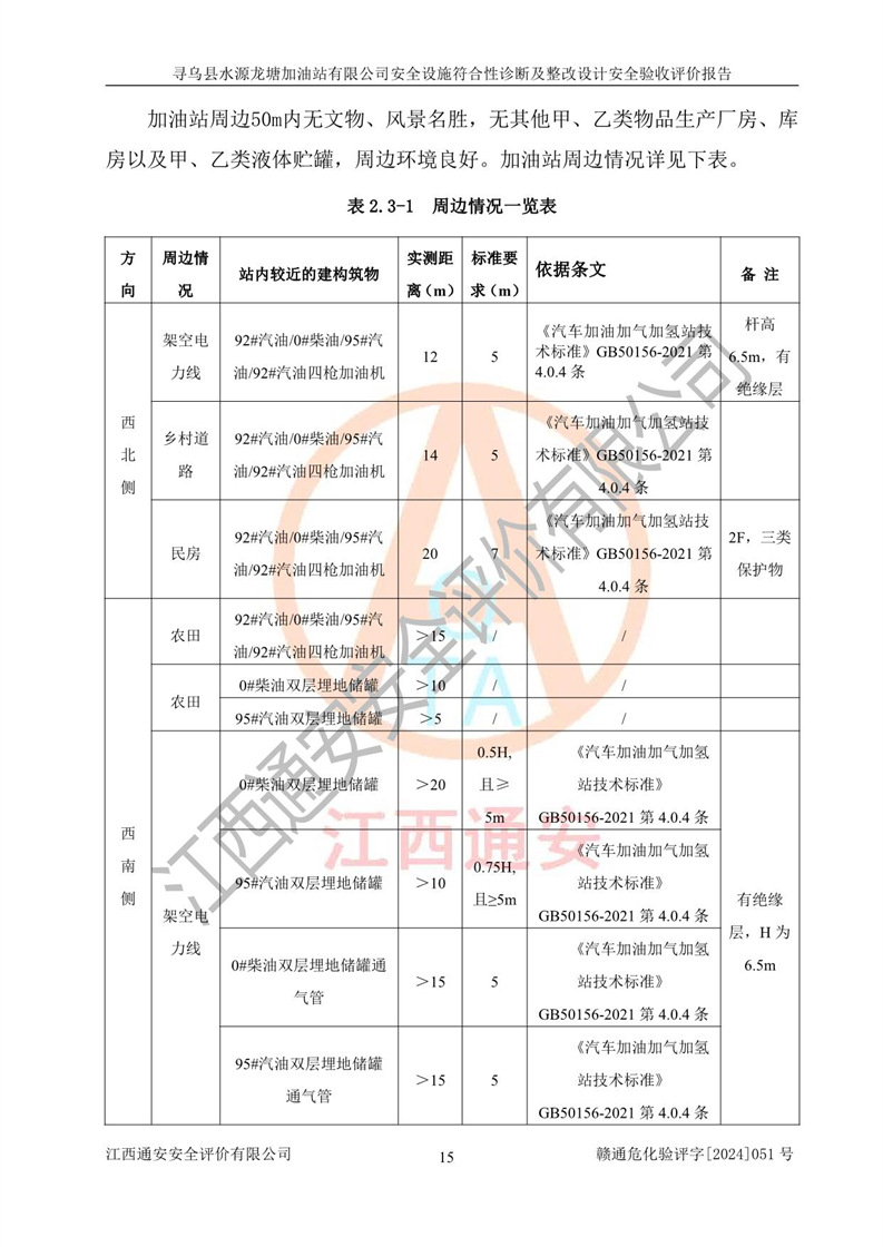 項(xiàng)目簡(jiǎn)介 | 尋烏縣水源龍?zhí)良佑驼居邢薰臼且患覐氖?/span>汽油、柴油零售經(jīng)營(yíng)的企業(yè)。該企業(yè)于2023年09月13日經(jīng)尋烏縣行政審批局核準(zhǔn)注冊(cè)成立,營(yíng)業(yè)場(chǎng)所位于江西省贛州市尋烏縣水源鄉(xiāng)龍?zhí)链濉儆谟邢挢?zé)任公司(自然人投資或控股),法定**人陳文騰,營(yíng)業(yè)執(zhí)照統(tǒng)一社會(huì)信用代碼為:91360734MACXJ3BU63。營(yíng)業(yè)執(zhí)照核準(zhǔn)經(jīng)營(yíng)范圍:煙草制品零售(依法須經(jīng)批準(zhǔn)的項(xiàng)目,經(jīng)相關(guān)部門批準(zhǔn)后在許可**期內(nèi)方可開(kāi)展經(jīng)營(yíng)活動(dòng),具體經(jīng)營(yíng)項(xiàng)目和許可期限以相關(guān)部門批準(zhǔn)文件或許可證件為準(zhǔn)) 一般項(xiàng)目:充電樁銷售,潤(rùn)滑油銷售,化工產(chǎn)品銷售(不含許可類化工產(chǎn)品),機(jī)械設(shè)備銷售,日用百貨銷售,日用雜品銷售,洗車服務(wù),食品銷售(僅銷售預(yù)包裝食品),保健食品(預(yù)包裝)銷售,技術(shù)服務(wù)、技術(shù)開(kāi)發(fā)、技術(shù)咨詢、技術(shù)交流、技術(shù)**、技術(shù)推廣(除依法須經(jīng)批準(zhǔn)的項(xiàng)目外,憑營(yíng)業(yè)執(zhí)照依法自主開(kāi)展經(jīng)營(yíng)活動(dòng))。 加油站現(xiàn)儲(chǔ)存規(guī)模:貯罐3臺(tái):0#柴油儲(chǔ)罐1臺(tái),儲(chǔ)罐容積為40m3、92#汽油儲(chǔ)罐1臺(tái),儲(chǔ)罐容積為40m3、95#汽油儲(chǔ)罐1臺(tái),儲(chǔ)罐為30m3,總?cè)萘繛?/span>110m3,折合汽油為90m3,屬二級(jí)加油站,汽油卸油、加油設(shè)置了油氣回收系統(tǒng)。該加油站原為尋烏縣水源鄉(xiāng)加油站,由于土地性質(zhì)問(wèn)題及其他歷史遺留問(wèn)題,尋烏縣**于2019年將尋烏縣水源鄉(xiāng)加油站收回并暫停經(jīng)營(yíng),根據(jù)尋府辦字[2021]61 號(hào)文件《關(guān)于印發(fā)尋烏縣民營(yíng)加油站資產(chǎn)處置工作方案的通知》,尋烏縣水源龍?zhí)良佑驼居邢薰痉ㄈ?*陳文騰于2023年9月1日通過(guò)**公開(kāi)拍賣的方式收購(gòu)了尋烏縣水源鄉(xiāng)加油站。該站于2018年1月2日經(jīng)原贛州市安全生產(chǎn)監(jiān)督管理局核準(zhǔn),換發(fā)了《危險(xiǎn)化學(xué)品經(jīng)營(yíng)許可證》,證書(shū)編號(hào):贛虔安經(jīng)(甲)字[2017]00516,許可經(jīng)營(yíng)范圍:汽油、柴油,經(jīng)營(yíng)方式:零售。**期2017年12月26日至2020年12月25日。。