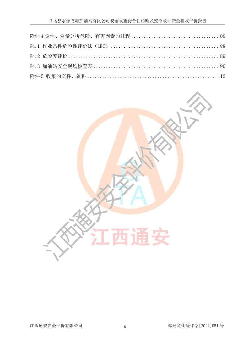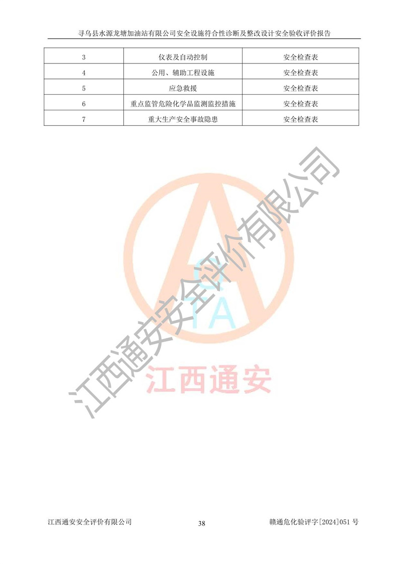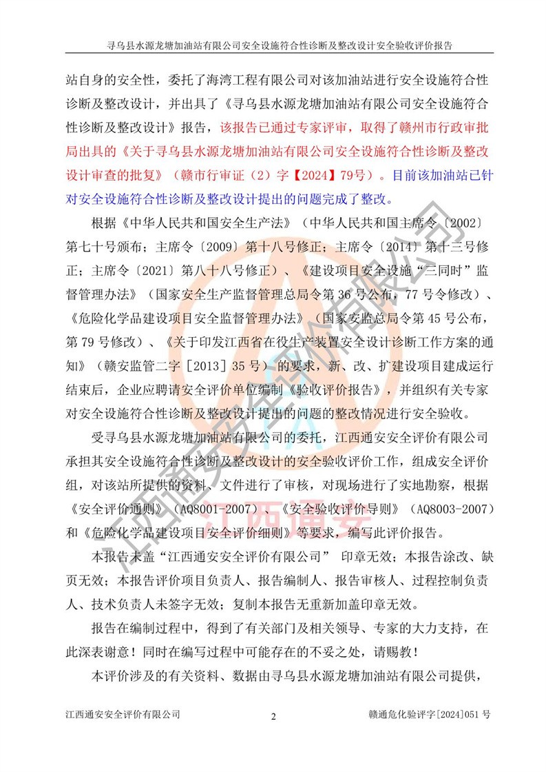 項(xiàng)目名稱 | 尋烏縣水源龍?zhí)良佑驼居邢薰驹谝垩b置安全設(shè)施診斷設(shè)計(jì)安全驗(yàn)收評(píng)價(jià)報(bào)告 | ||||