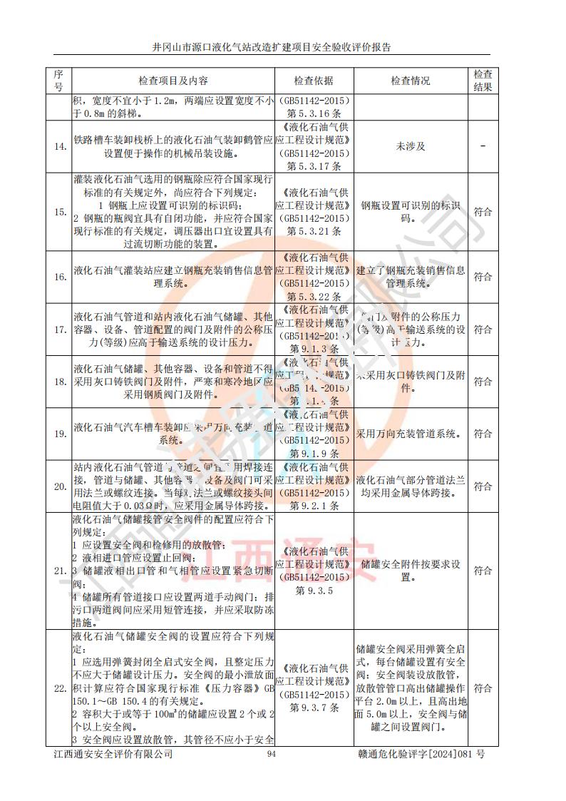 評(píng)價(jià)報(bào)告名稱 | 井岡山市源口液化氣站改造擴(kuò)建項(xiàng)目安全驗(yàn)收評(píng)價(jià)報(bào)告 | |||