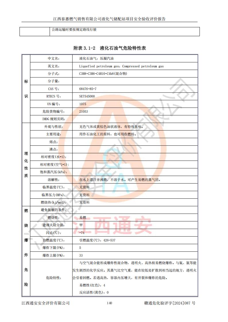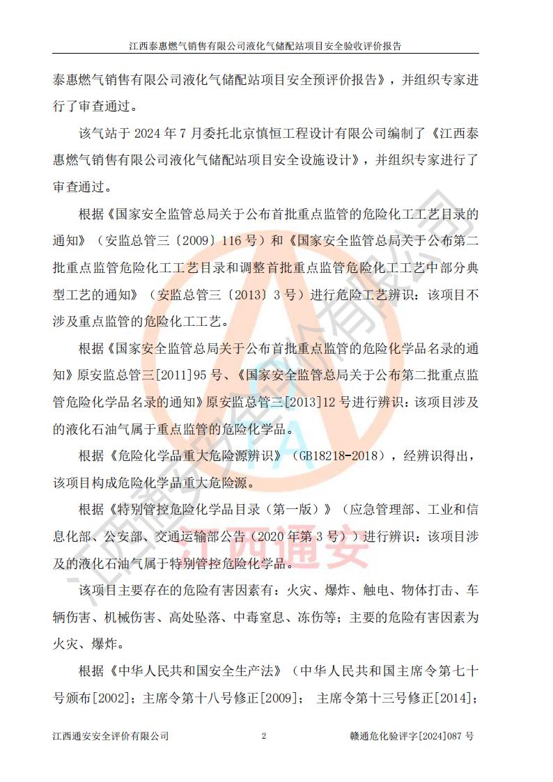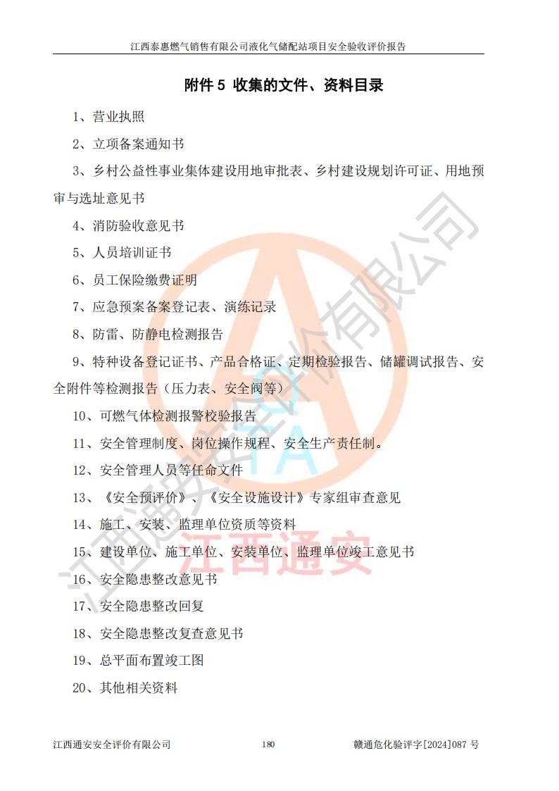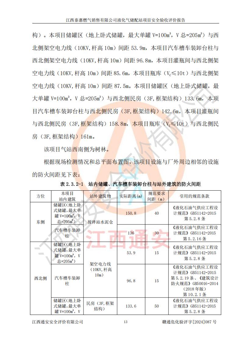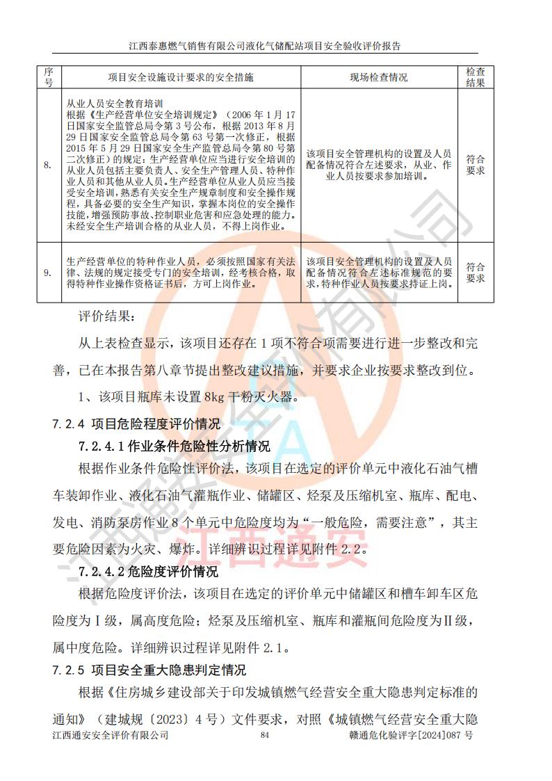 項(xiàng)目名稱 | 江西泰惠燃?xì)怃N售有限公司液化氣儲(chǔ)配站項(xiàng)目安全驗(yàn)收評(píng)價(jià)報(bào)告 | ||||