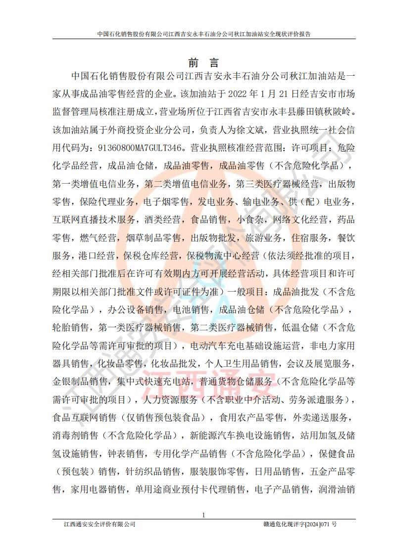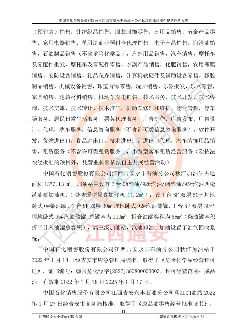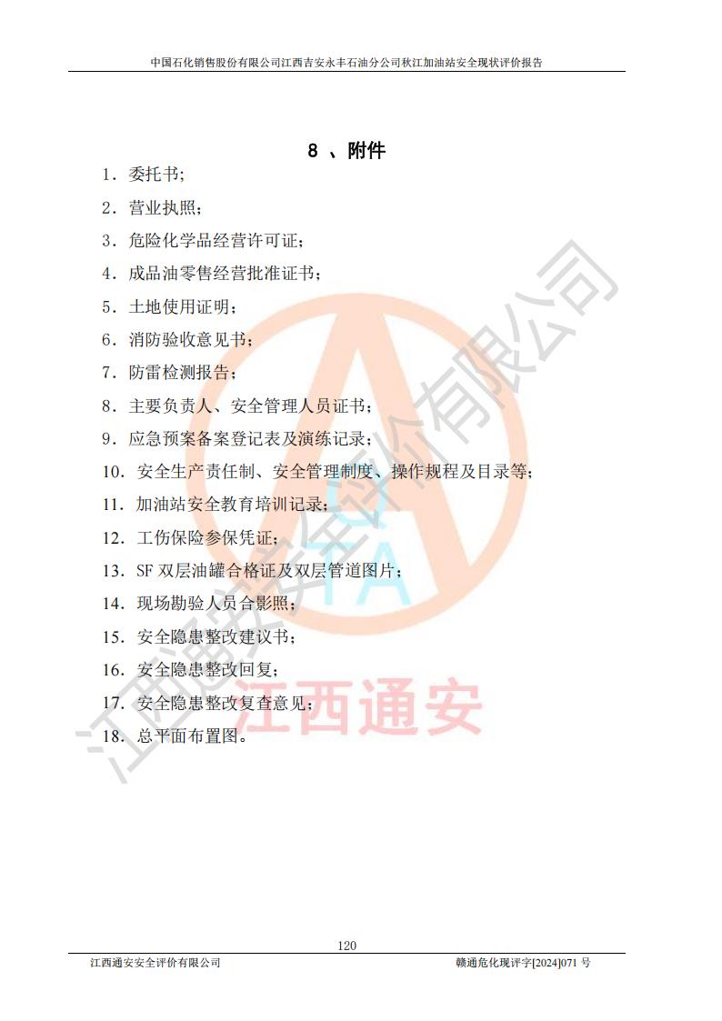 評價報(bào)告名稱 | 江西高速實(shí)業(yè)開發(fā)有限公司吉安服務(wù)區(qū)西加油站改造項(xiàng)目安全驗(yàn)收狀評價報(bào)告 | |||