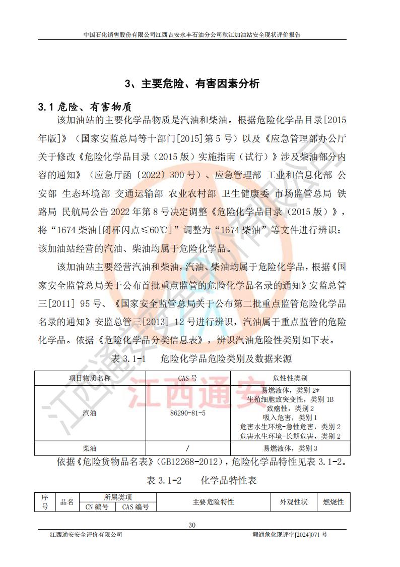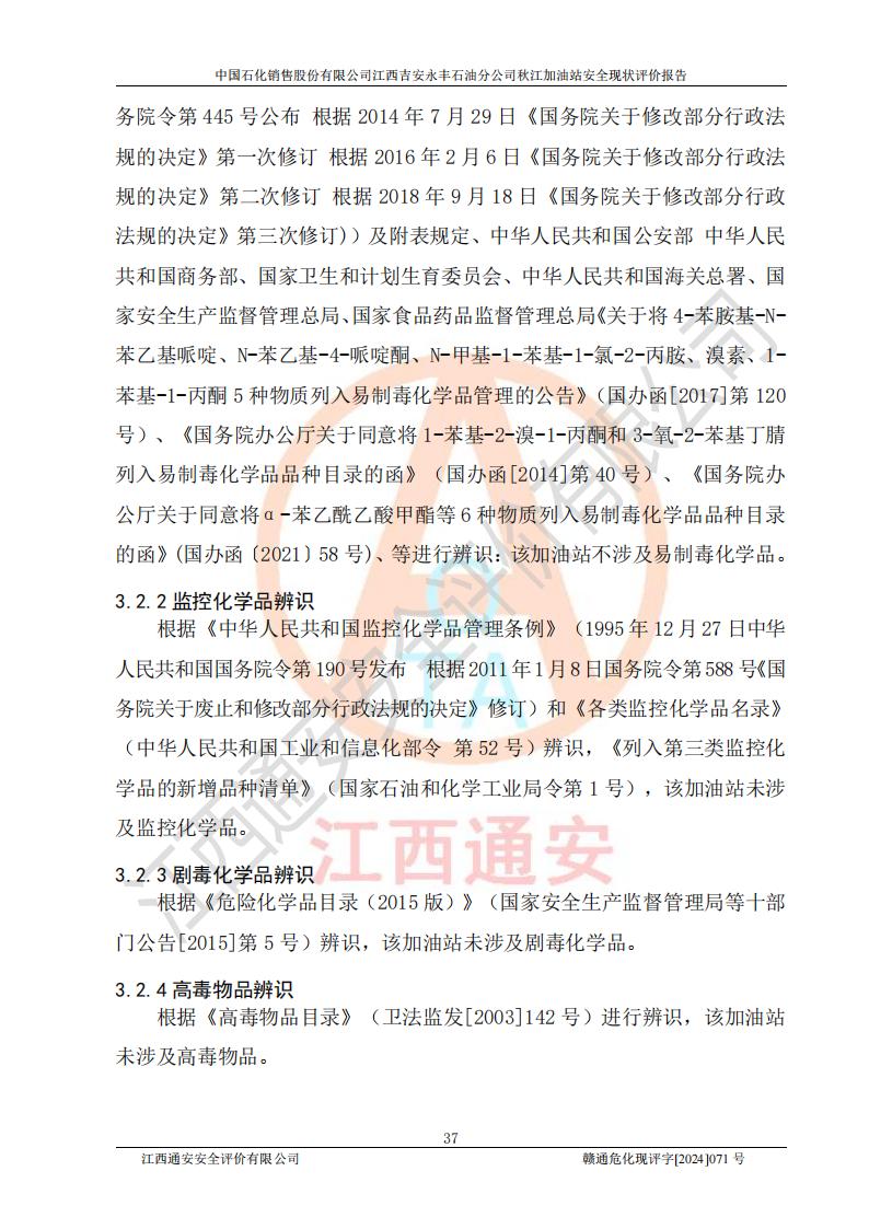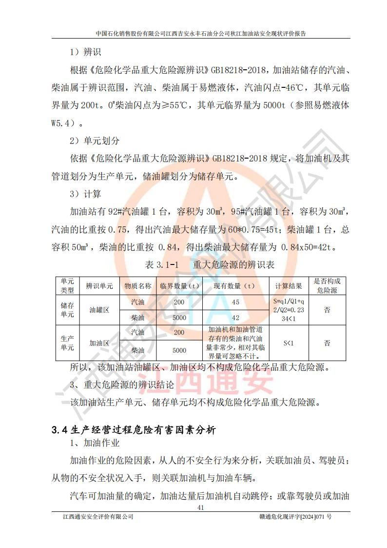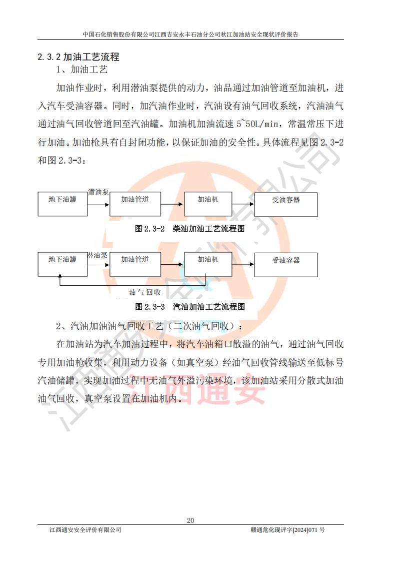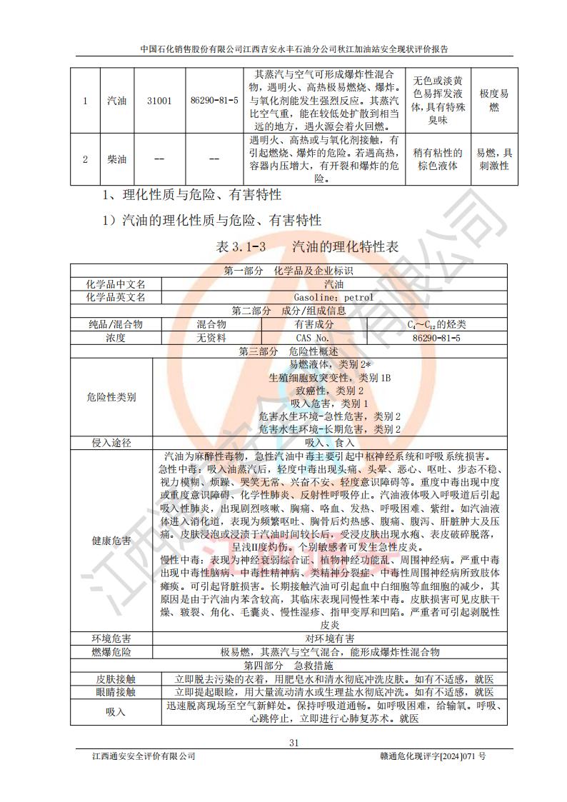 項(xiàng)目簡介 | 江西高速實(shí)業(yè)開發(fā)有限公司吉安服務(wù)區(qū)西加油站成立于2021年9月22日,企業(yè)類型:其他有限責(zé)任公司分公司,法定**人余勇。 江西高速實(shí)業(yè)開發(fā)有限公司吉安服務(wù)區(qū)西加油站2024年8月30日取得由吉安縣發(fā)展和改革委員會出具的《江西省企業(yè)投資項(xiàng)目備案通知書》,項(xiàng)目統(tǒng)一代碼為:2408-360821-04-01-467493,項(xiàng)目名稱:江西高速實(shí)業(yè)開發(fā)有限公司吉安服務(wù)區(qū)西加油站改造項(xiàng)目。 江西高速實(shí)業(yè)開發(fā)有限公司吉安服務(wù)區(qū)西加油站位于江西省吉安市吉安縣大廣高速吉安東區(qū)服務(wù)區(qū)(橫江段),加油站租賃江西贛粵實(shí)業(yè)發(fā)展有限公司用地。該加油站設(shè)有的1座503的0#柴油埋地臥式雙層貯罐、2座50m3的92#汽油埋地臥式油罐、1座50m3的95#汽油埋地臥式雙層油罐、1座30m3的95#汽油埋地臥式雙層油罐;*大存儲量為230m3,實(shí)際油品折算總?cè)萘繛?05m3(柴油折半),屬于**加油站。 江西高速實(shí)業(yè)開發(fā)有限公司吉安服務(wù)區(qū)西加油站2024年9月委托山東新安達(dá)工程咨詢有限公司編制《江西高速實(shí)業(yè)開發(fā)有限公司吉安服務(wù)區(qū)西加油站改造項(xiàng)目安全條件評價報(bào)告》,并于2024年9月13日取得《危險化學(xué)品建設(shè)項(xiàng)目安全條件備案告知意見書》(吉市危化項(xiàng)目安條審字[2024]9號)。 江西高速實(shí)業(yè)開發(fā)有限公司吉安服務(wù)區(qū)西加油站改造項(xiàng)目2024年11月委托天津中德工程設(shè)計(jì)有限公司編制《江西高速實(shí)業(yè)開發(fā)有限公司吉安服務(wù)區(qū)西加油站改造項(xiàng)目安全設(shè)施設(shè)計(jì)專篇》,并于2024年11月14日取得《危險化學(xué)品建設(shè)項(xiàng)目安全設(shè)施設(shè)計(jì)審查意見書》(吉市危化項(xiàng)目安設(shè)審字[2024]31號)。 項(xiàng)目生產(chǎn)過程中涉及的危險化學(xué)品有:汽油、柴油等。 項(xiàng)目各生產(chǎn)和儲存單元均未構(gòu)成危險化學(xué)品重大危險源。 | |||
