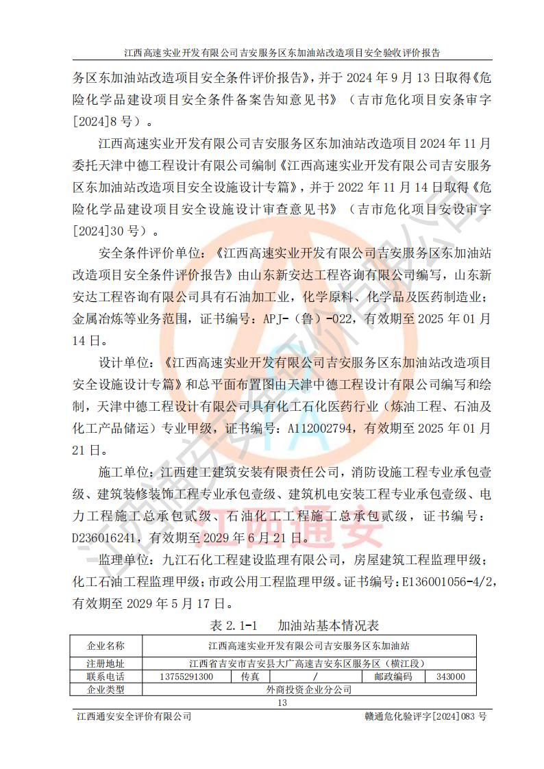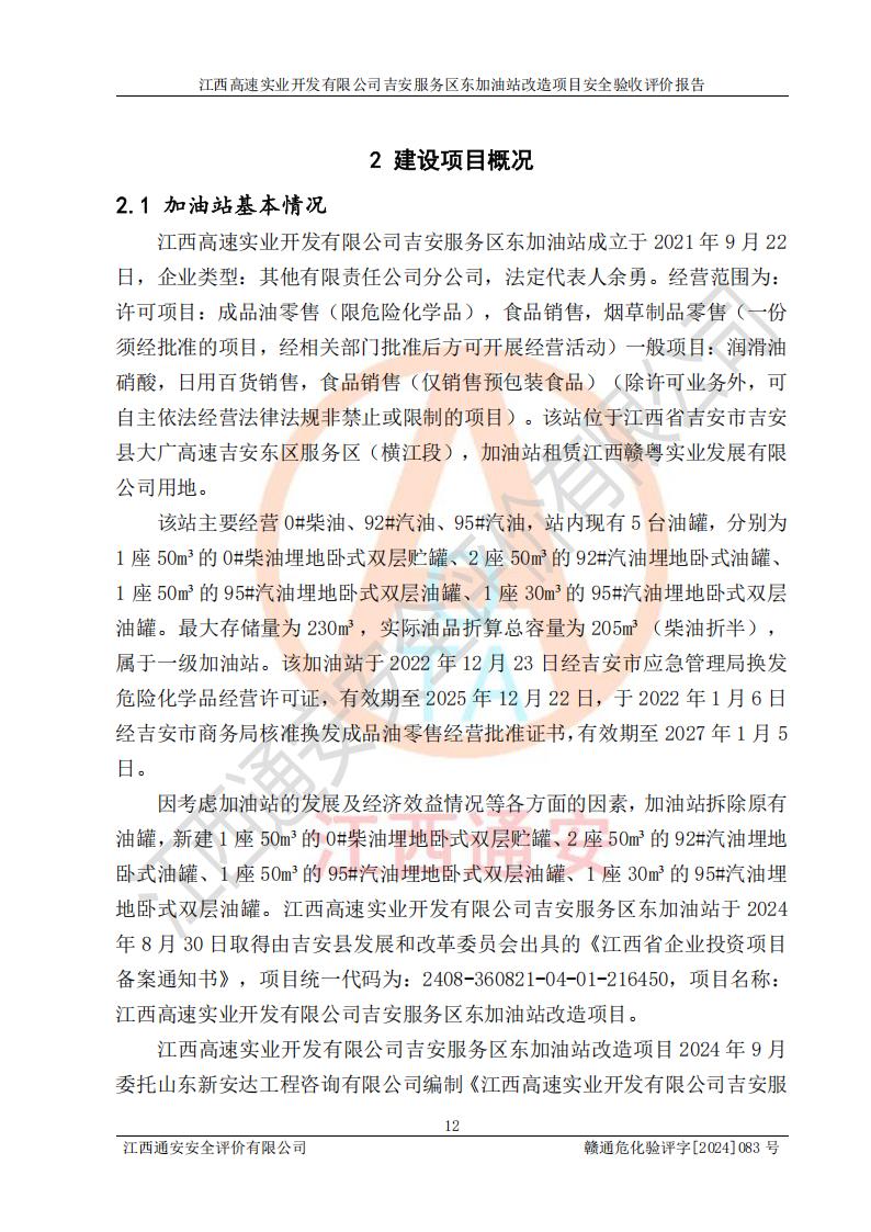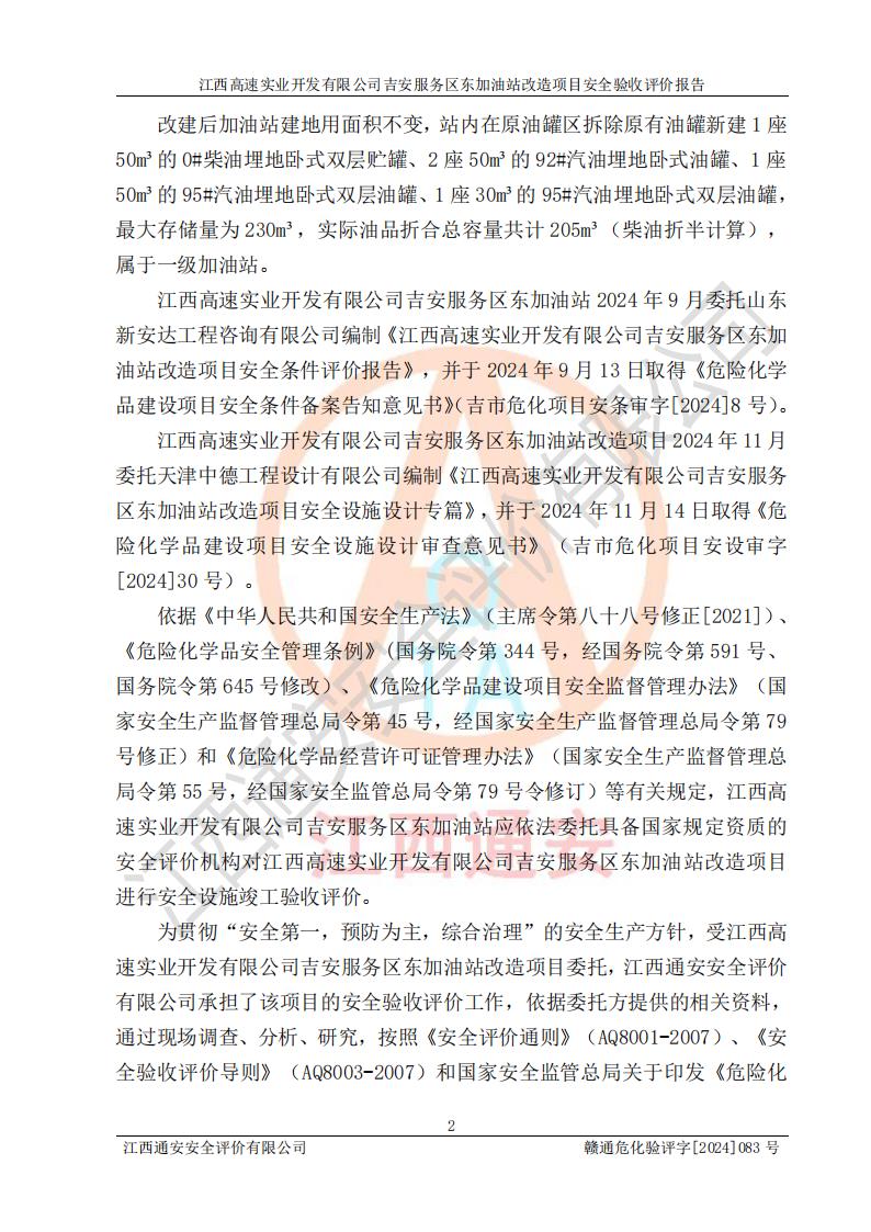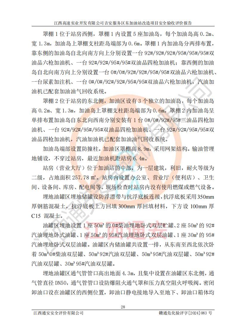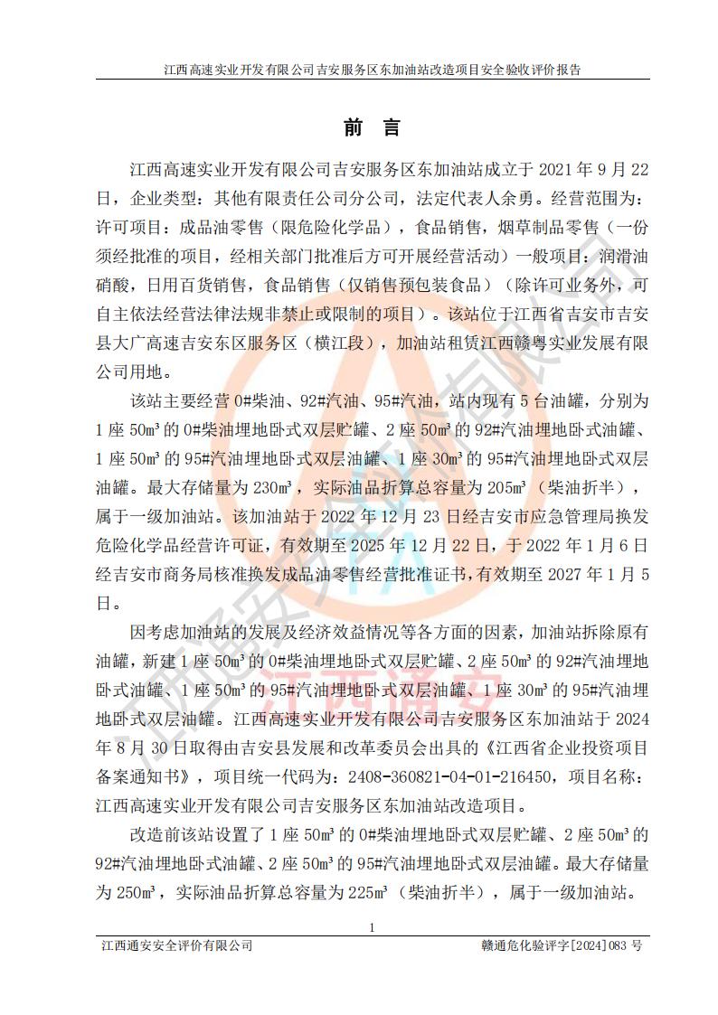 評價報告名稱 | 江西高速實業(yè)開發(fā)有限公司吉安服務區(qū)東加油站改造項目安全驗收狀評價報告 | |||