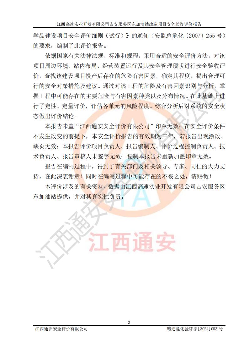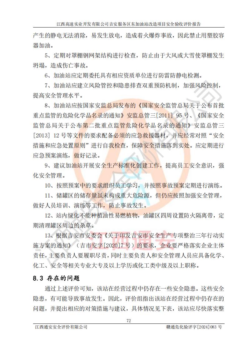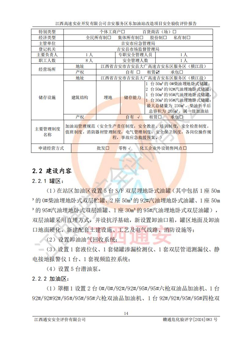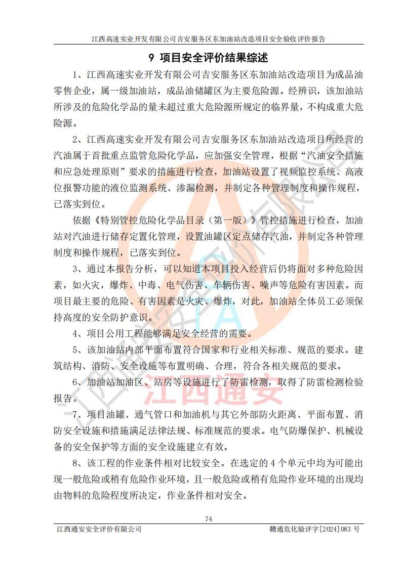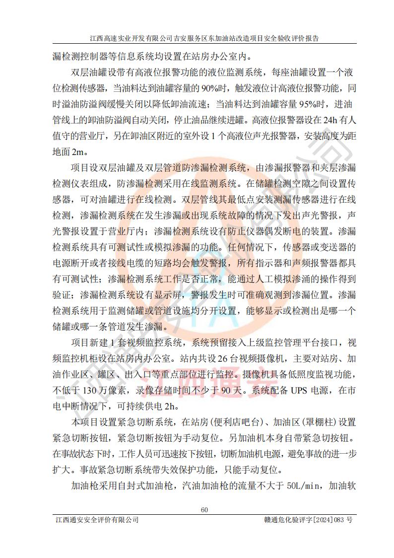 評價報告名稱 | 江西高速實業(yè)開發(fā)有限公司吉安服務區(qū)東加油站改造項目安全驗收狀評價報告 | |||