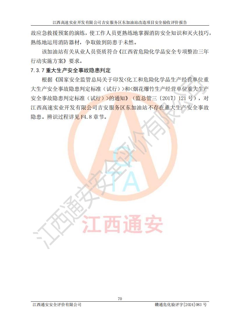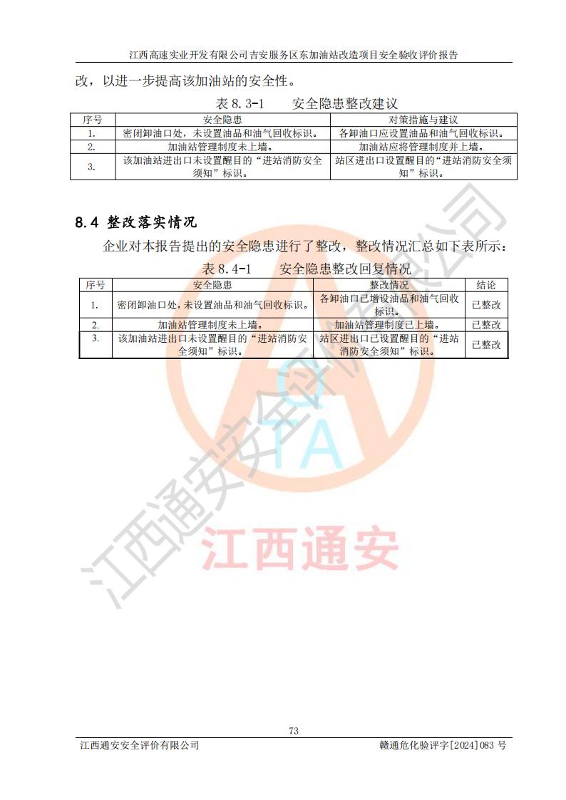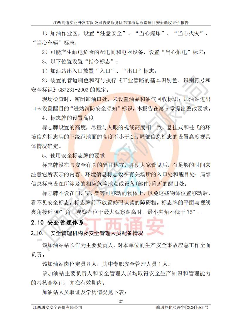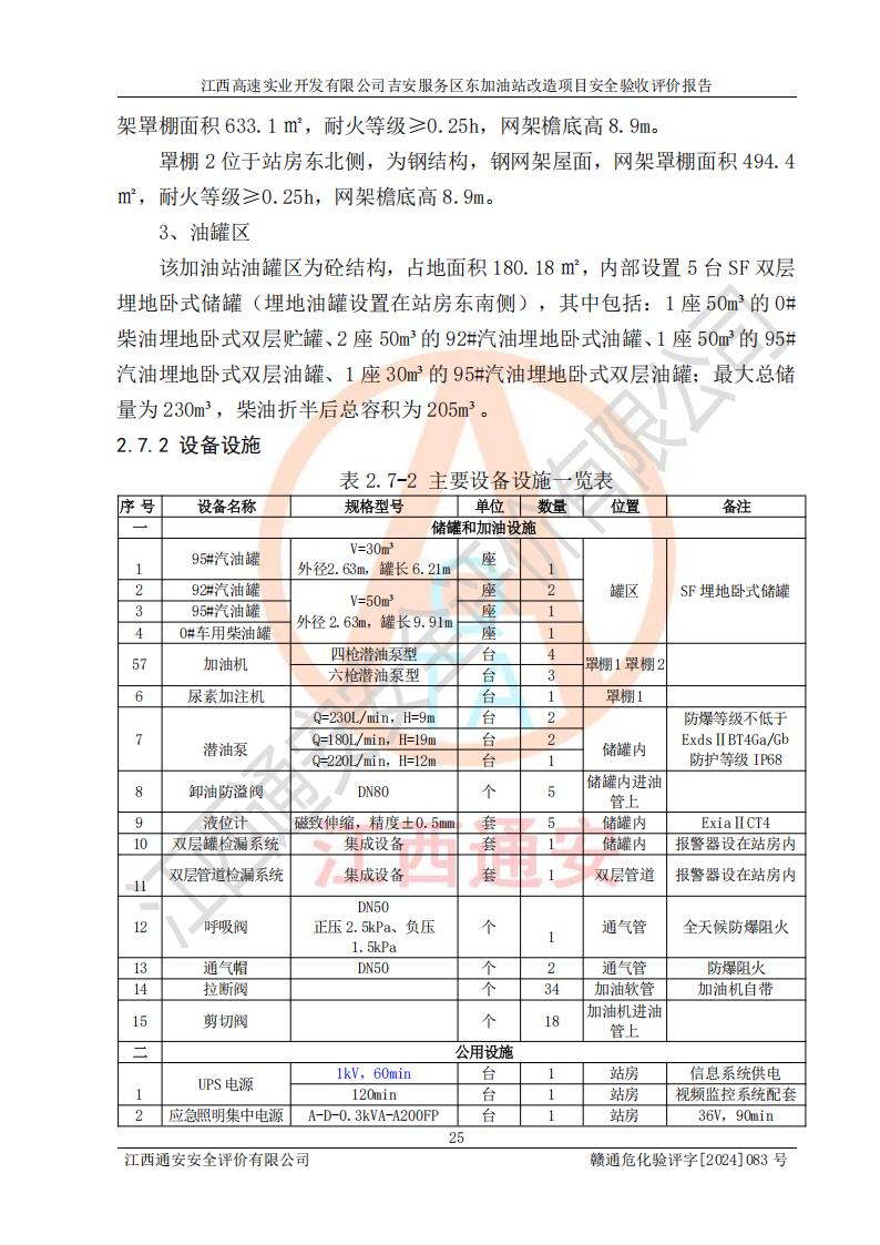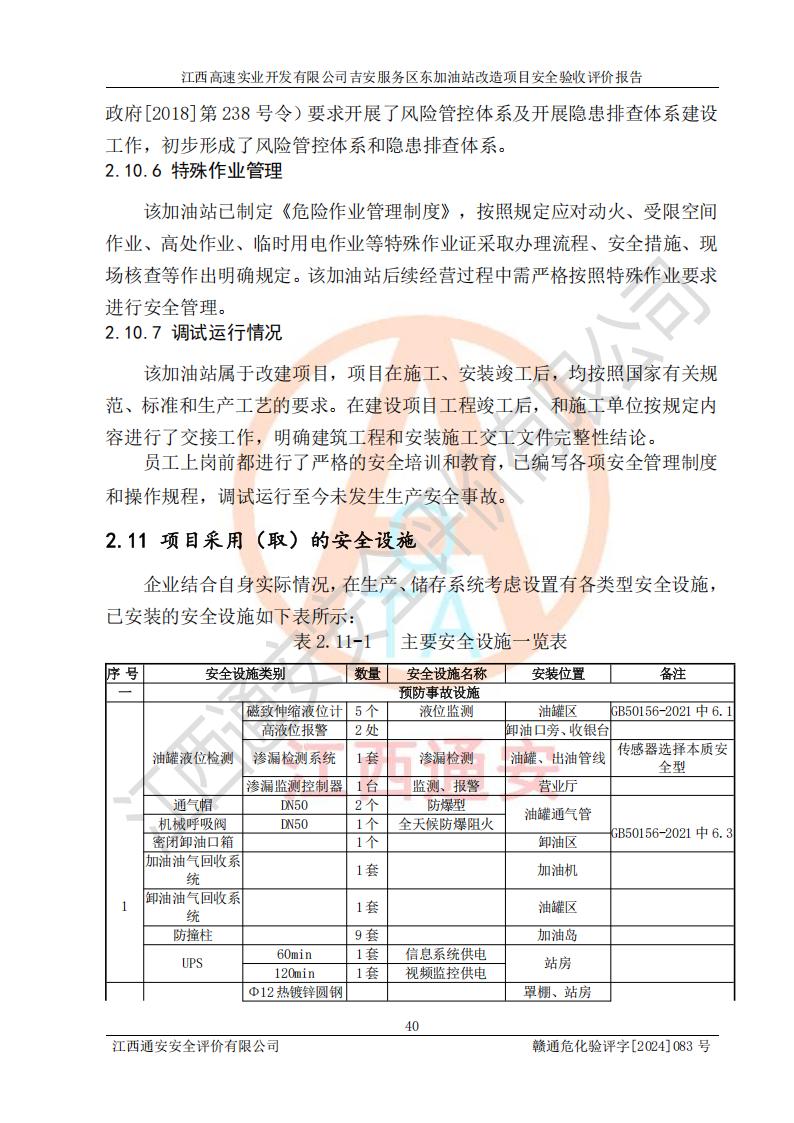 評價報告名稱 | 江西高速實業(yè)開發(fā)有限公司吉安服務區(qū)東加油站改造項目安全驗收狀評價報告 | |||