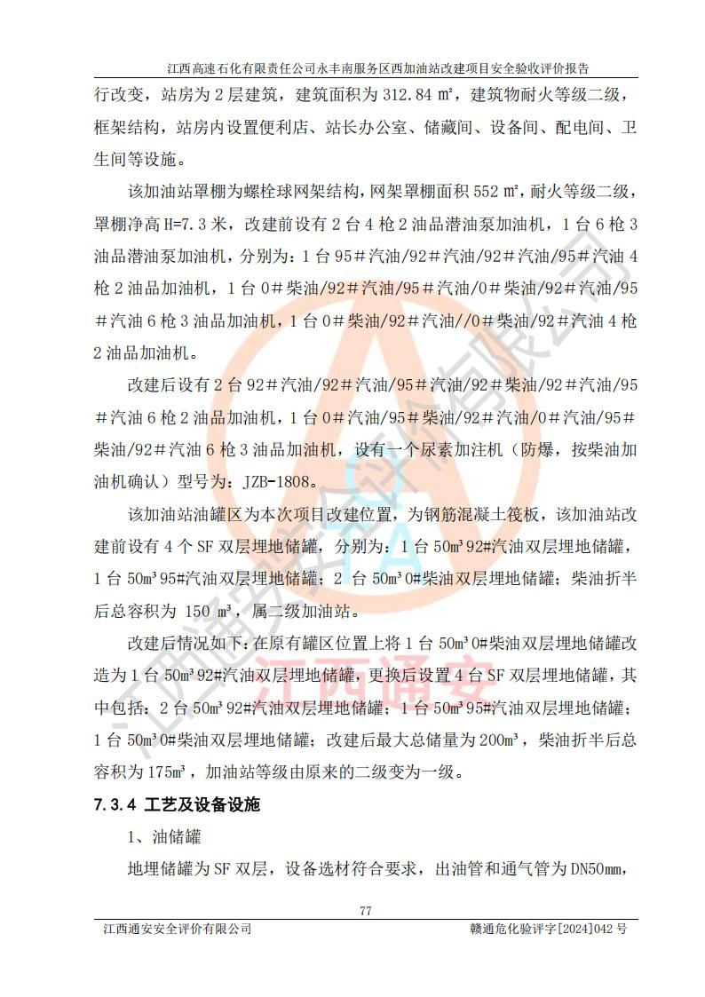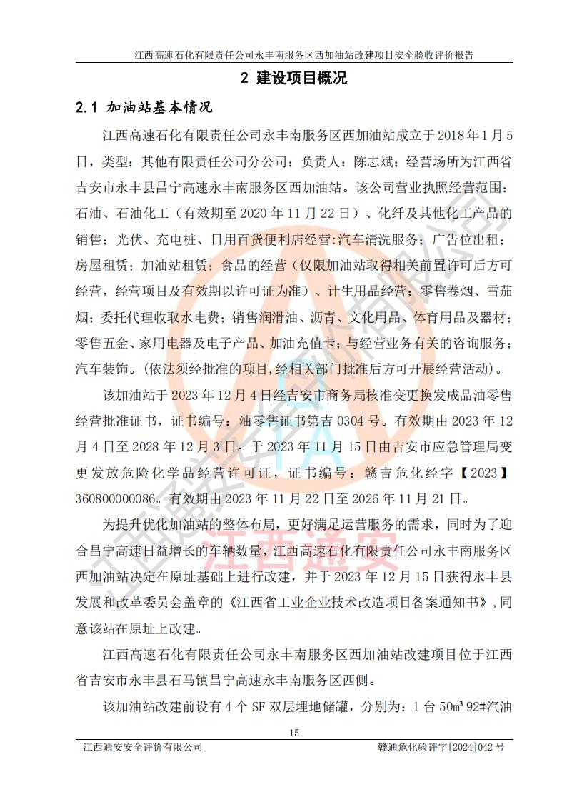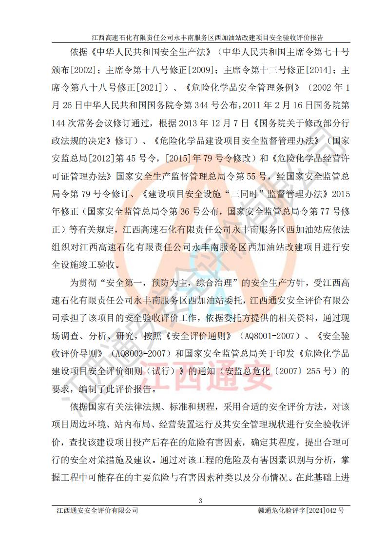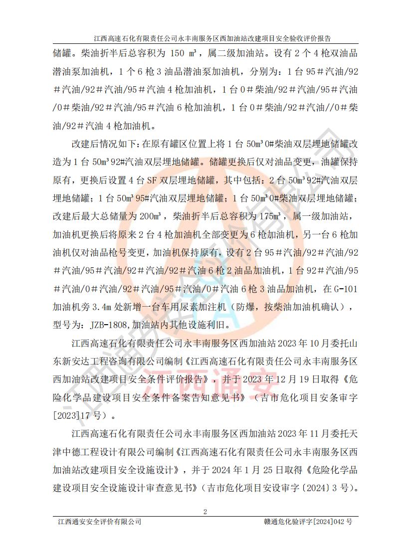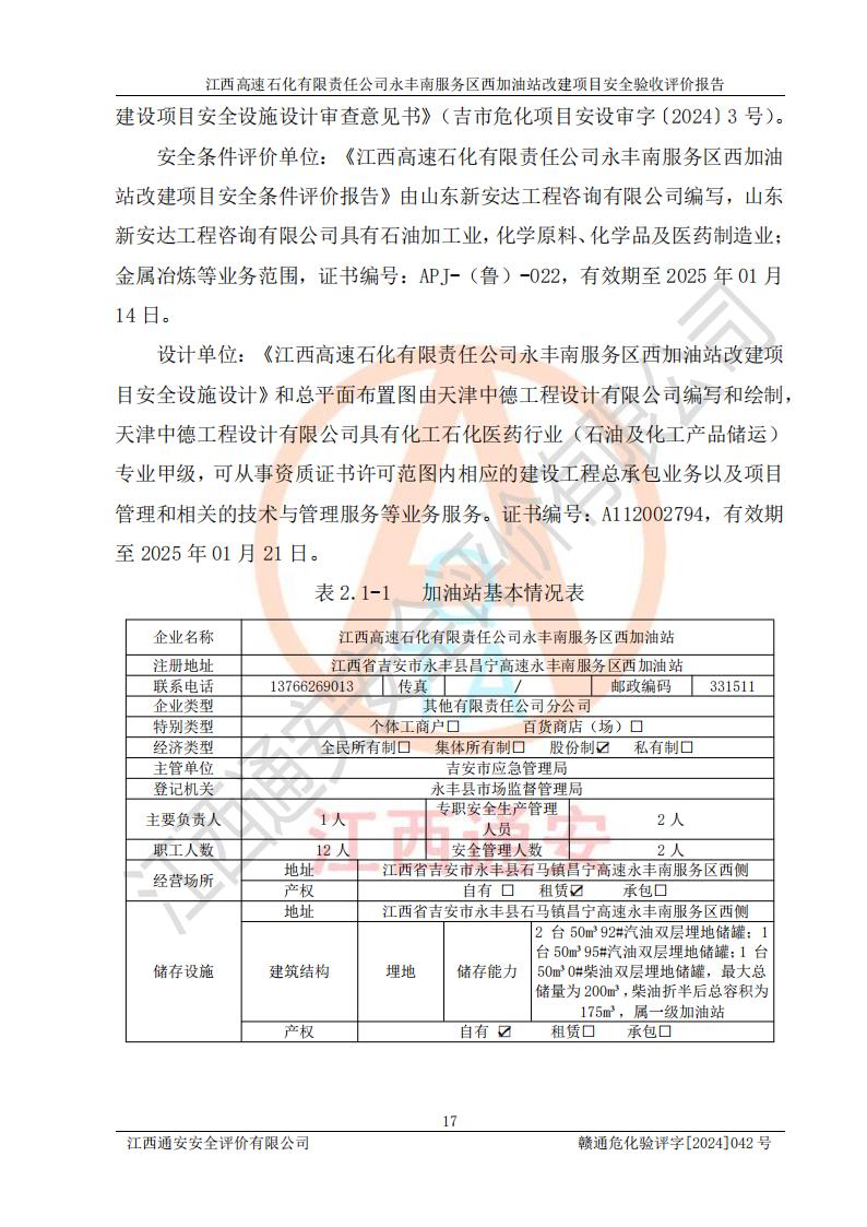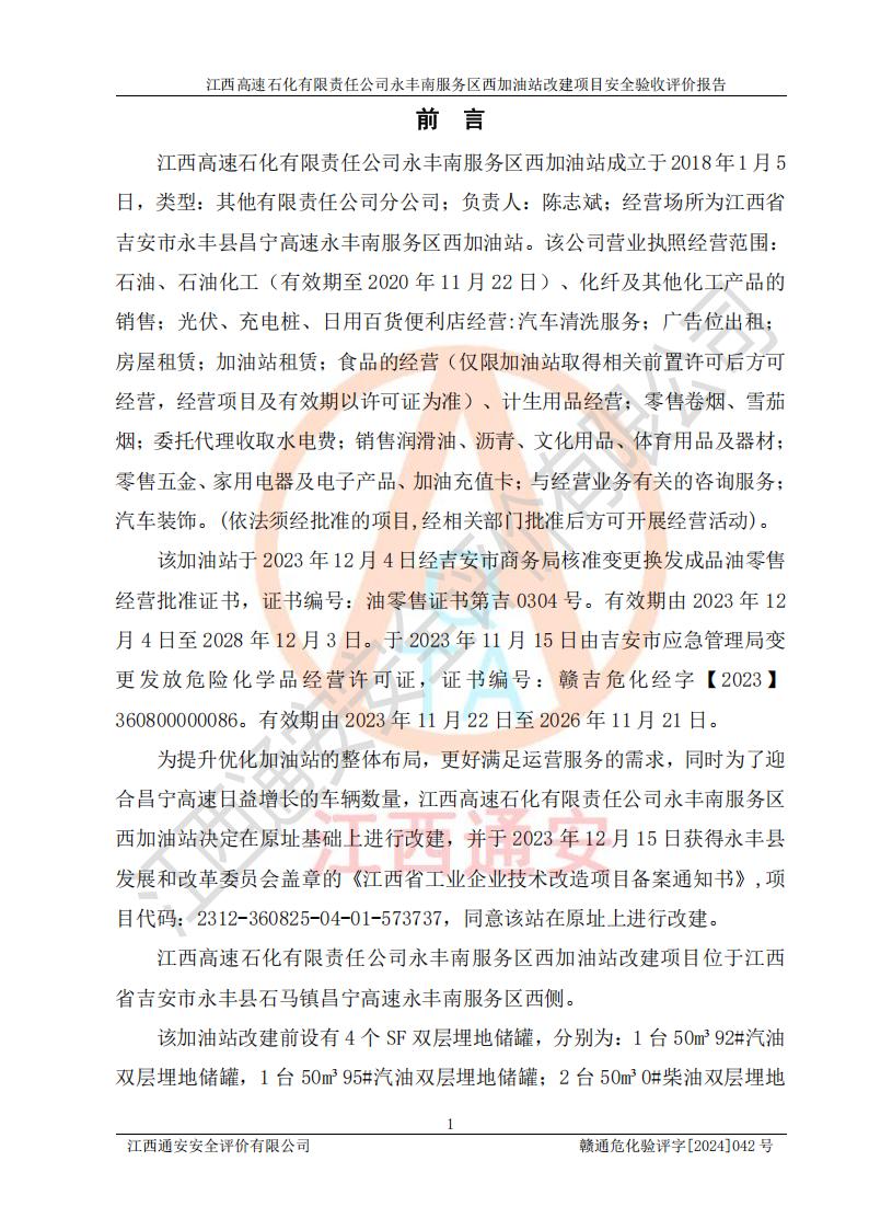 評價報(bào)告名稱 | 江西高速石化有限責(zé)任公司永豐南服務(wù)區(qū)西加油站改建項(xiàng)目安全驗(yàn)收評價報(bào)告 | |||
