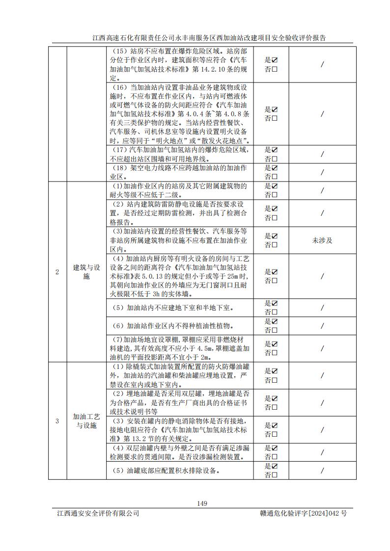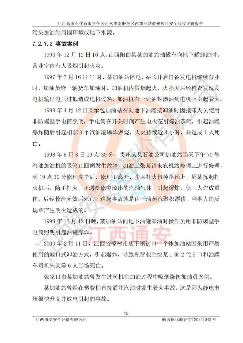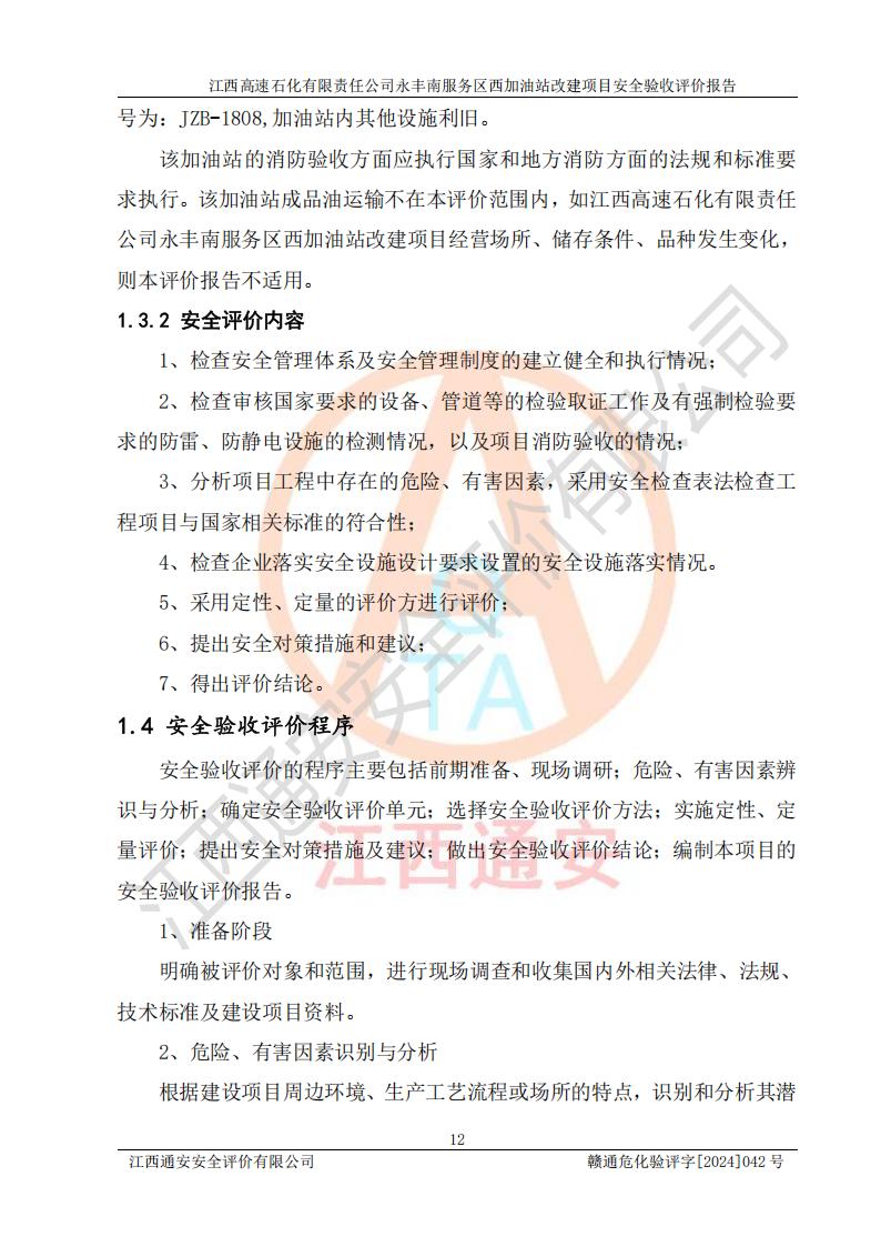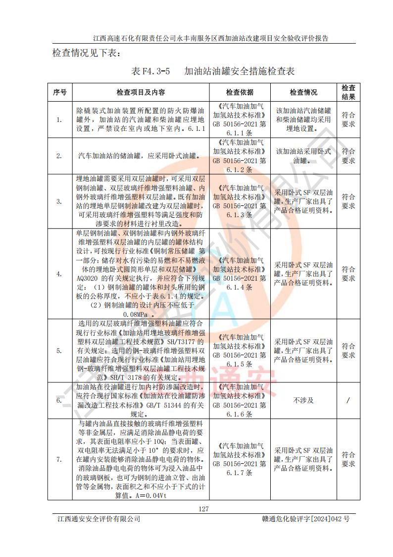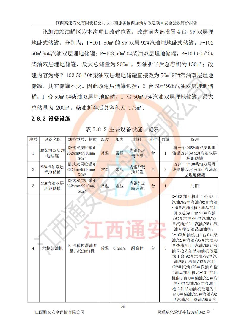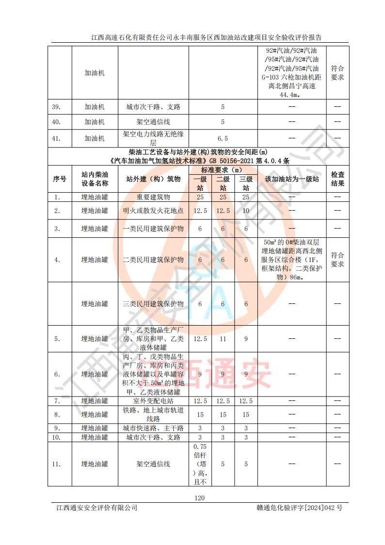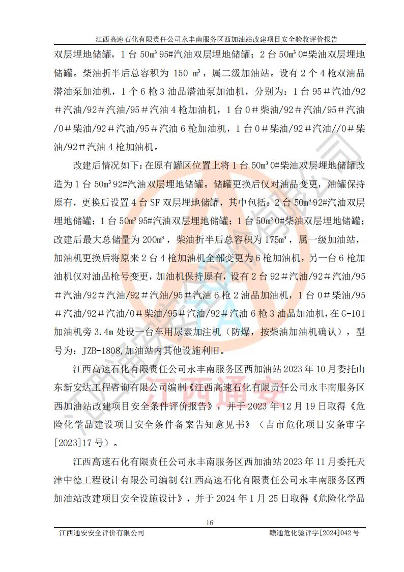 評價報(bào)告名稱 | 江西高速石化有限責(zé)任公司永豐南服務(wù)區(qū)西加油站改建項(xiàng)目安全驗(yàn)收評價報(bào)告 | |||