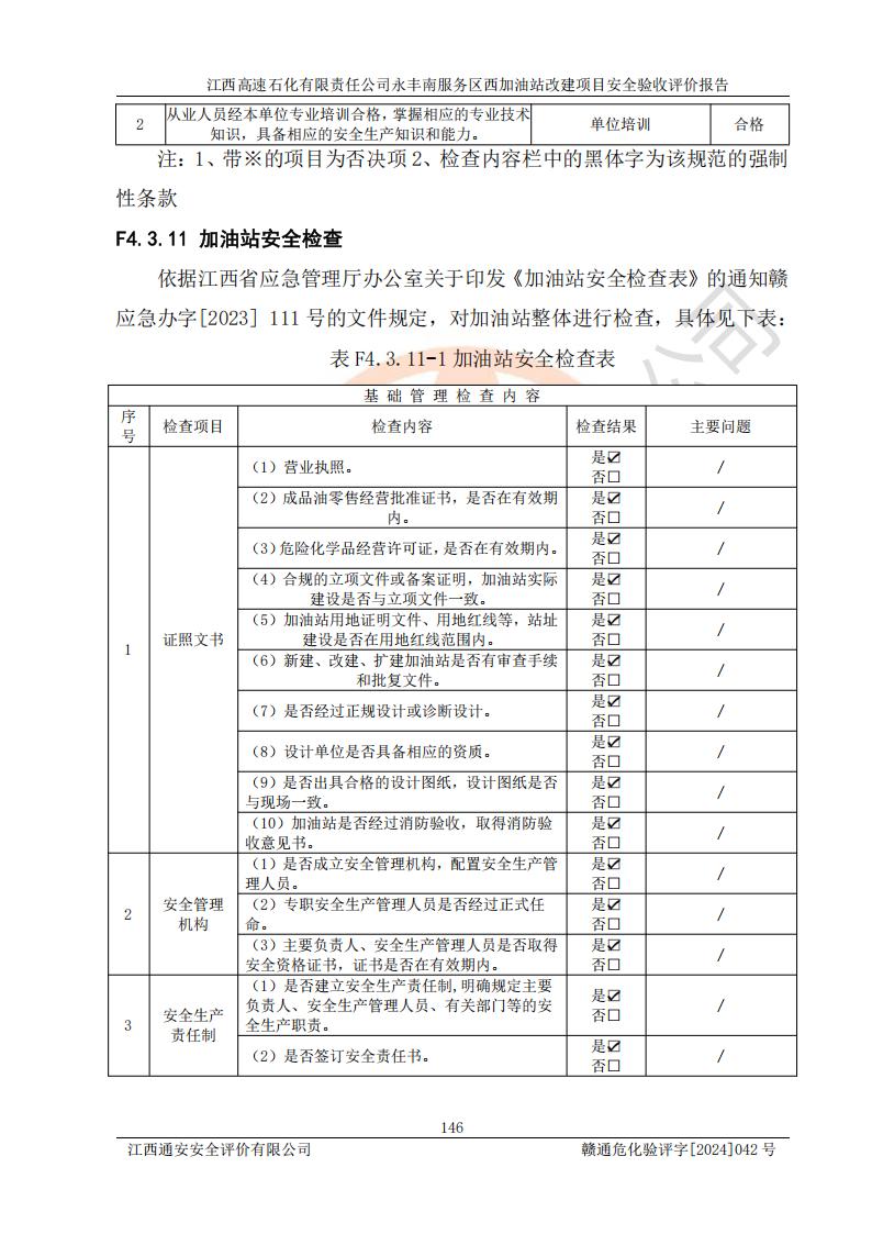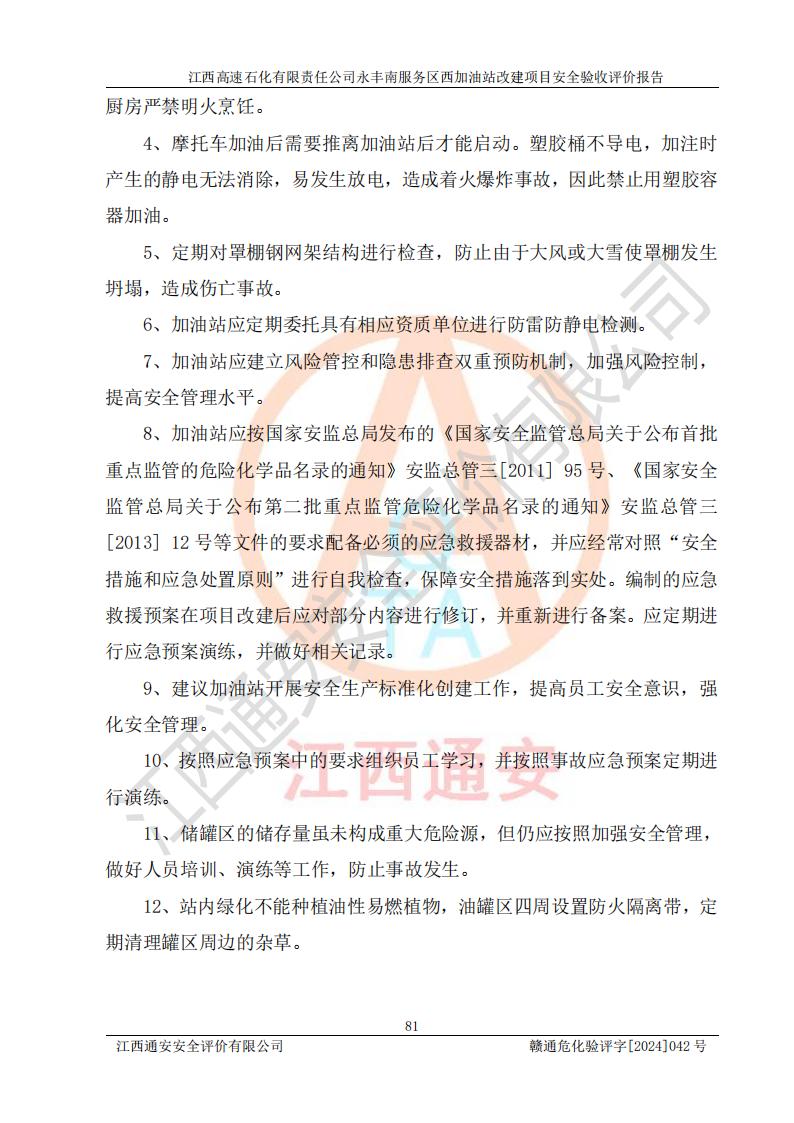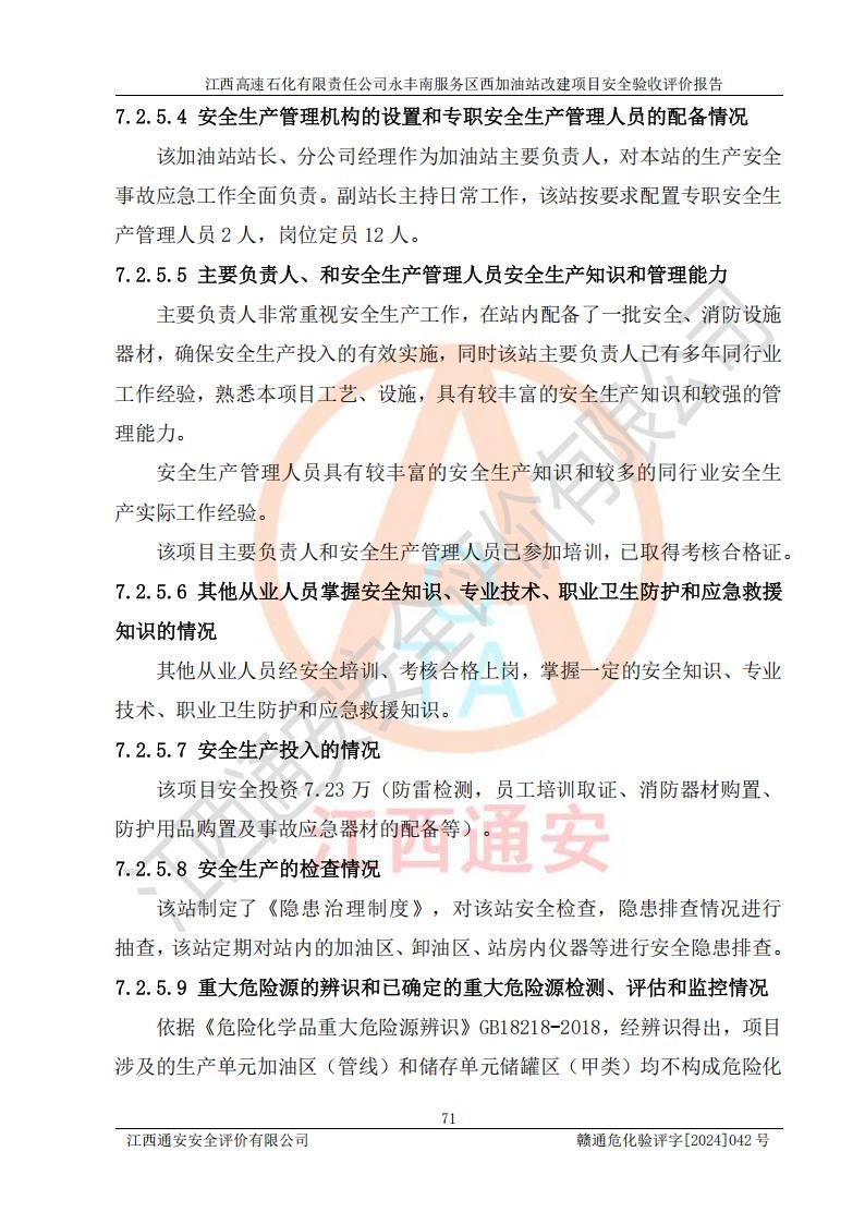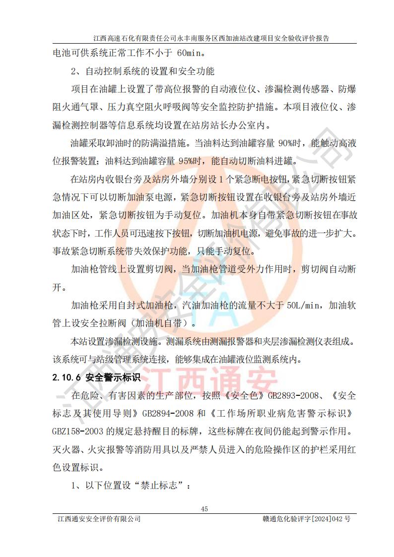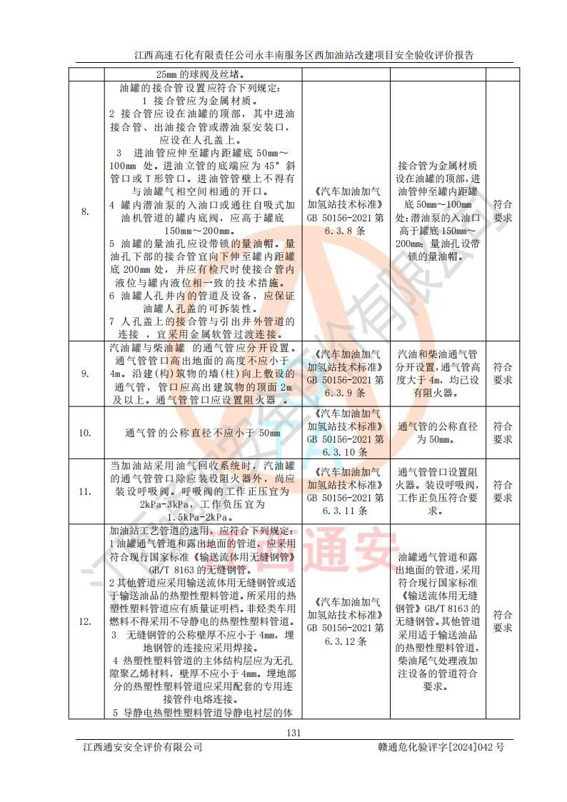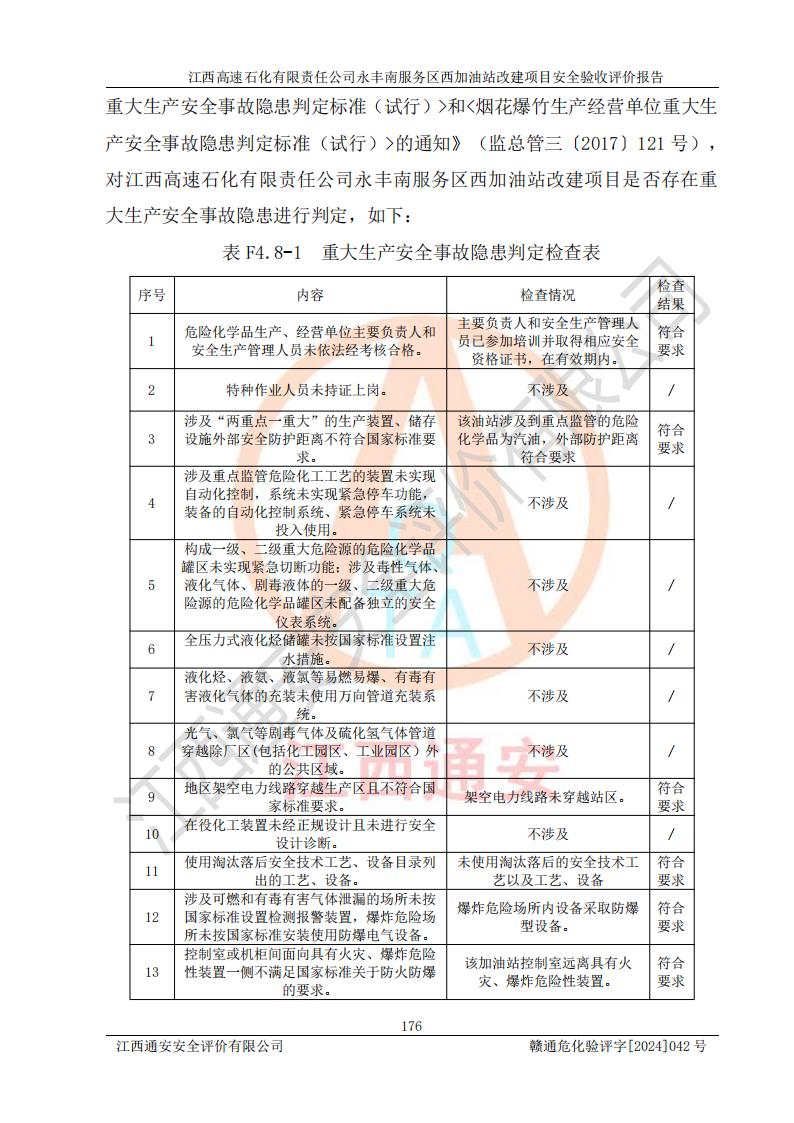 評價報(bào)告名稱 | 江西高速石化有限責(zé)任公司永豐南服務(wù)區(qū)西加油站改建項(xiàng)目安全驗(yàn)收評價報(bào)告 | |||