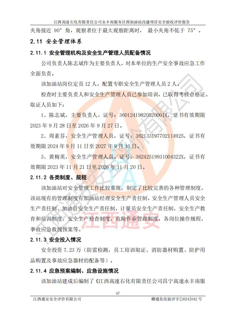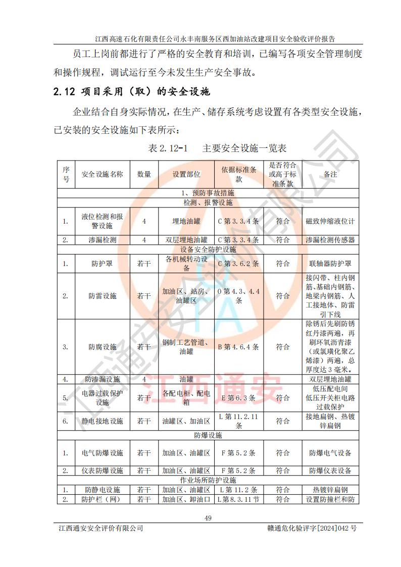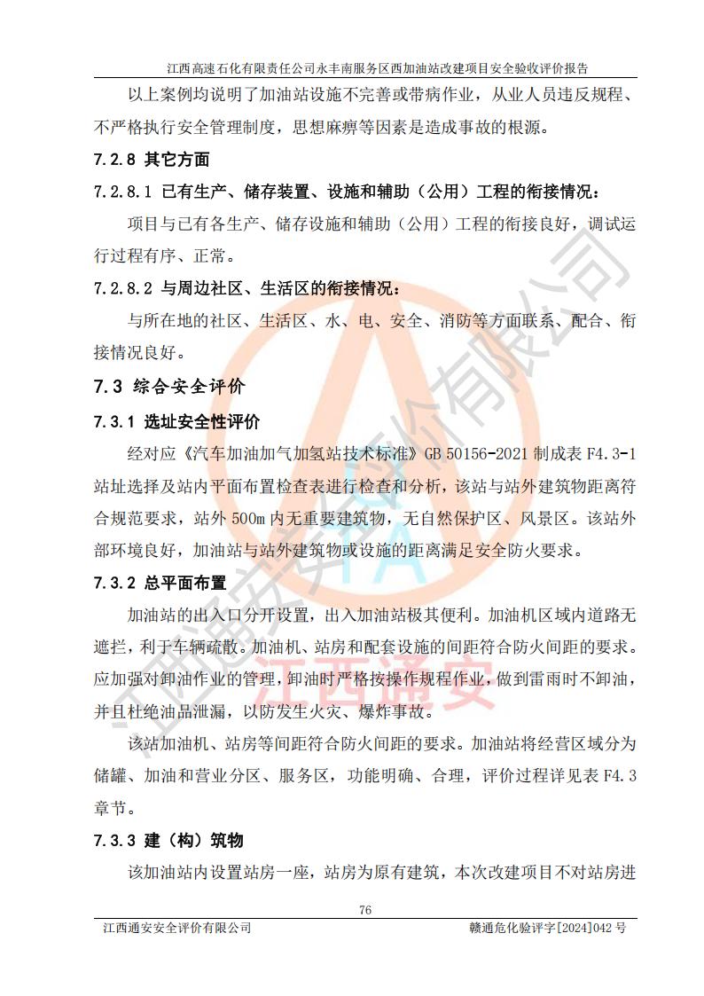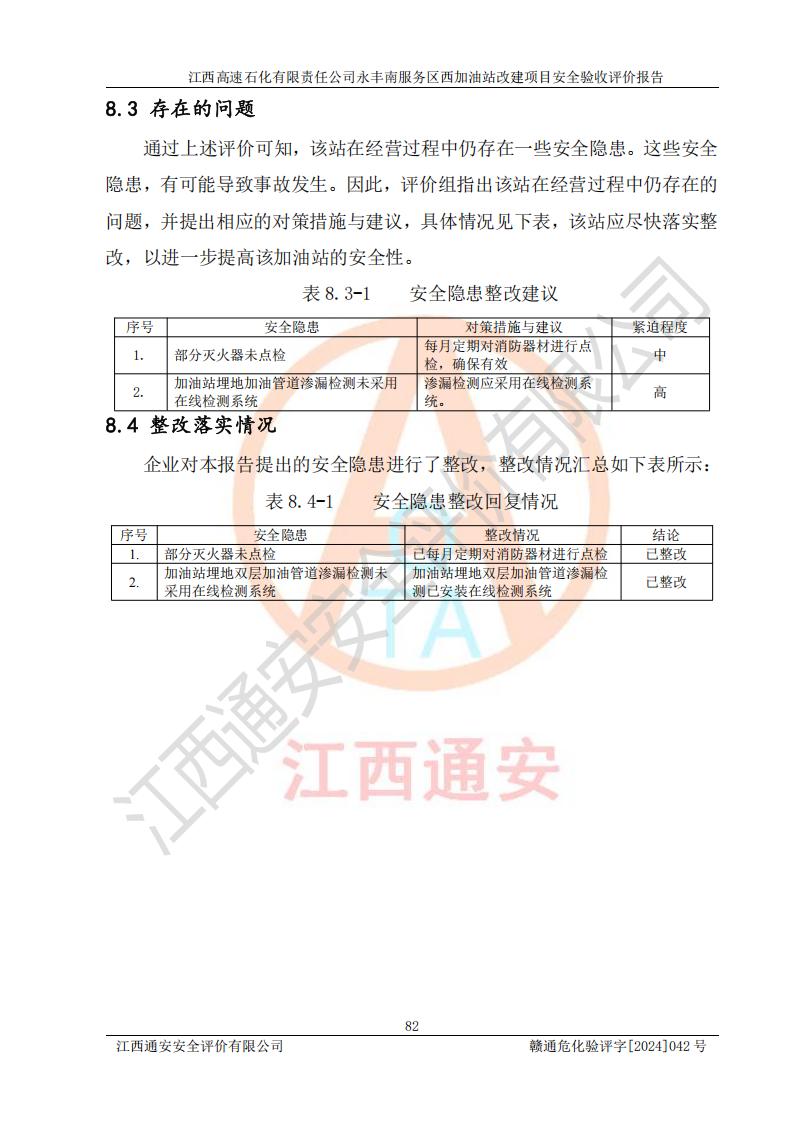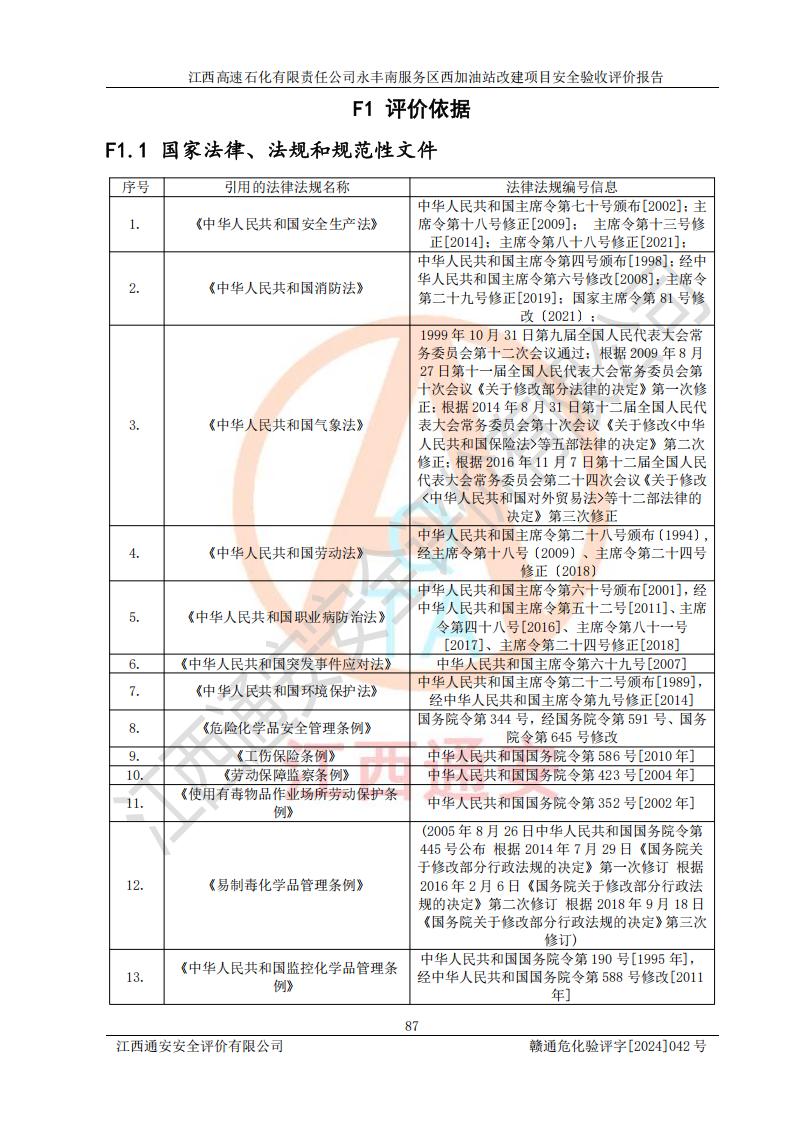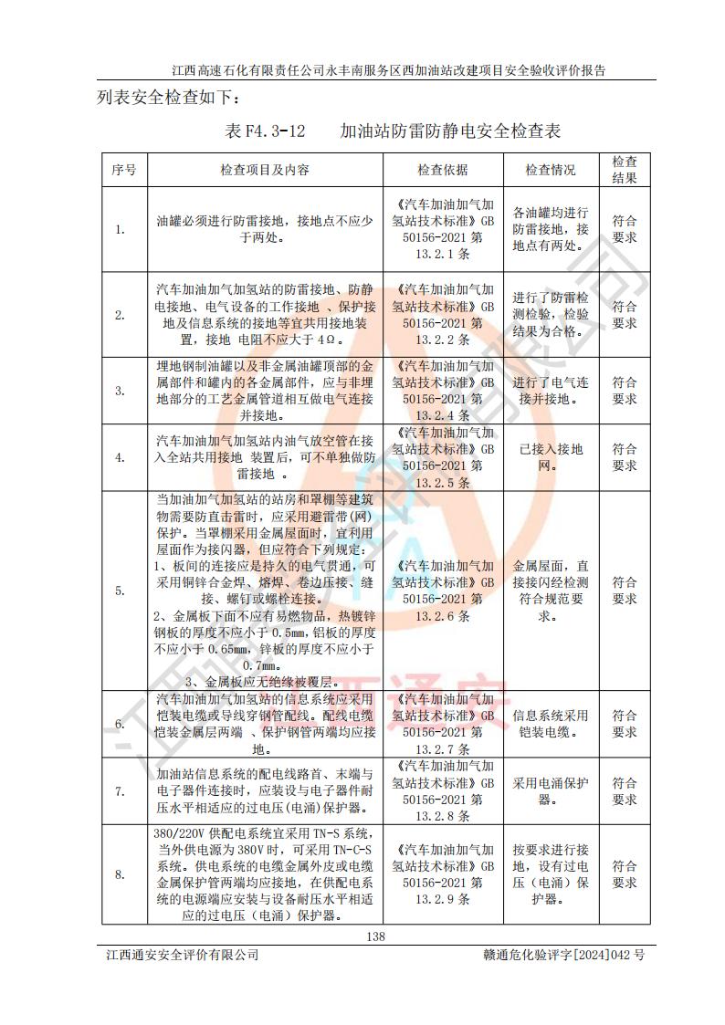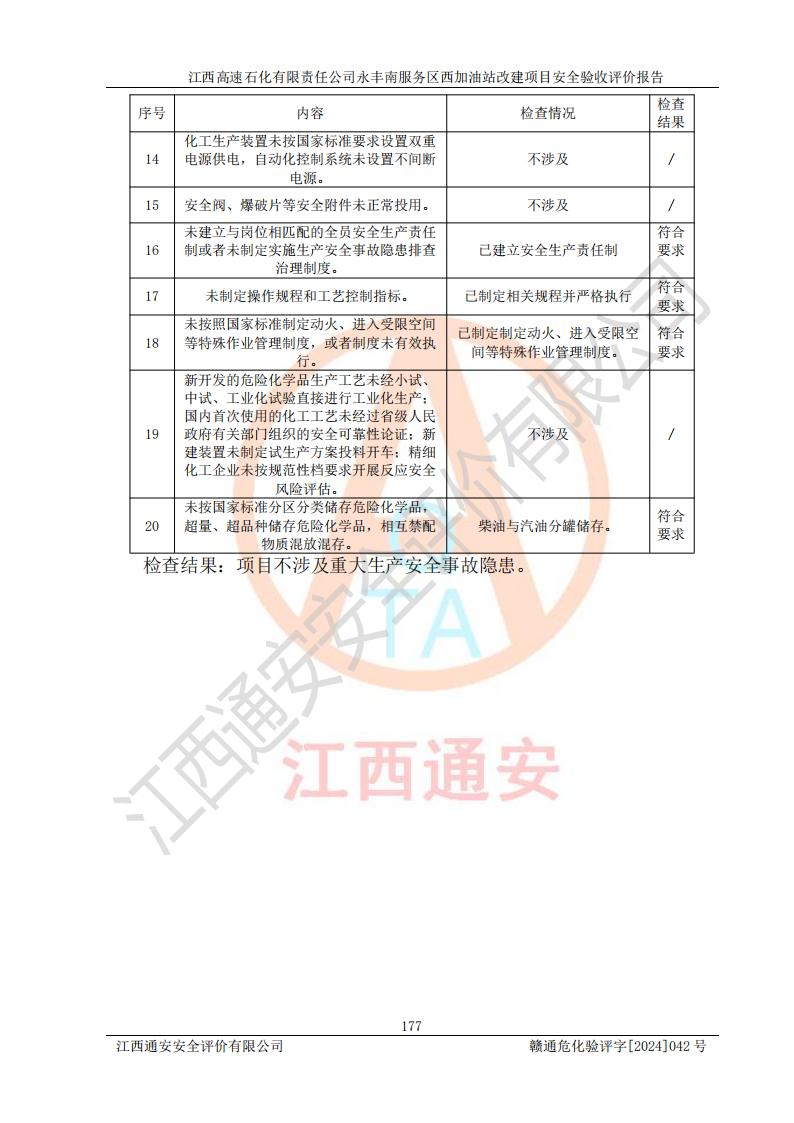 評價報(bào)告名稱 | 江西高速石化有限責(zé)任公司永豐南服務(wù)區(qū)西加油站改建項(xiàng)目安全驗(yàn)收評價報(bào)告 | |||