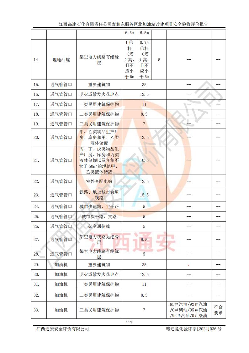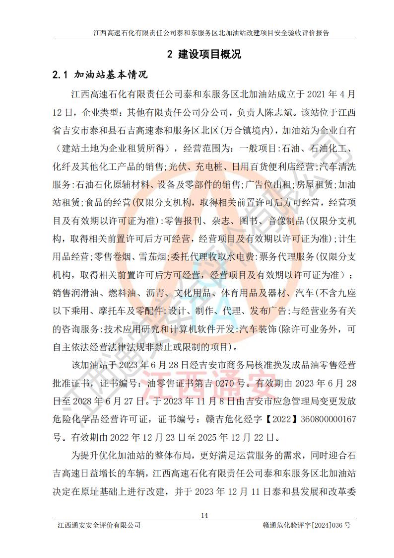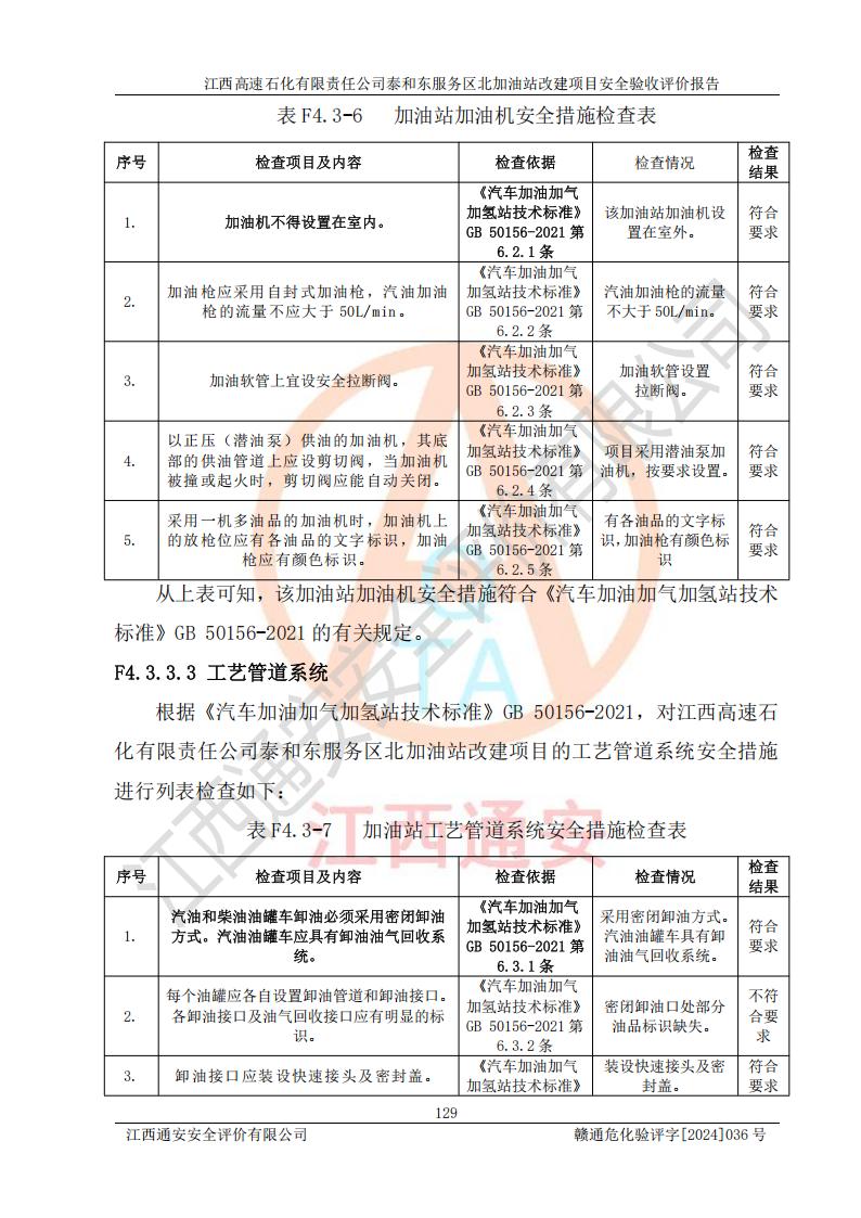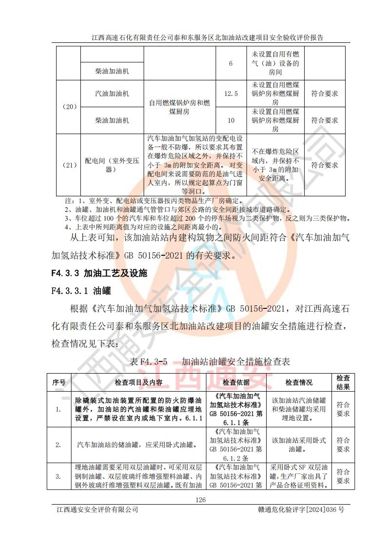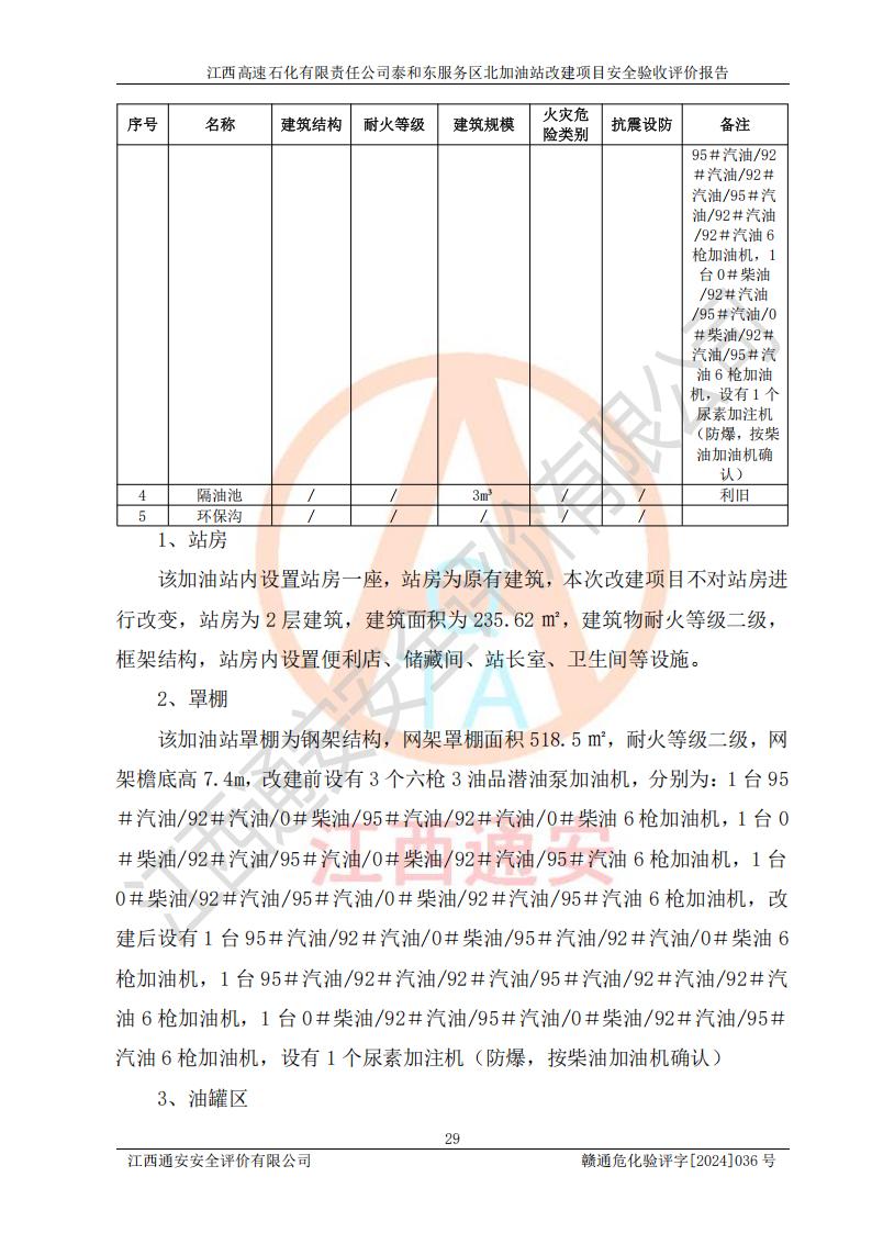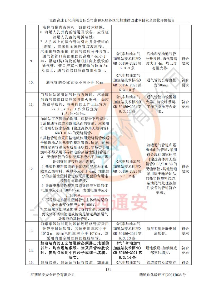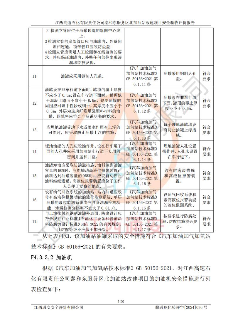 項目名稱 | 江西高速石化有限責任公司泰和東服務區(qū)北加油站改建項目安全驗收評價報告 | ||||