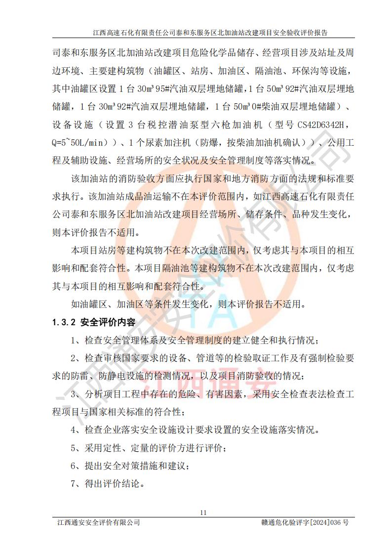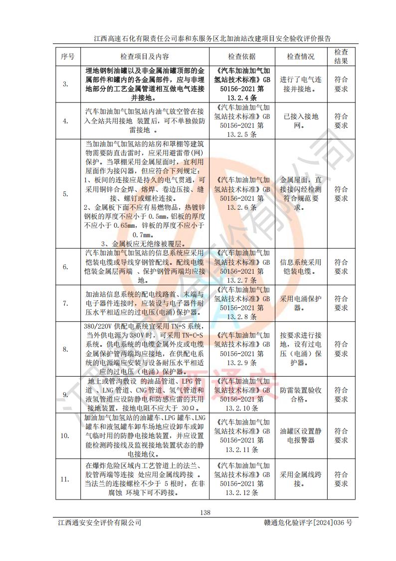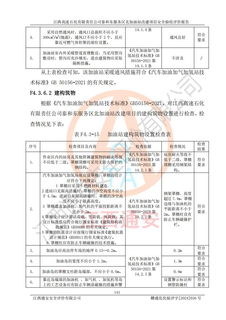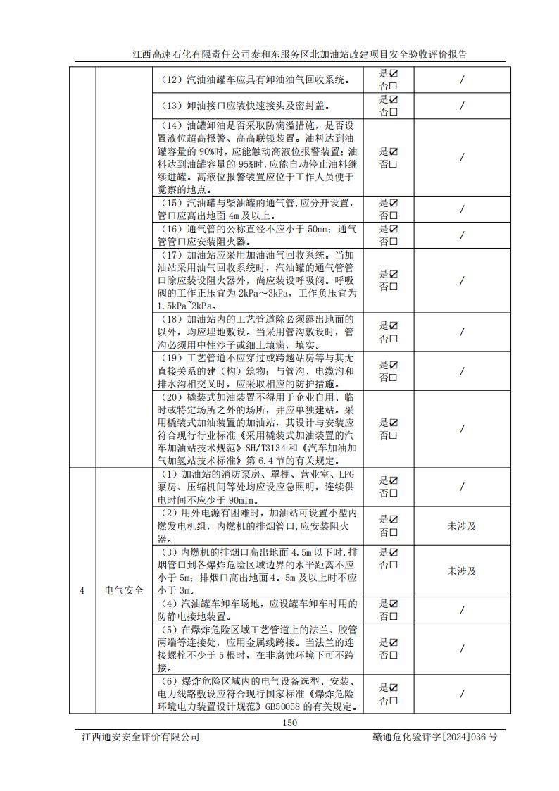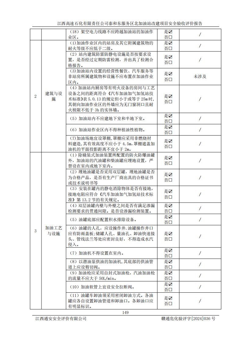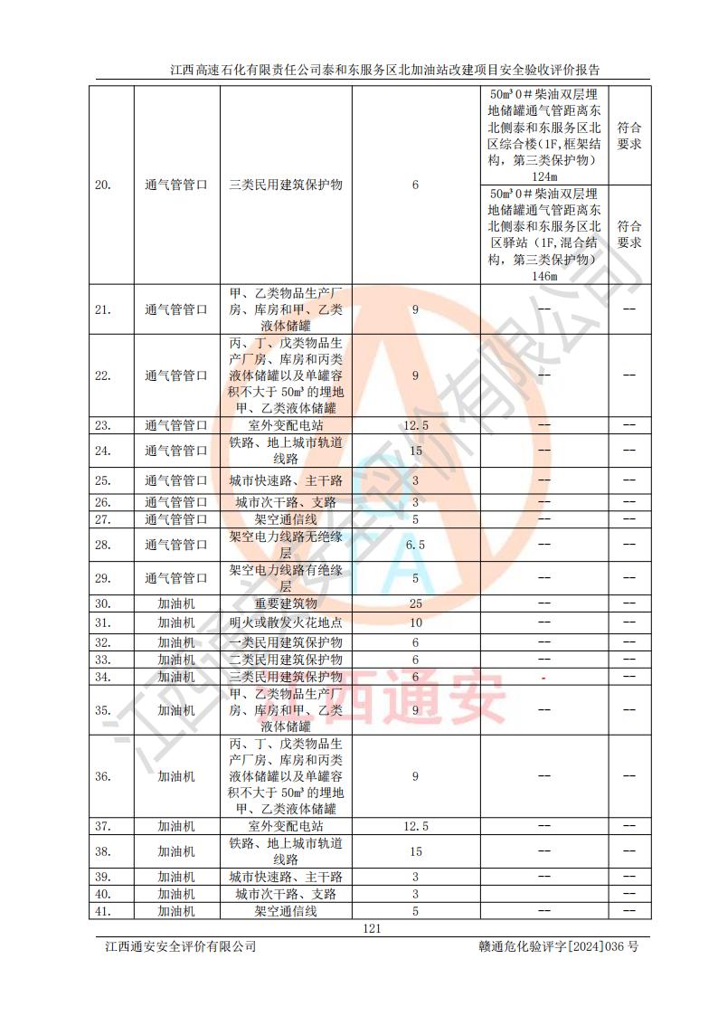 項目名稱 | 江西高速石化有限責任公司泰和東服務區(qū)北加油站改建項目安全驗收評價報告 | ||||