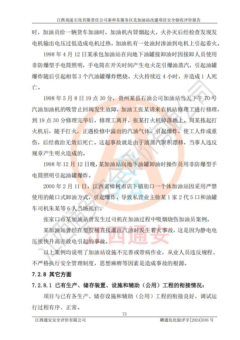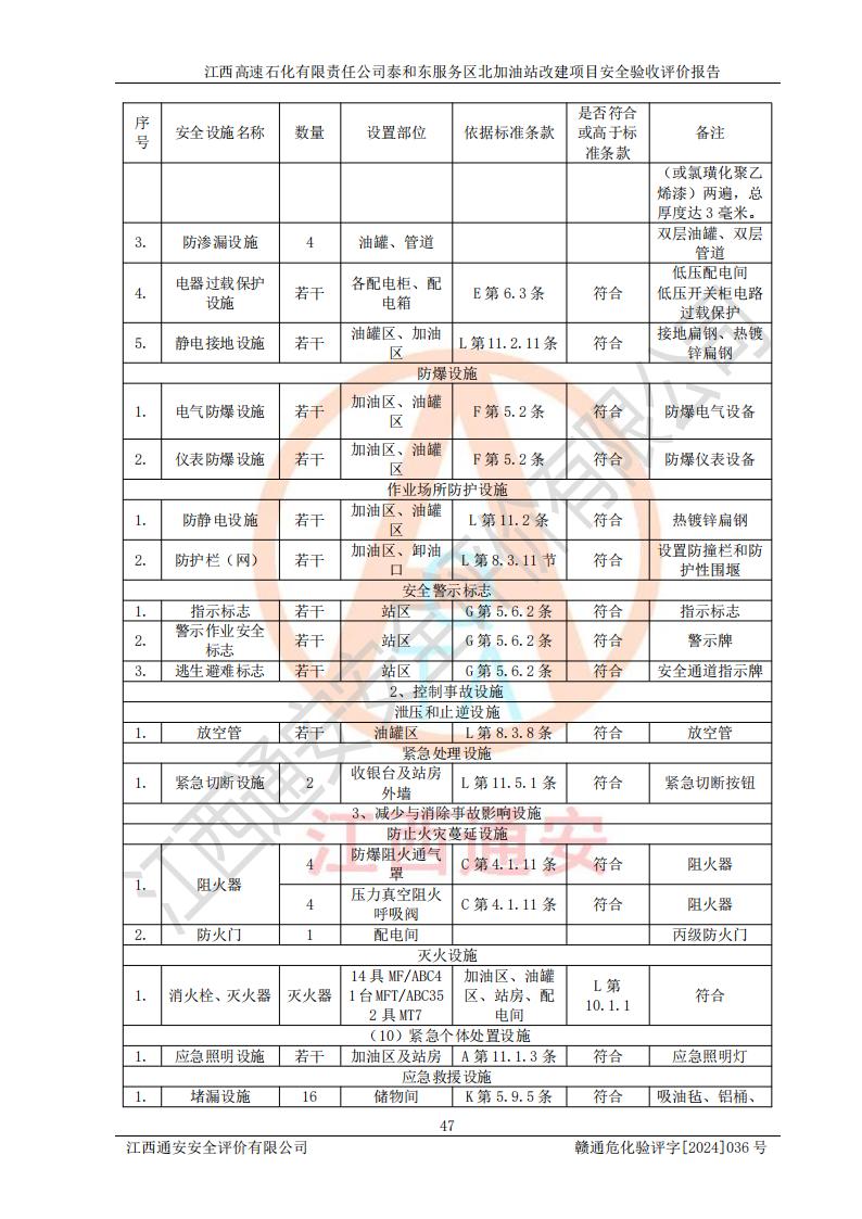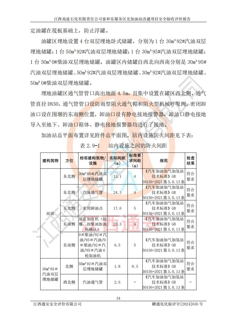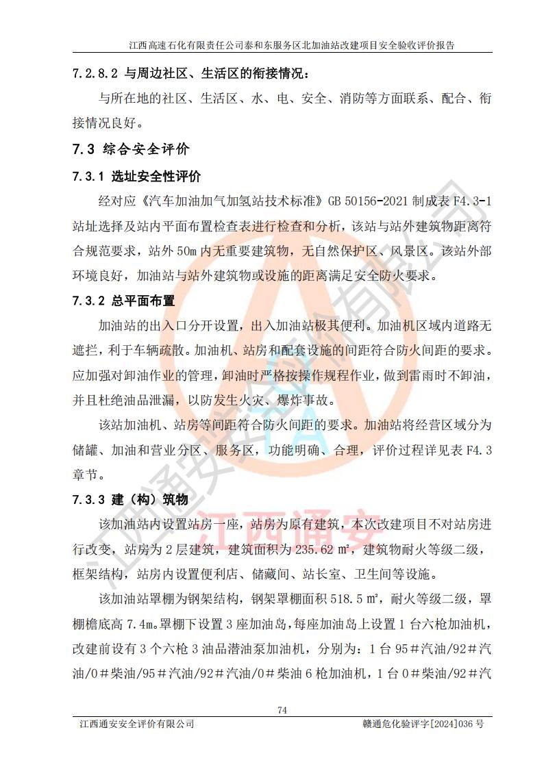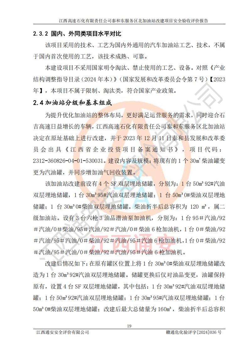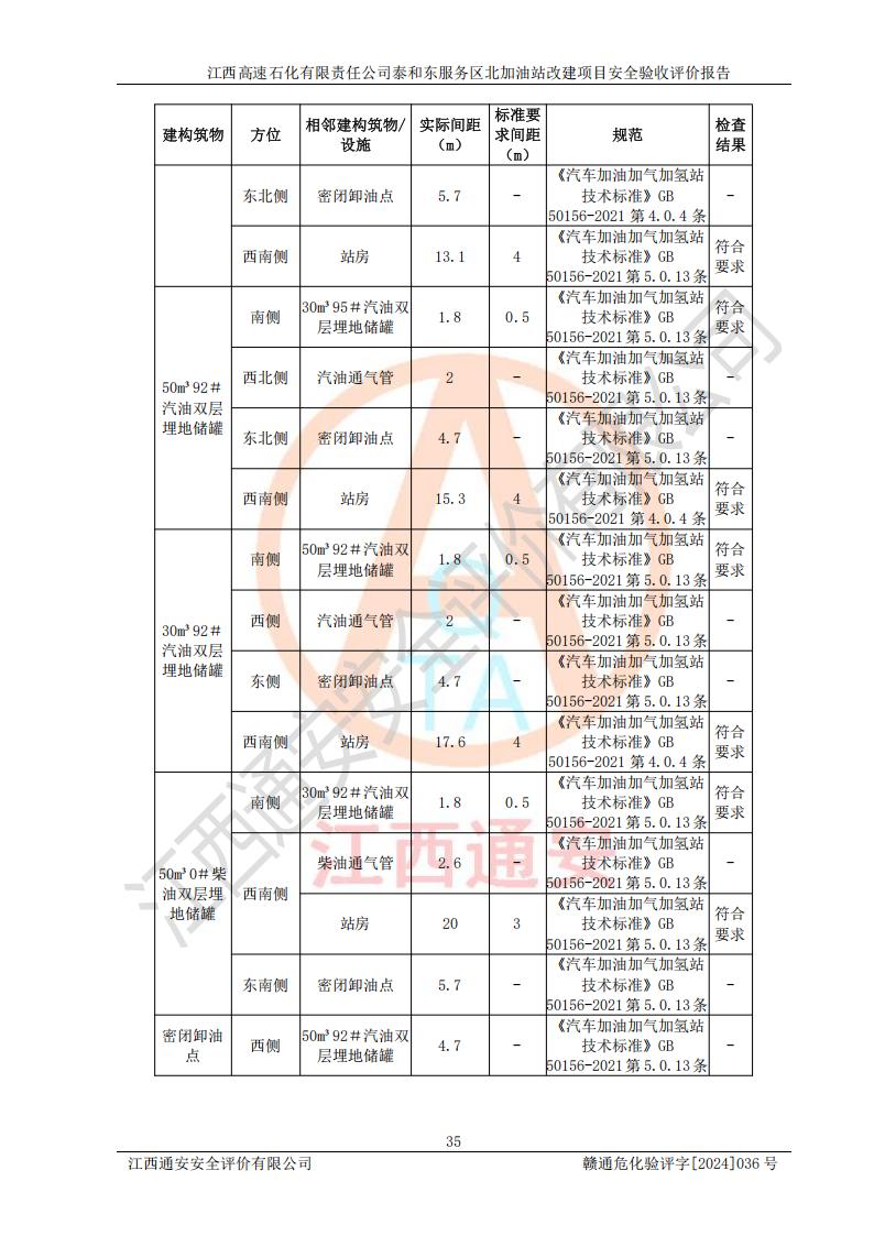 項目名稱 | 江西高速石化有限責任公司泰和東服務區(qū)北加油站改建項目安全驗收評價報告 | ||||