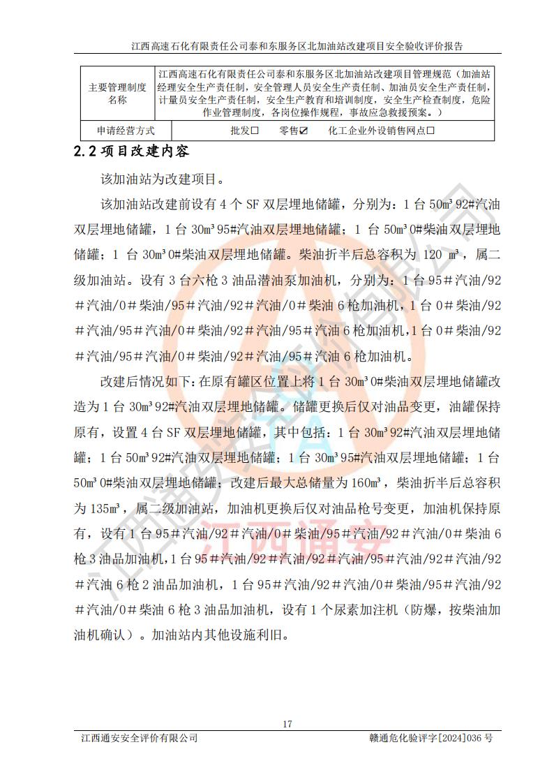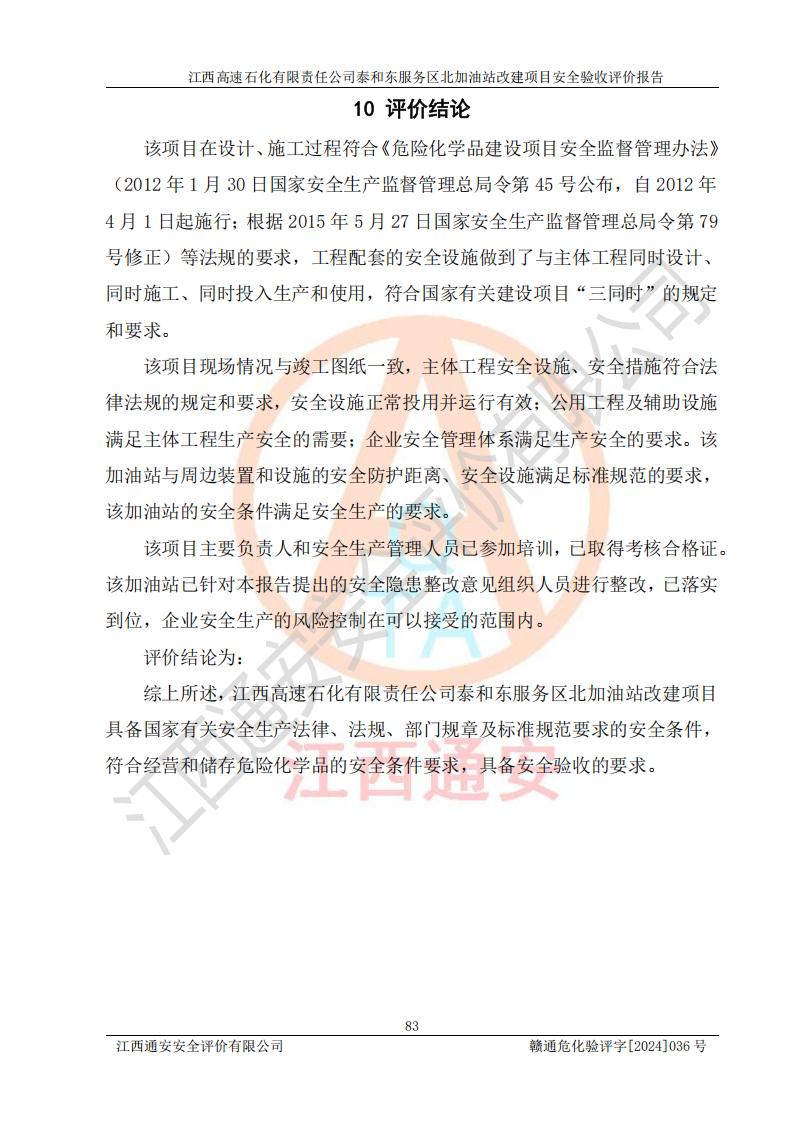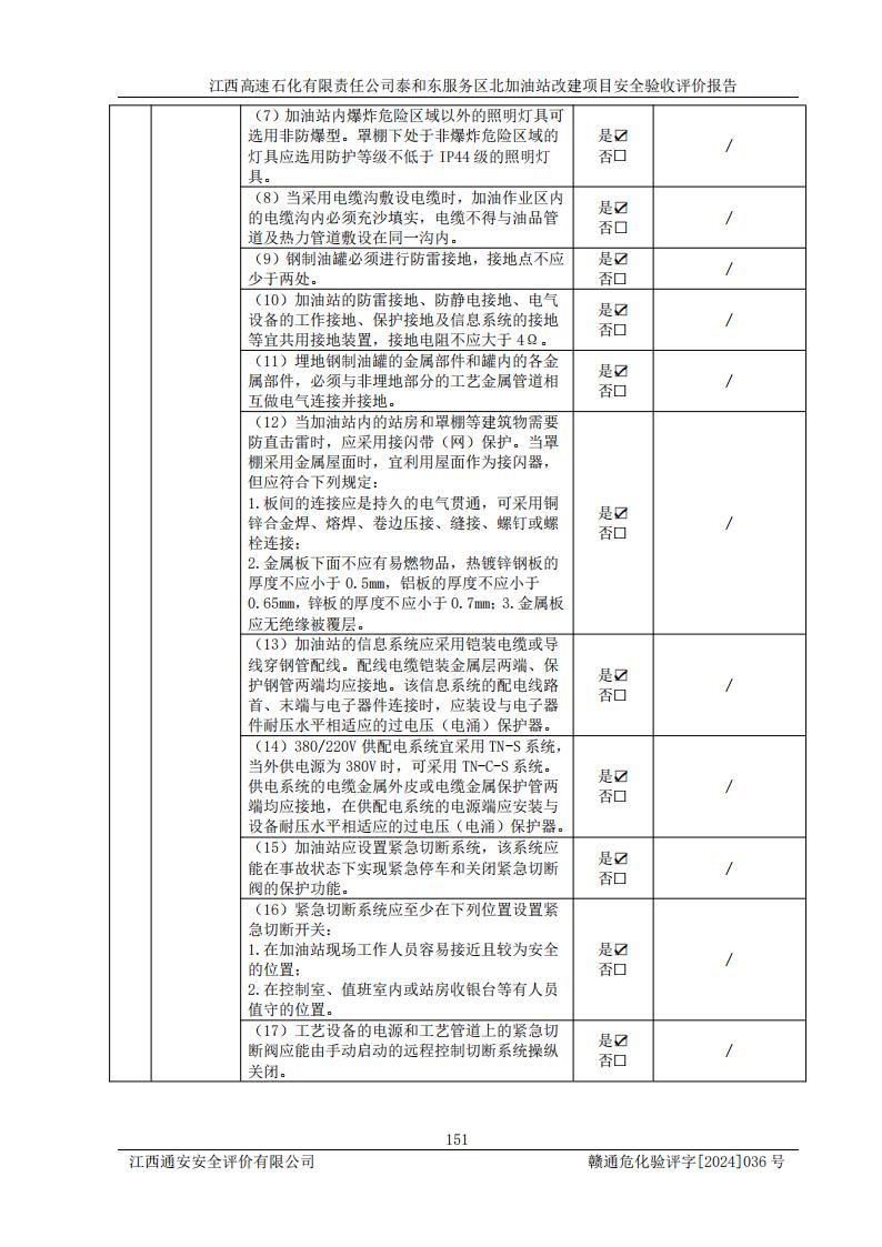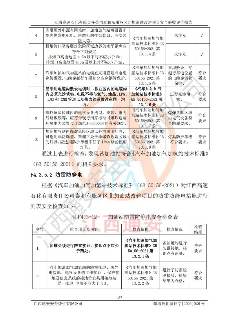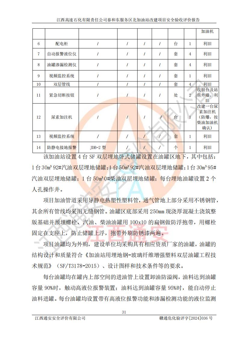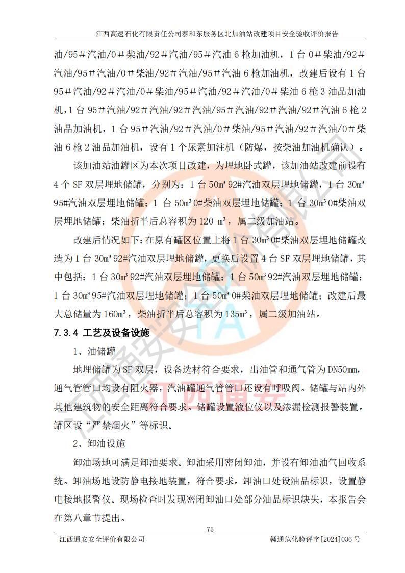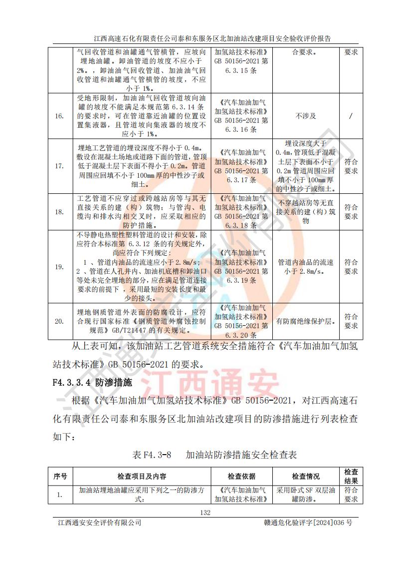 項目名稱 | 江西高速石化有限責任公司泰和東服務區(qū)北加油站改建項目安全驗收評價報告 | ||||