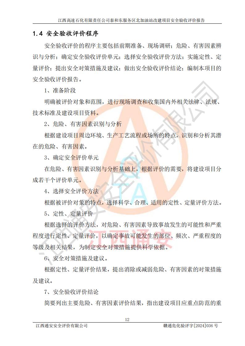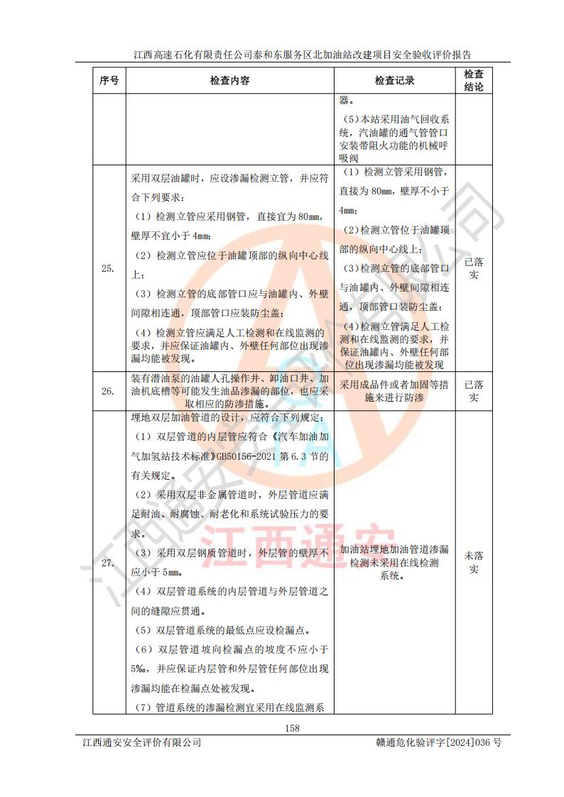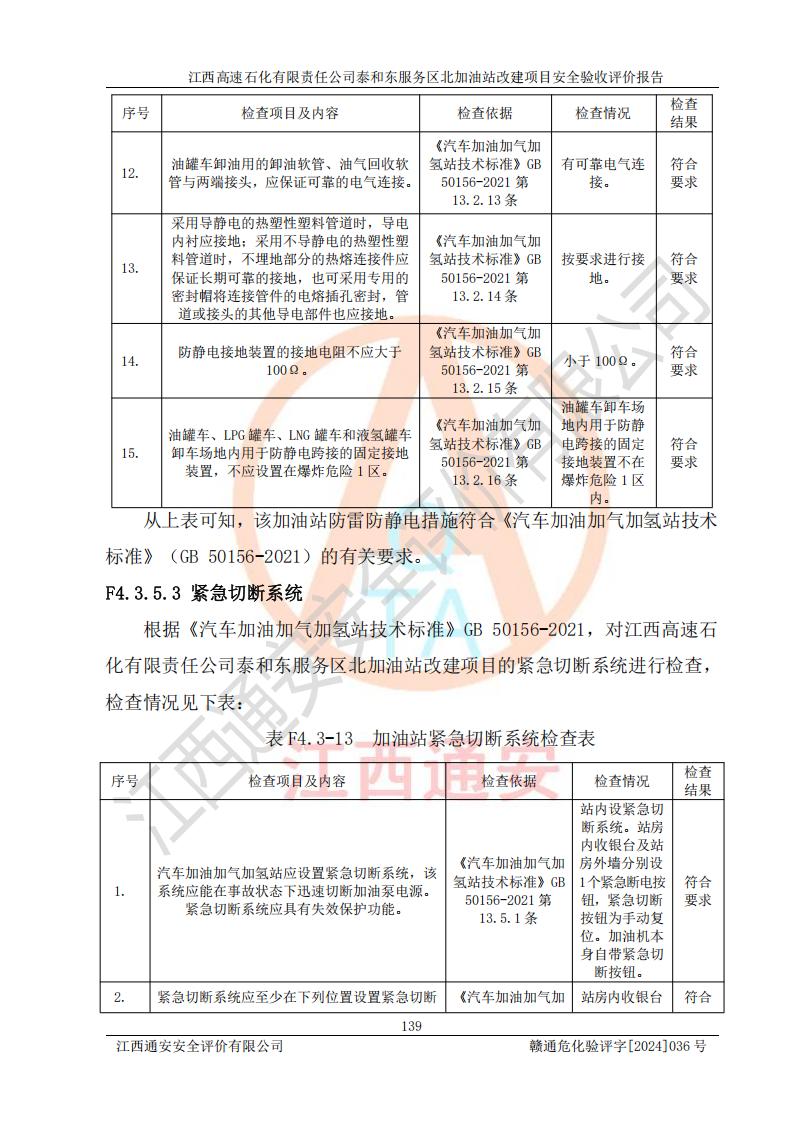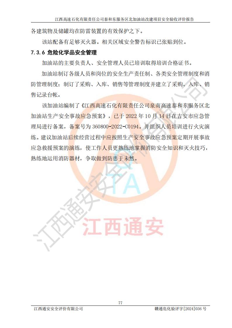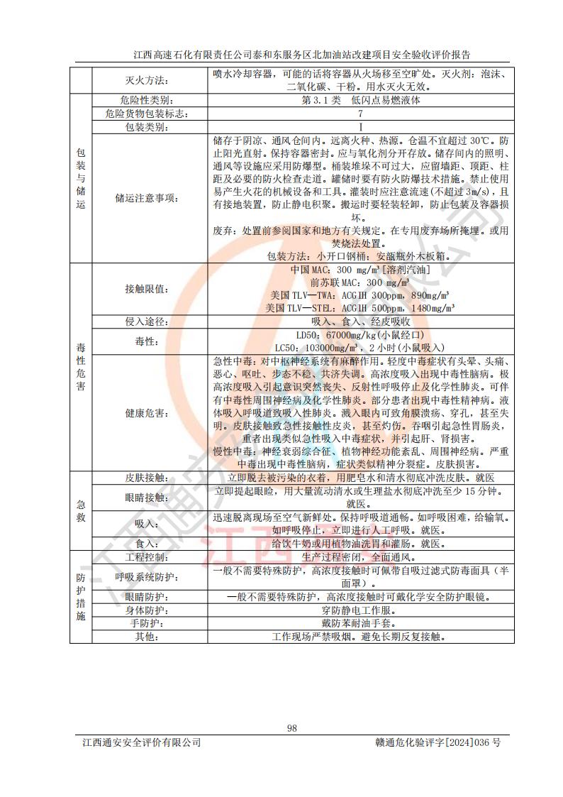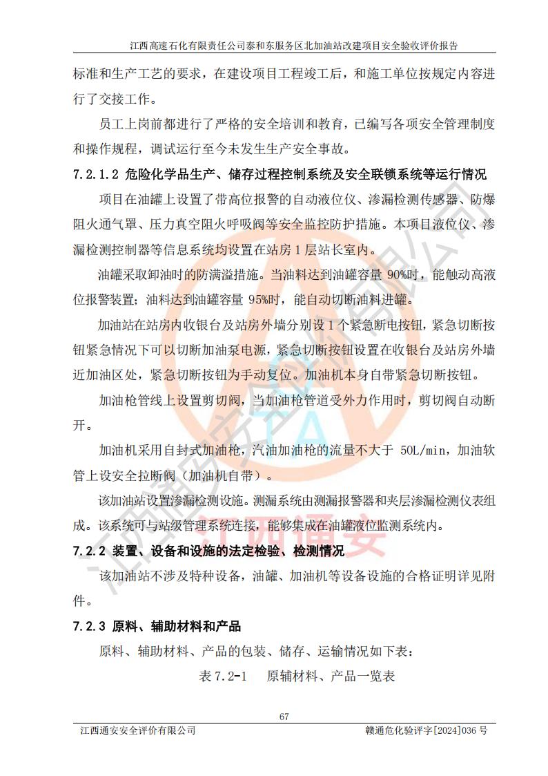 項目名稱 | 江西高速石化有限責任公司泰和東服務區(qū)北加油站改建項目安全驗收評價報告 | ||||