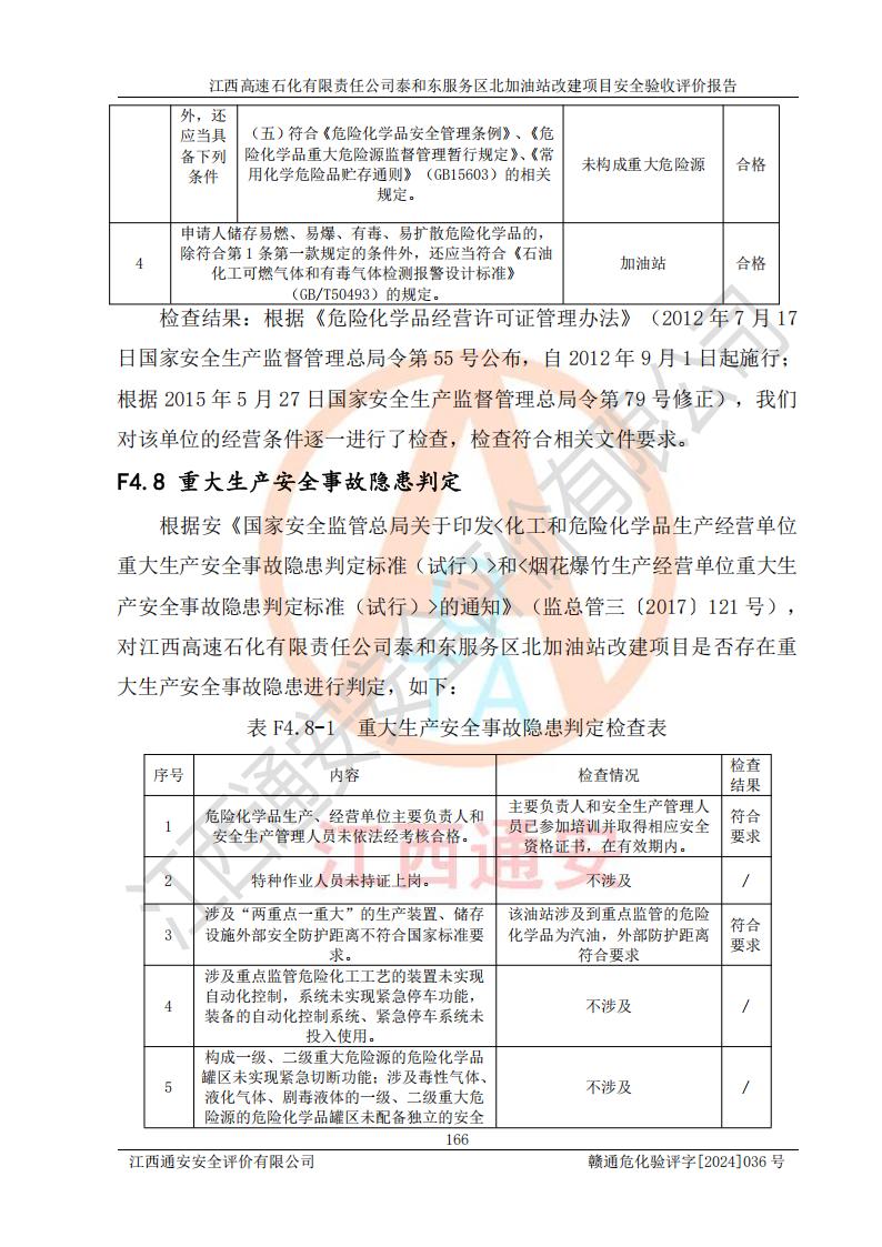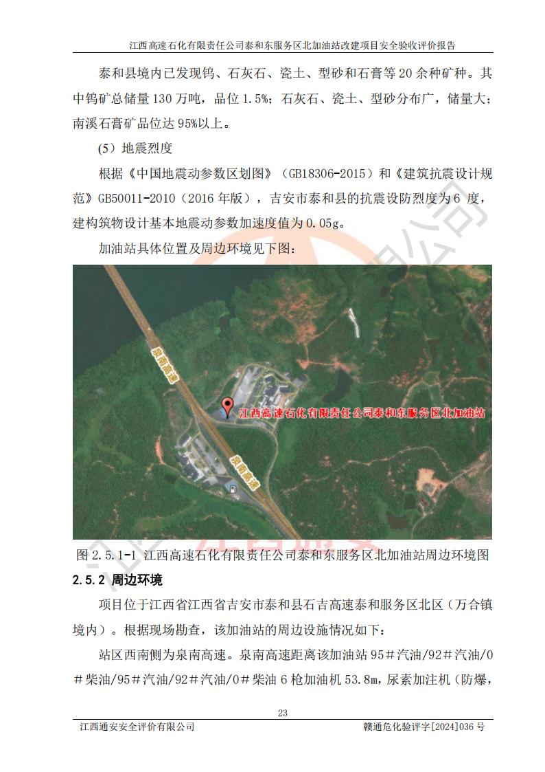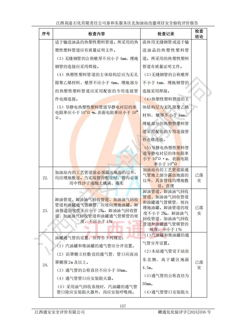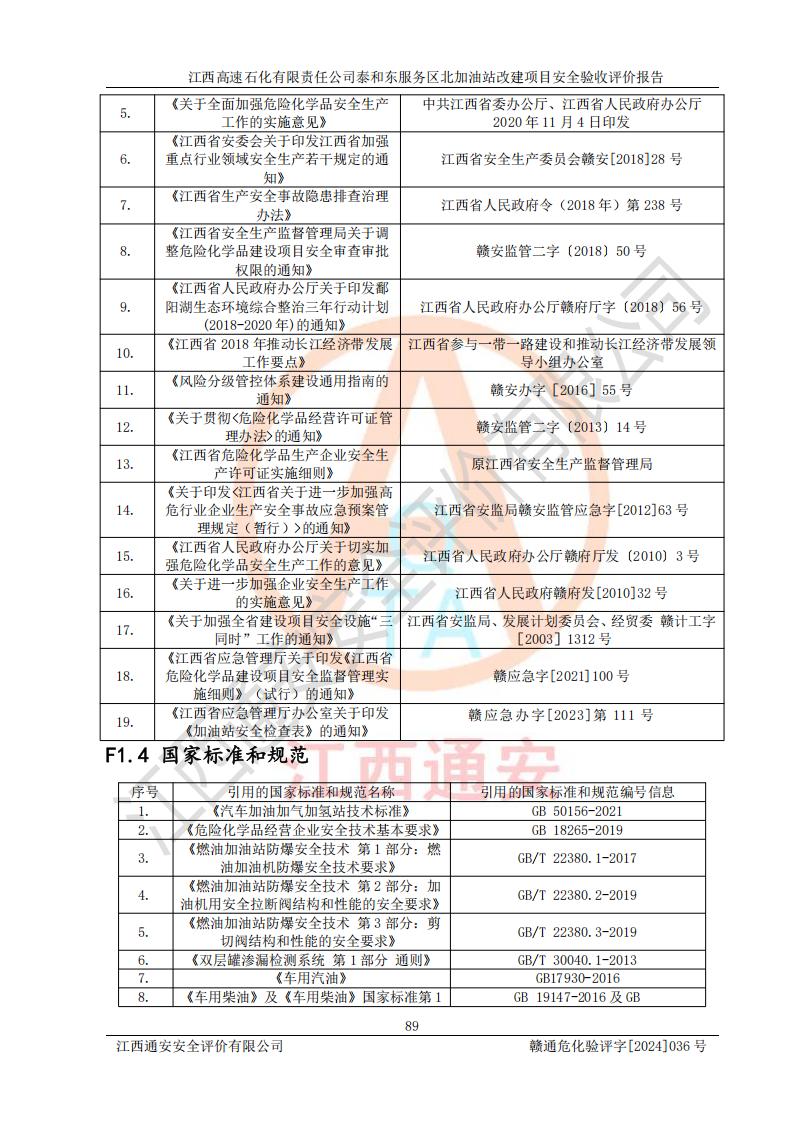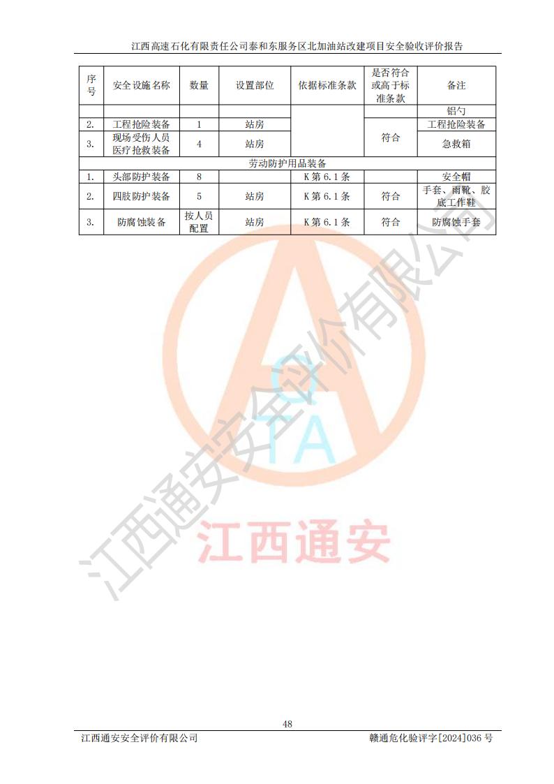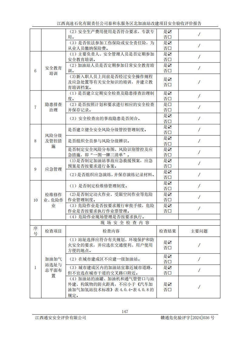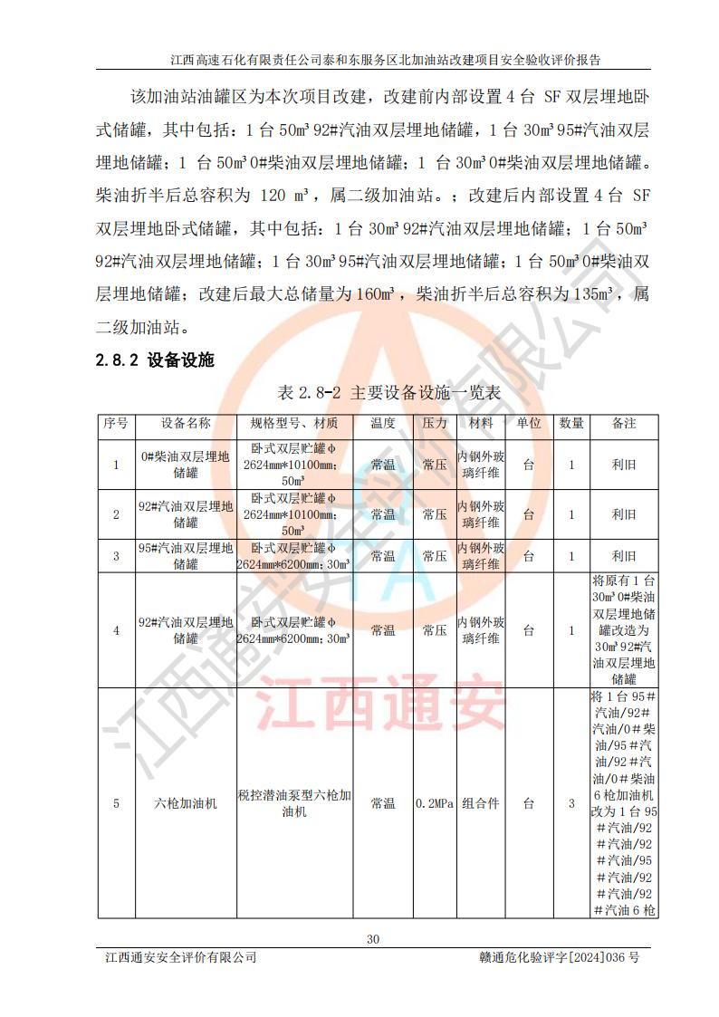 項目名稱 | 江西高速石化有限責任公司泰和東服務區(qū)北加油站改建項目安全驗收評價報告 | ||||