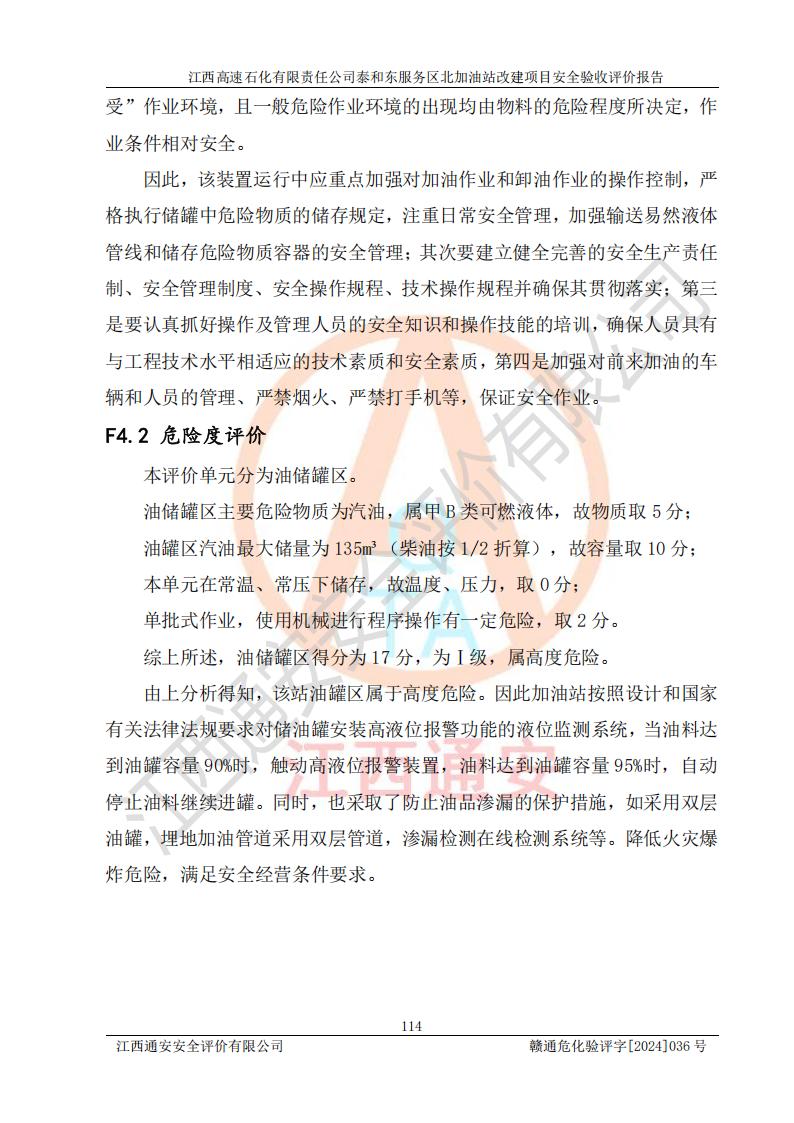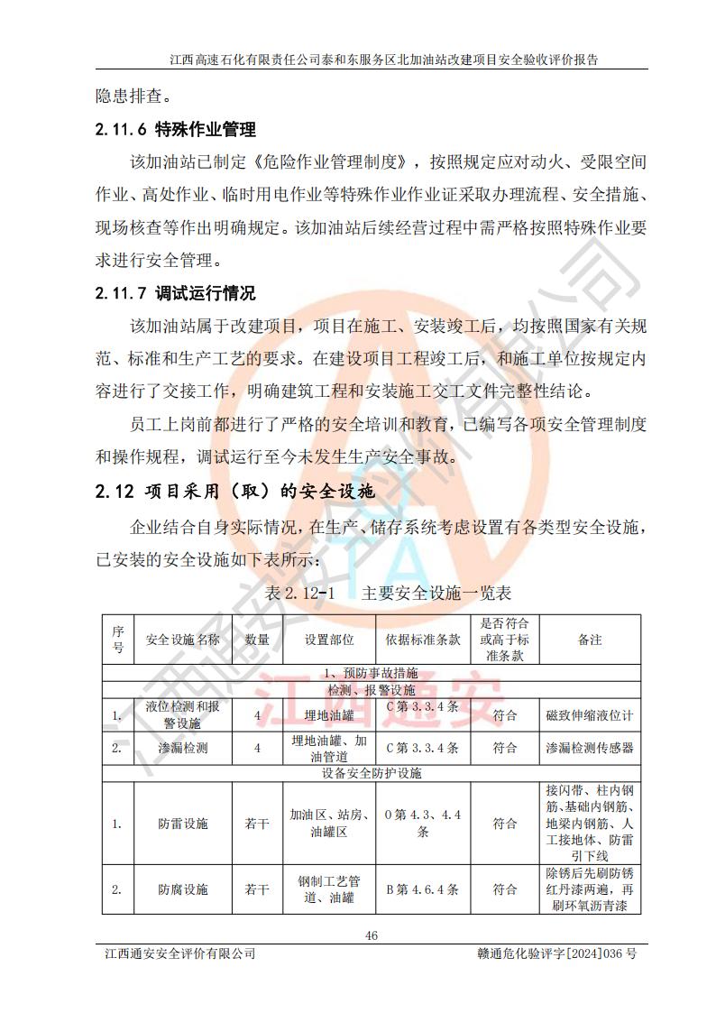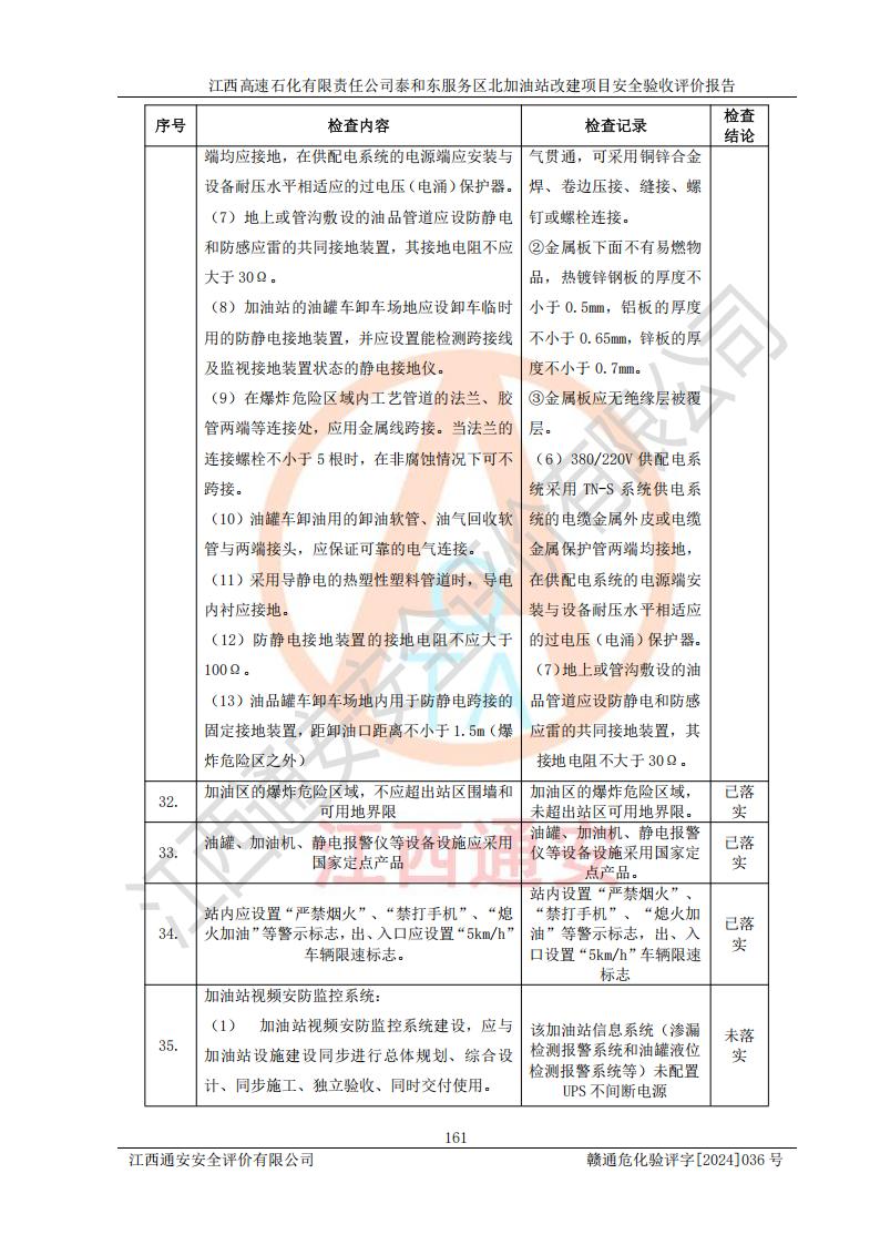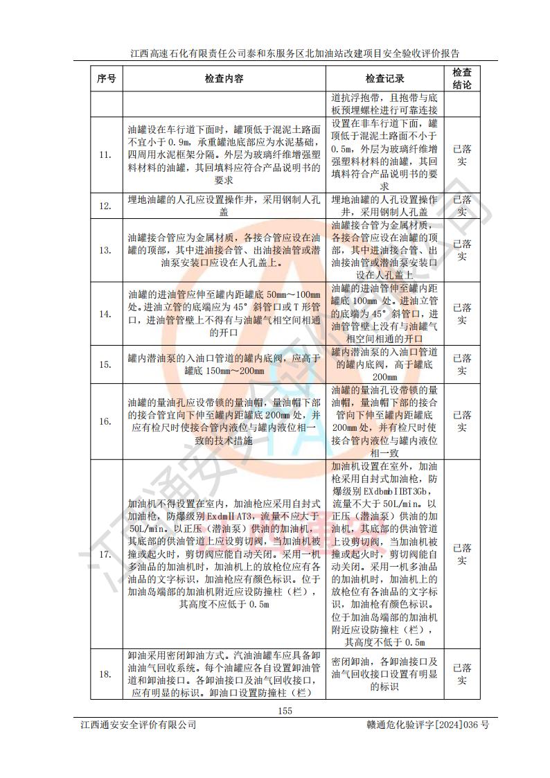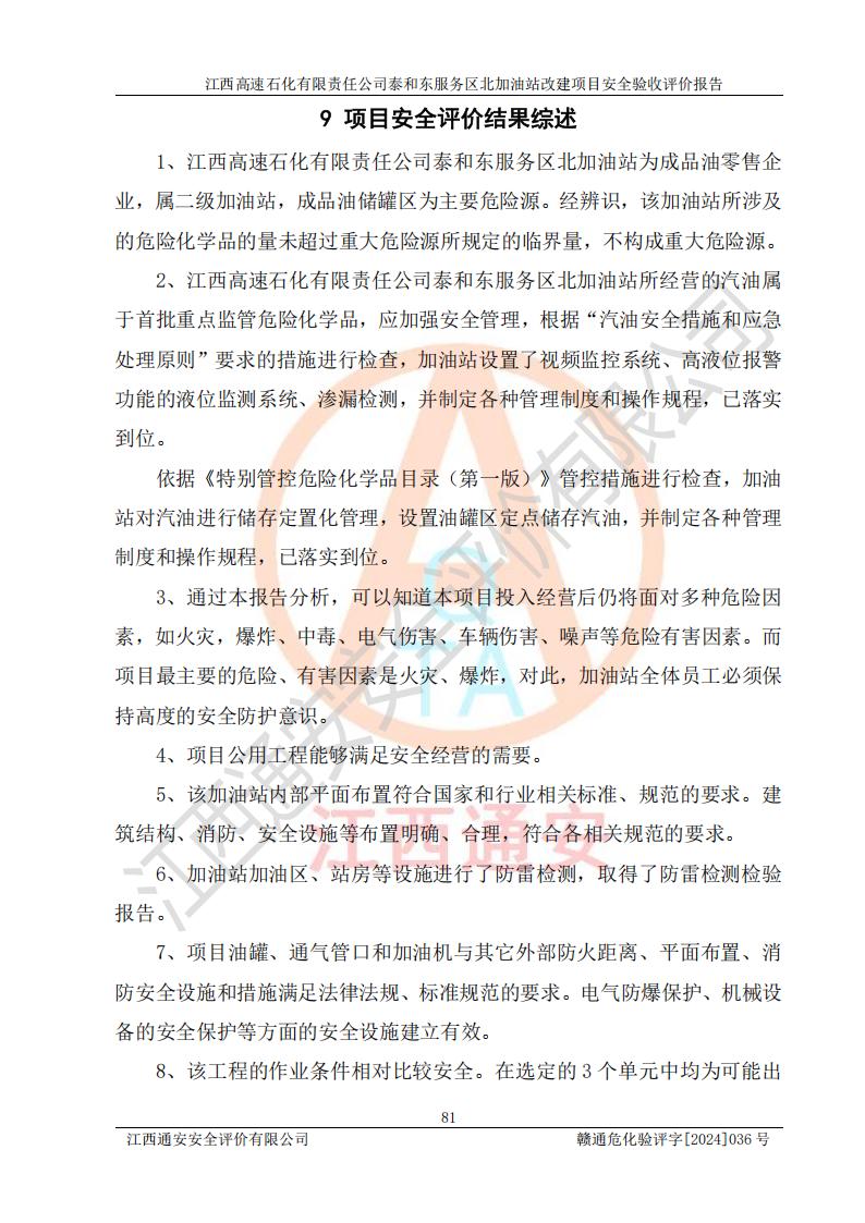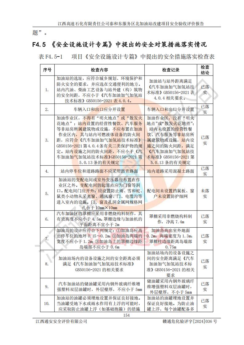 項目名稱 | 江西高速石化有限責任公司泰和東服務區(qū)北加油站改建項目安全驗收評價報告 | ||||