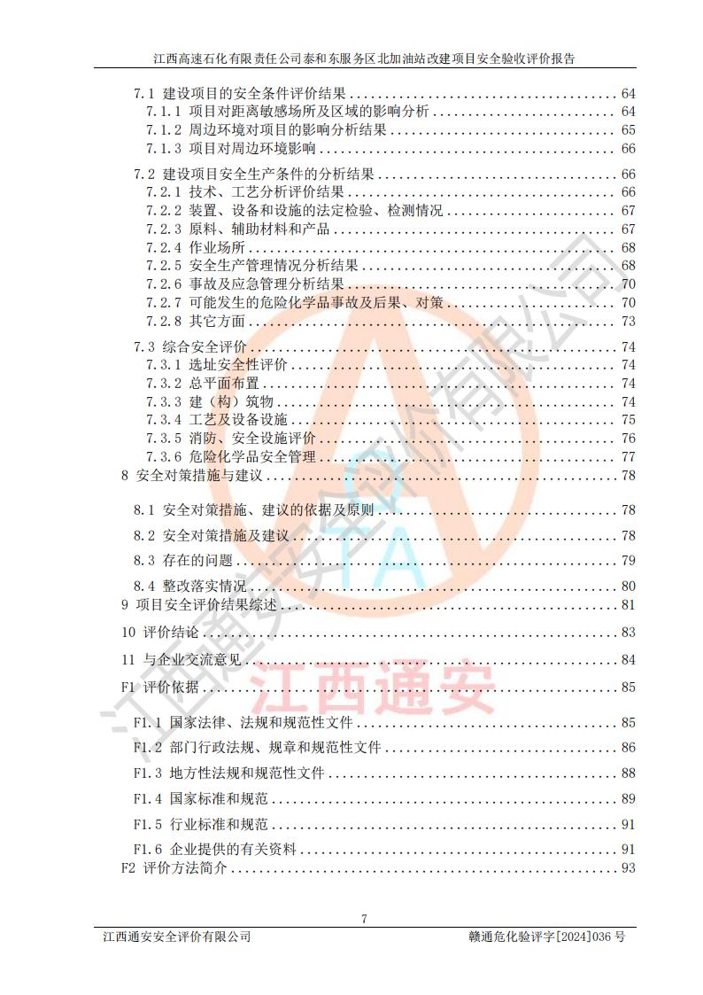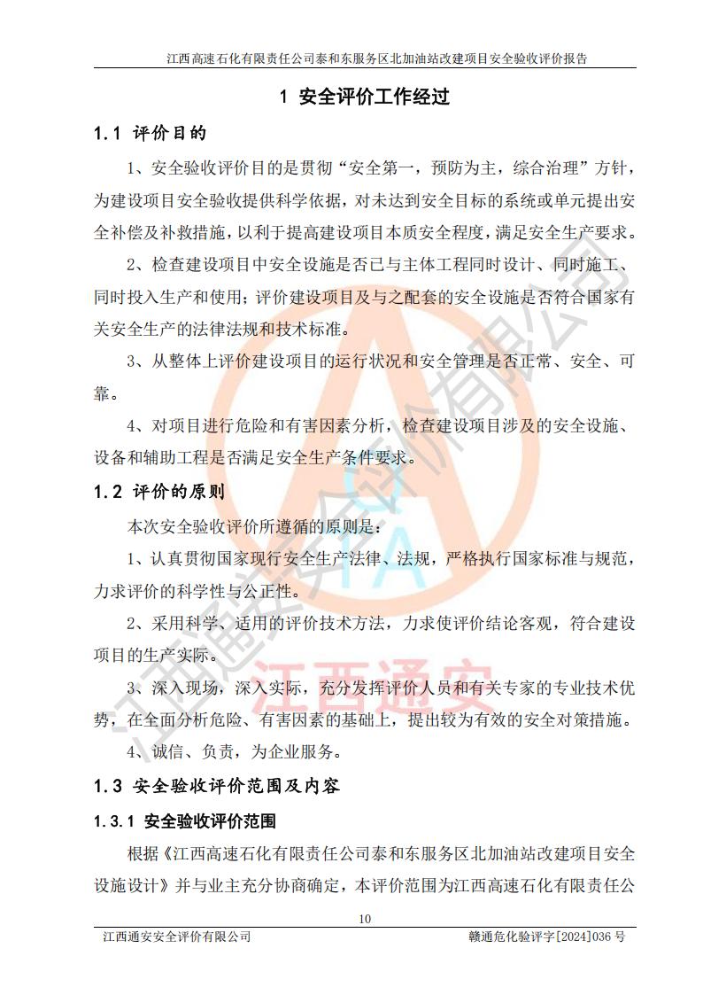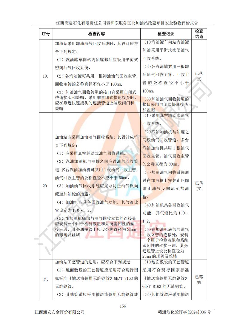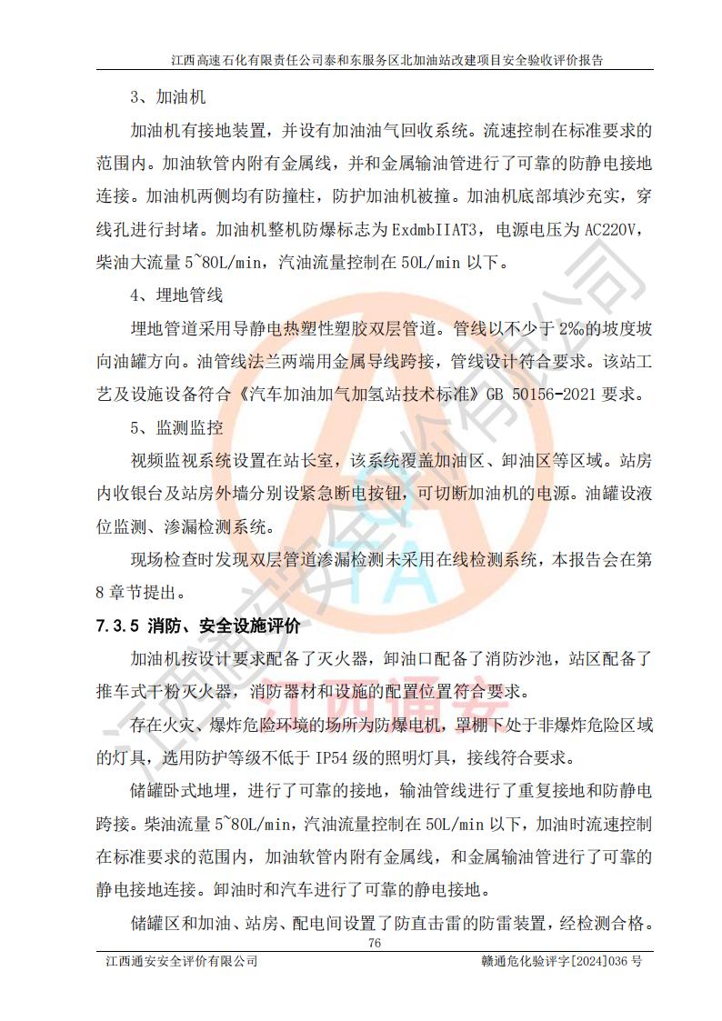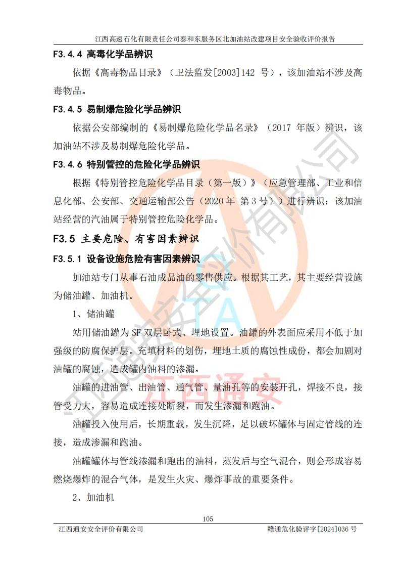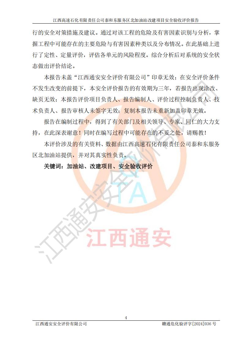 項目名稱 | 江西高速石化有限責任公司泰和東服務區(qū)北加油站改建項目安全驗收評價報告 | ||||