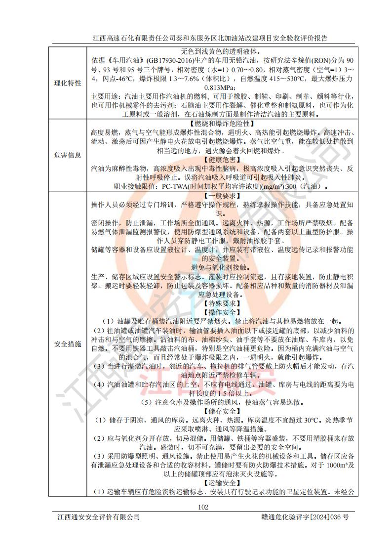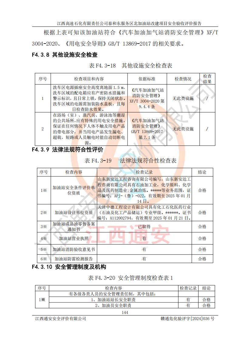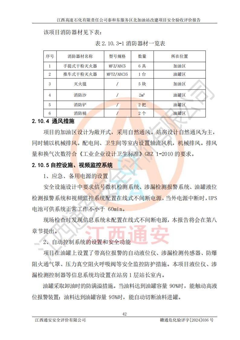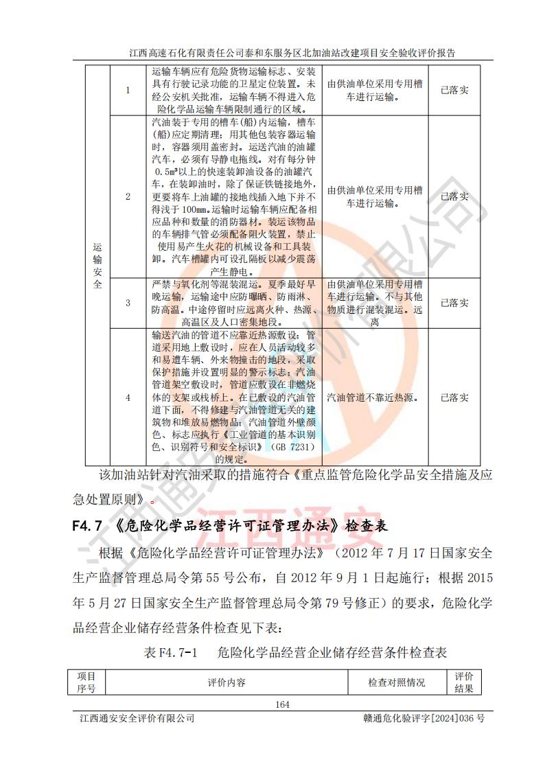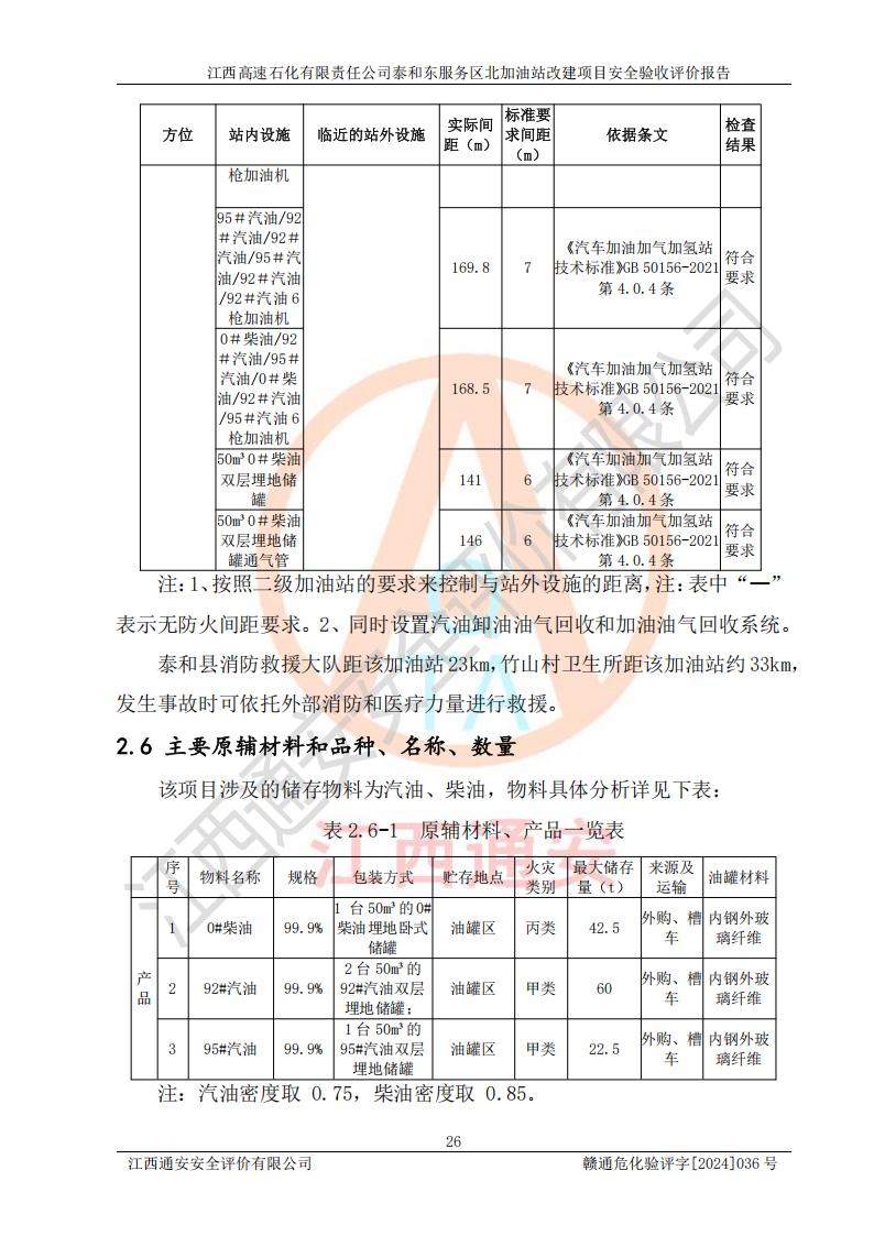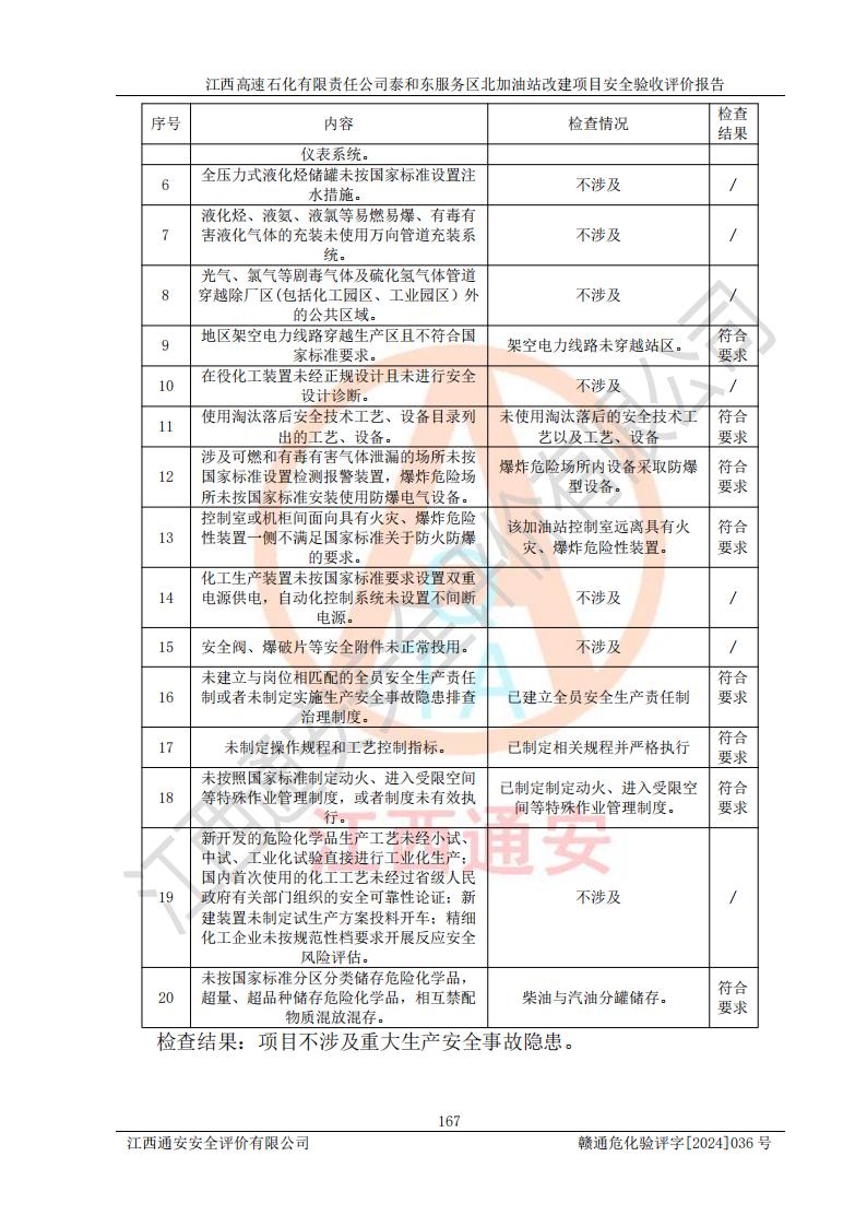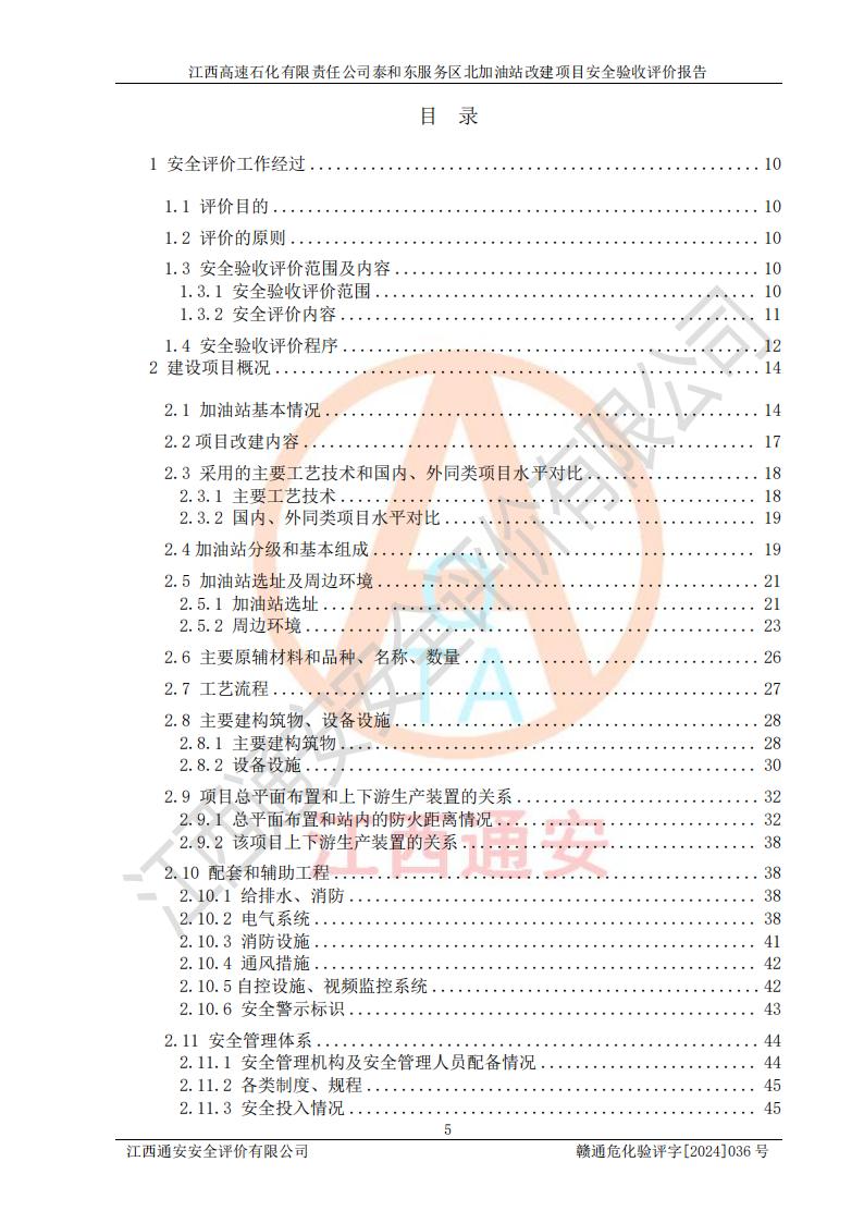 項目名稱 | 江西高速石化有限責任公司泰和東服務區(qū)北加油站改建項目安全驗收評價報告 | ||||