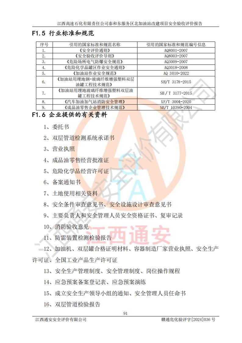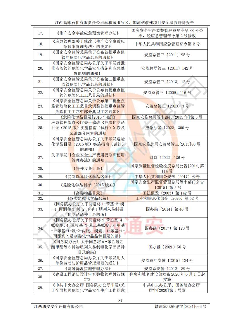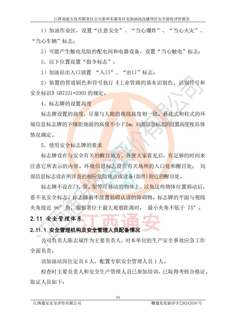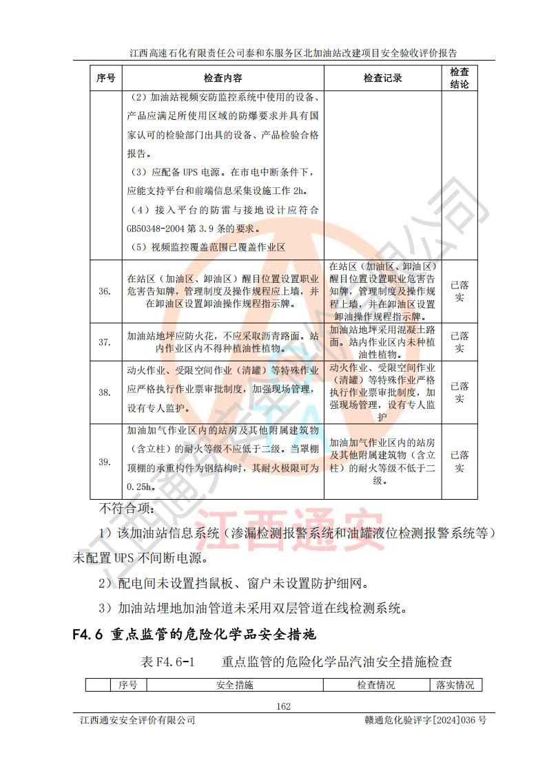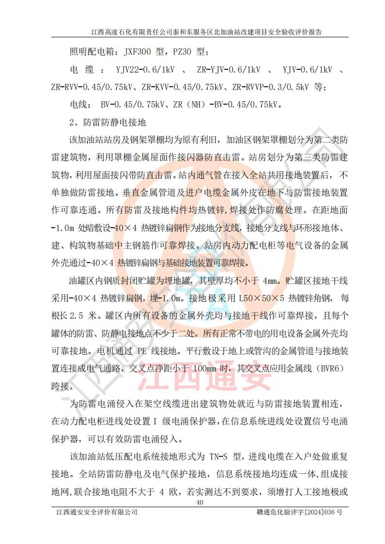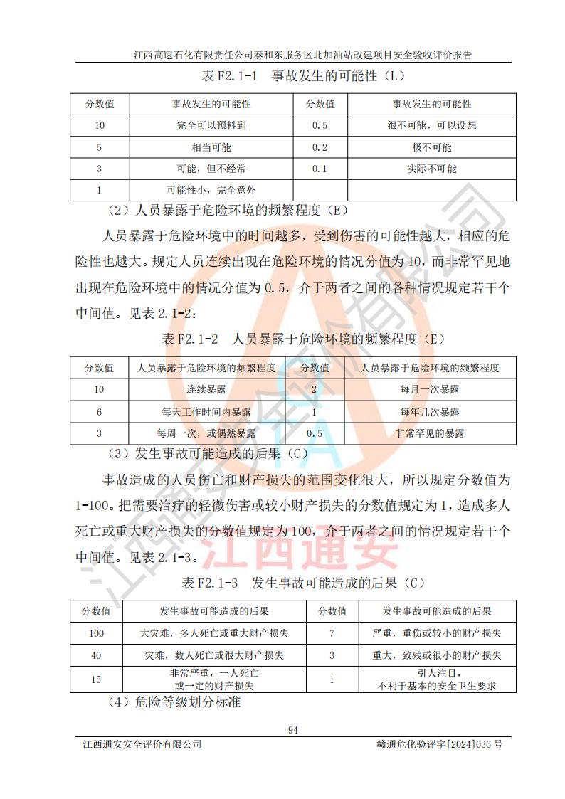 項目名稱 | 江西高速石化有限責任公司泰和東服務區(qū)北加油站改建項目安全驗收評價報告 | ||||
